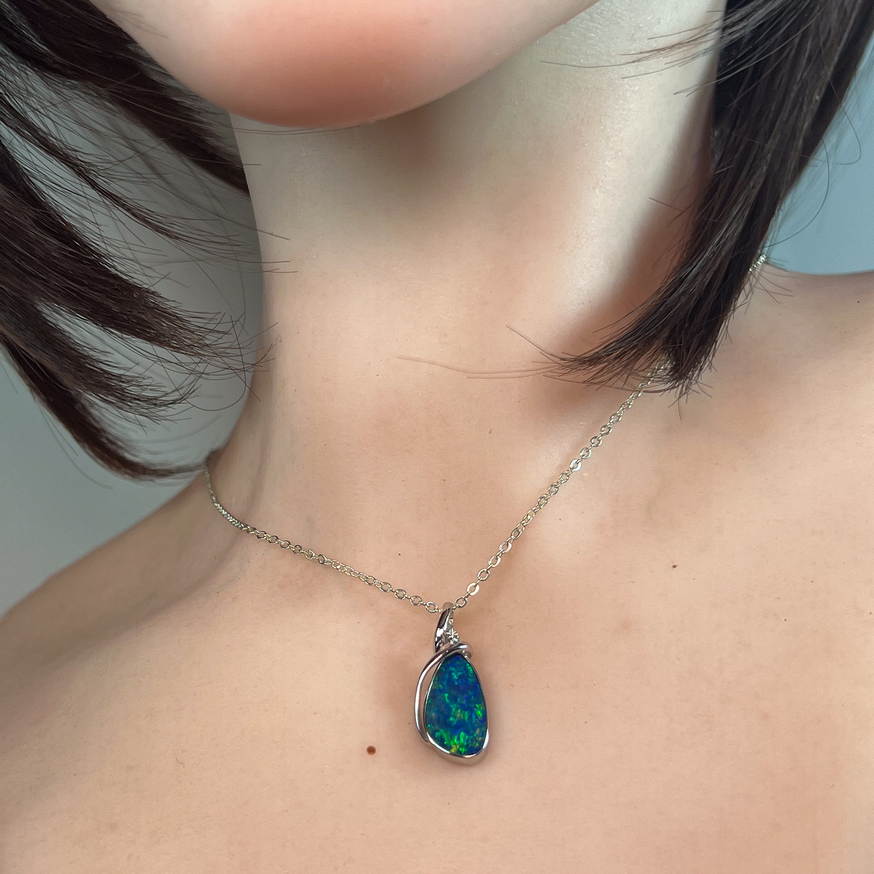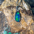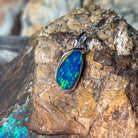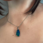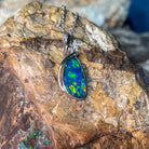 Sterling Silver Pear shape large Opal doublet pendant modern design