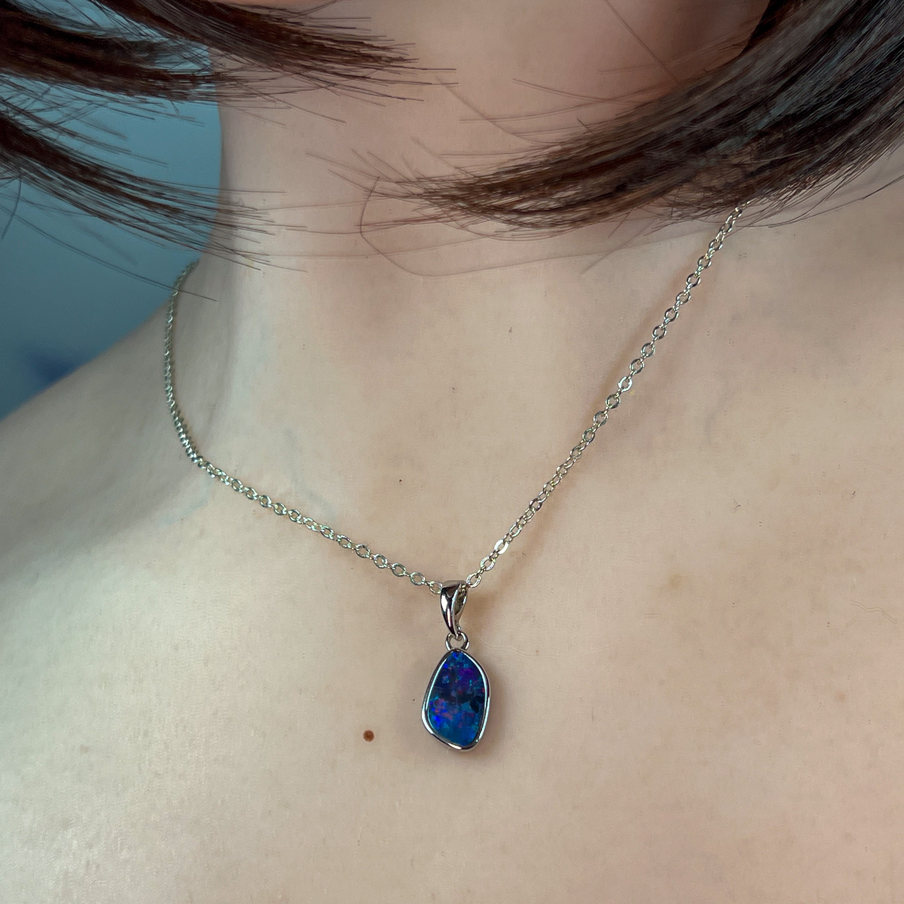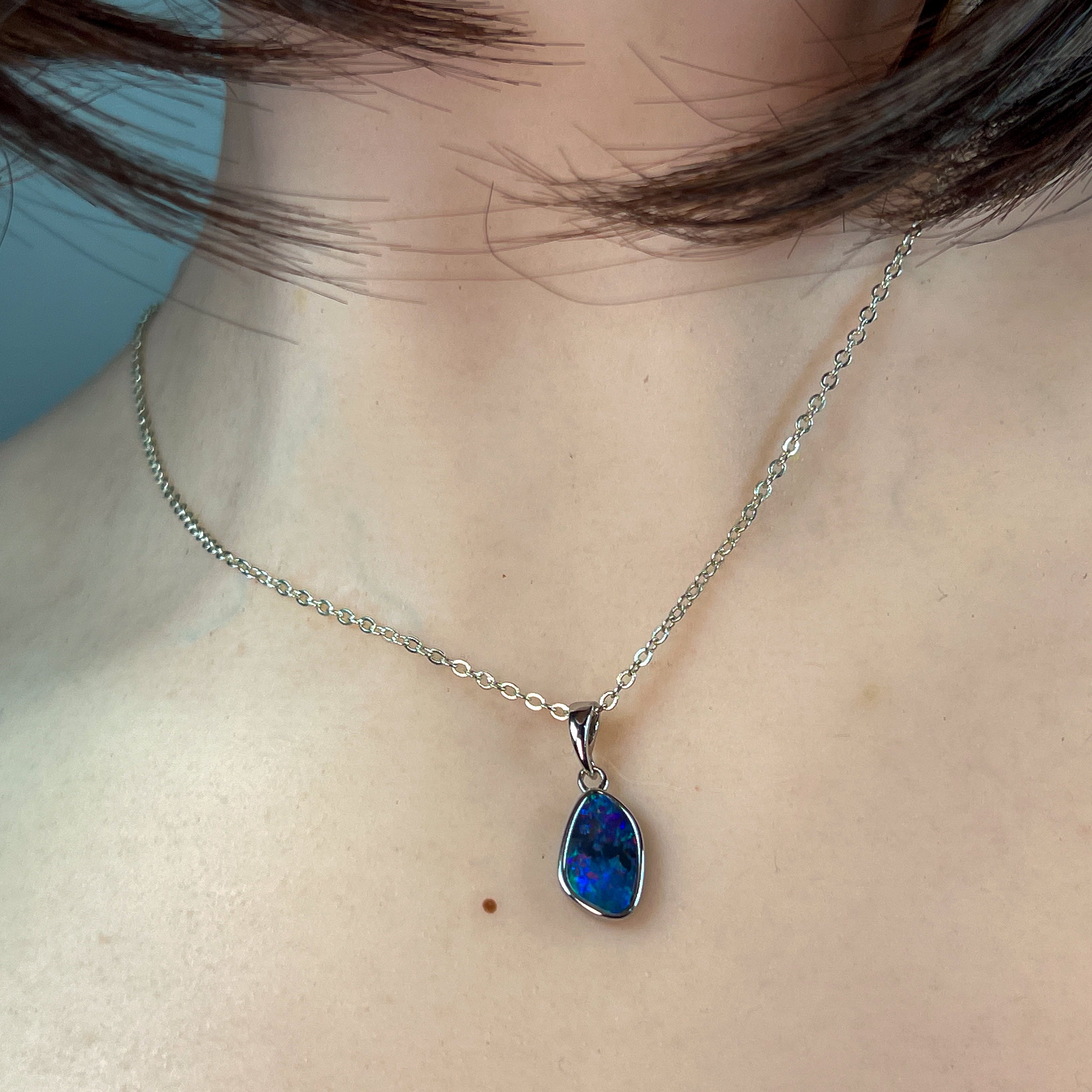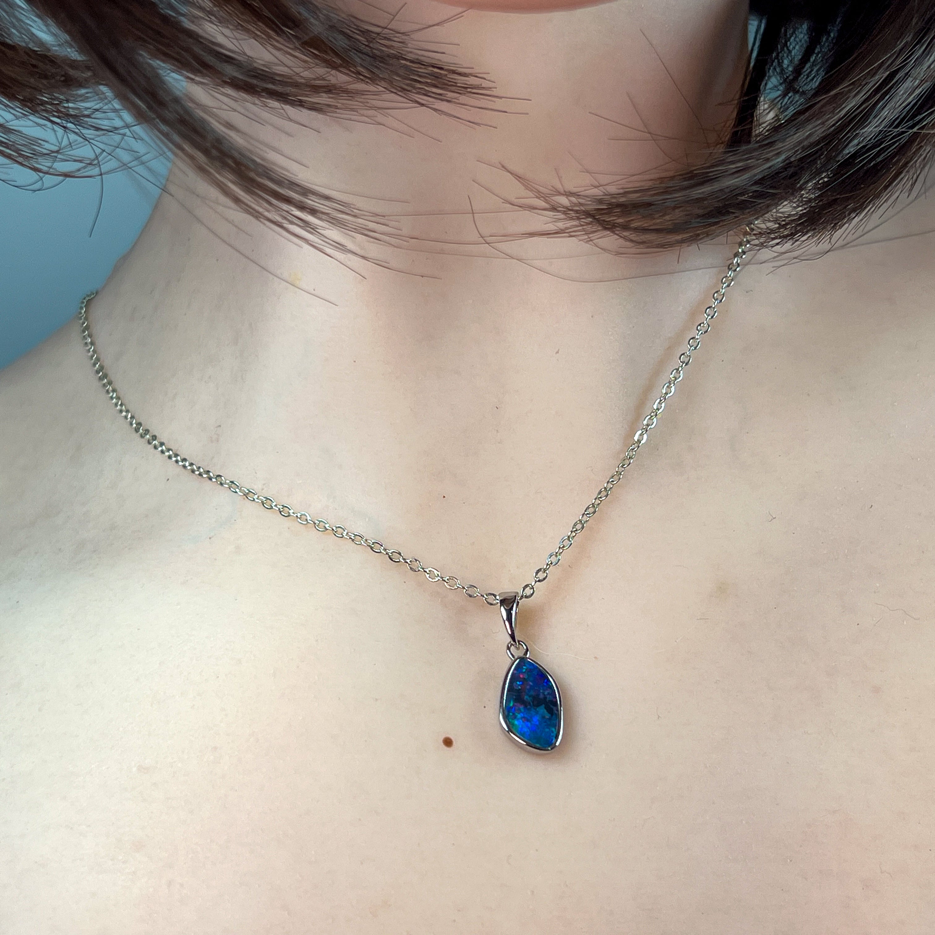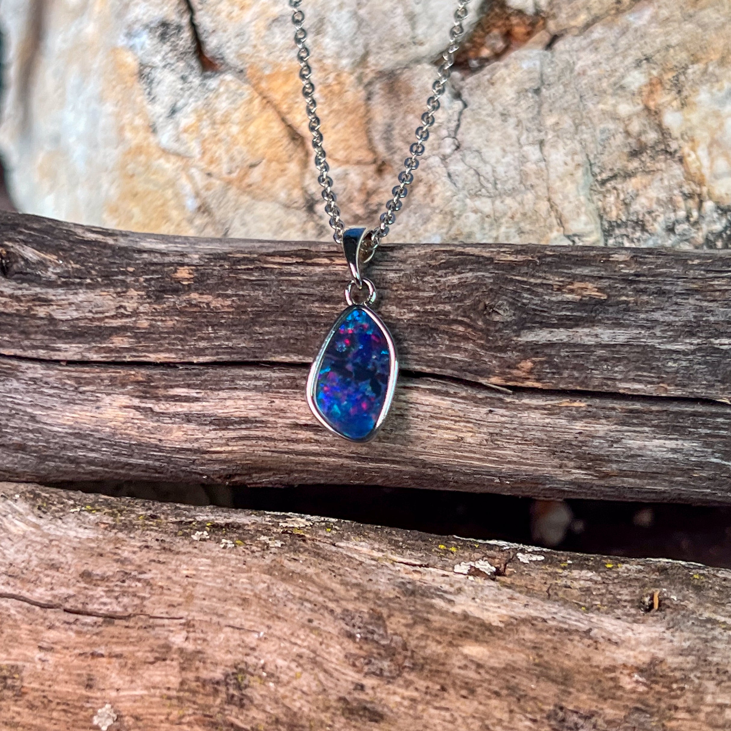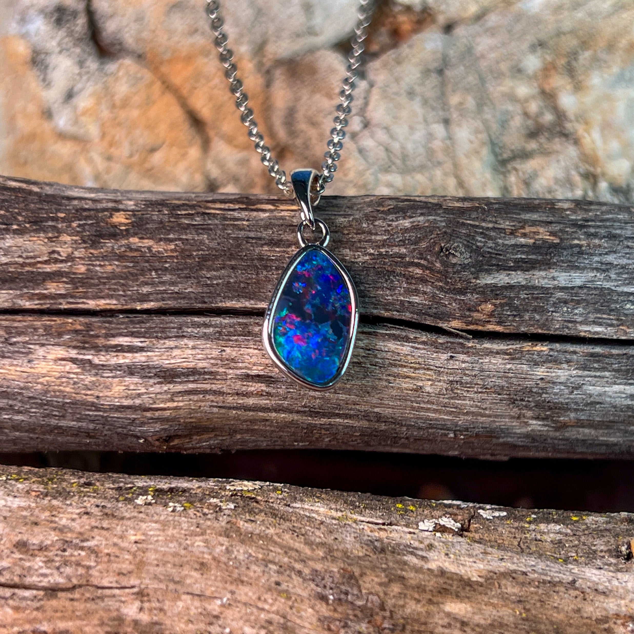 Sterling Silver Red Blue Opal doublet 12x7mm pendant