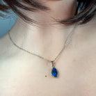 This striking sterling silver pendant showcases a vibrant red and blue opal doublet, expertly cut to 12x7mm dimensions. The deep, saturated colors of the opal create a mesmerizing display that shifts and dances with every movement. Crafted in quality sterling silver, this piece combines the natural beauty of precious opal with timeless elegance. Perfect for those seeking a bold statement accessory that captures attention and admiration. An investment in genuine gemstone jewelry that transcends fleeting trends.