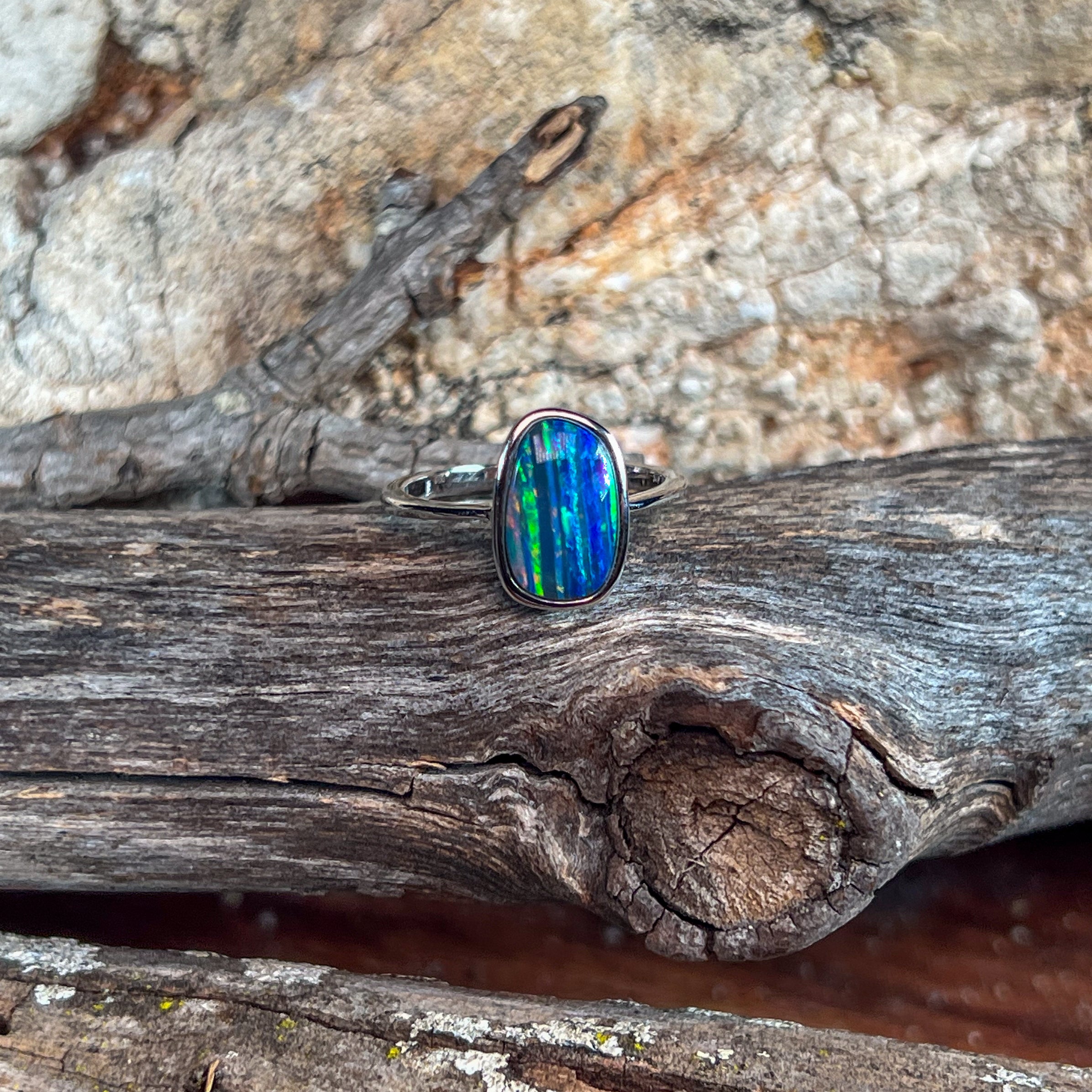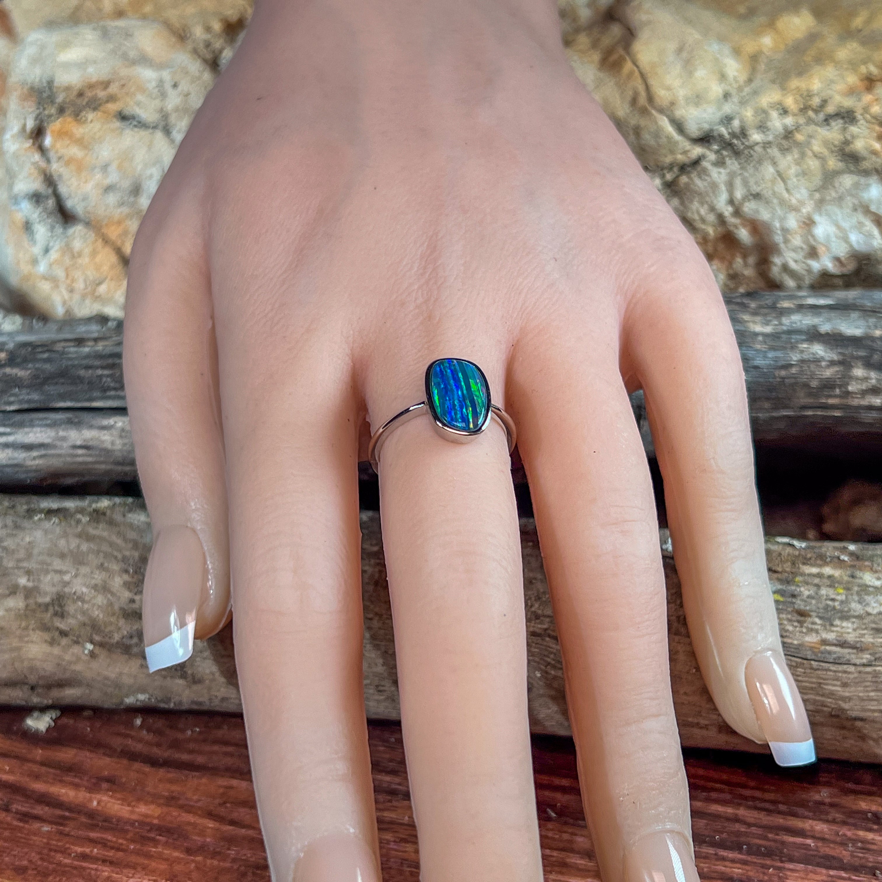 Sterling Silver Solitaire Opal doublet 12x7mm ring