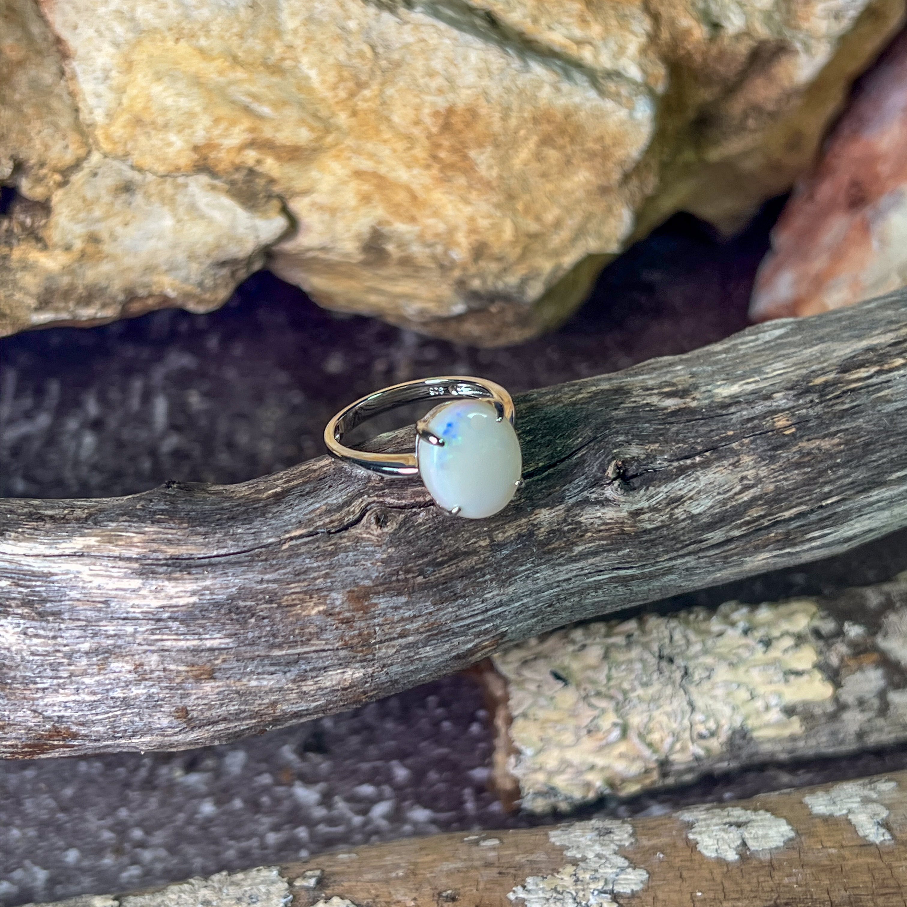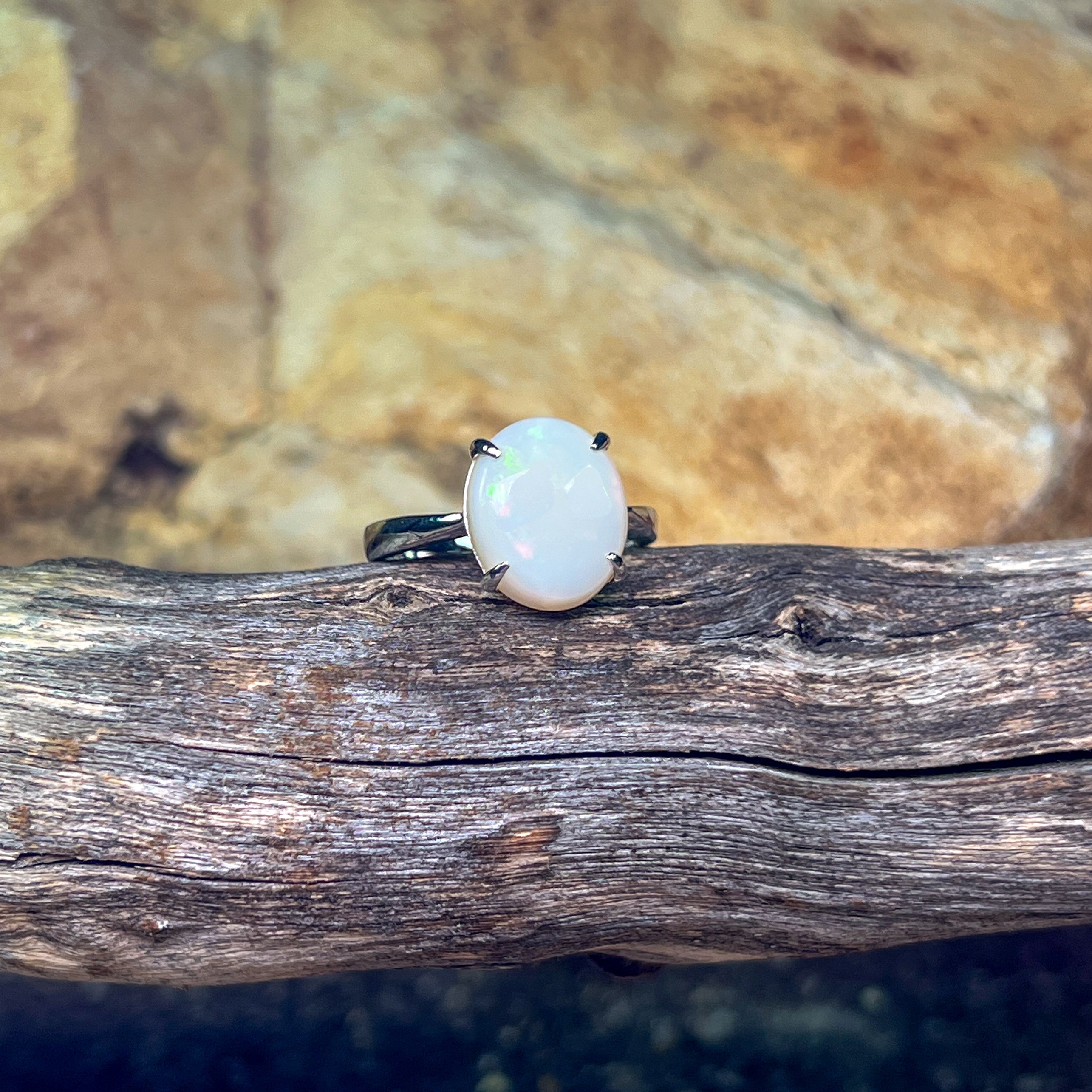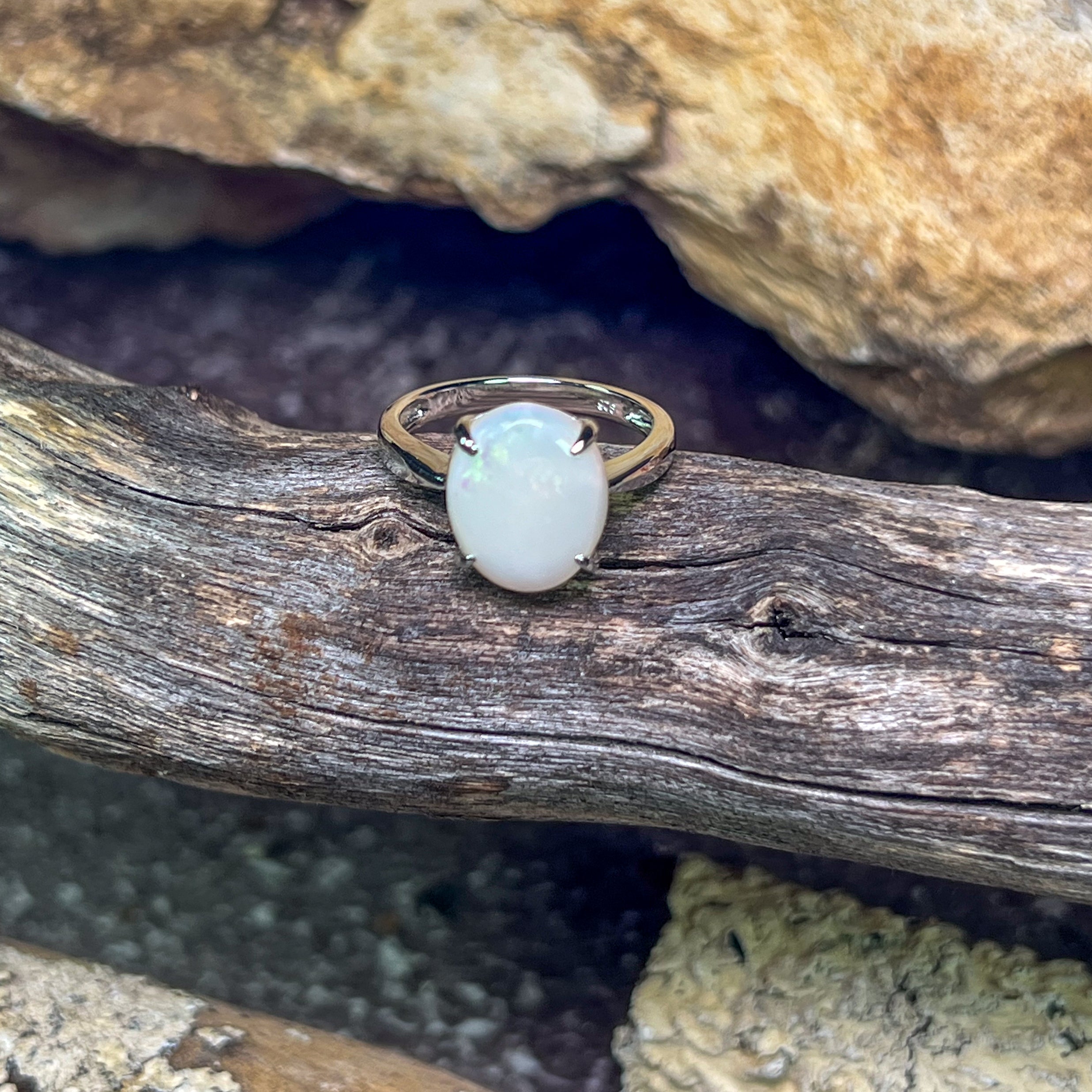 Elevate your style with our Sterling Silver solitaire White Opal ring! With a classic design and a stunning 12x10mm stone, this ring will add a touch of sophistication to any outfit. Express your unique style and make a statement with this beautiful piece.
