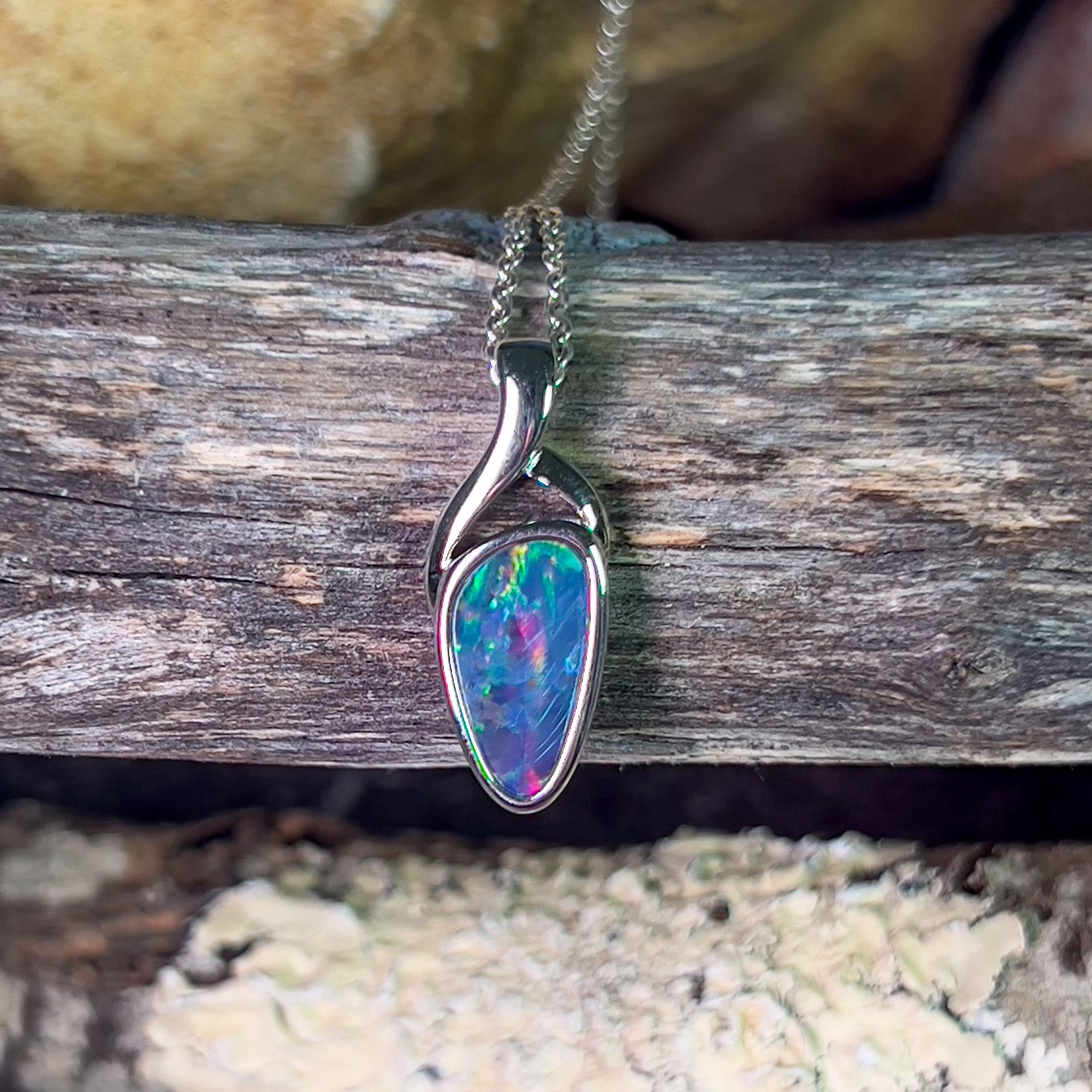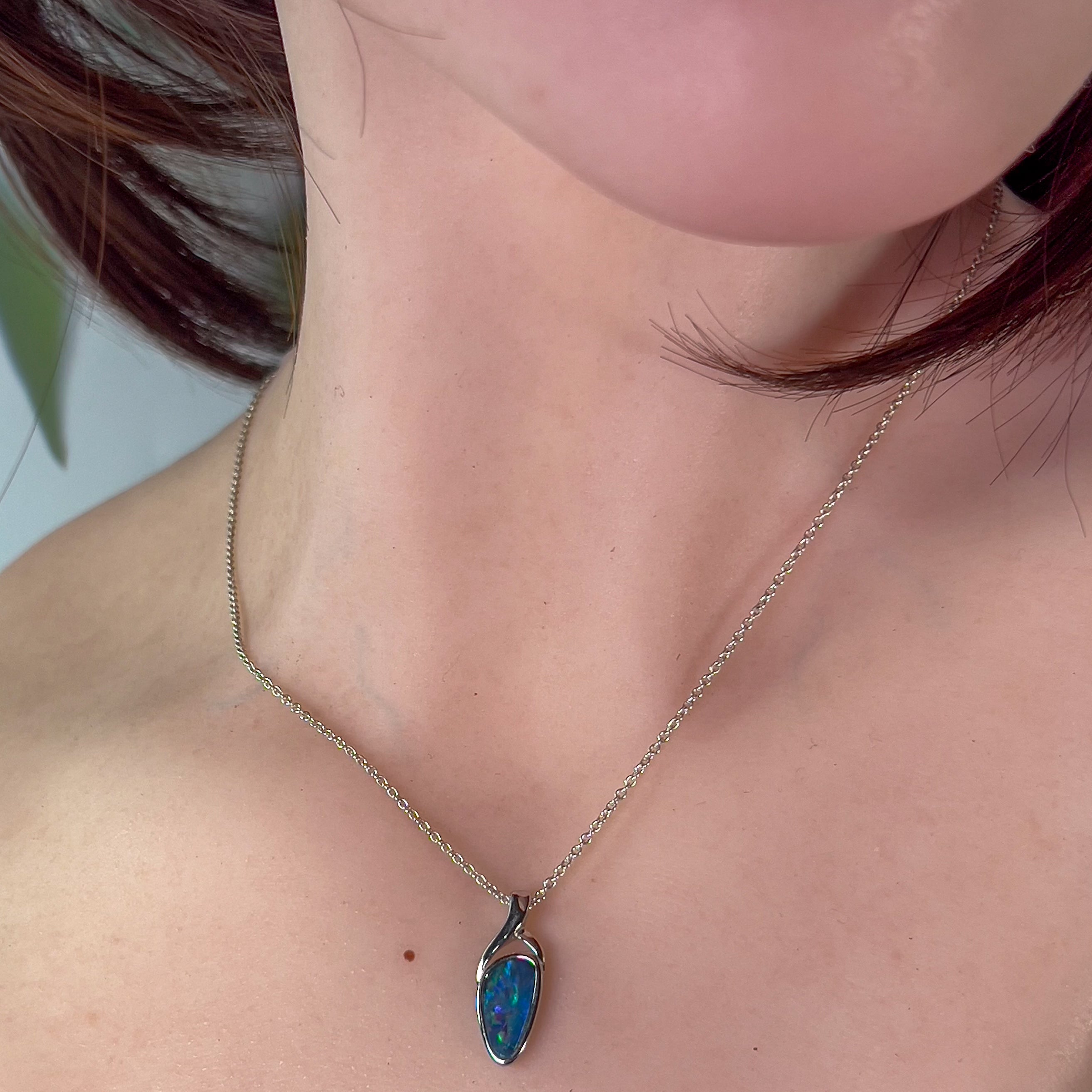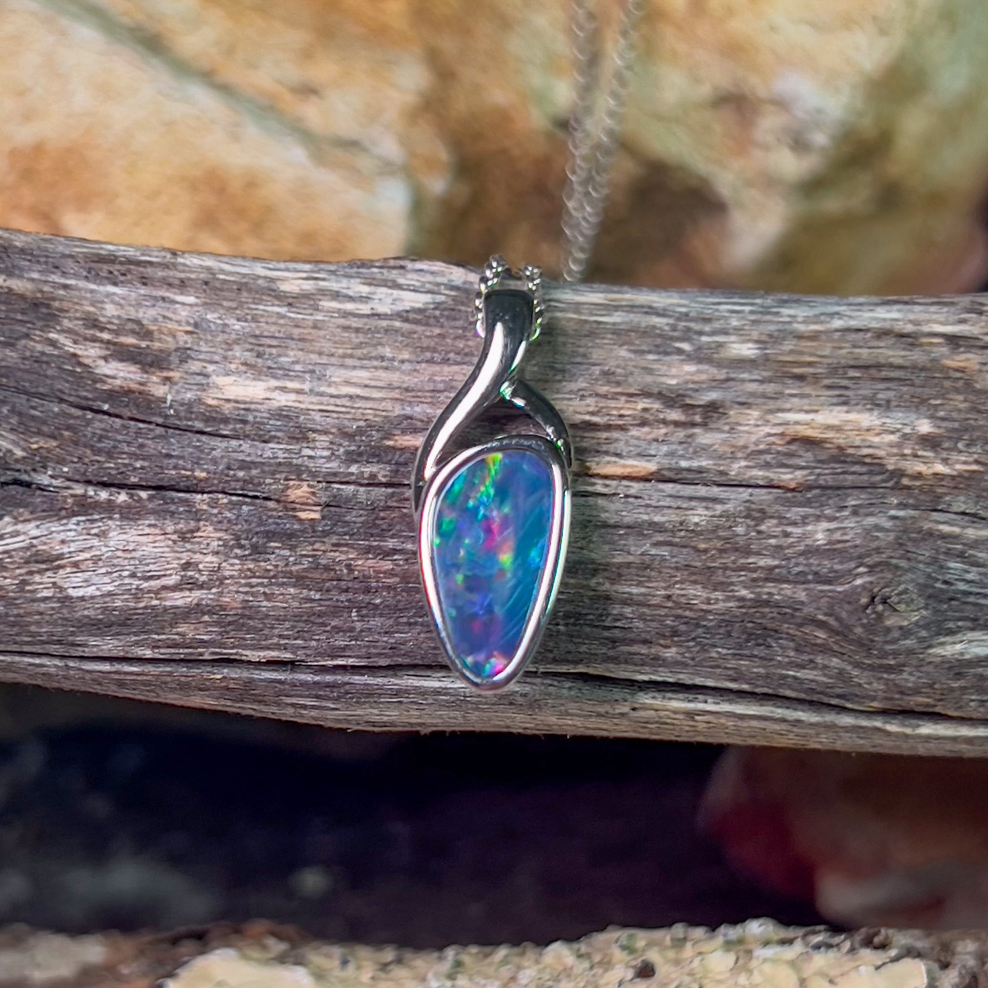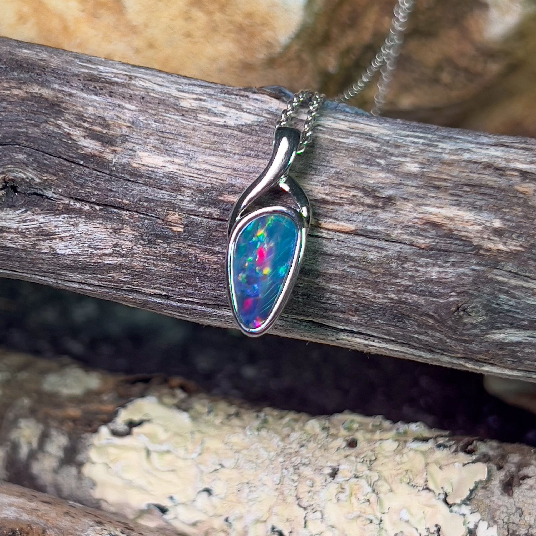 Sparkle with the mesmerizing fire colour of our Sterling Silver Teardrop shape Opal doublet pendant. Elegantly crafted, this pendant adds a touch of radiance and sophistication to any outfit. Embrace the enchanting beauty of the opal doublet and let its fiery hues inspire you every day!