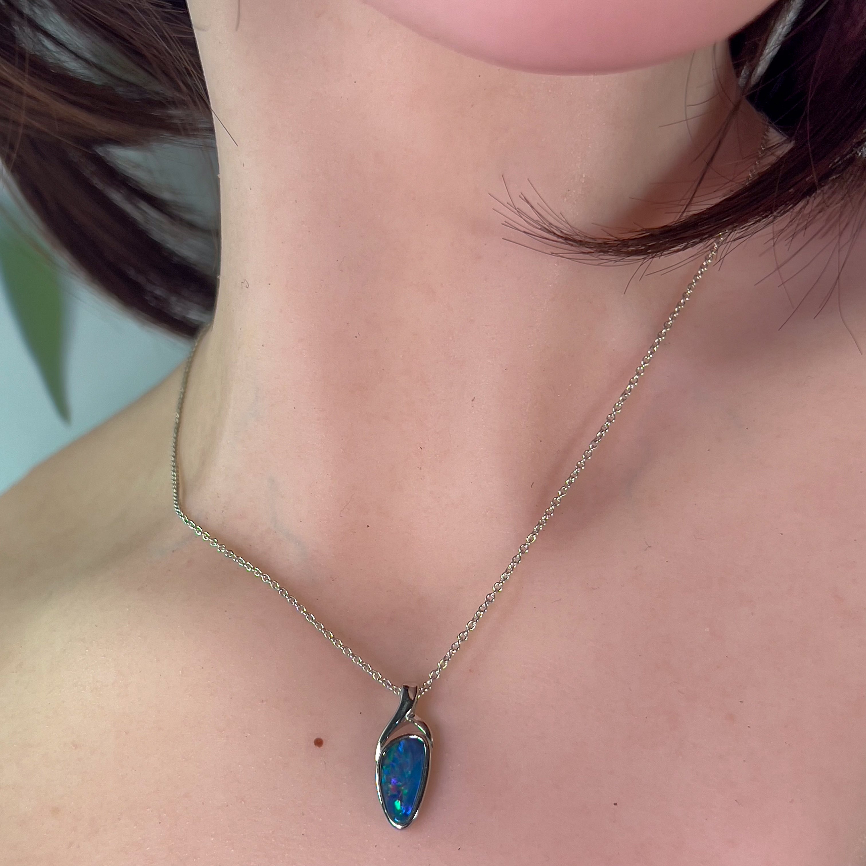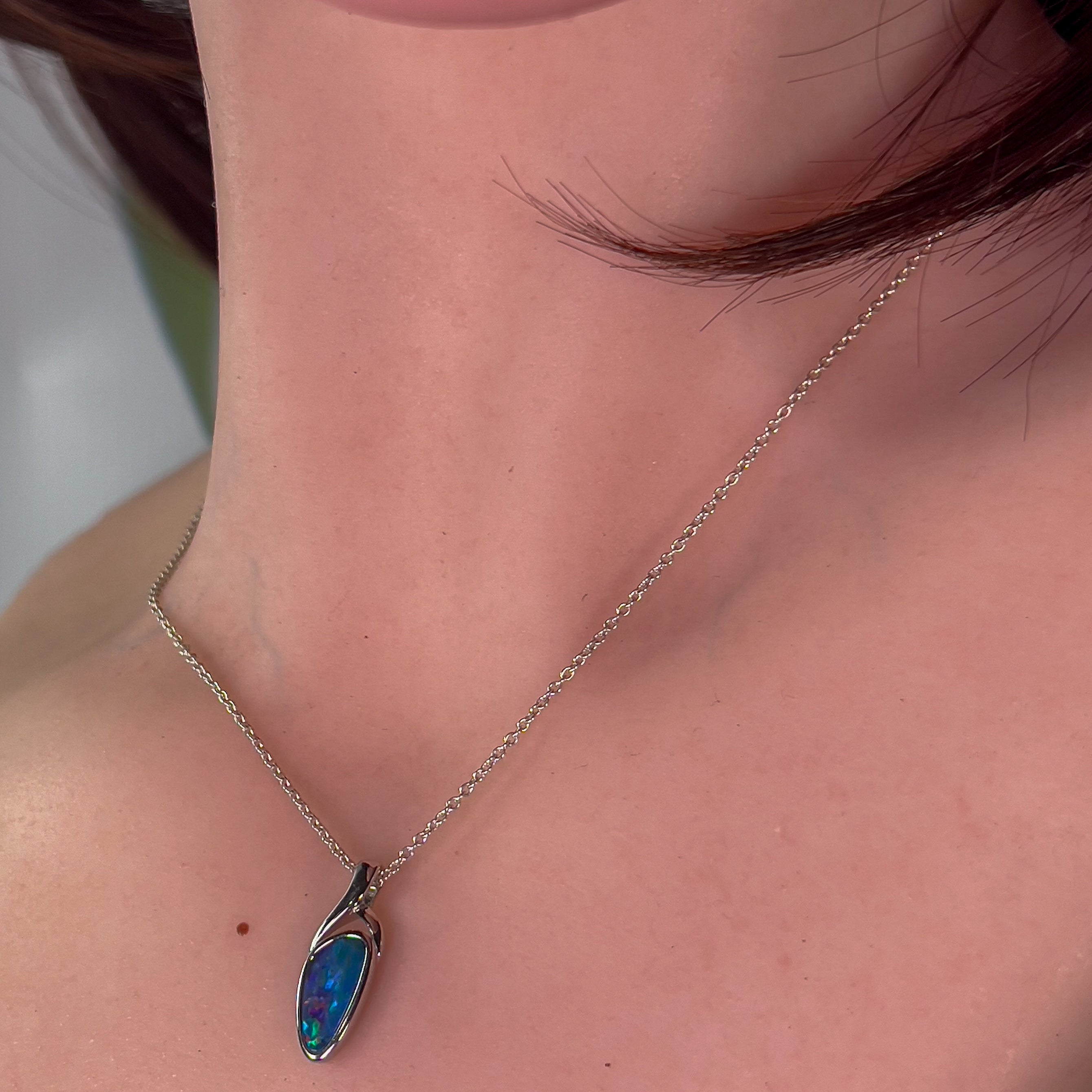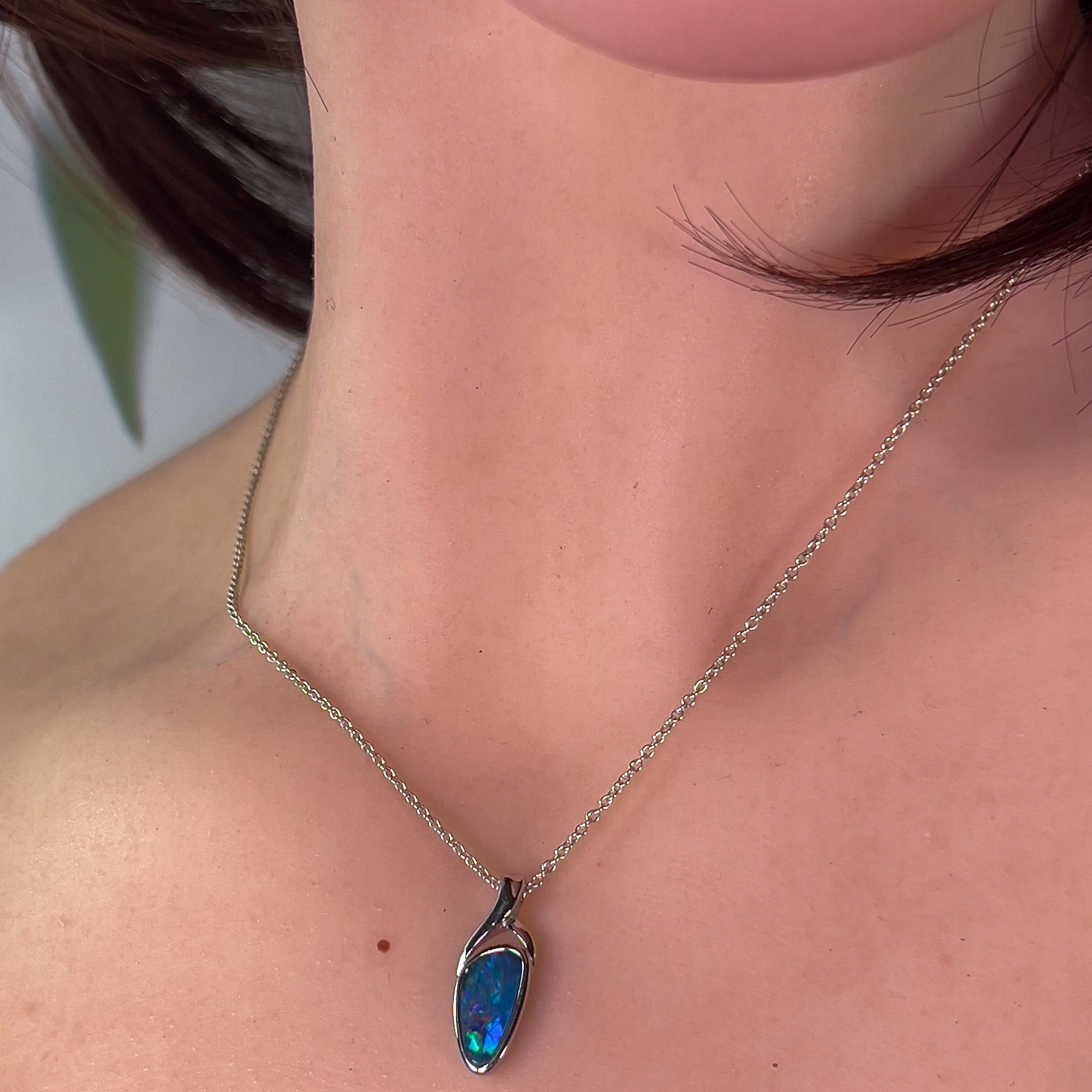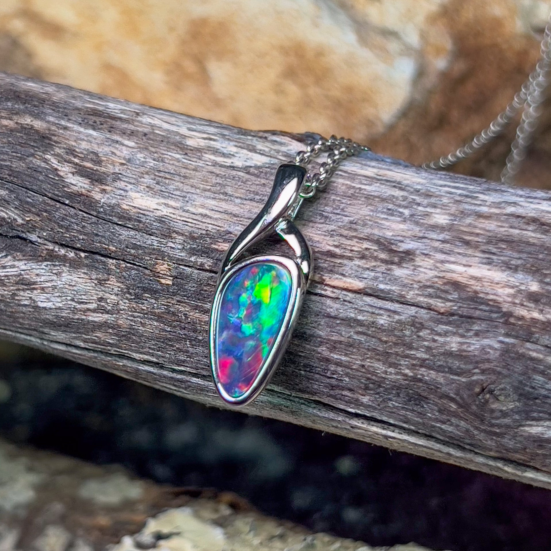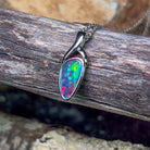 Sparkle with the mesmerizing fire colour of our Sterling Silver Teardrop shape Opal doublet pendant. Elegantly crafted, this pendant adds a touch of radiance and sophistication to any outfit. Embrace the enchanting beauty of the opal doublet and let its fiery hues inspire you every day!