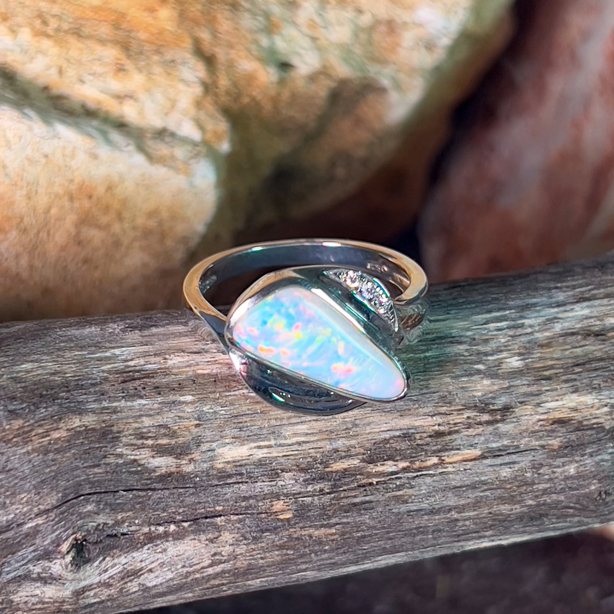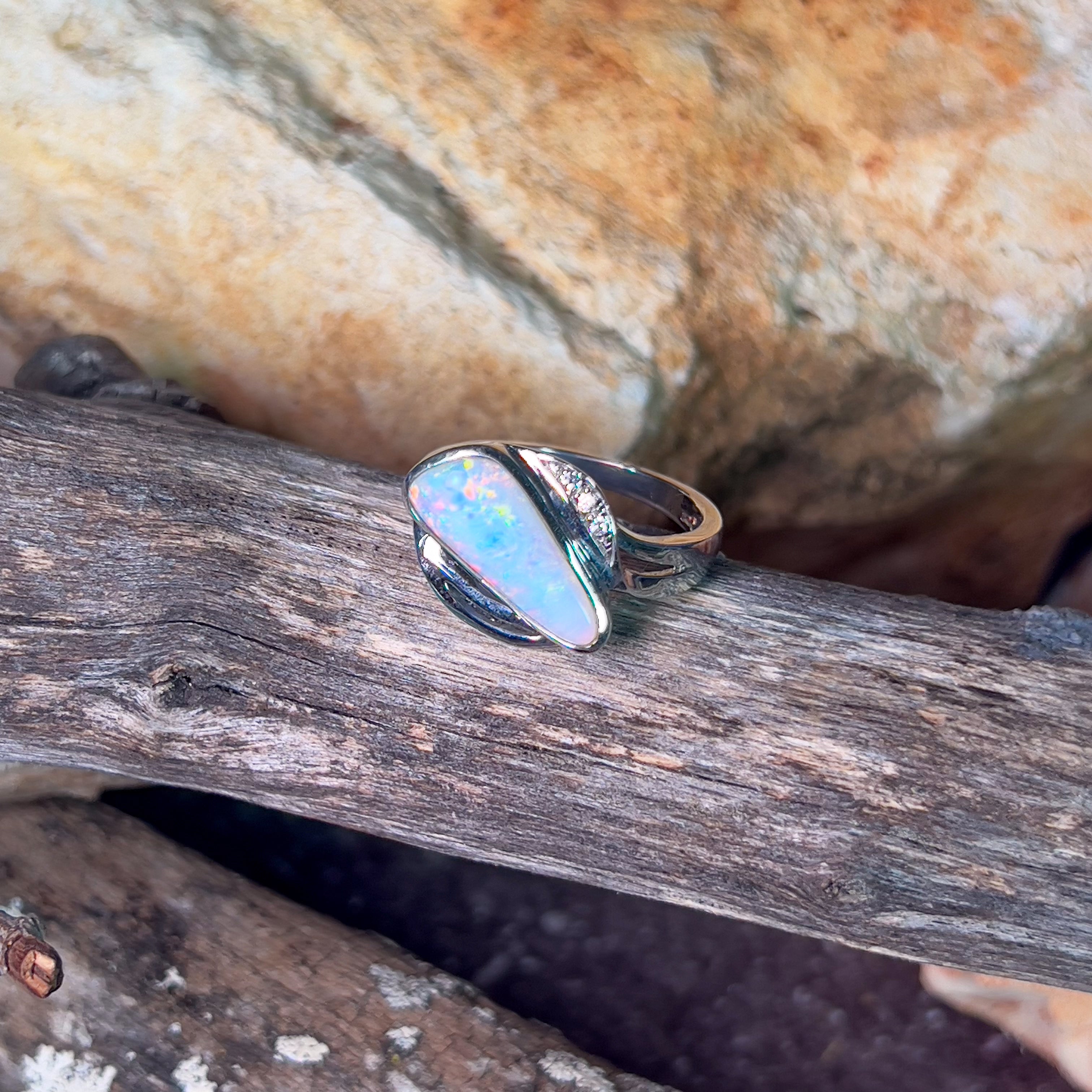 1 Freeform Triangle shape Fire Blue green Australian Crytal Opal