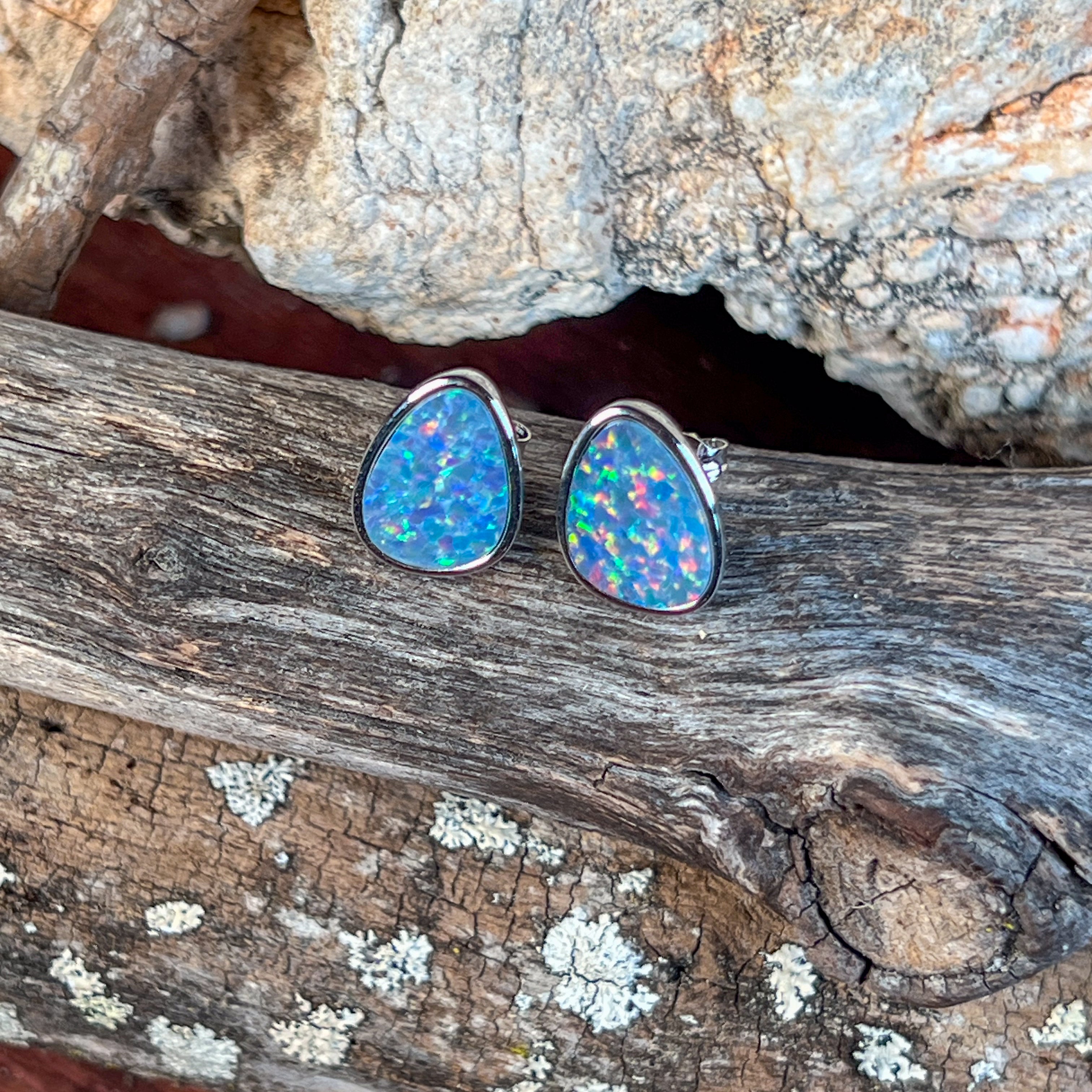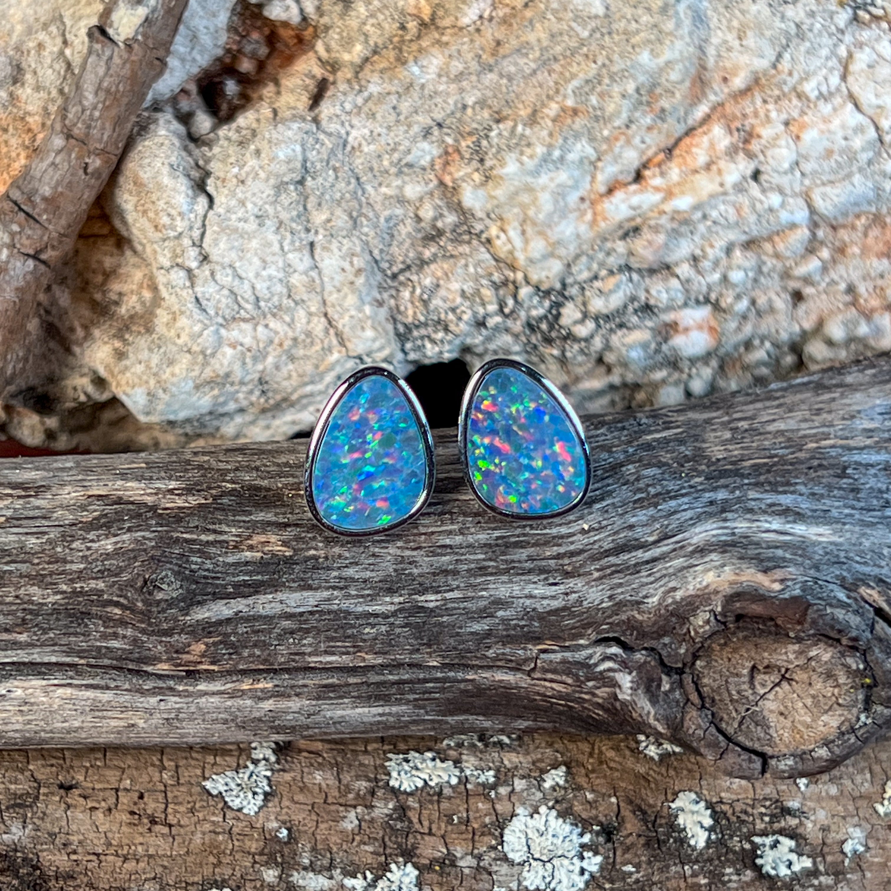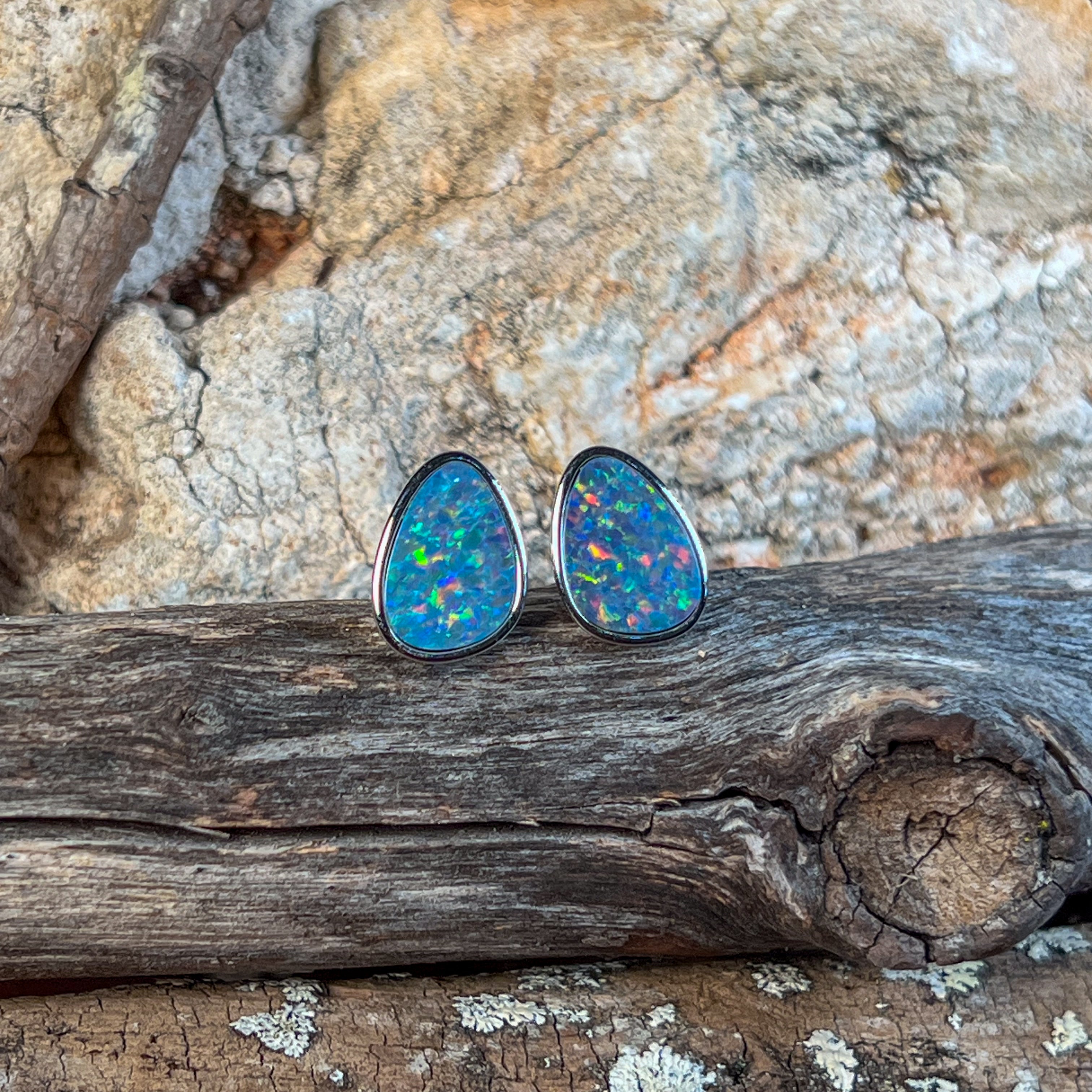 Sterling Silver Triangular Soft Blue Yellow Opal doublet studs