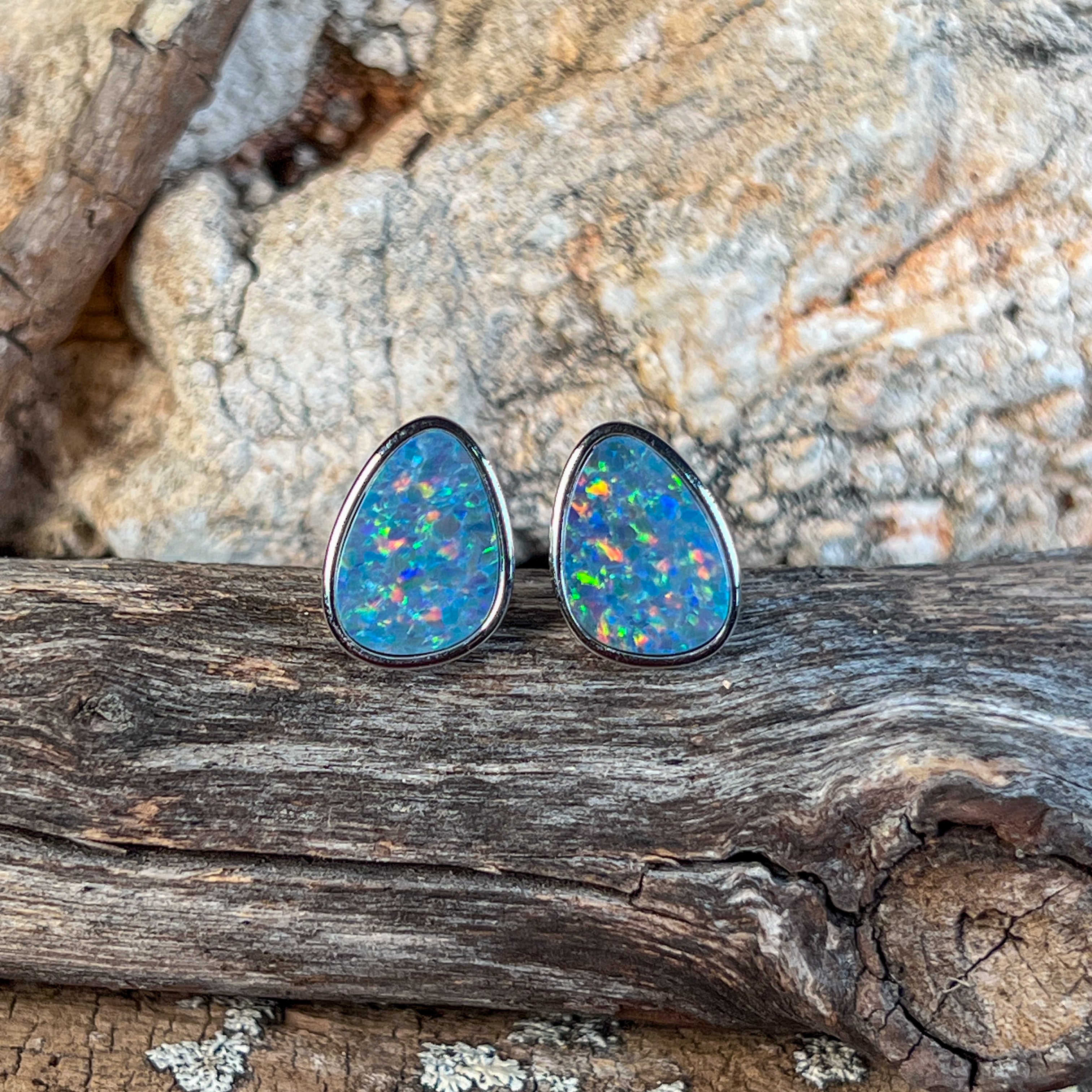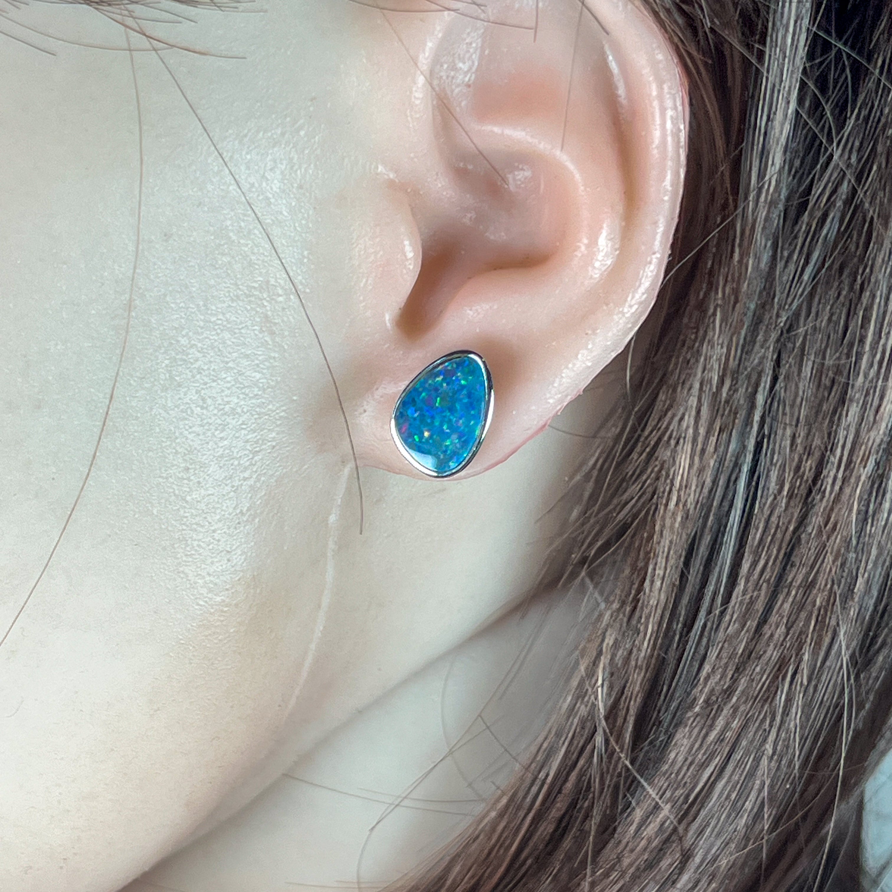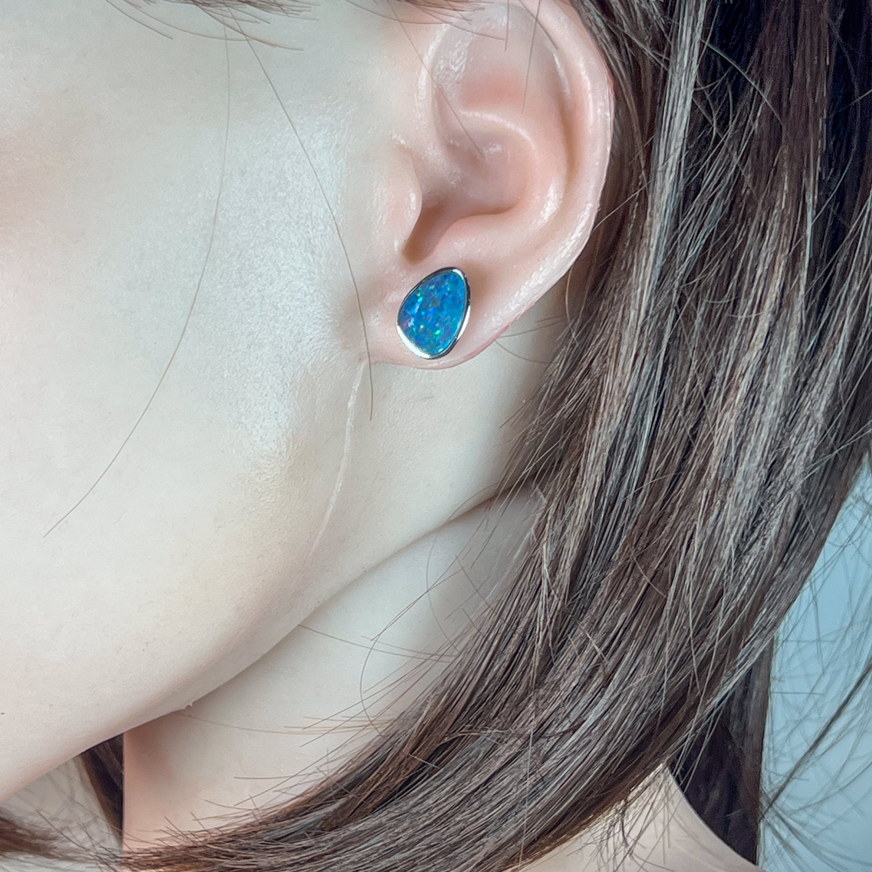 Sterling Silver Triangular Soft Blue Yellow Opal doublet studs