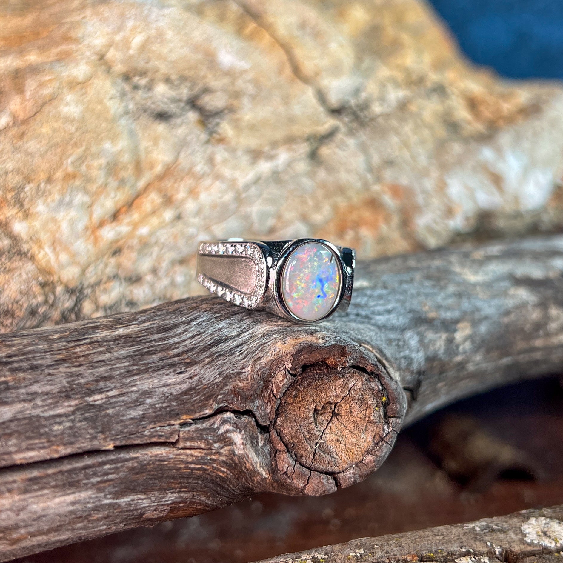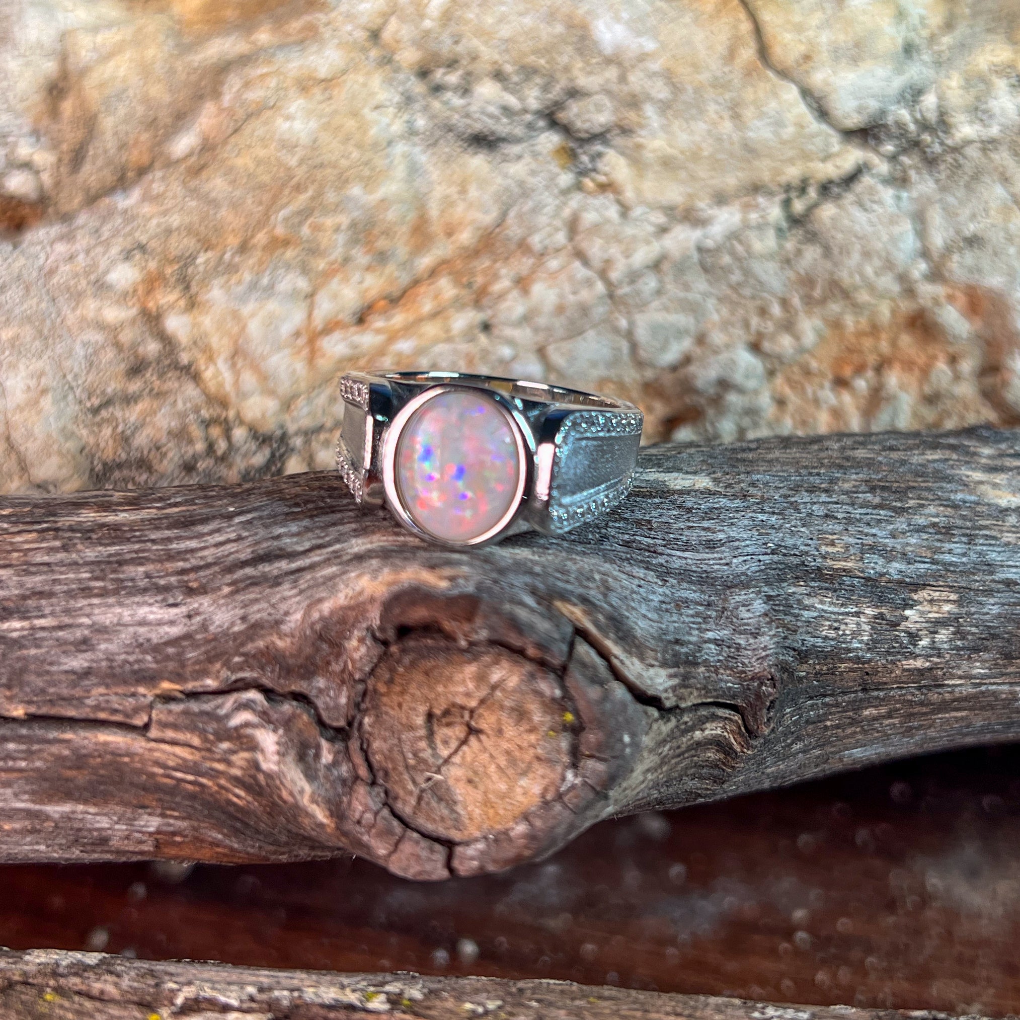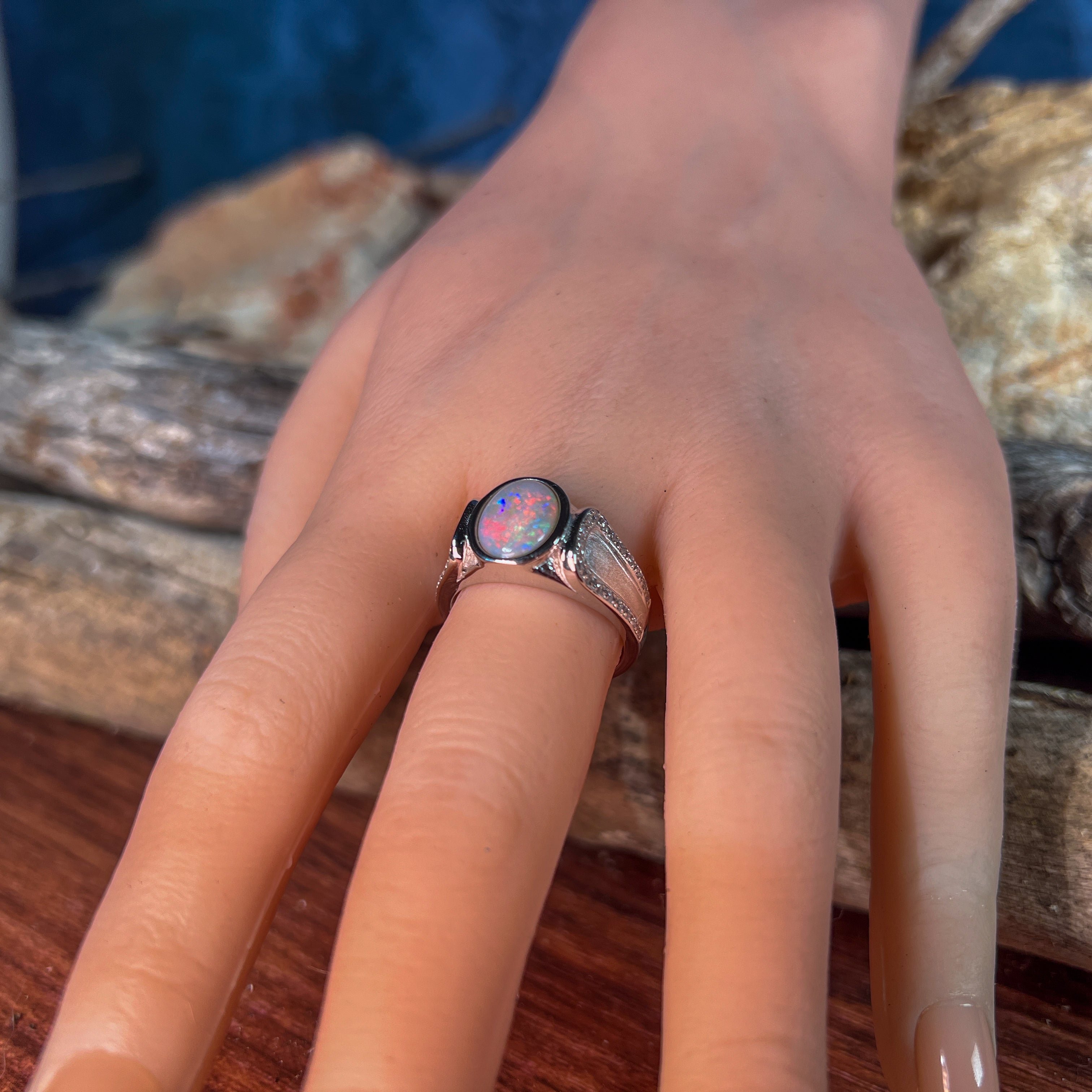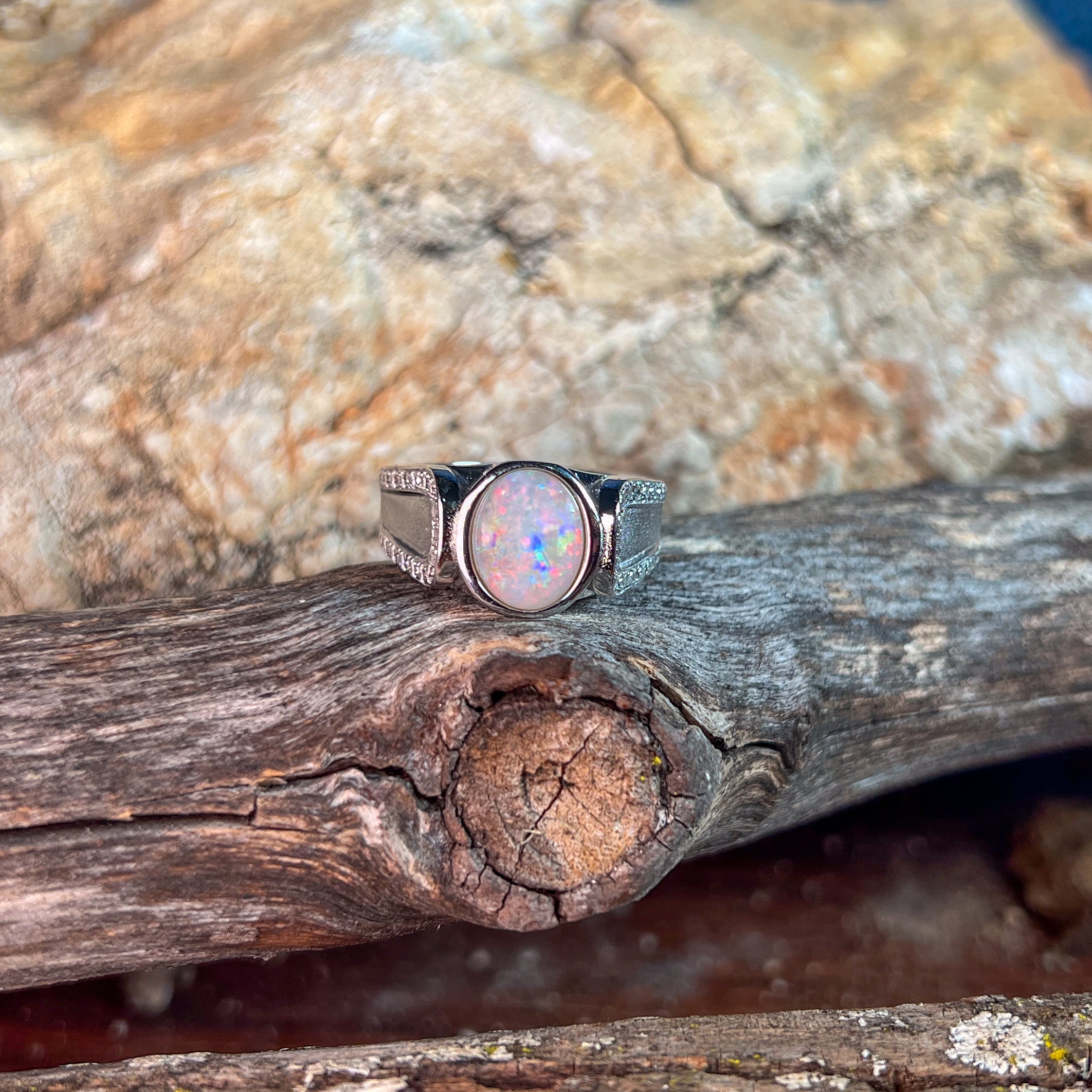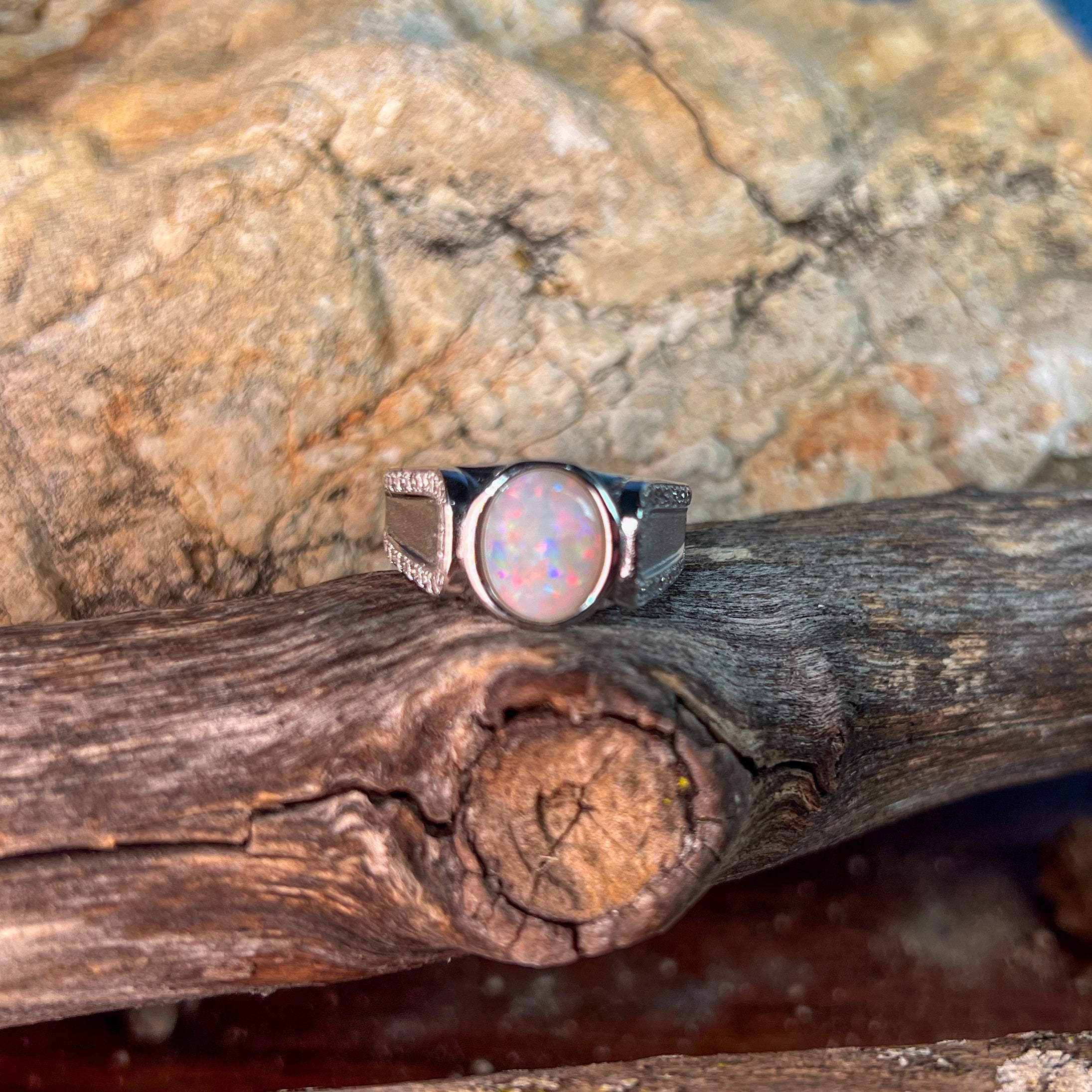 Elevate your style with this sterling silver ring featuring a luminous 10x8mm white opal. The matte finish adds a modern, sophisticated touch, making it perfect for both everyday wear and special occasions. Experience subtle elegance and timeless beauty in one exquisite piece.
