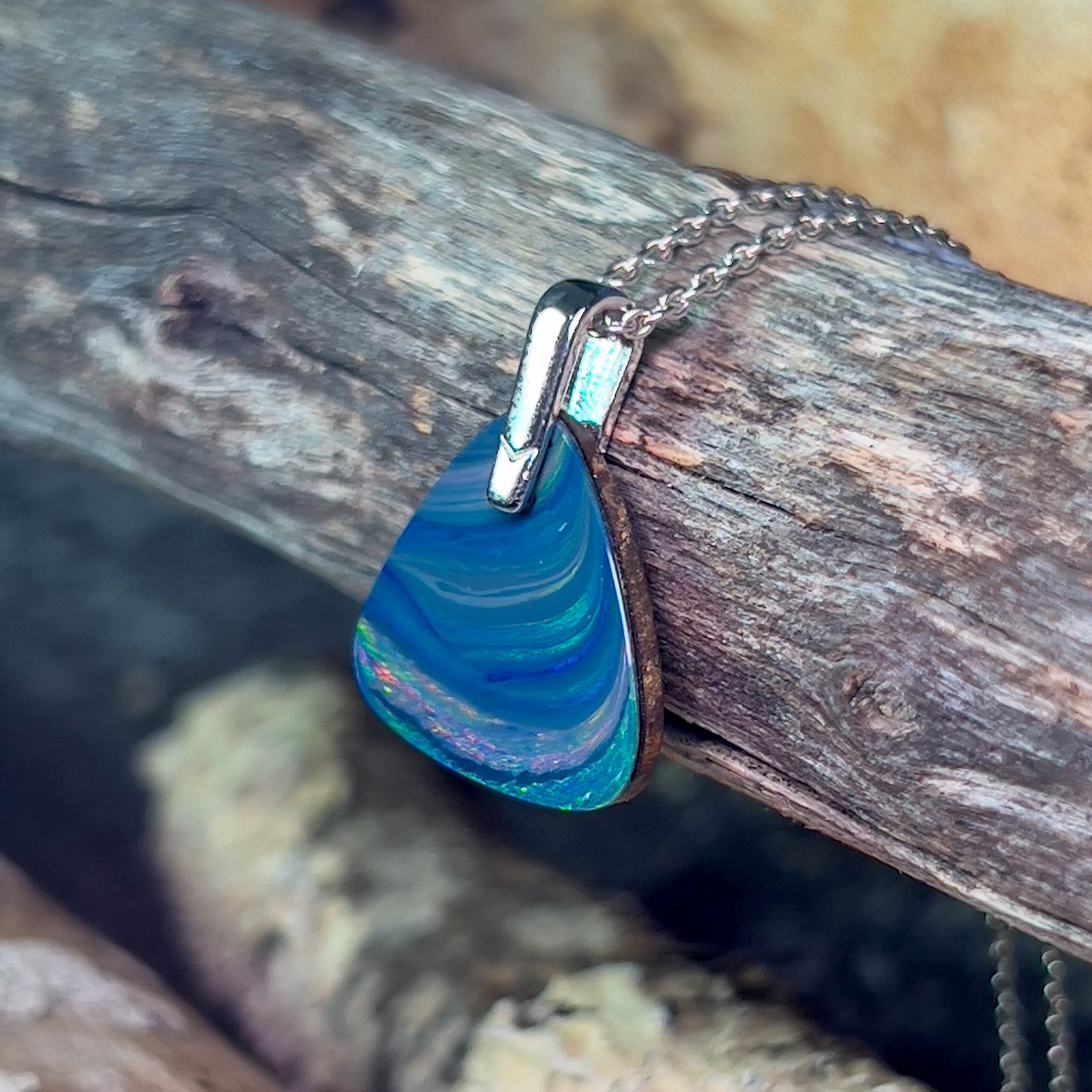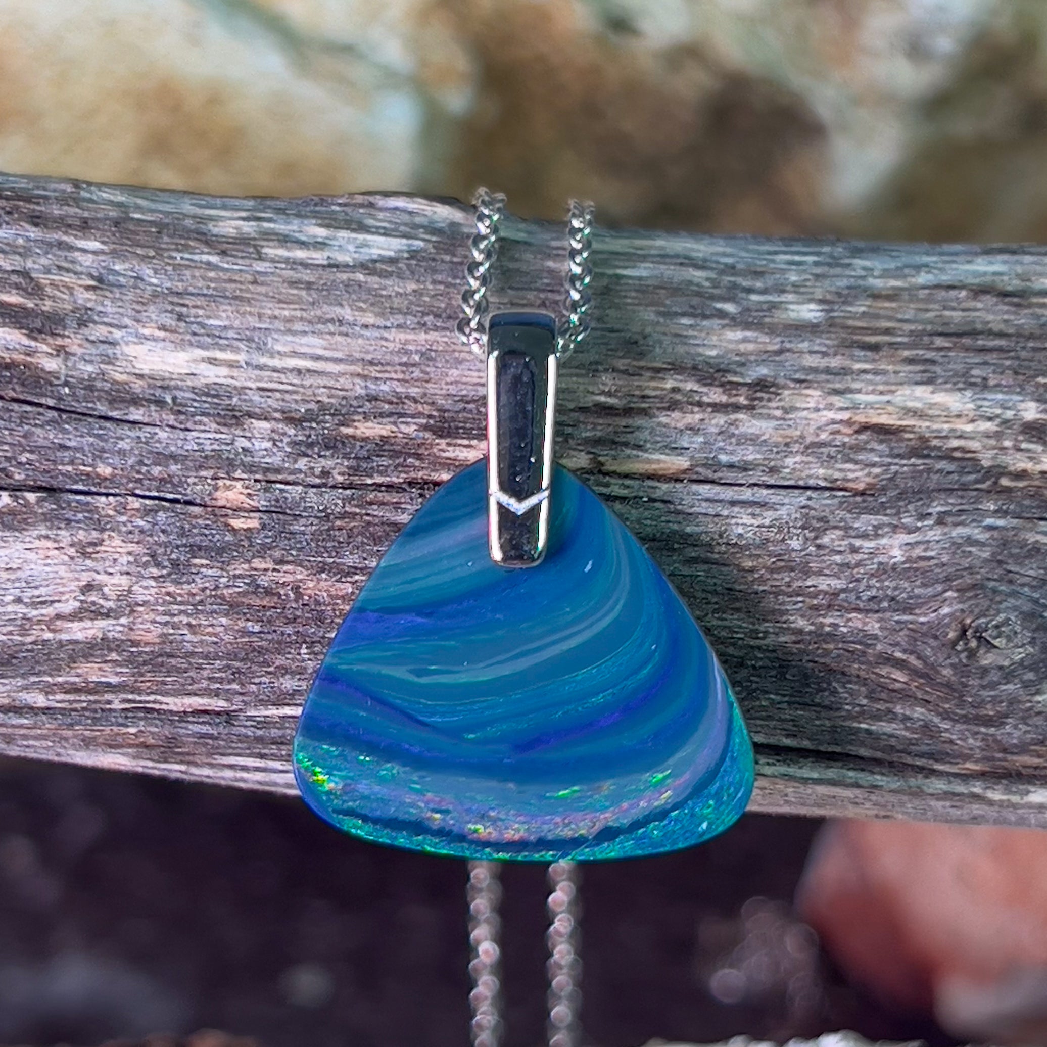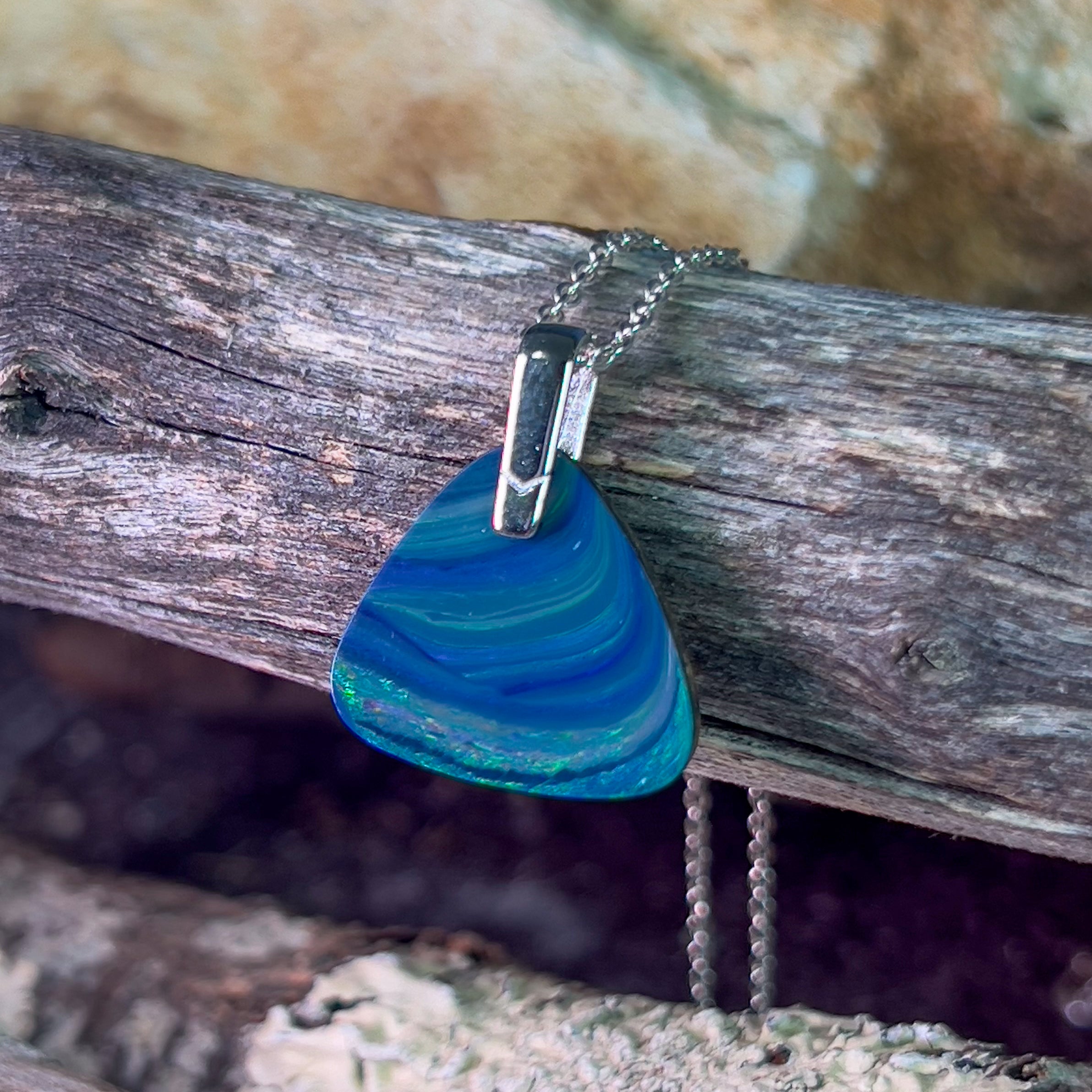 One Sterling Silver Opal pendant bezel set Wide Fan shape