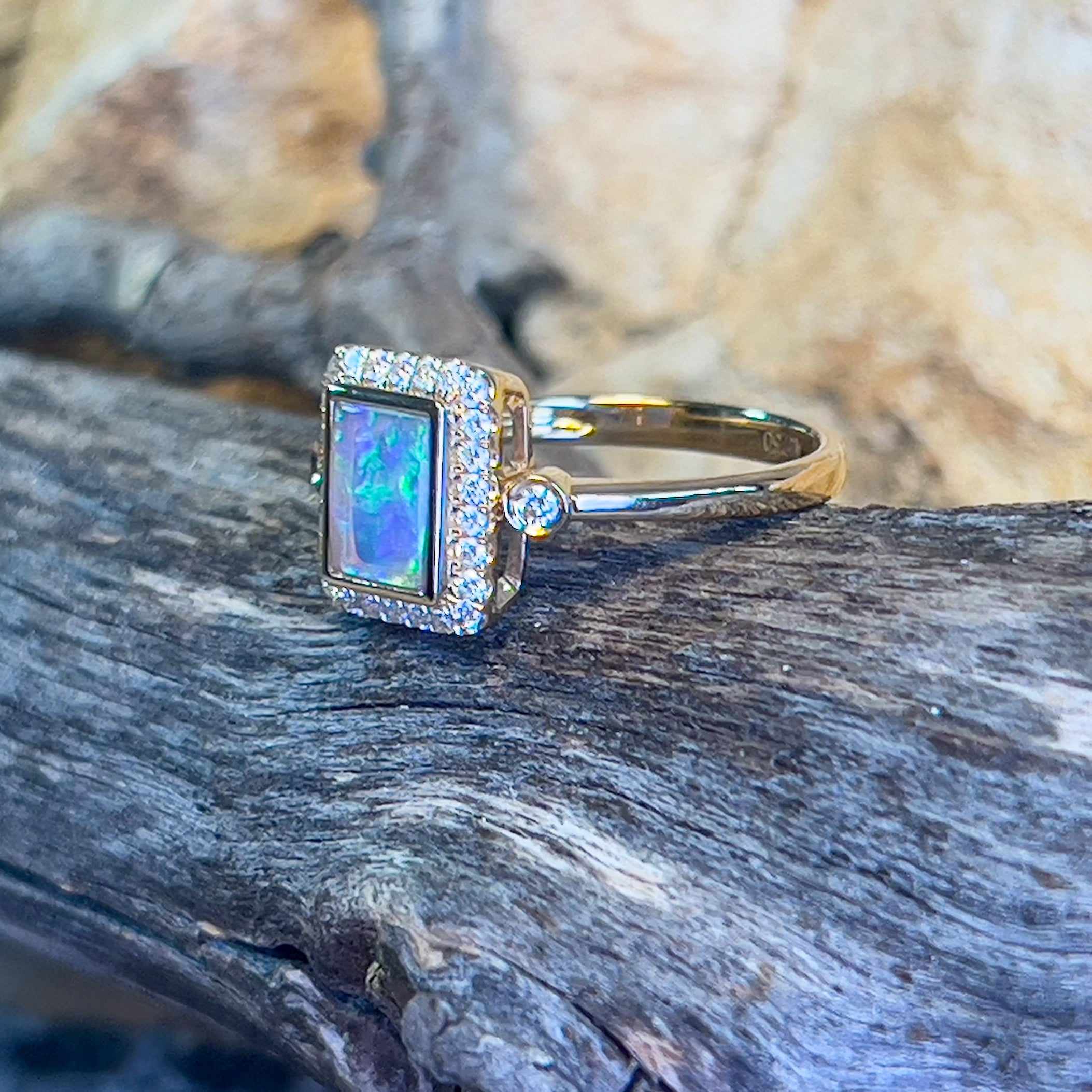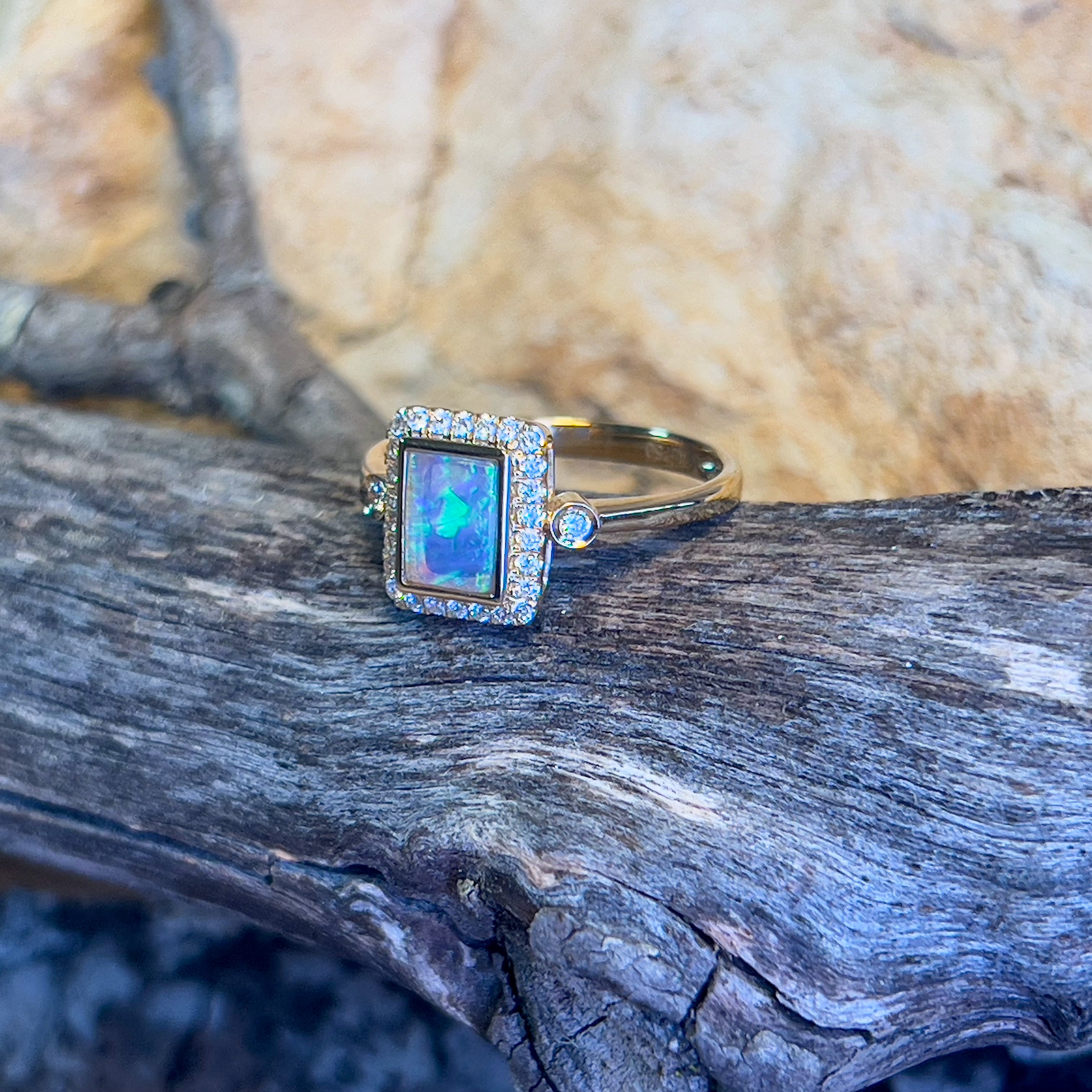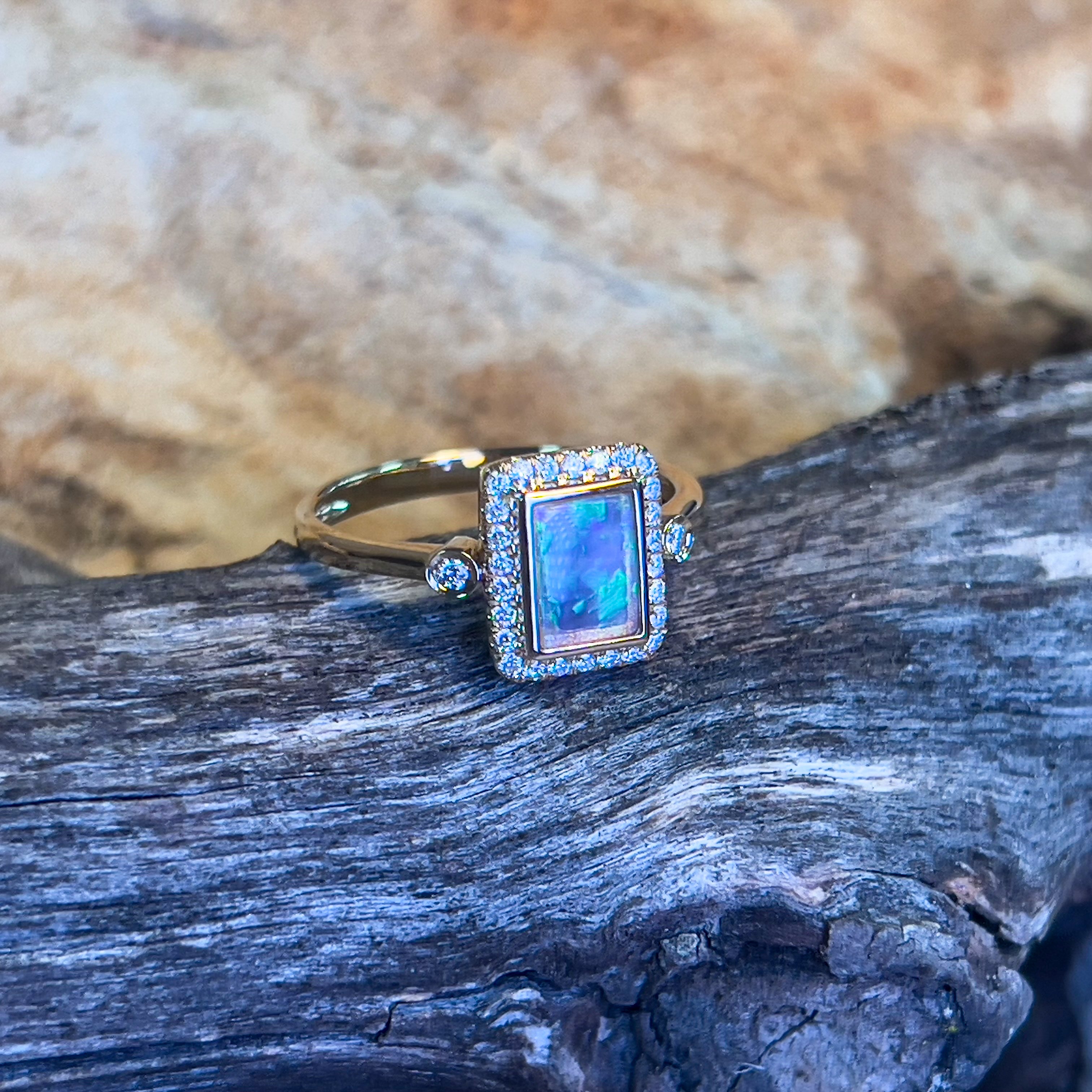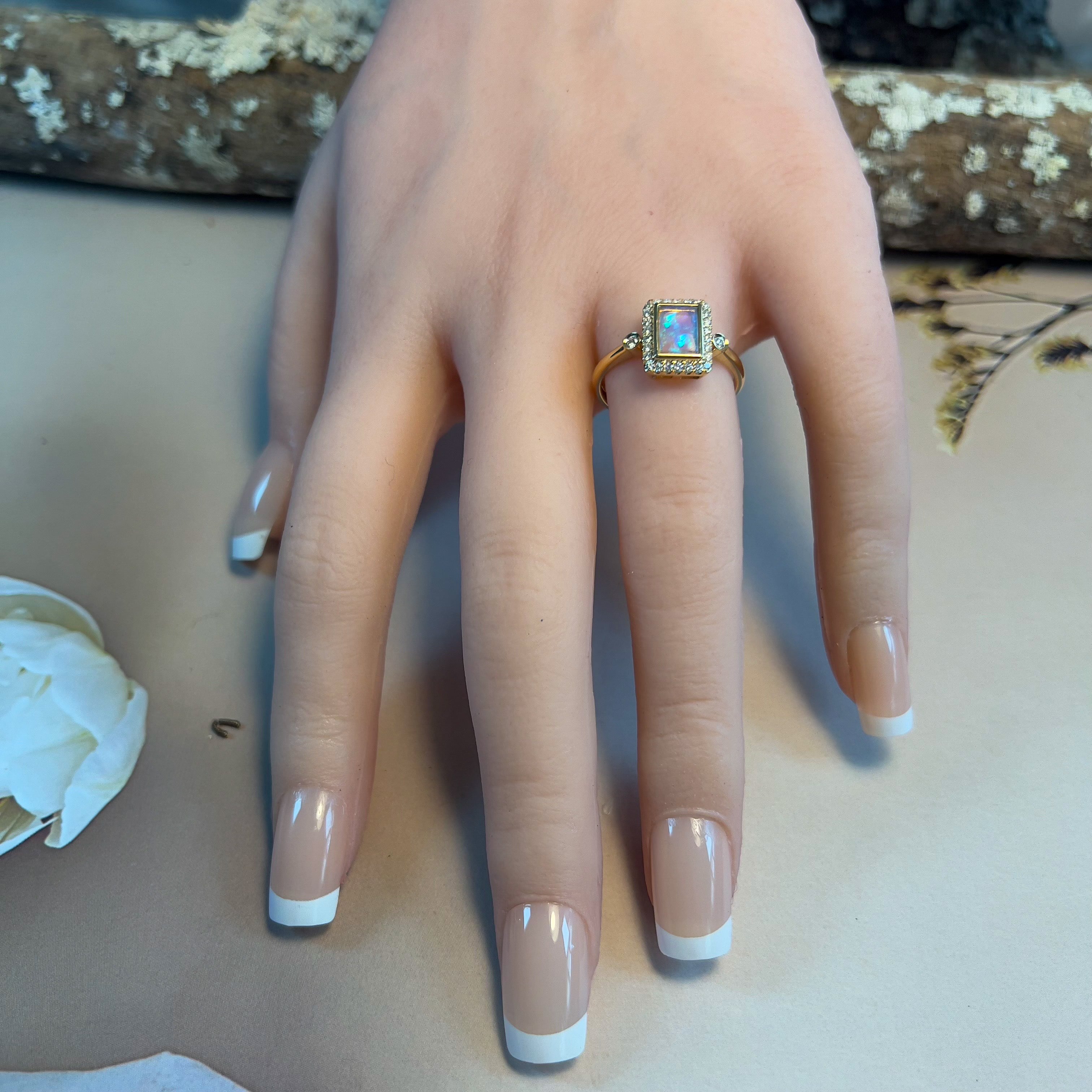 18kt Yellow Gold 0.43ct Opal engagement ring with diamonds
