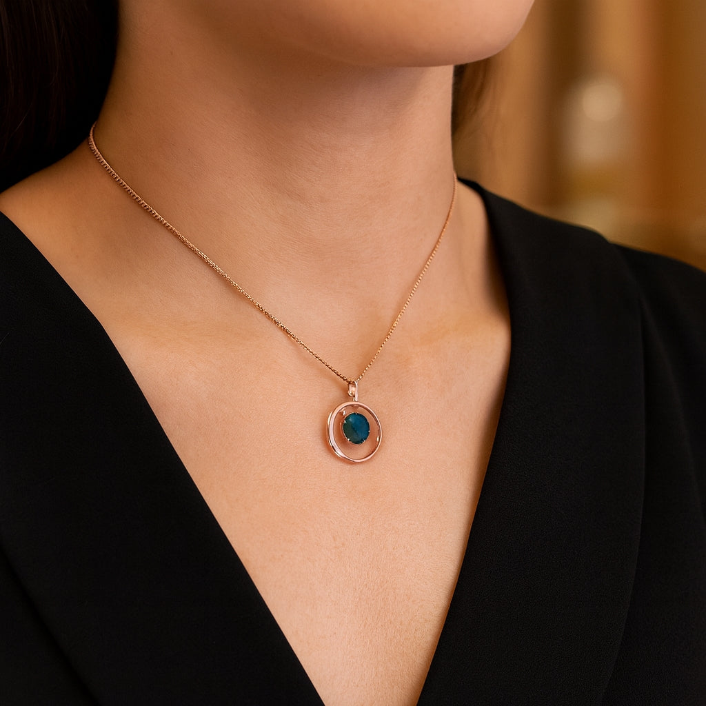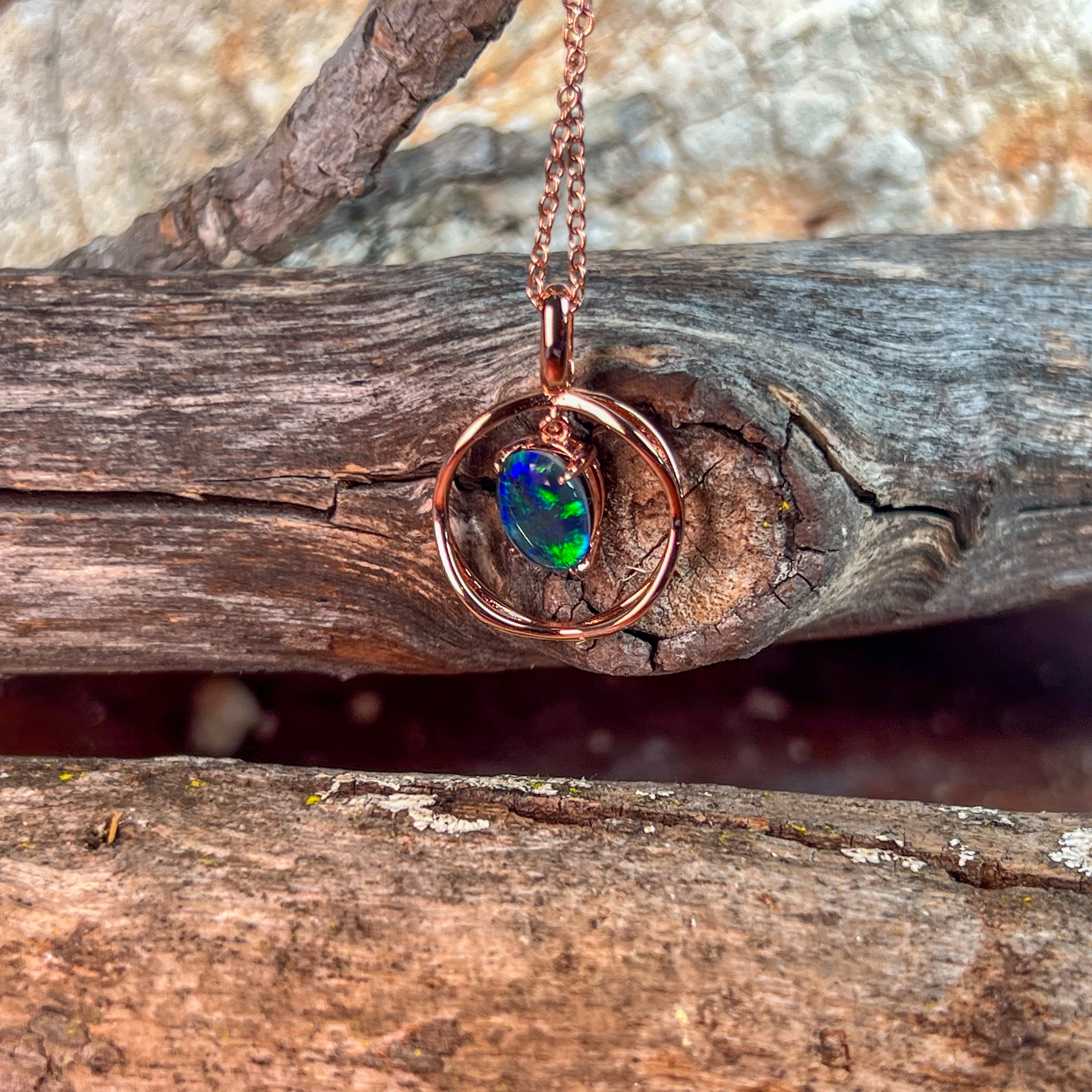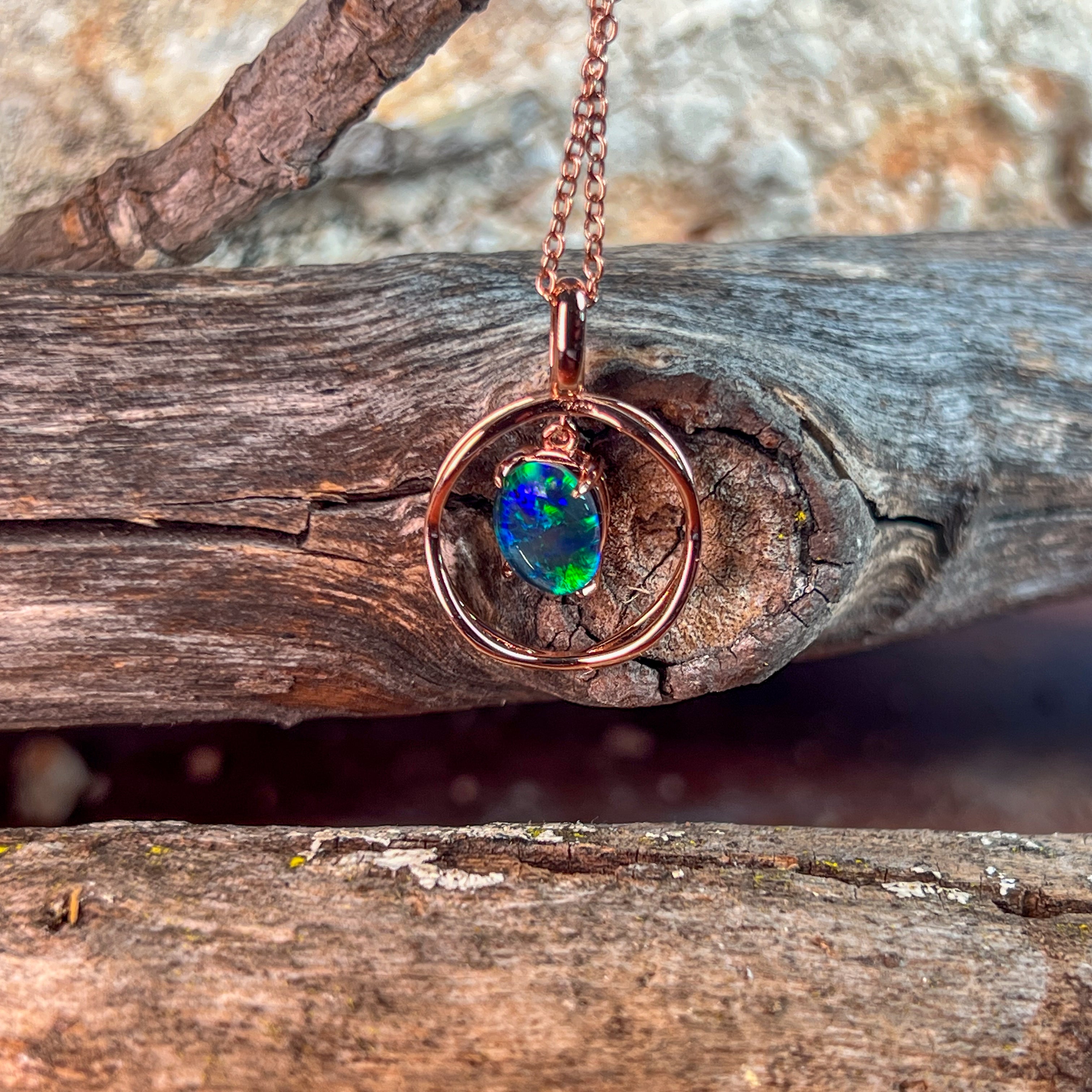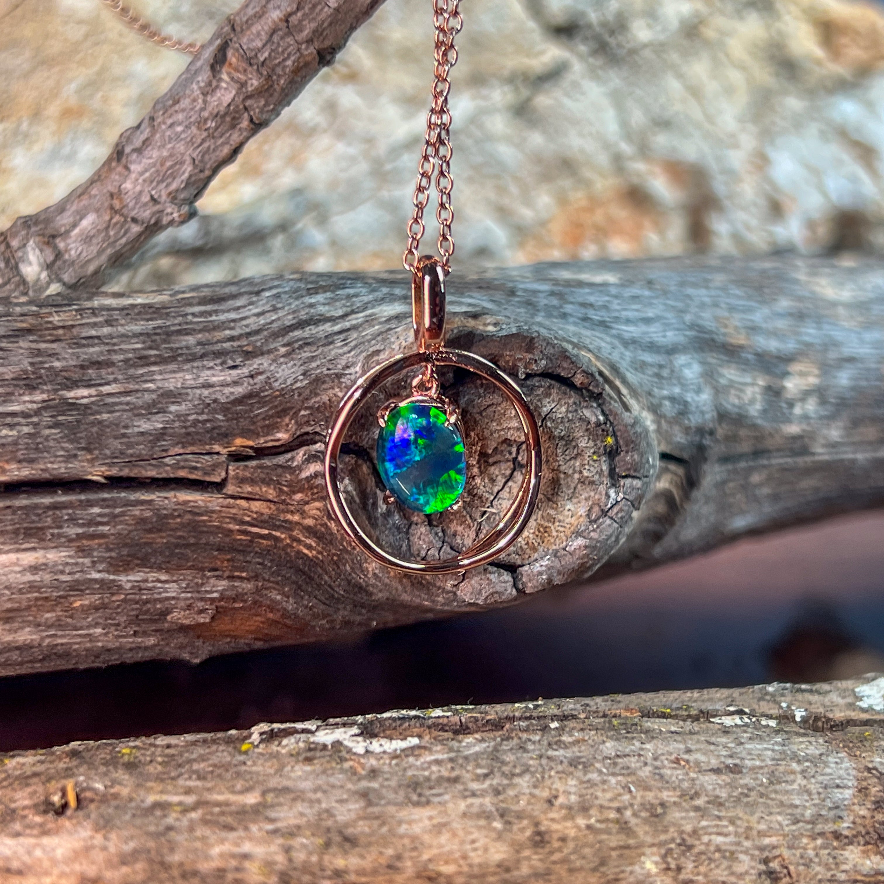 Rose Gold Plated Circle design dangling 8x6mm Opal triplet pendant