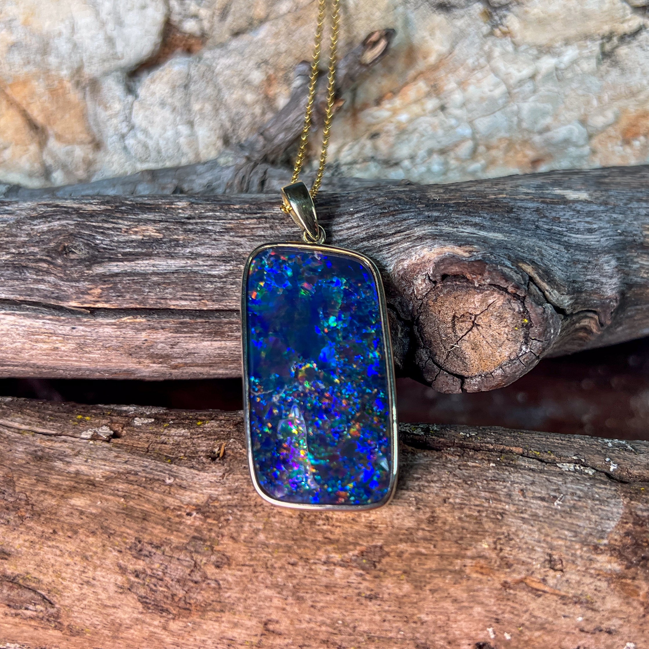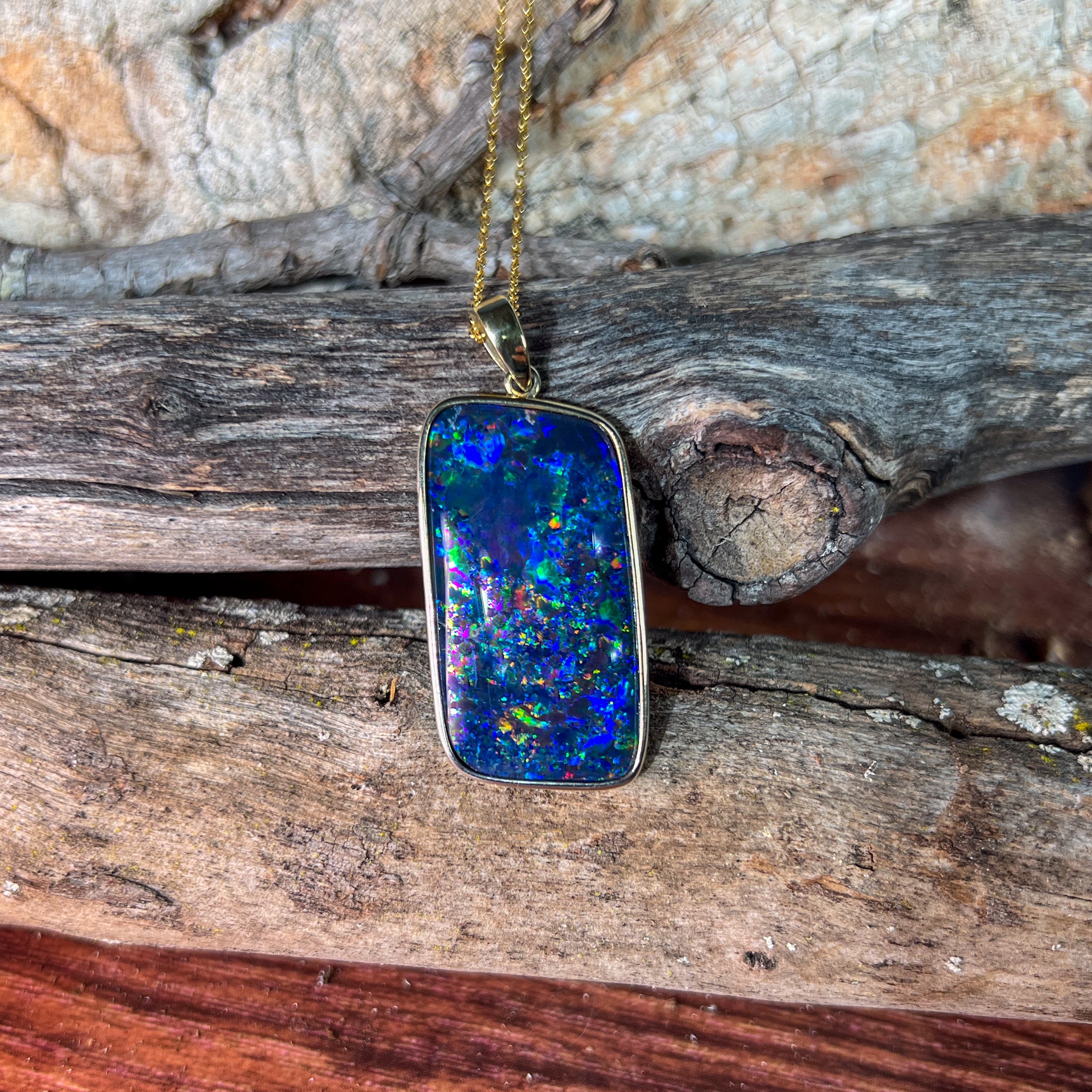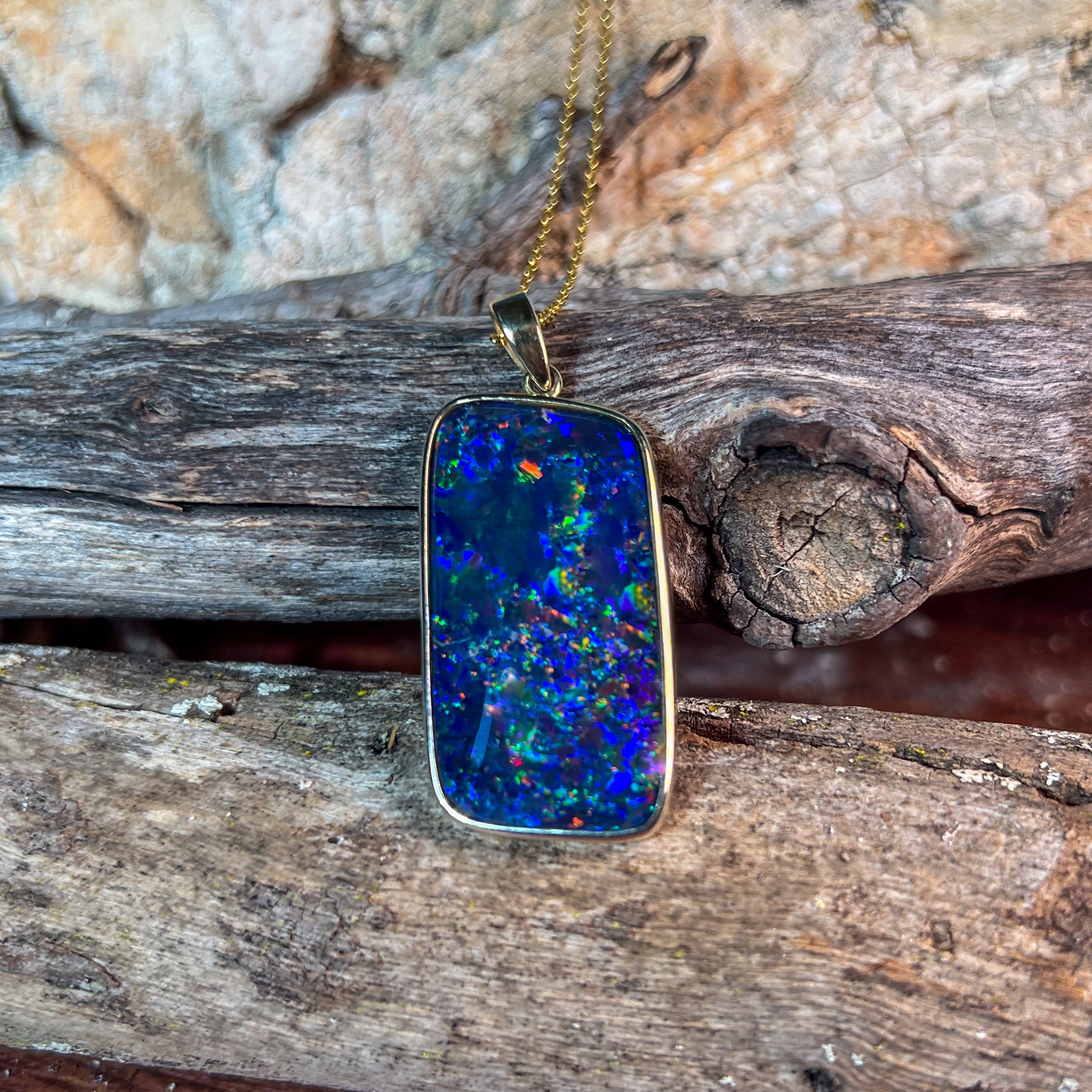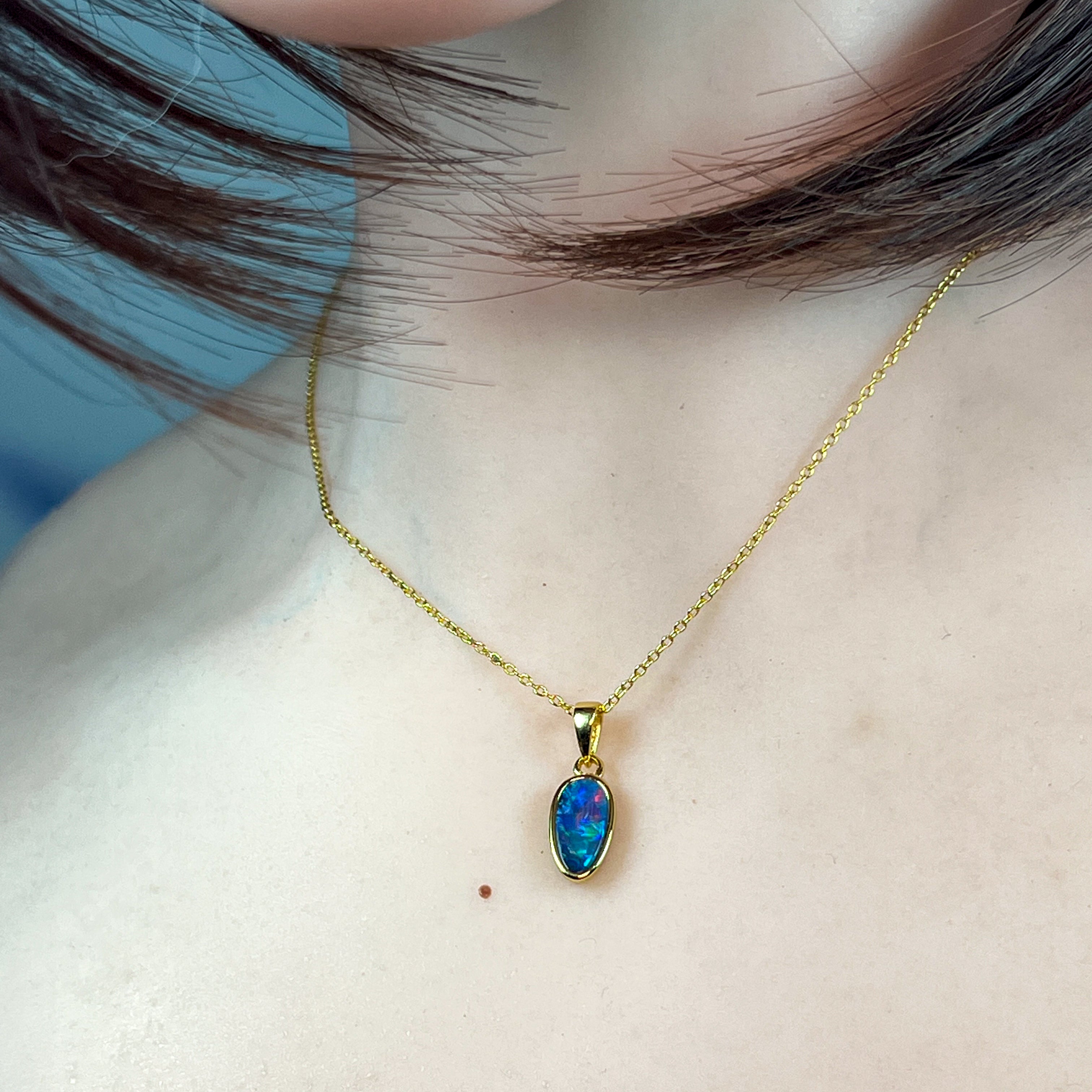 Gold Plated Sterling Silver Long shape Opal doublet pendant