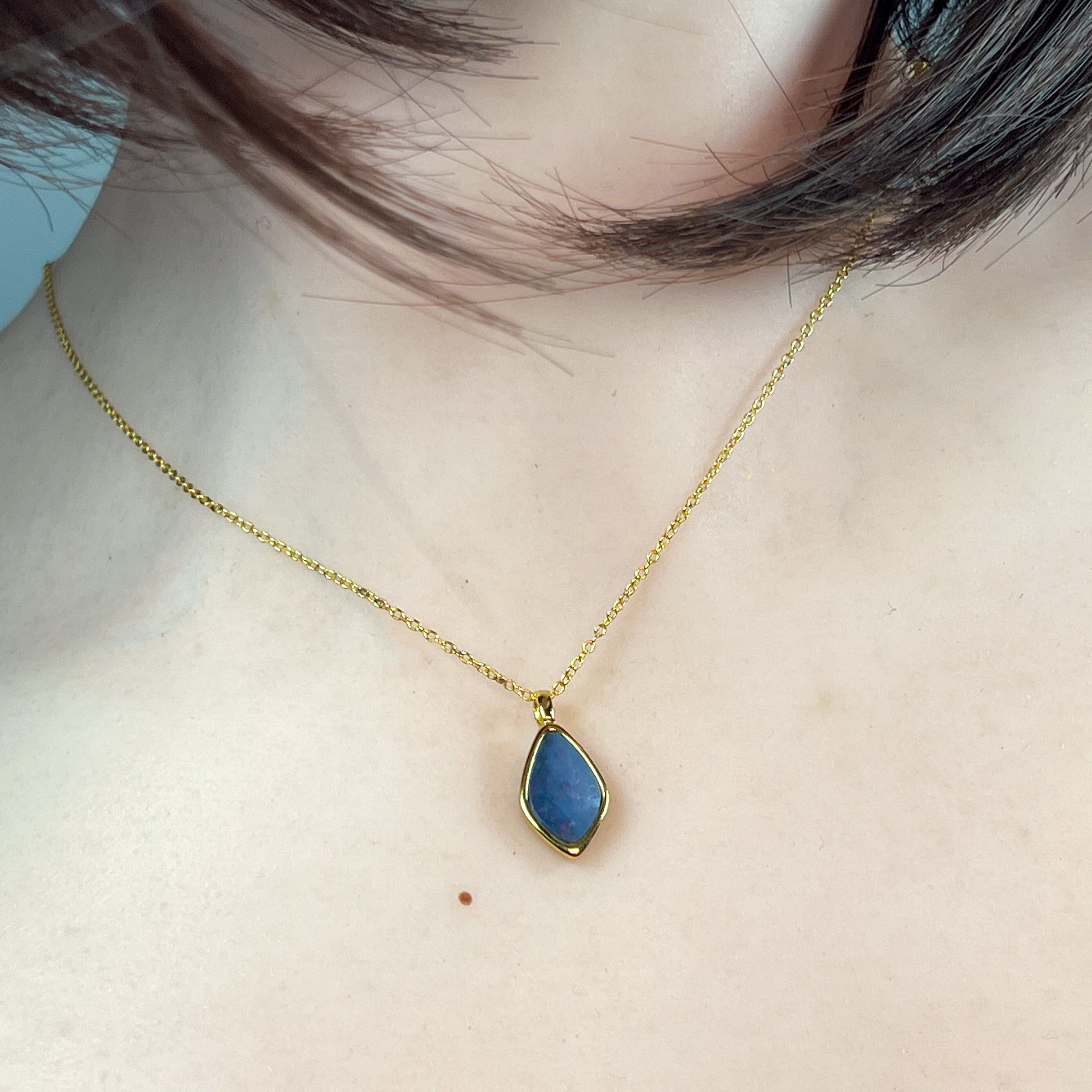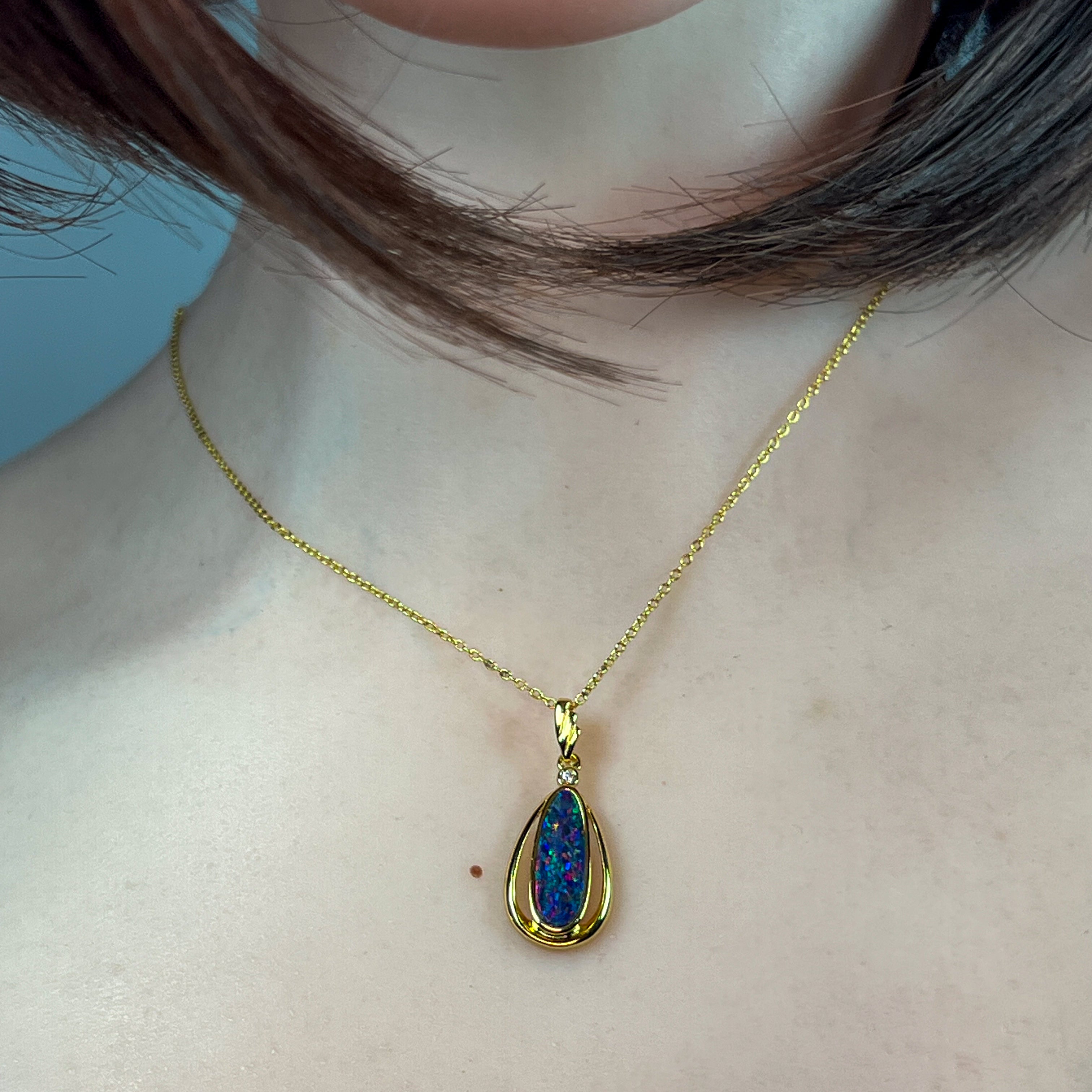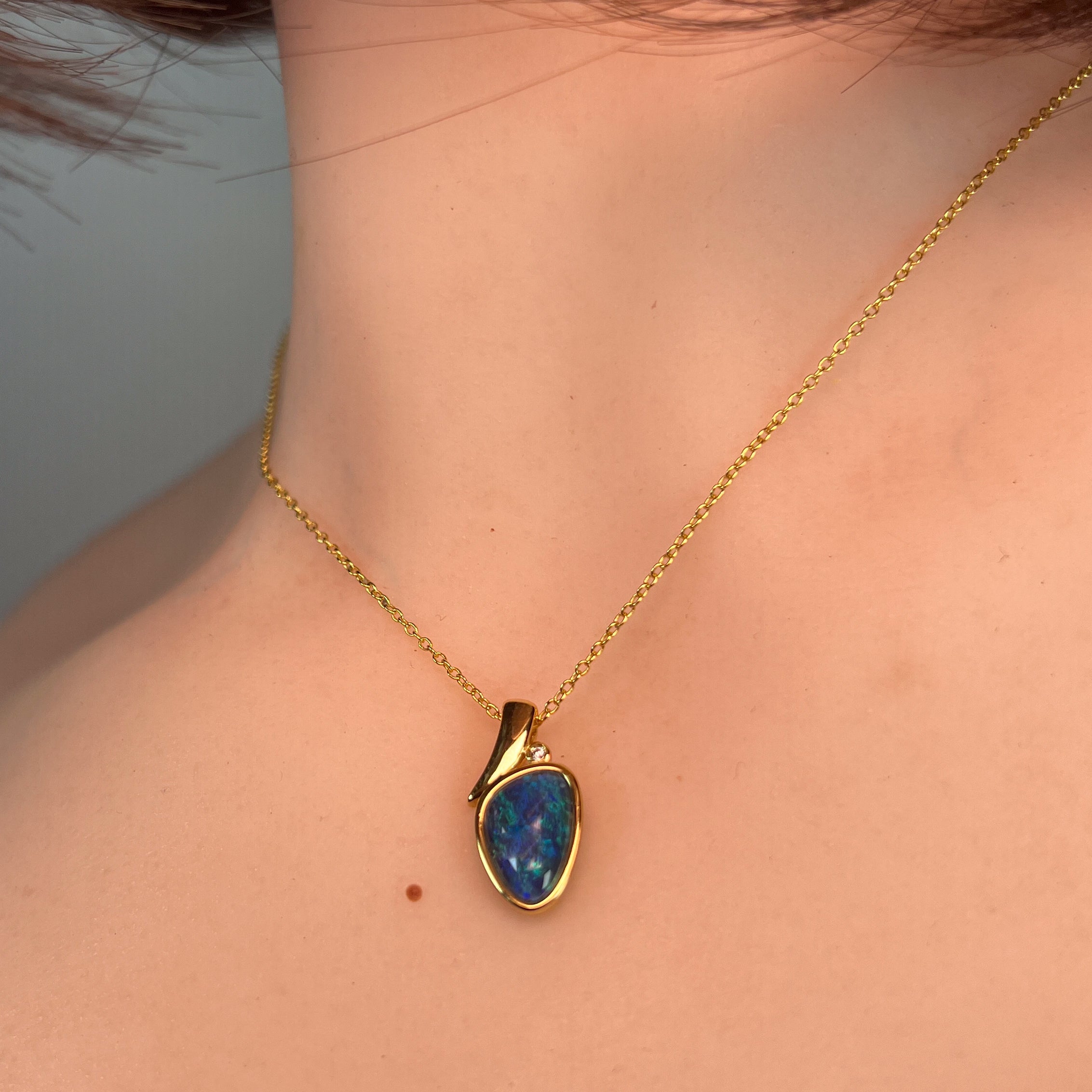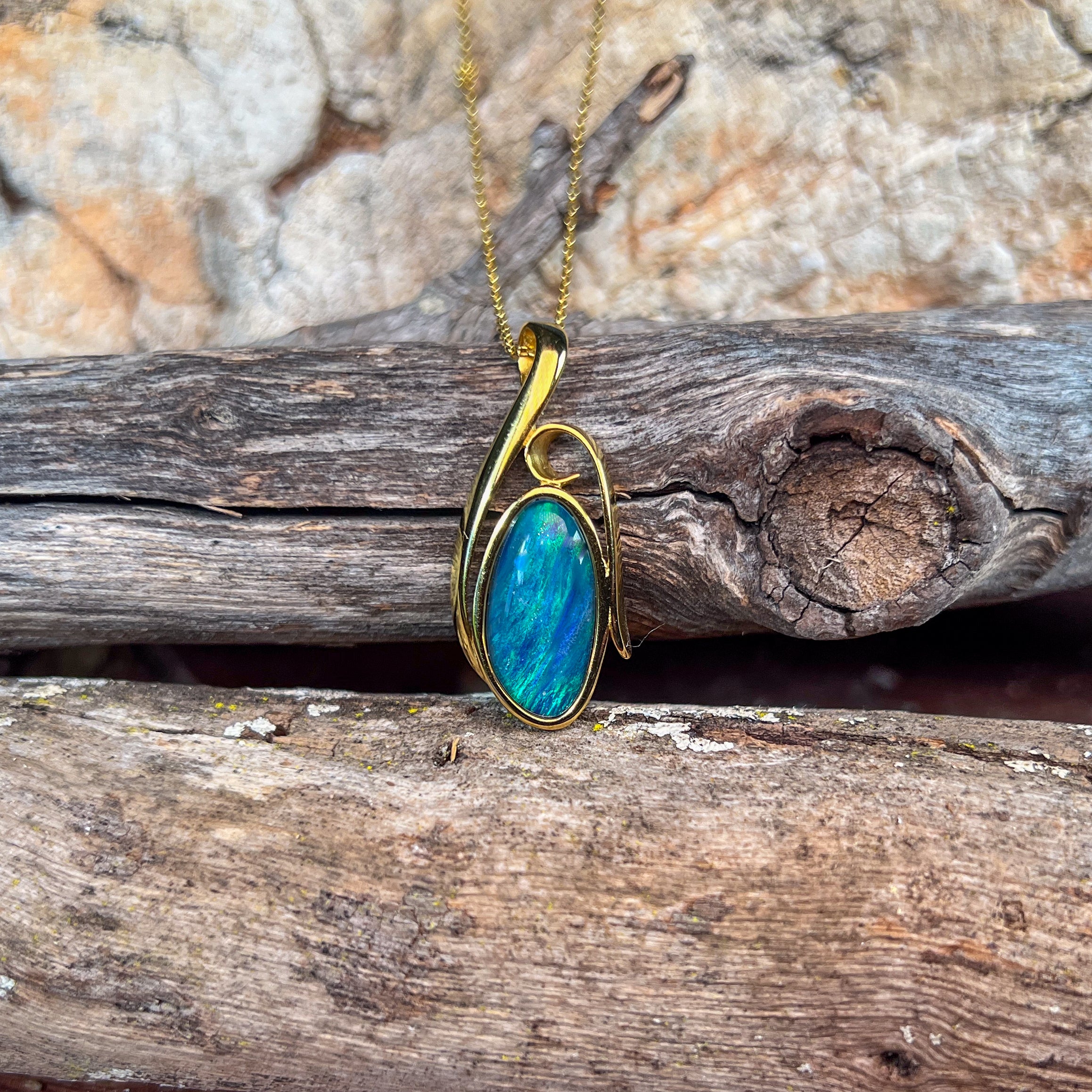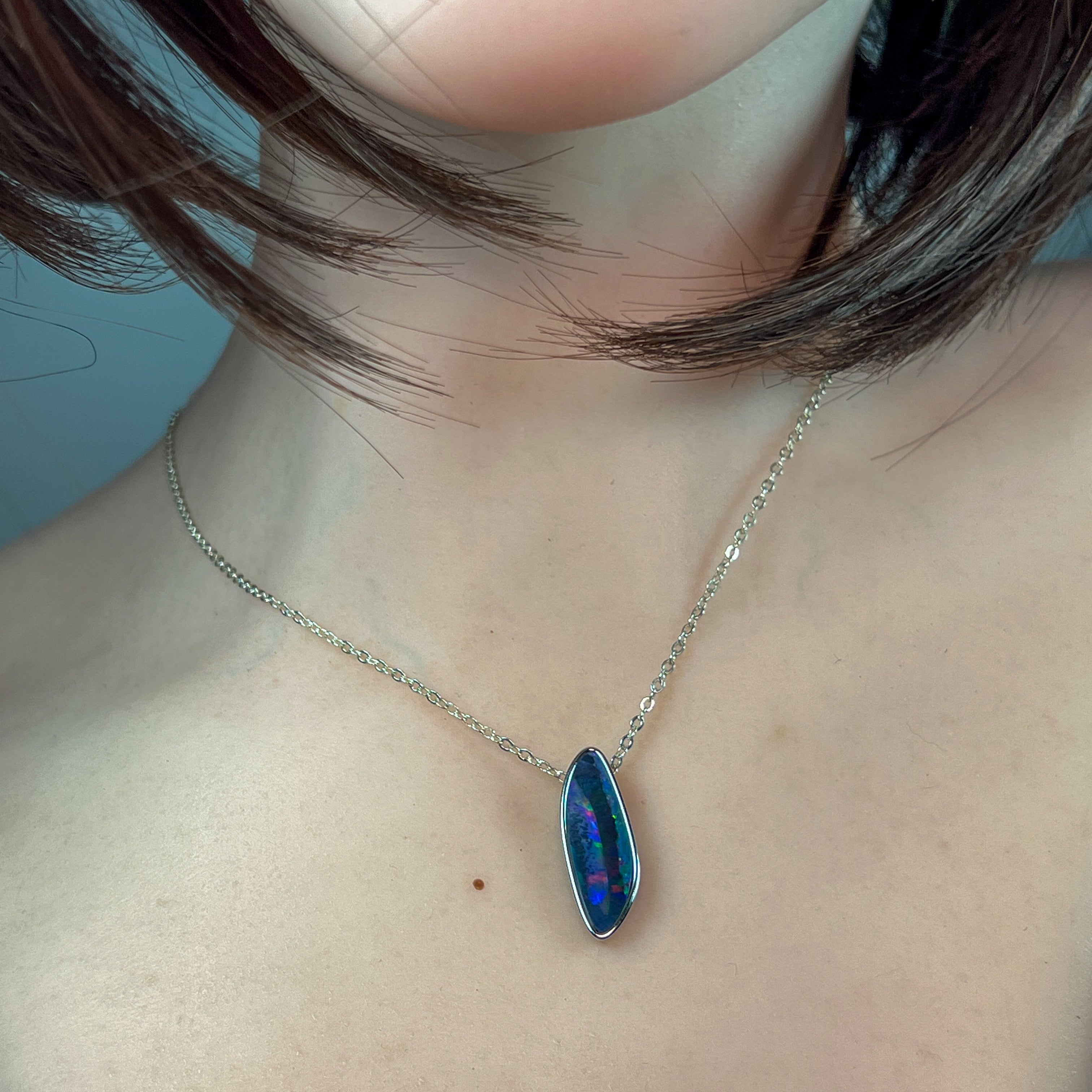 Gold Plated Silver freeform long shaped Opal doublet pendant