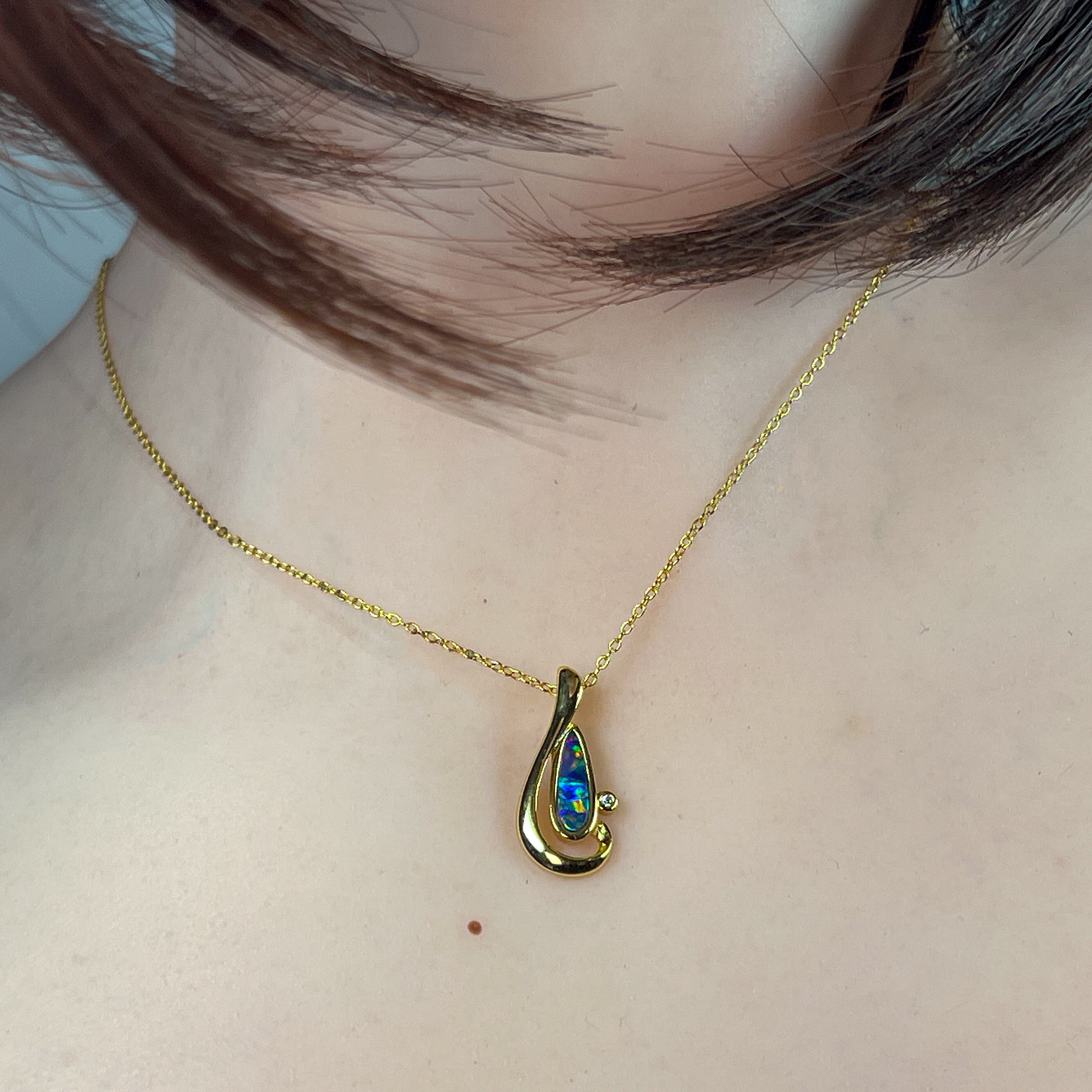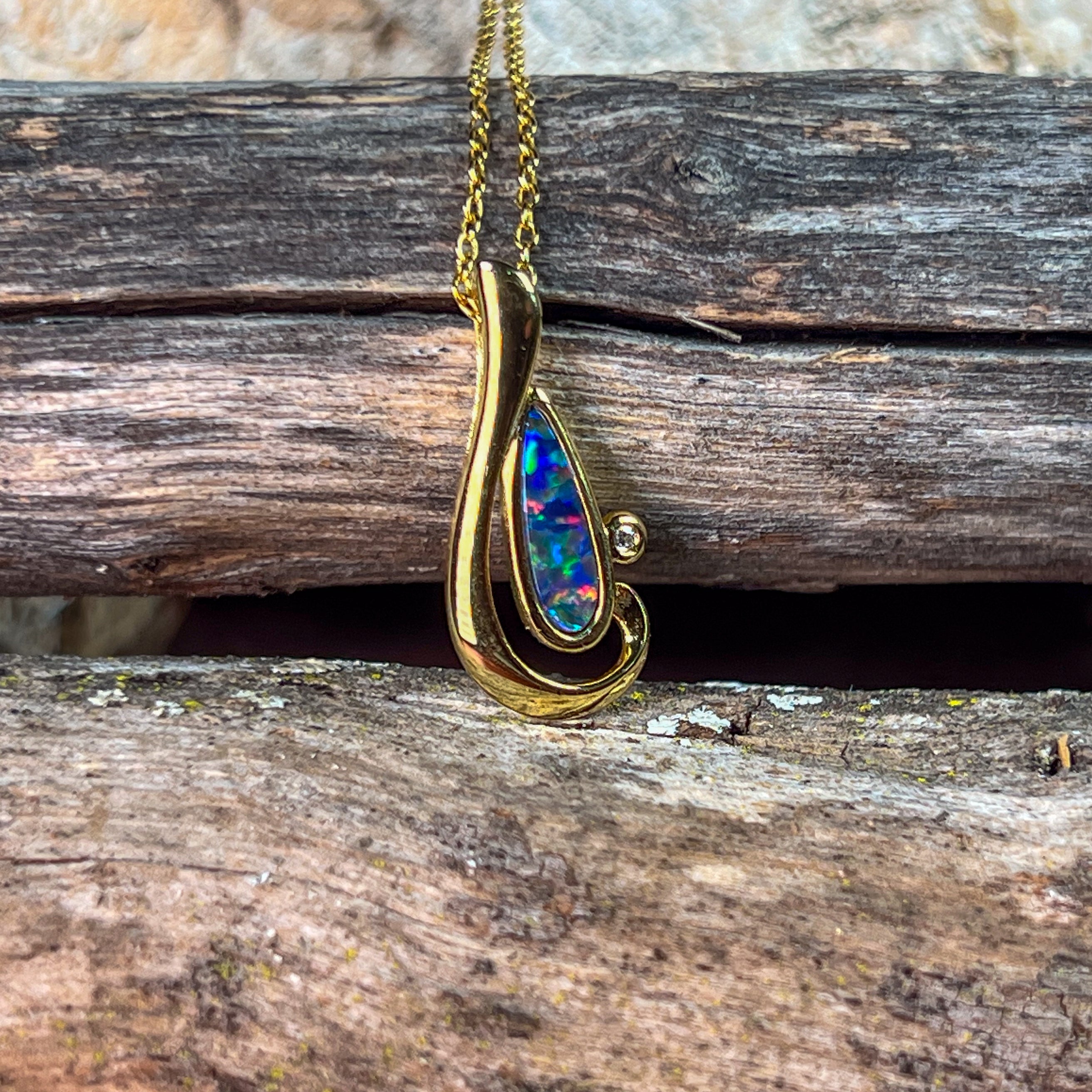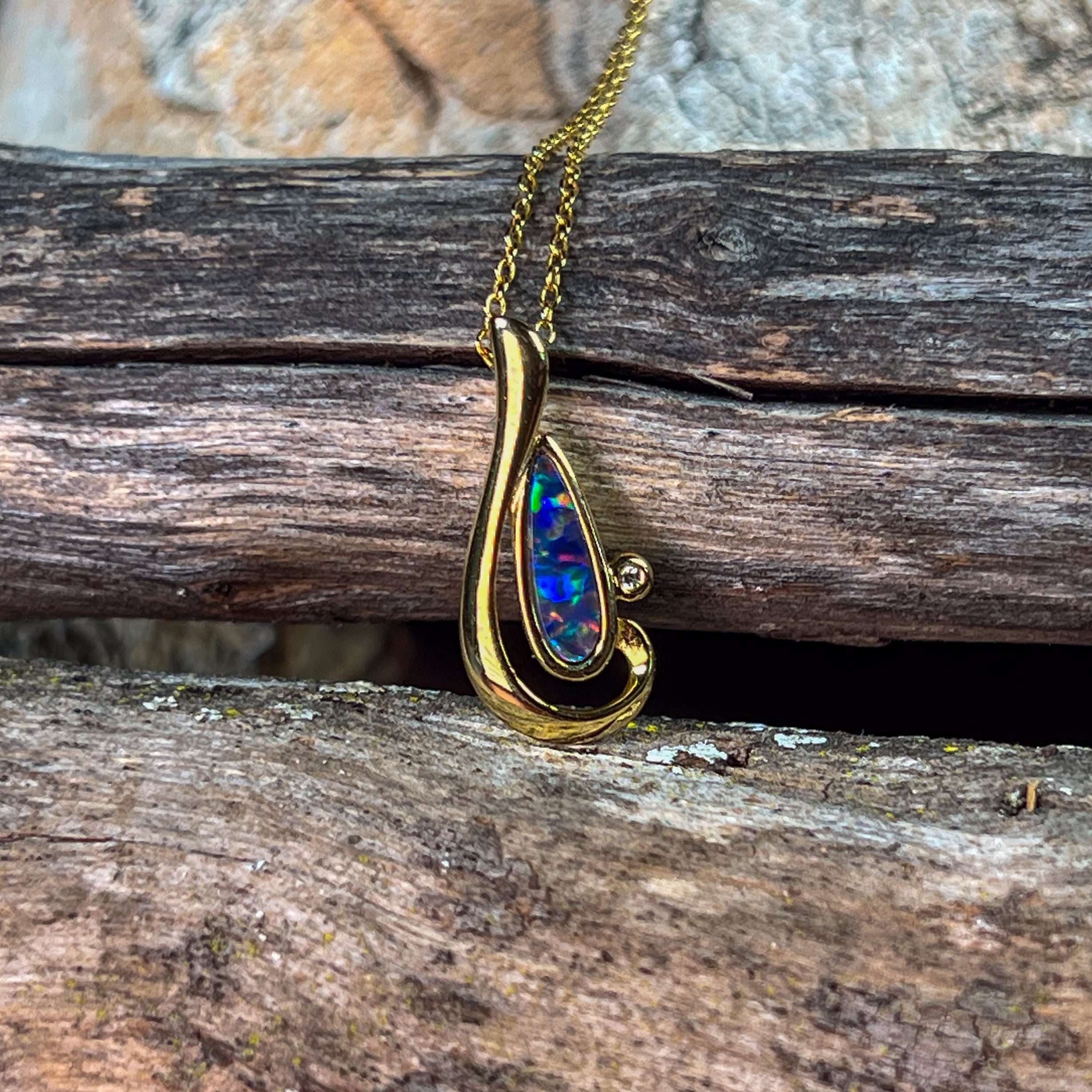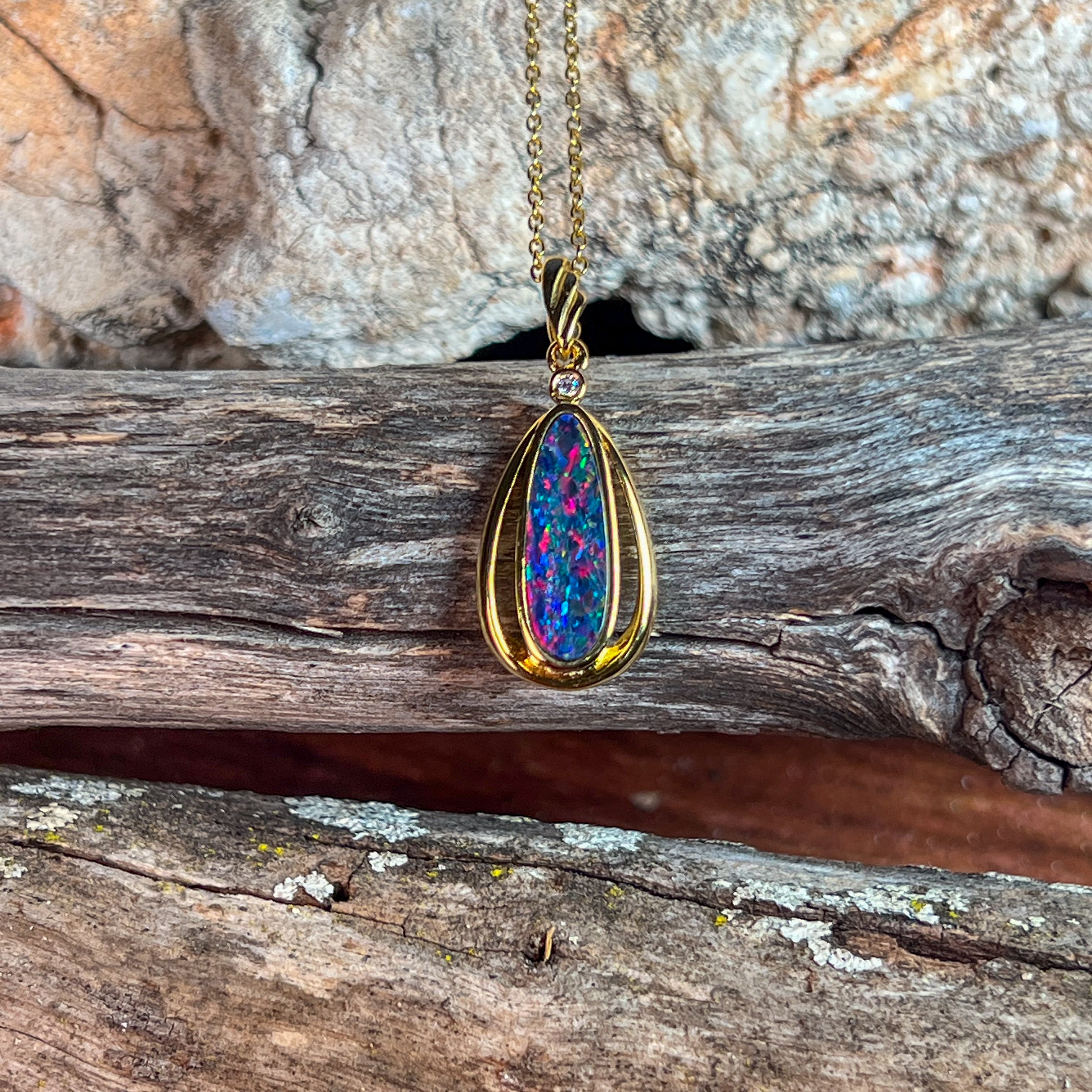 Gold Plated Silver freeform long shaped Opal doublet pendant