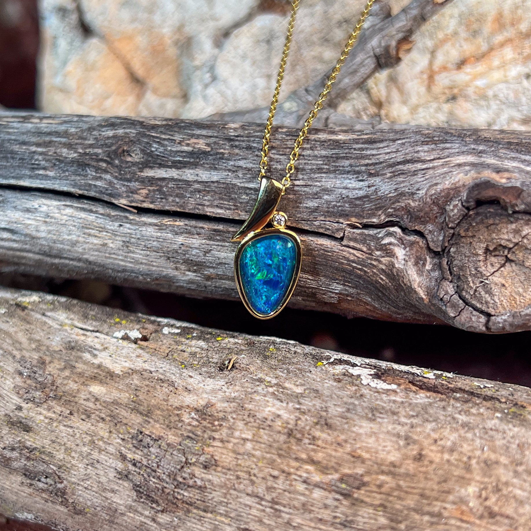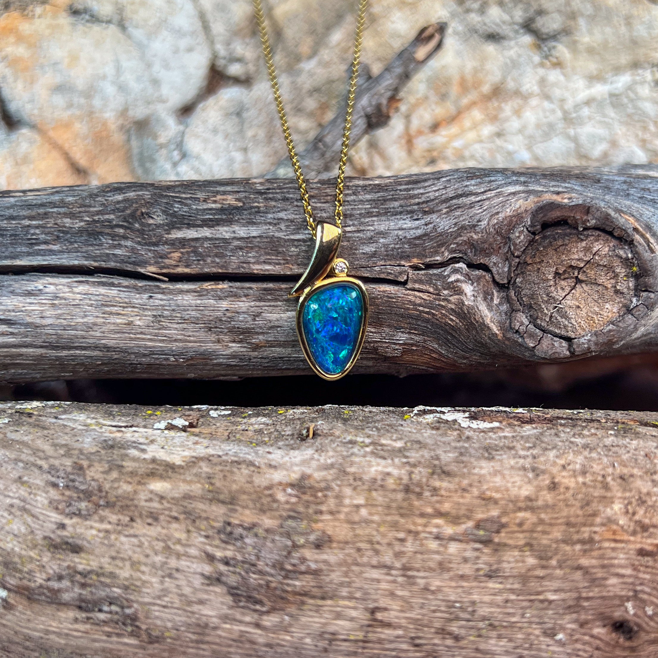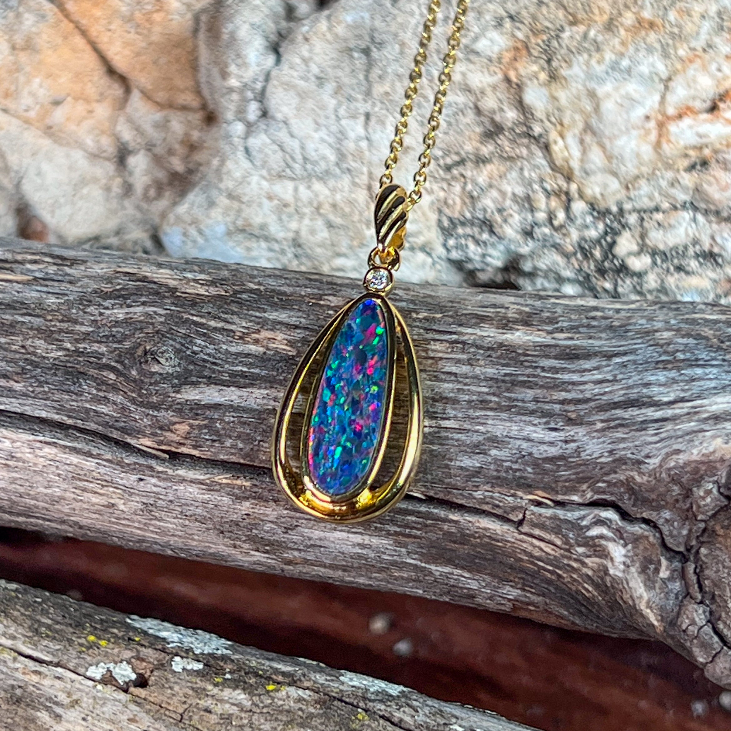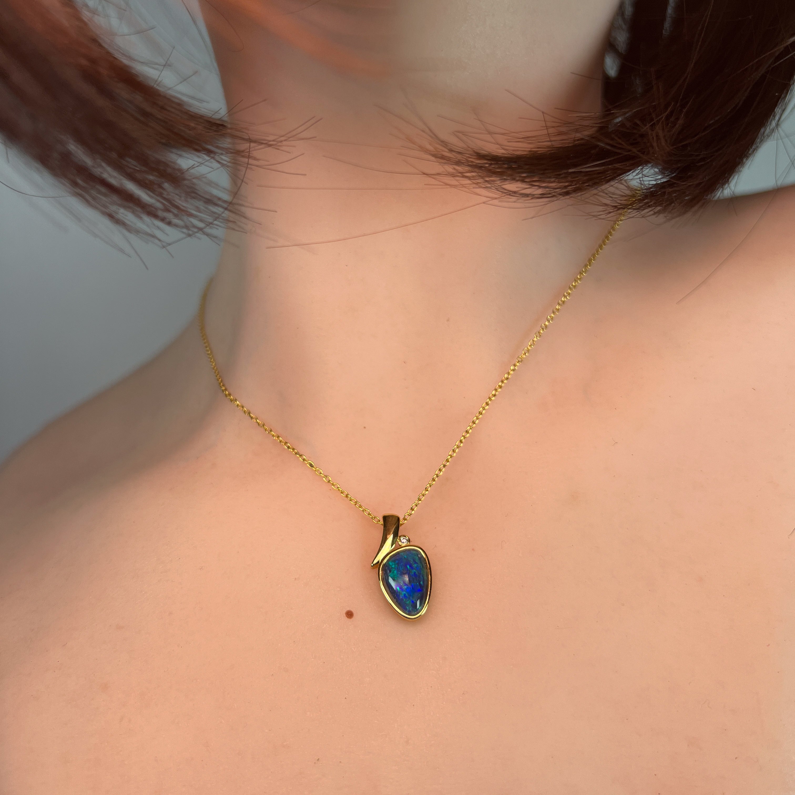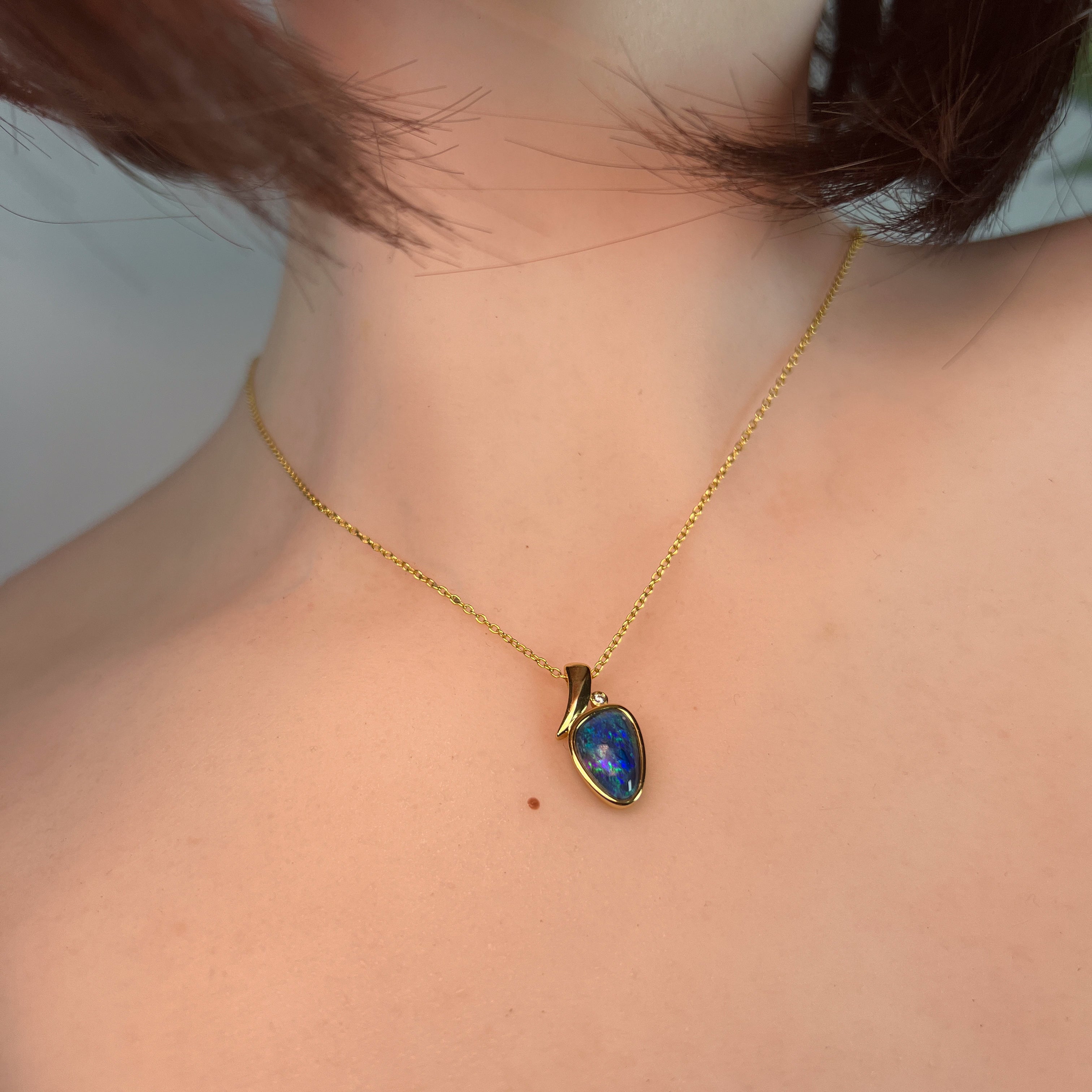 Gold Plated Silver freeform long shaped Opal doublet pendant