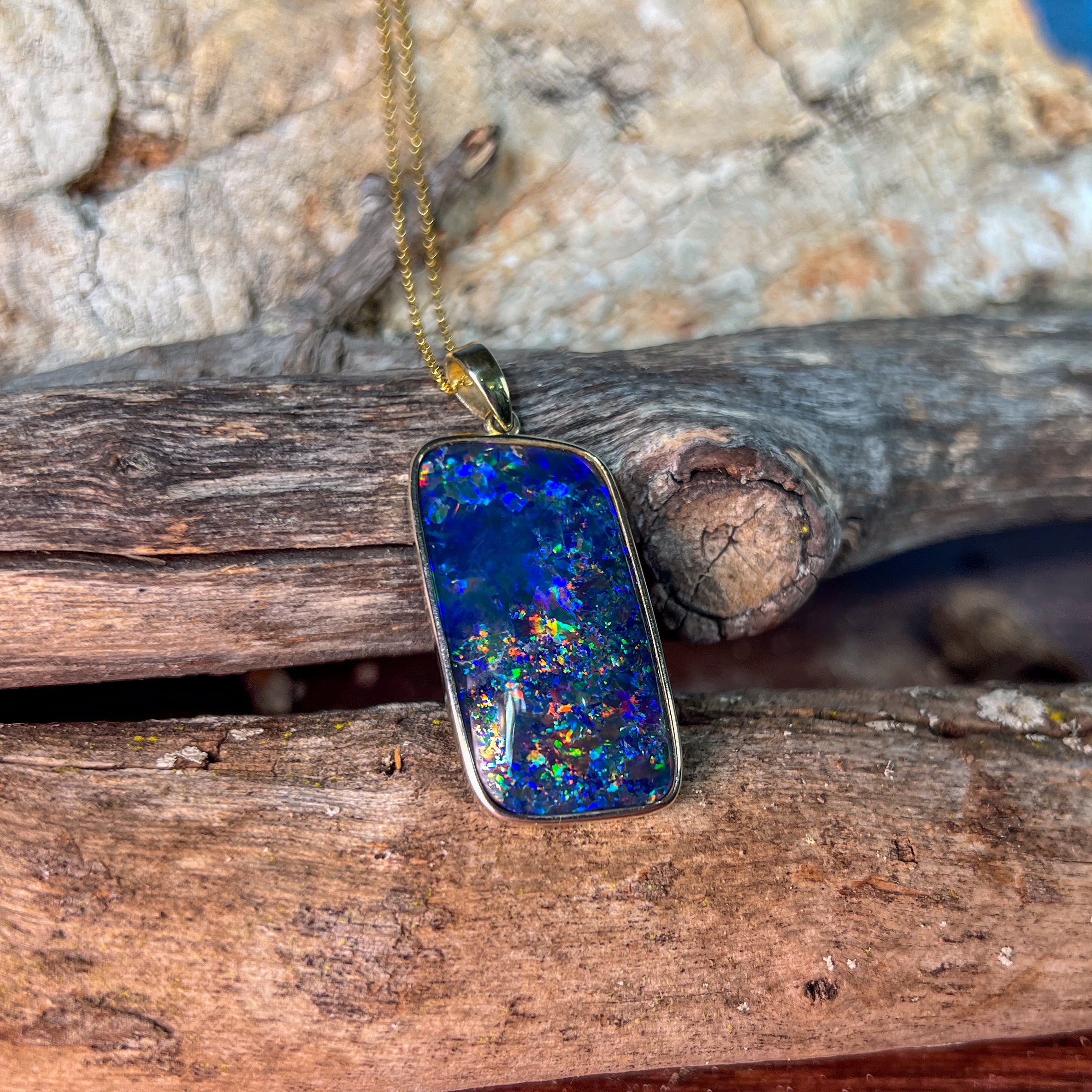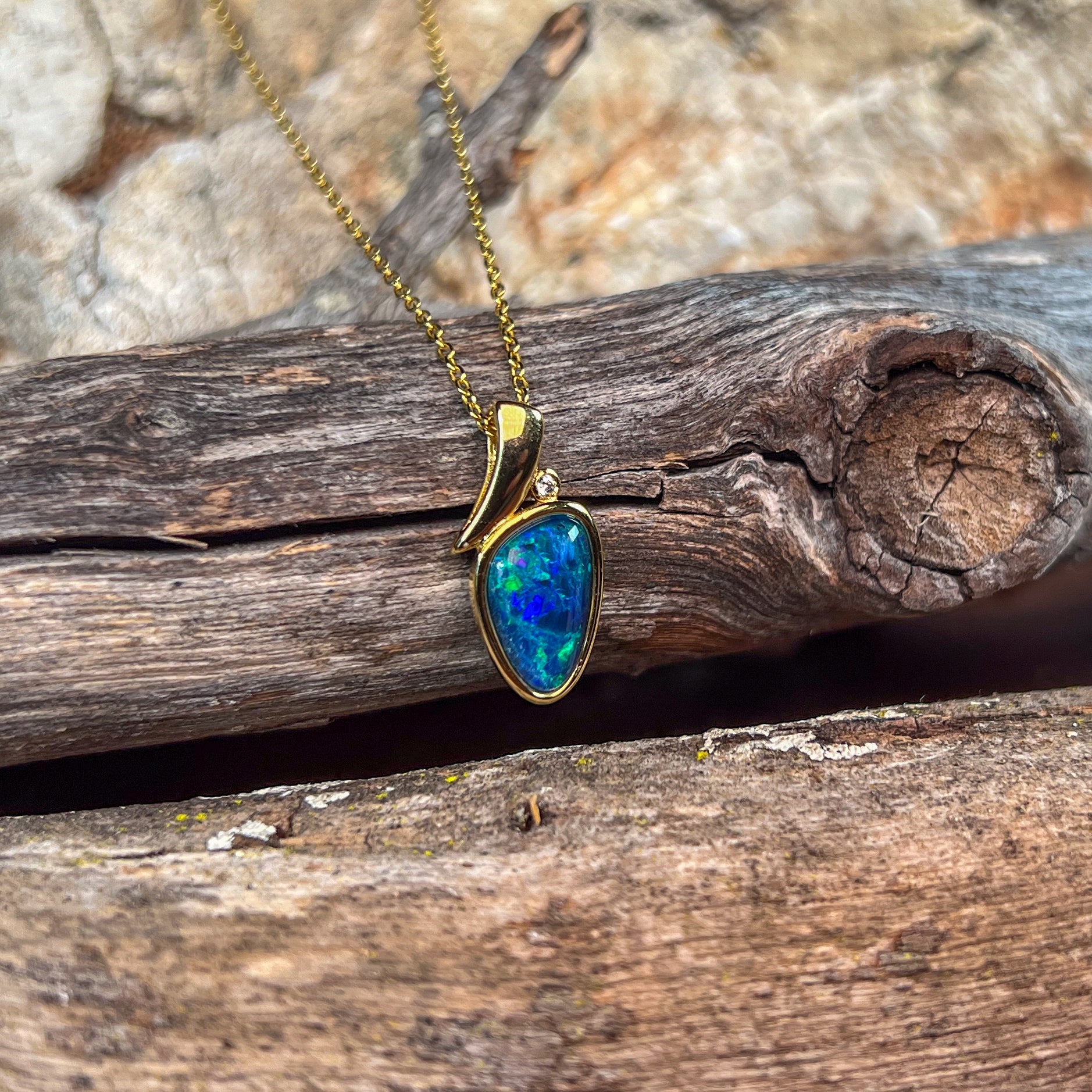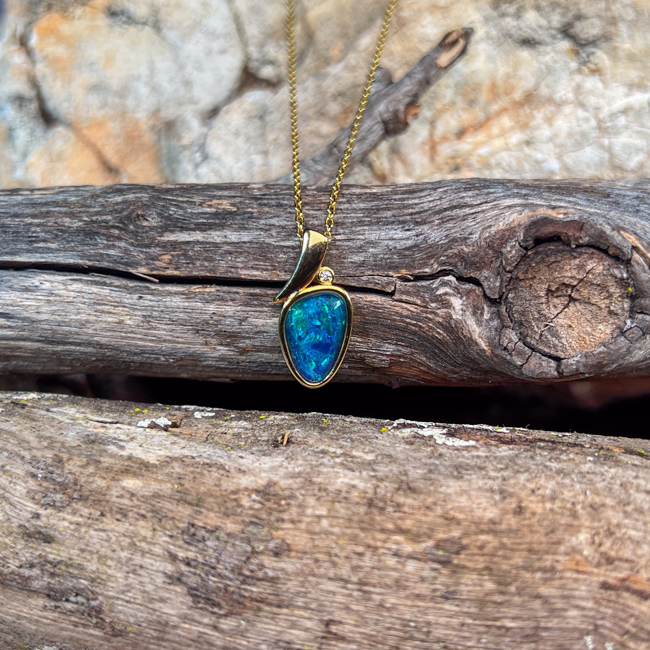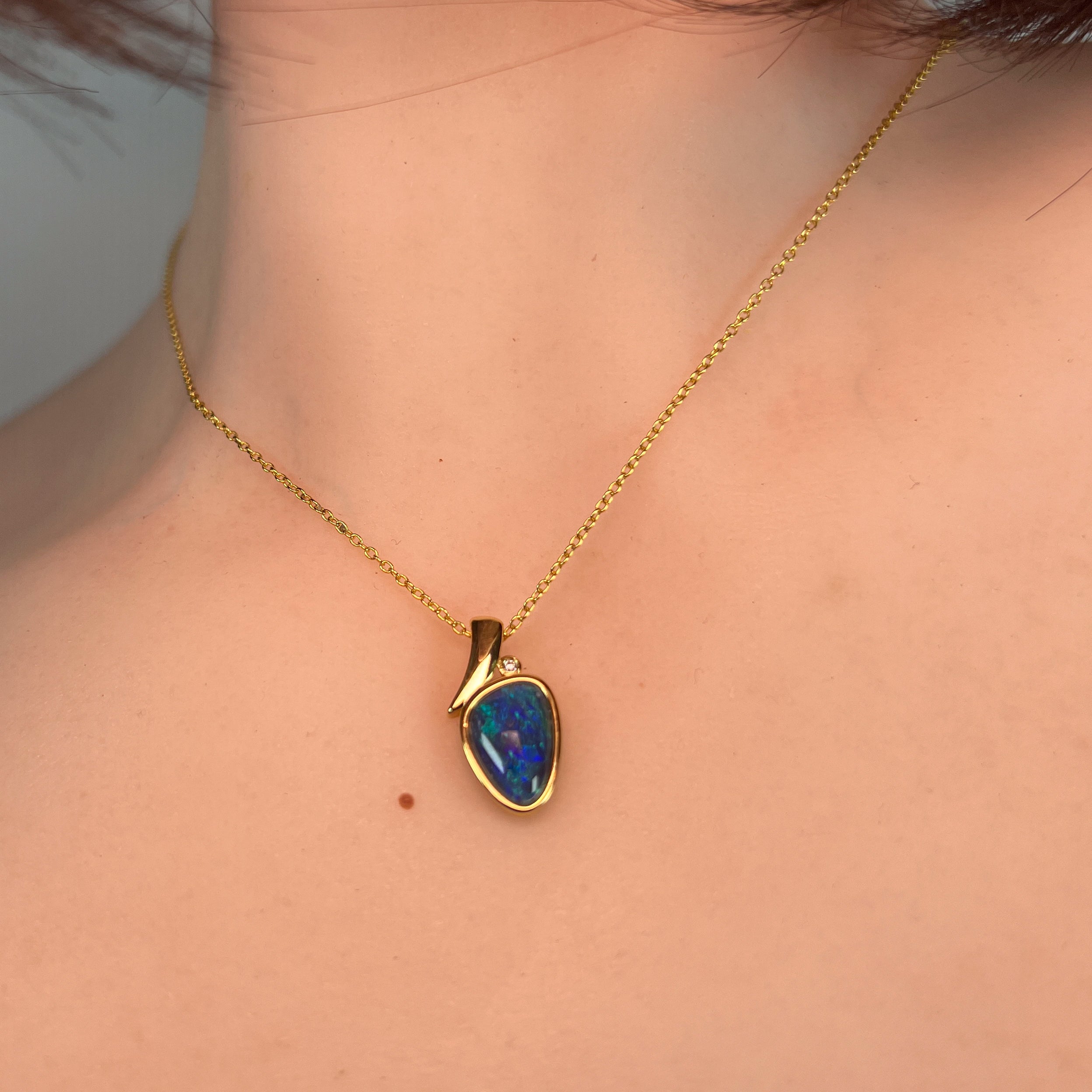 Gold Plated Silver freeform long shaped Opal doublet pendant