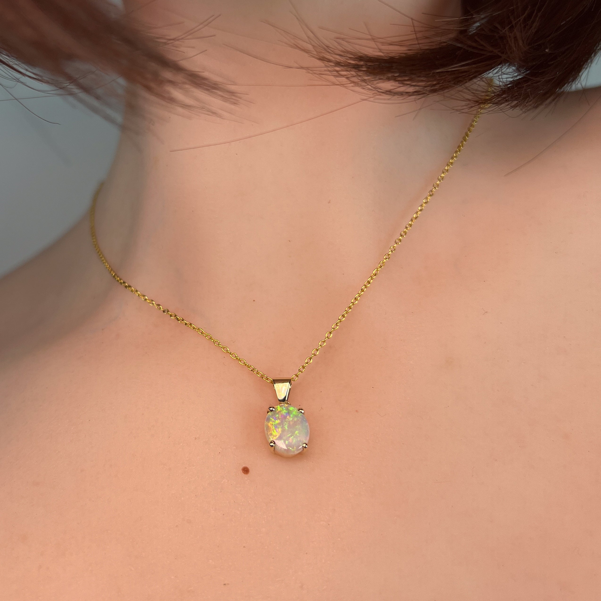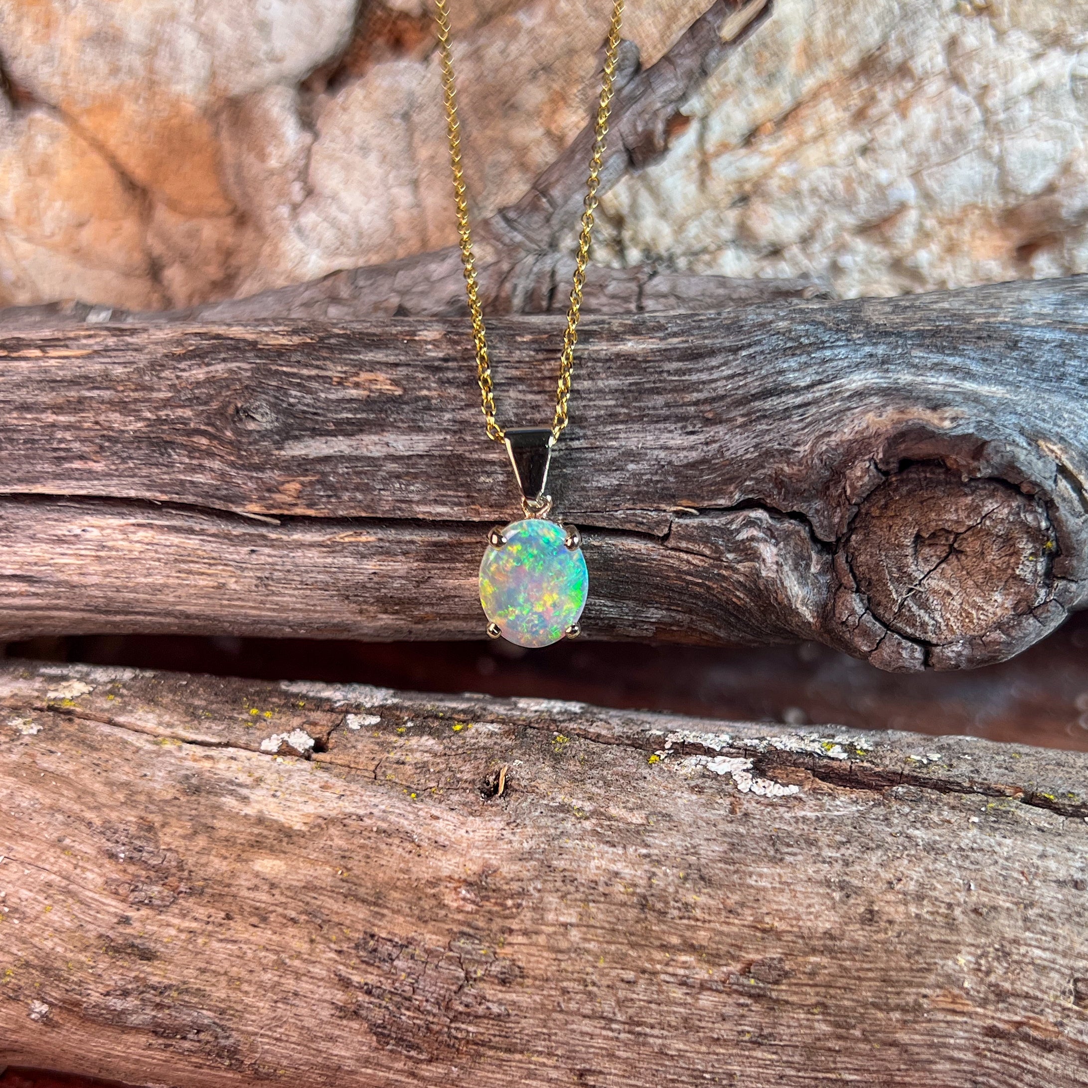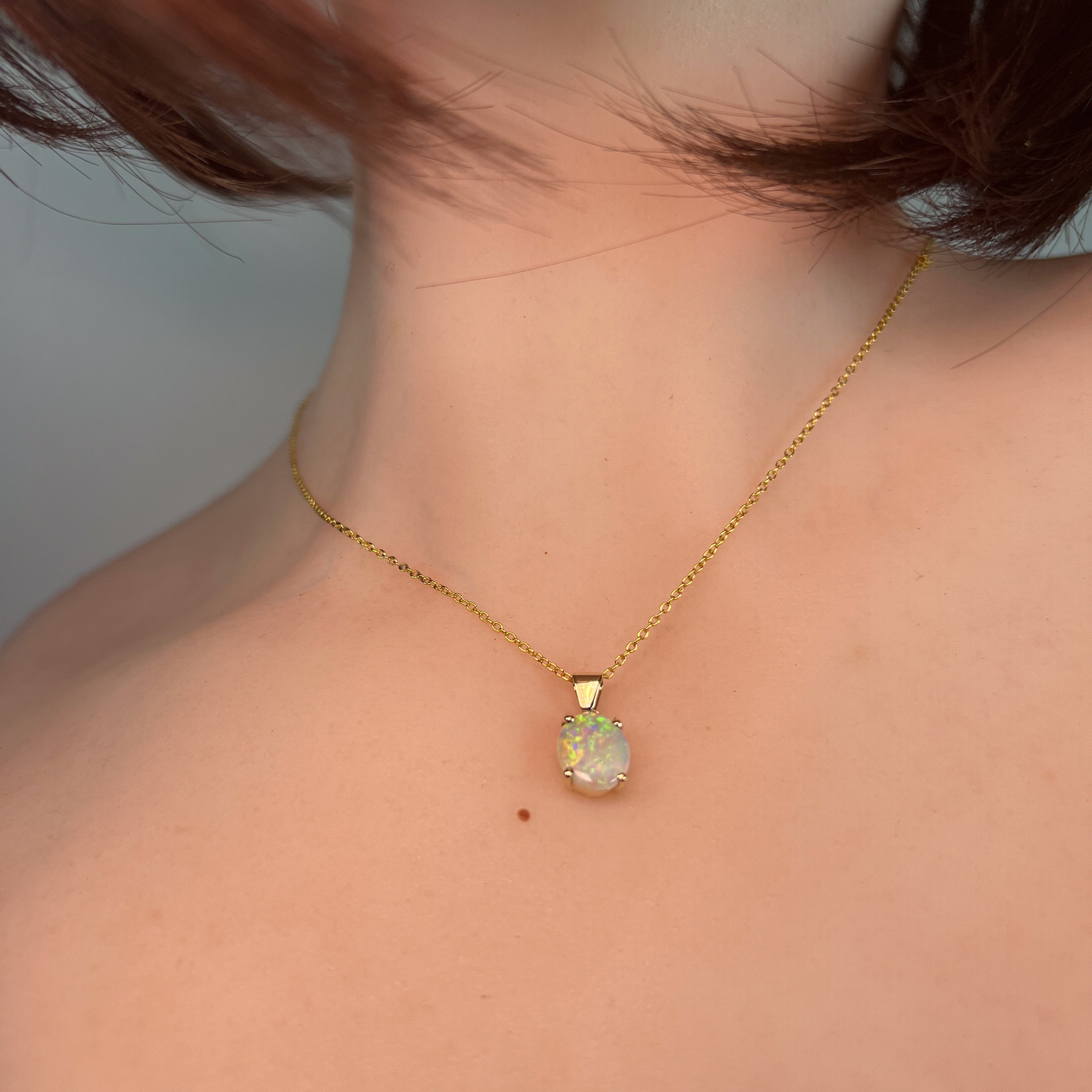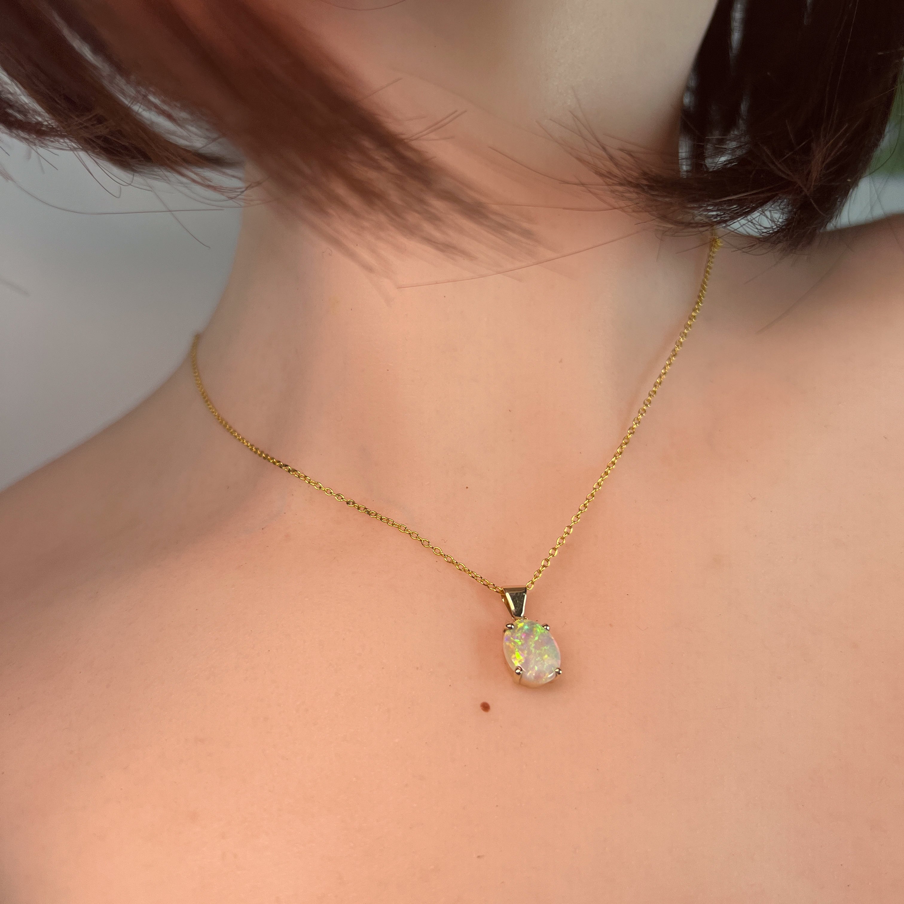 9kt Yellow Gold claw set pendant with one Oval Crystal Opal 10x8mm