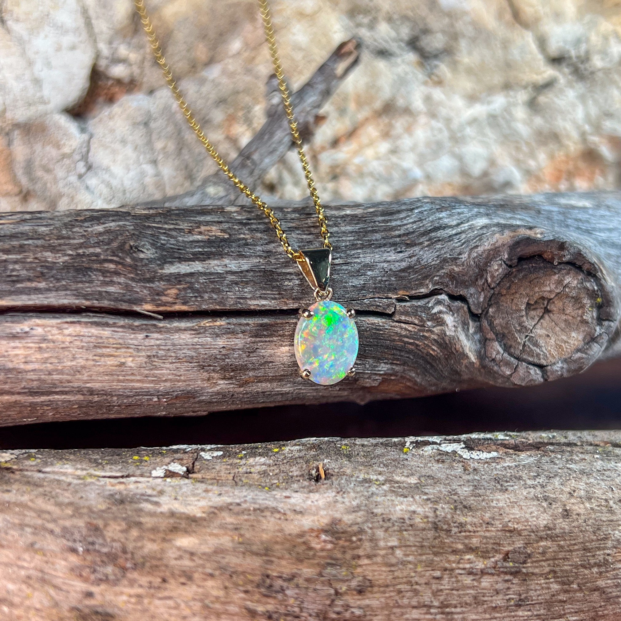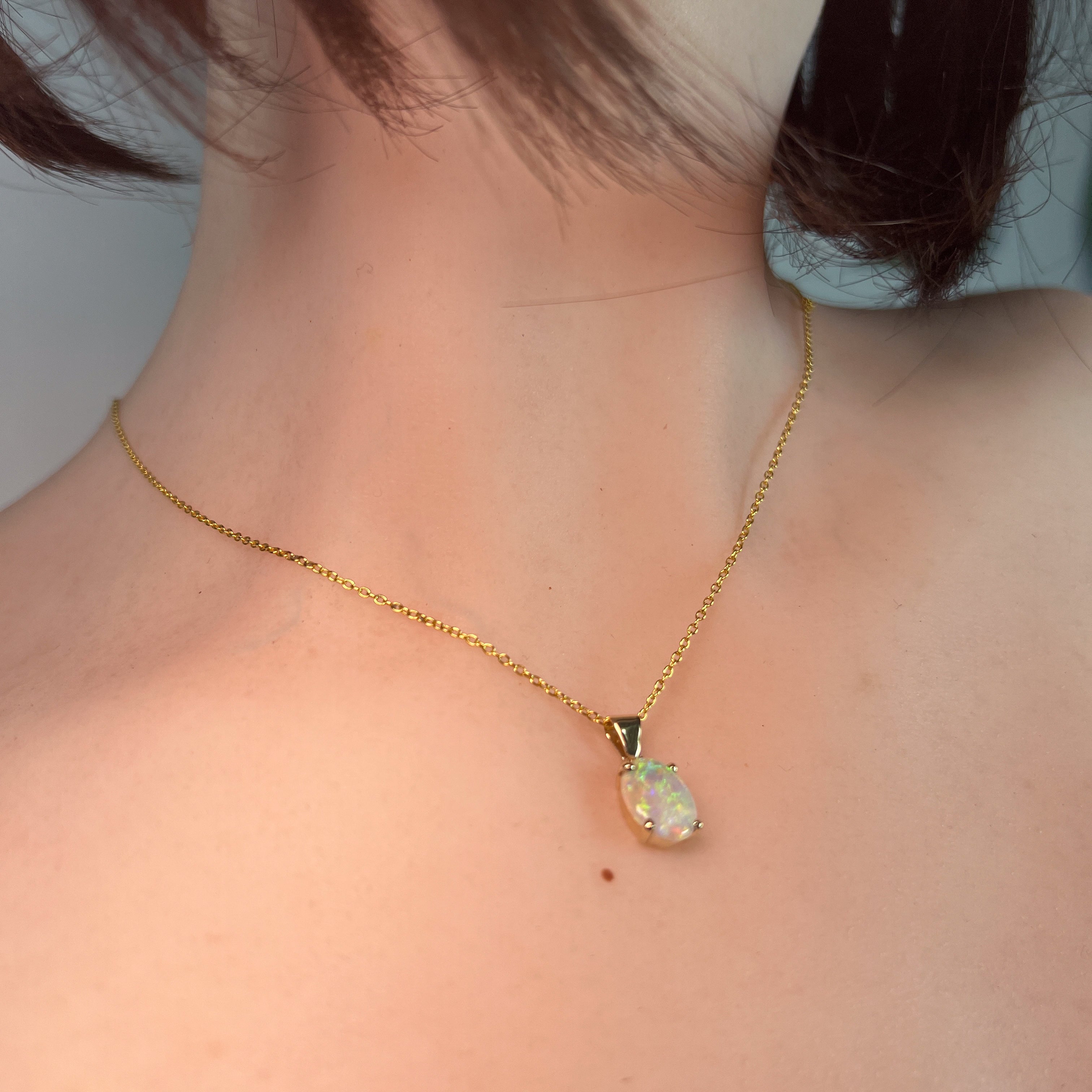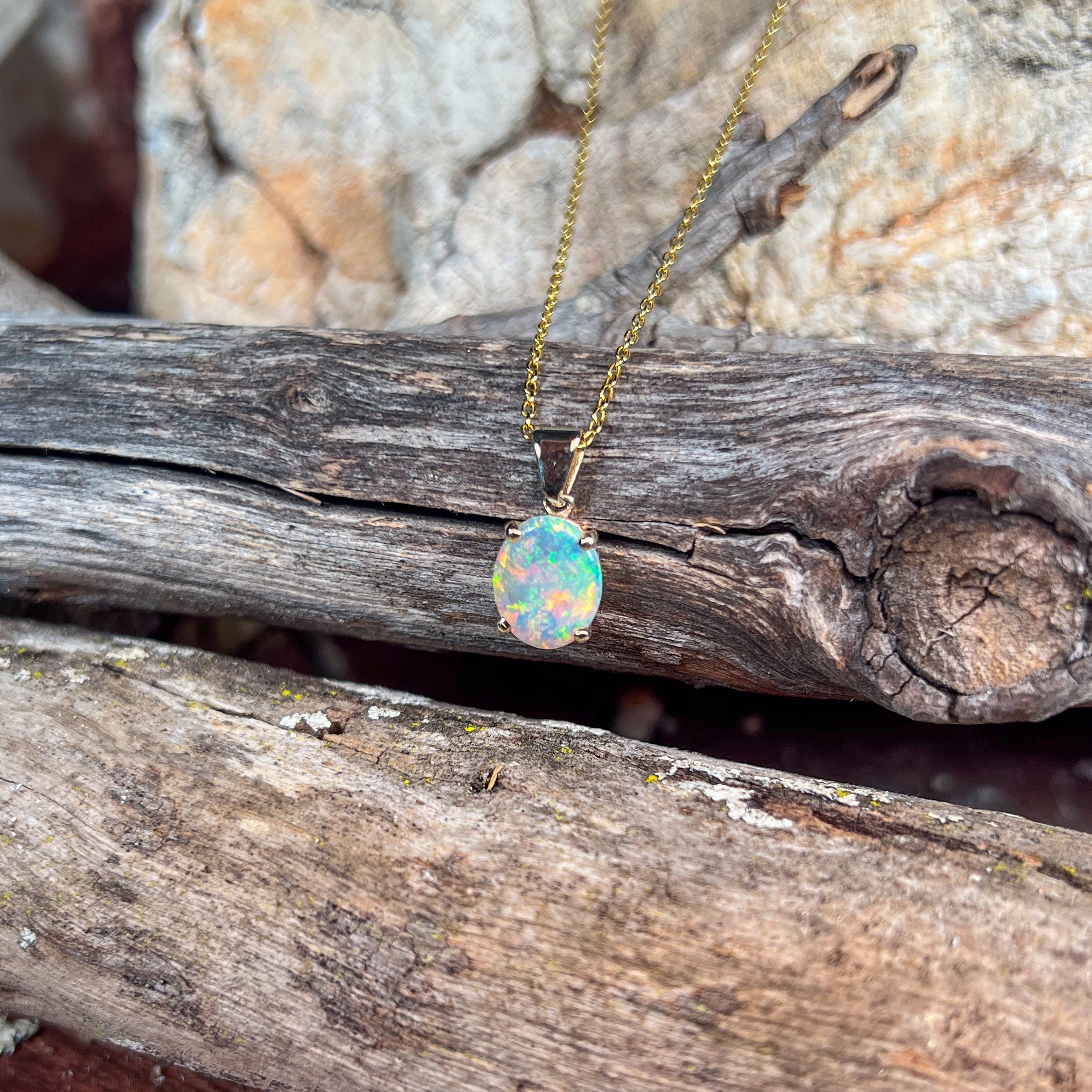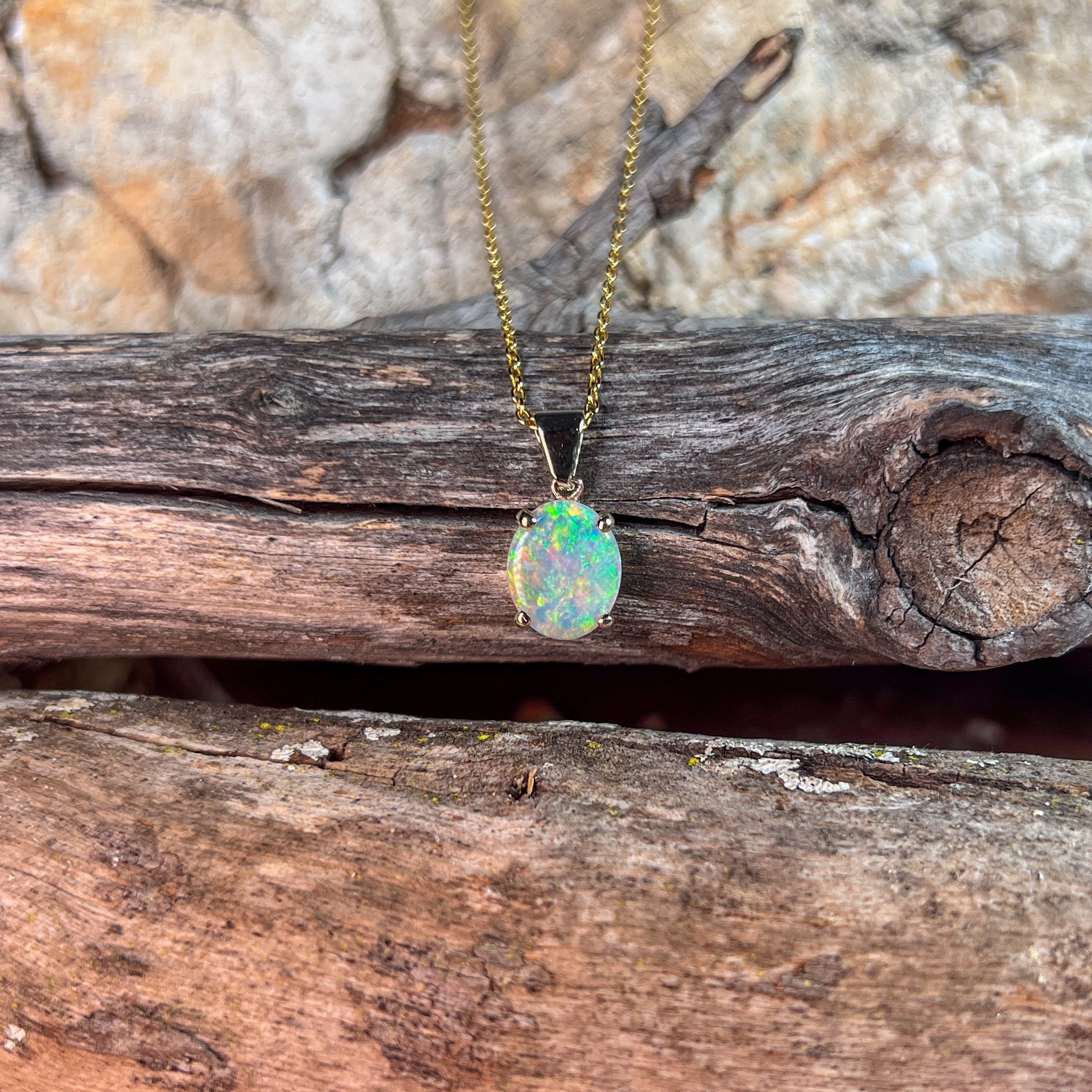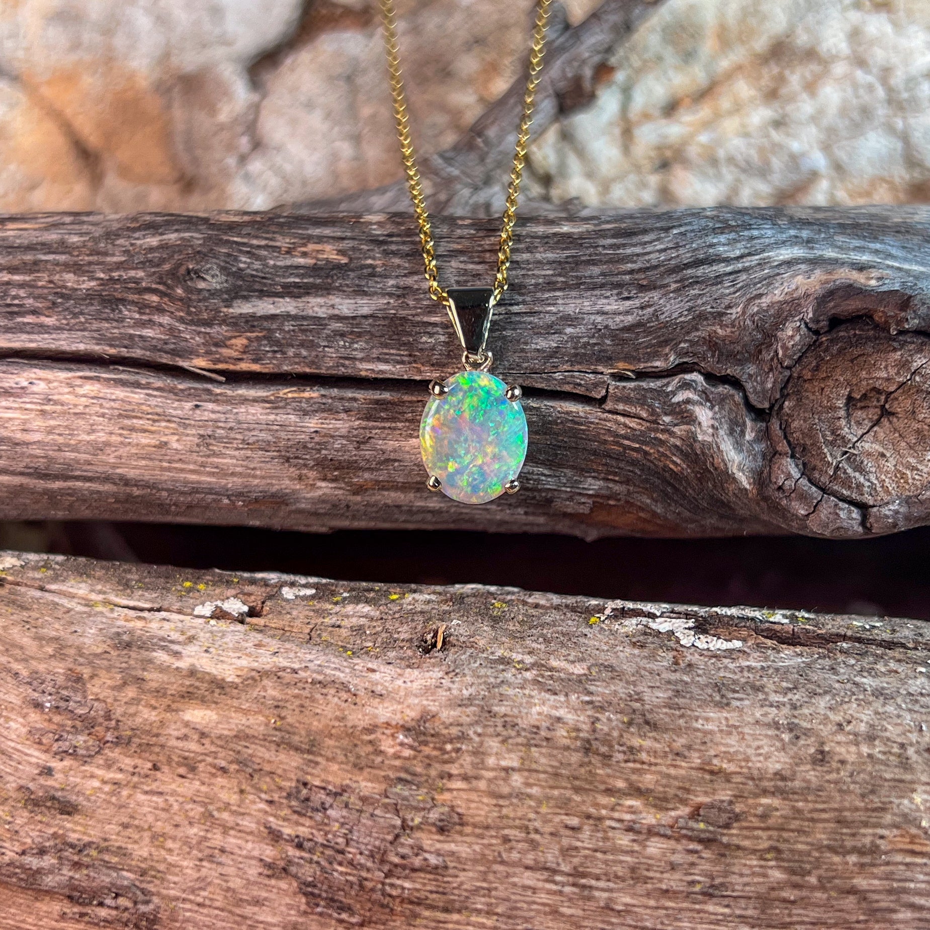 9kt Yellow Gold claw set pendant with one Oval Crystal Opal 10x8mm