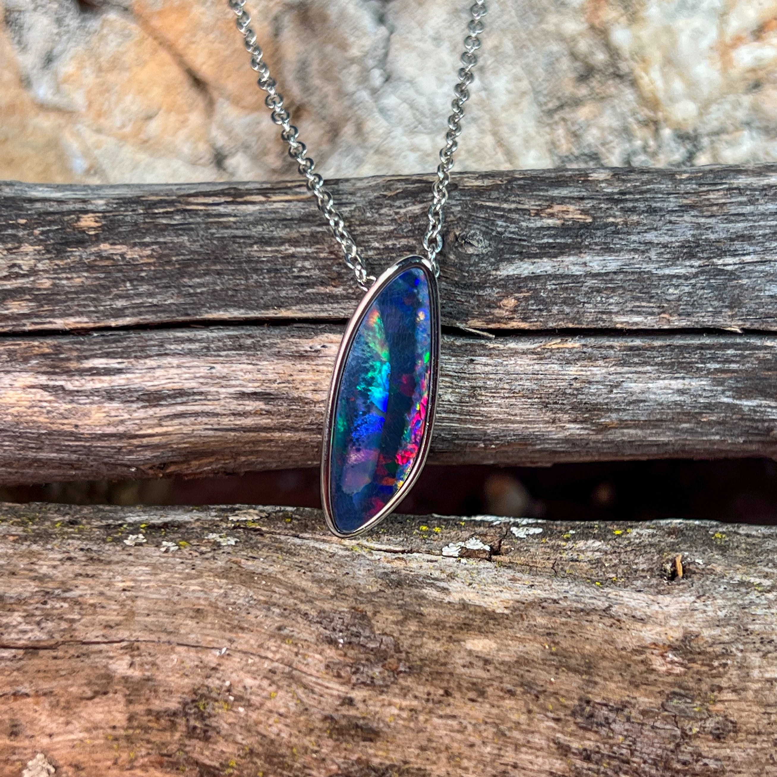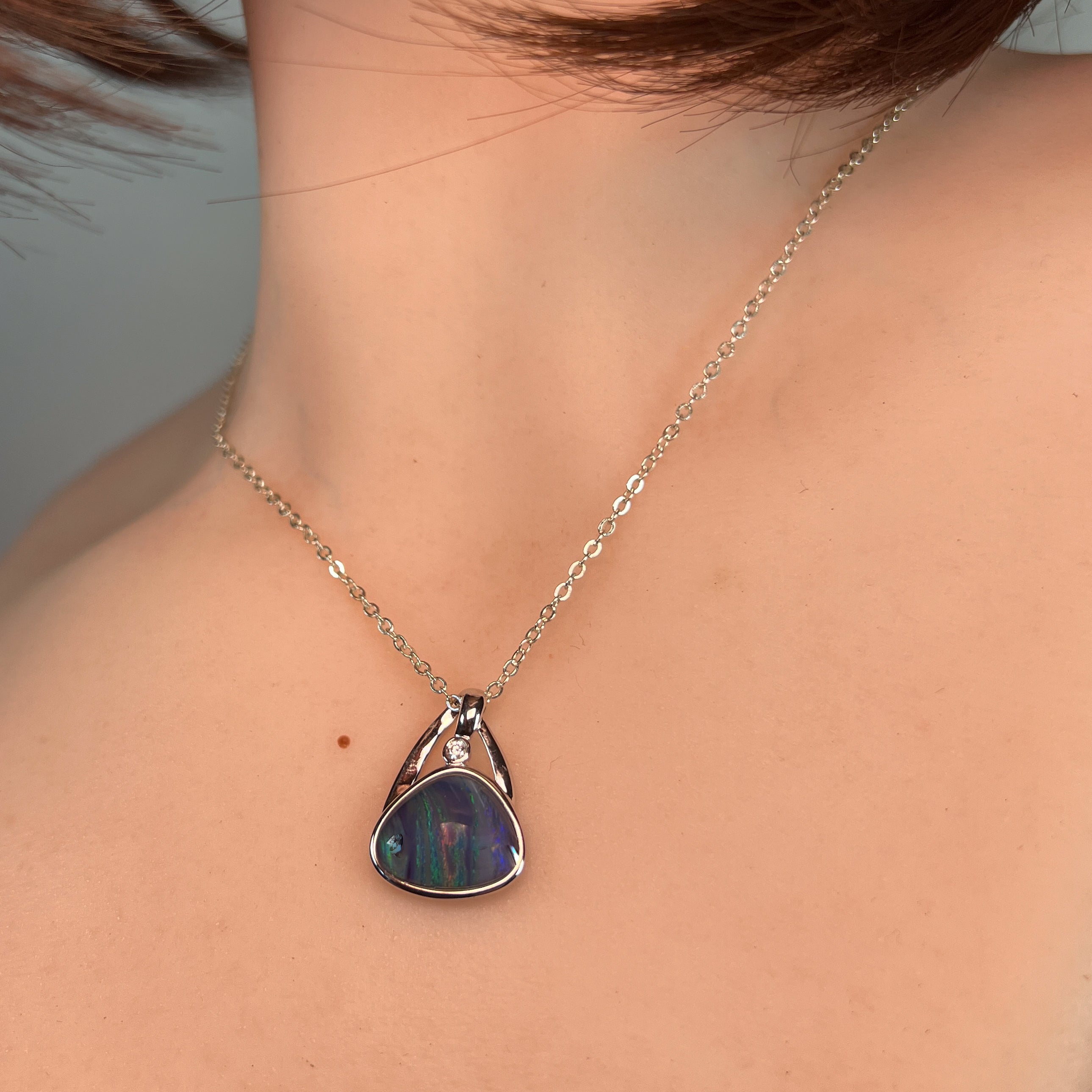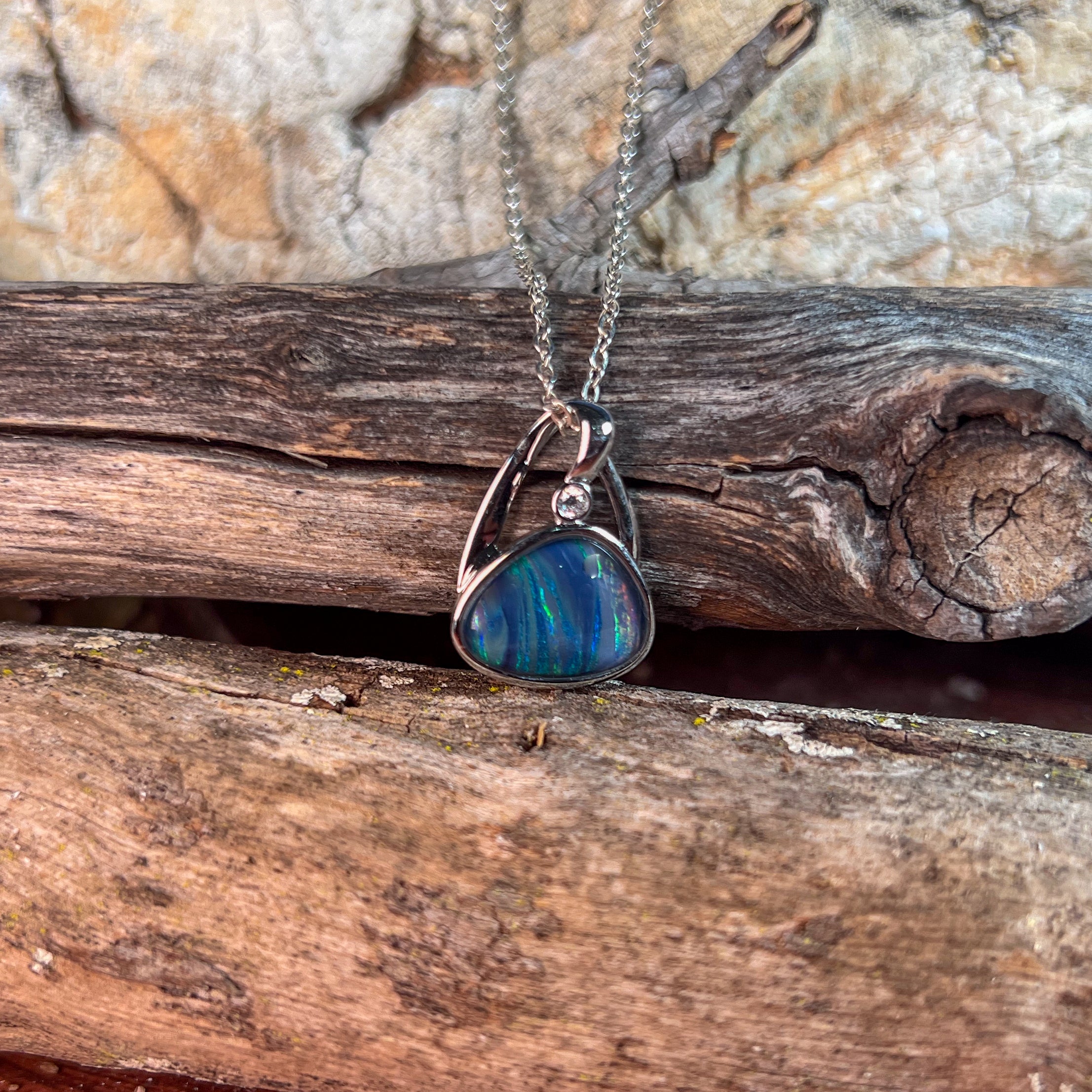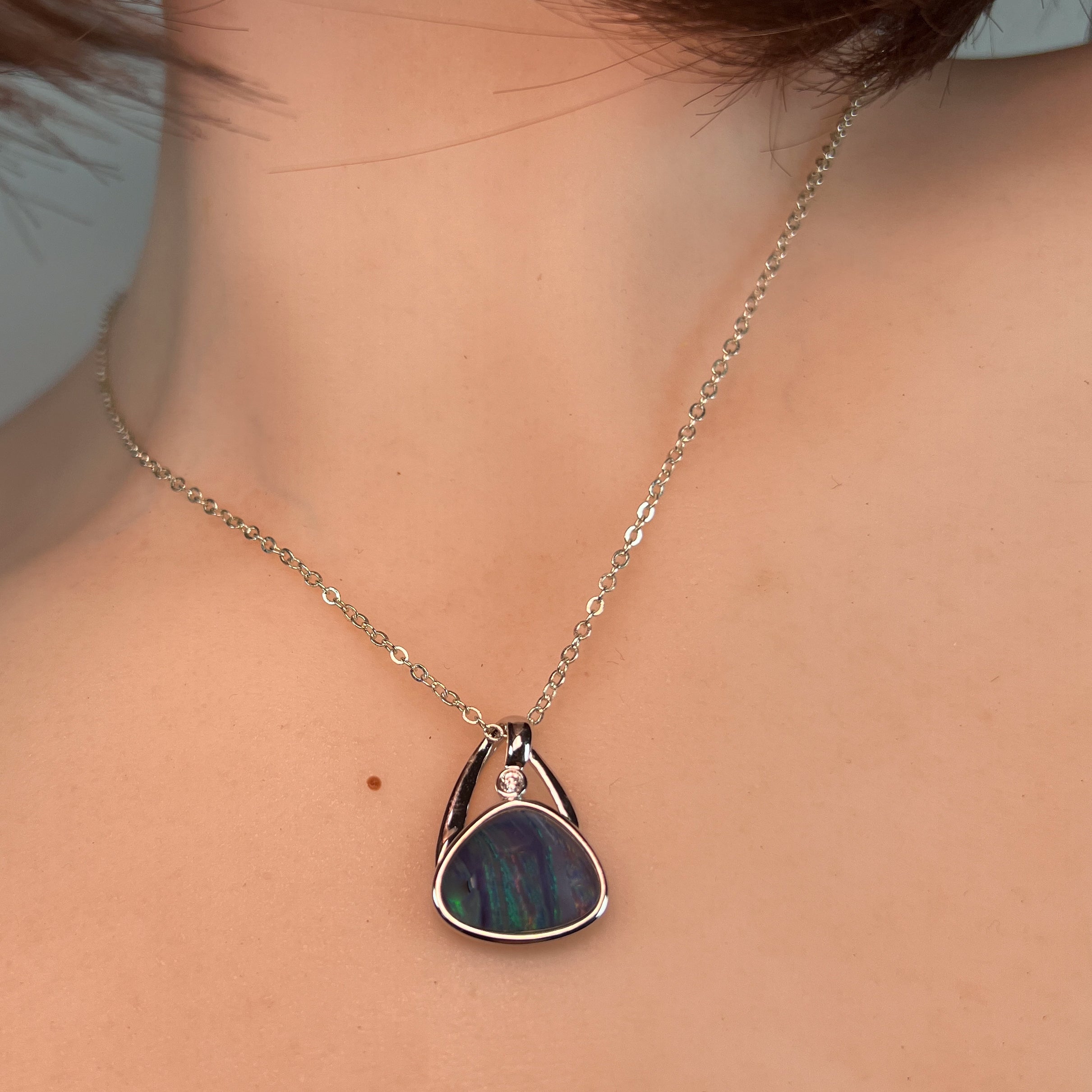 Sterling Silver horizontal set Opal triplet 14x11mm pendant