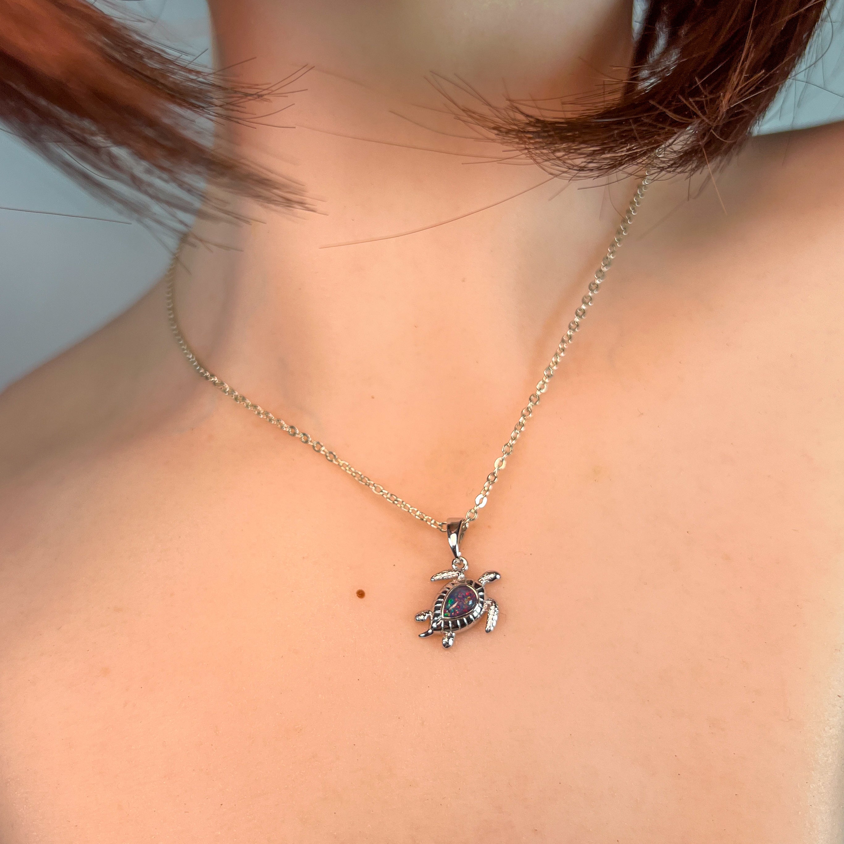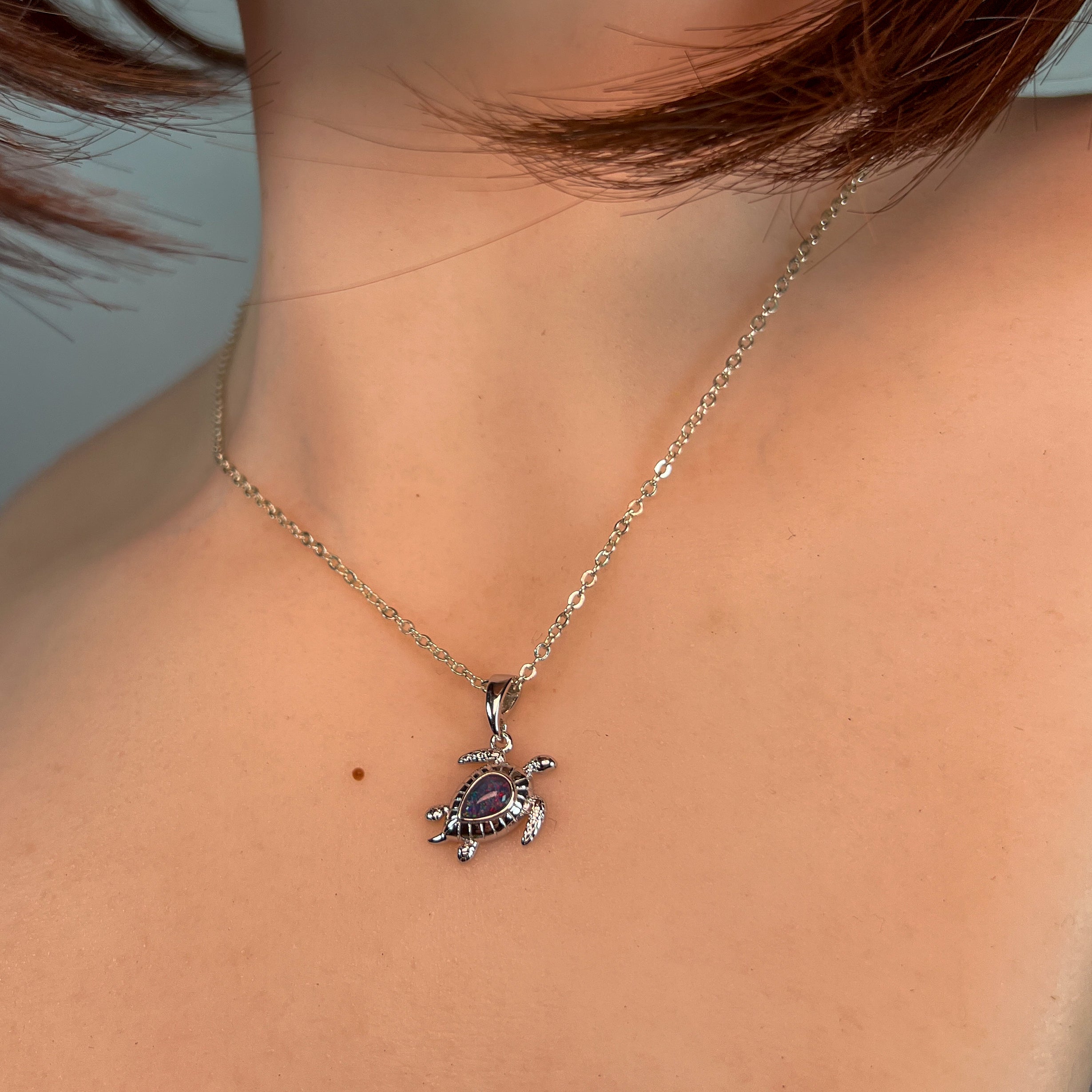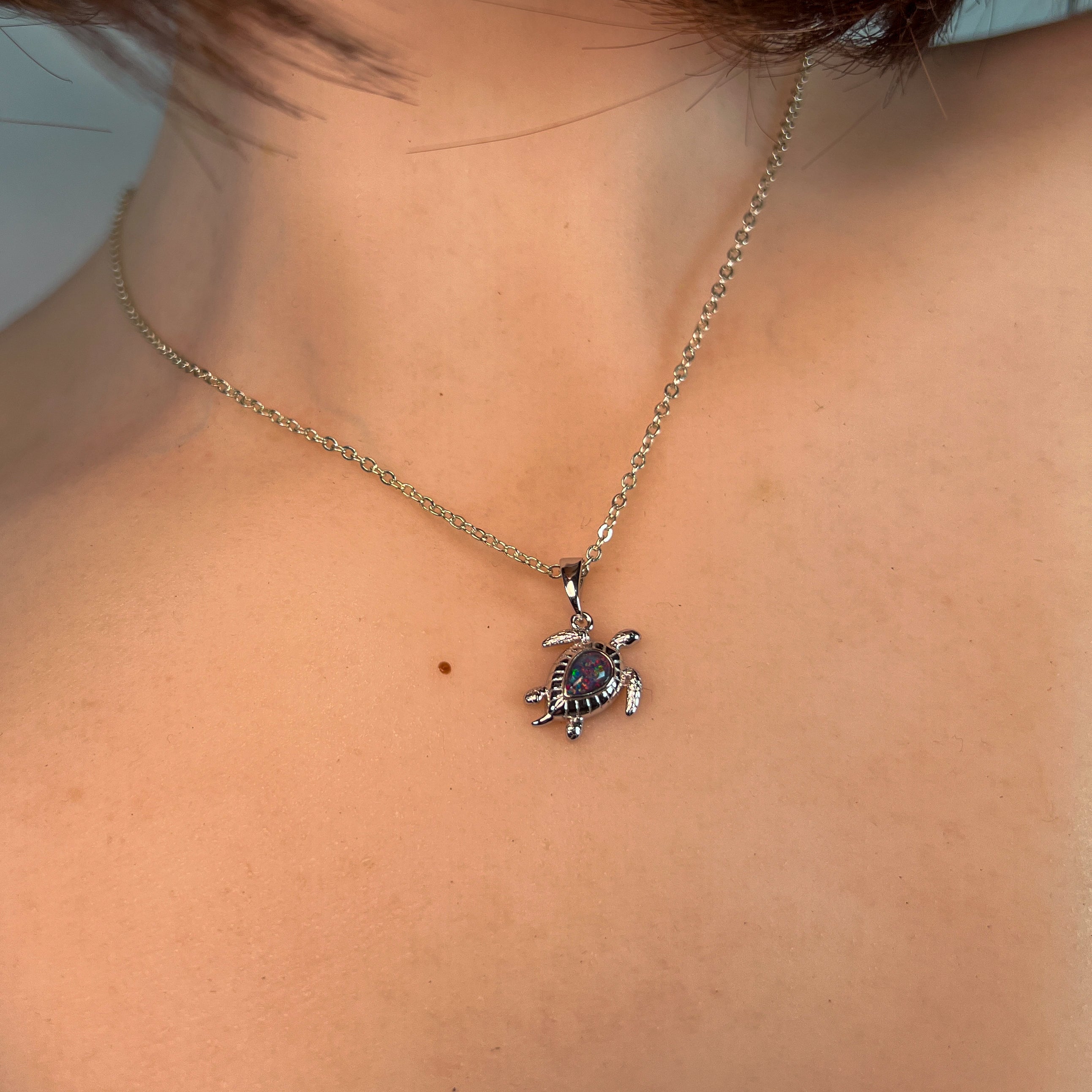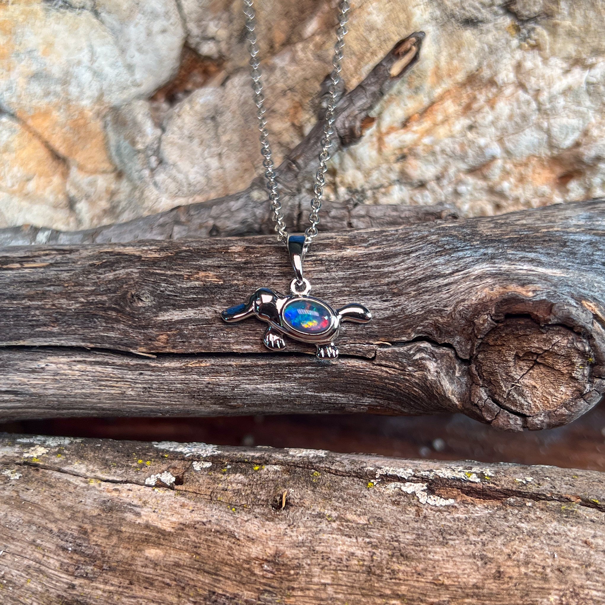 Sterling Silver Turtle Opal triplet pear shape 6x4mm pendant