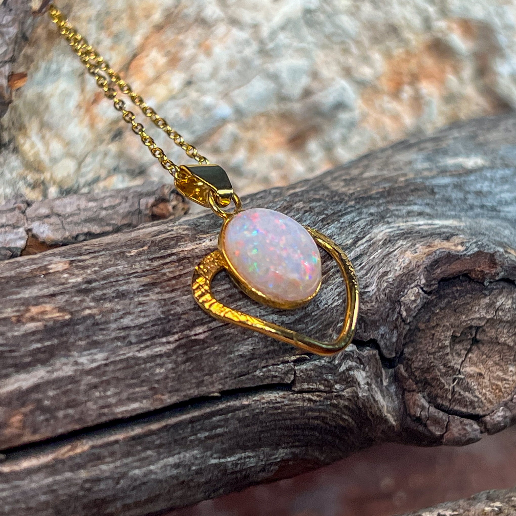 Gold Plated Silver Opal freeform 11x6mm pendant