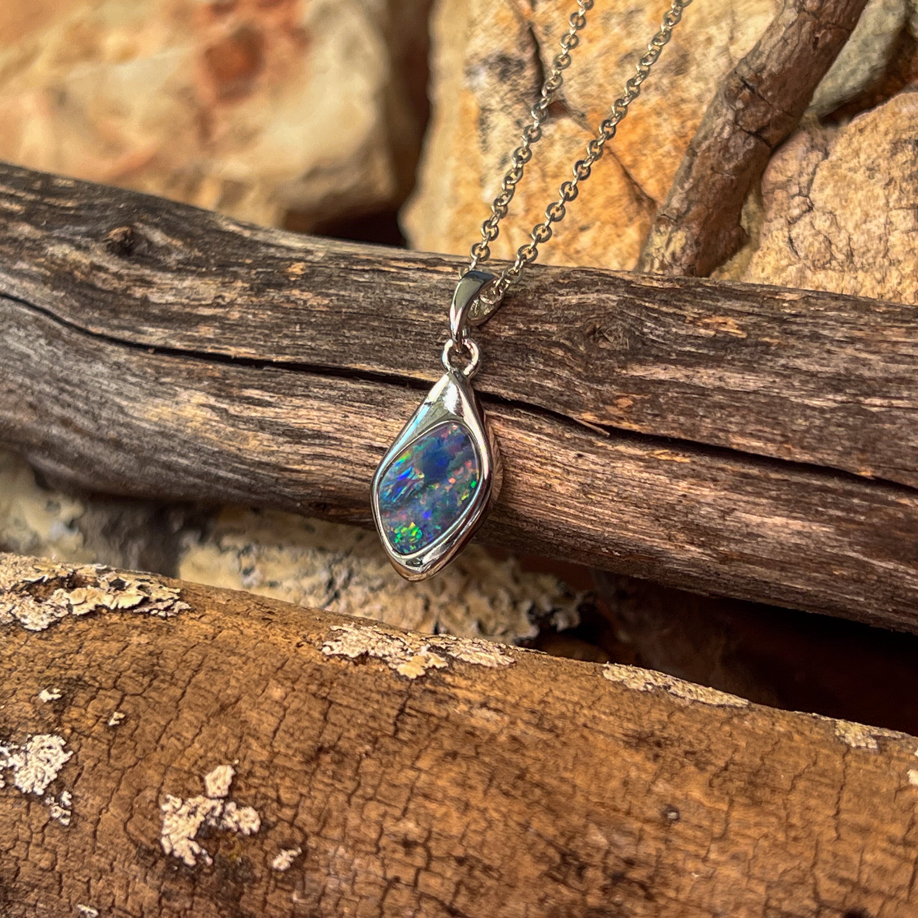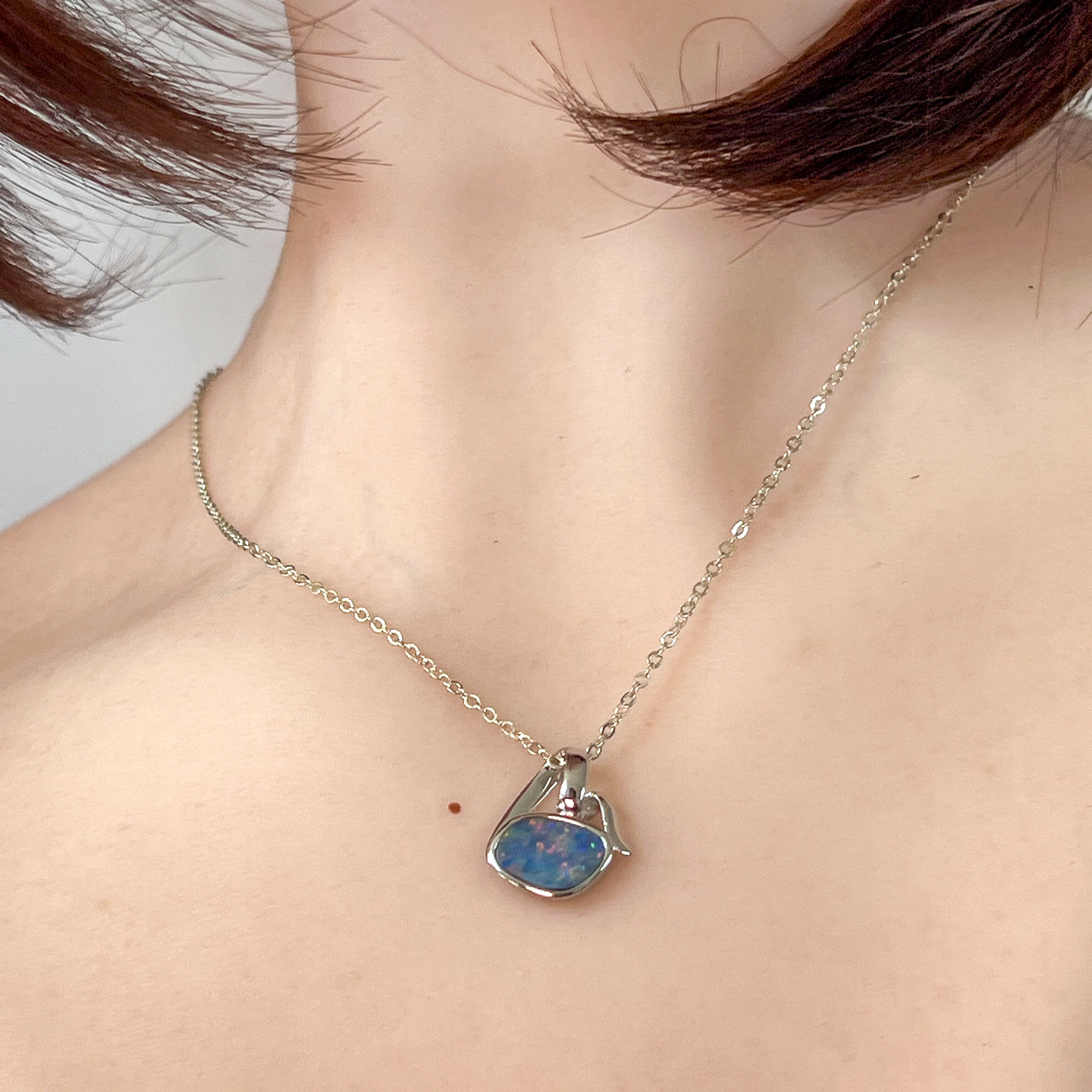 Sterling Silver modern freeform shape Opal doublet pendant