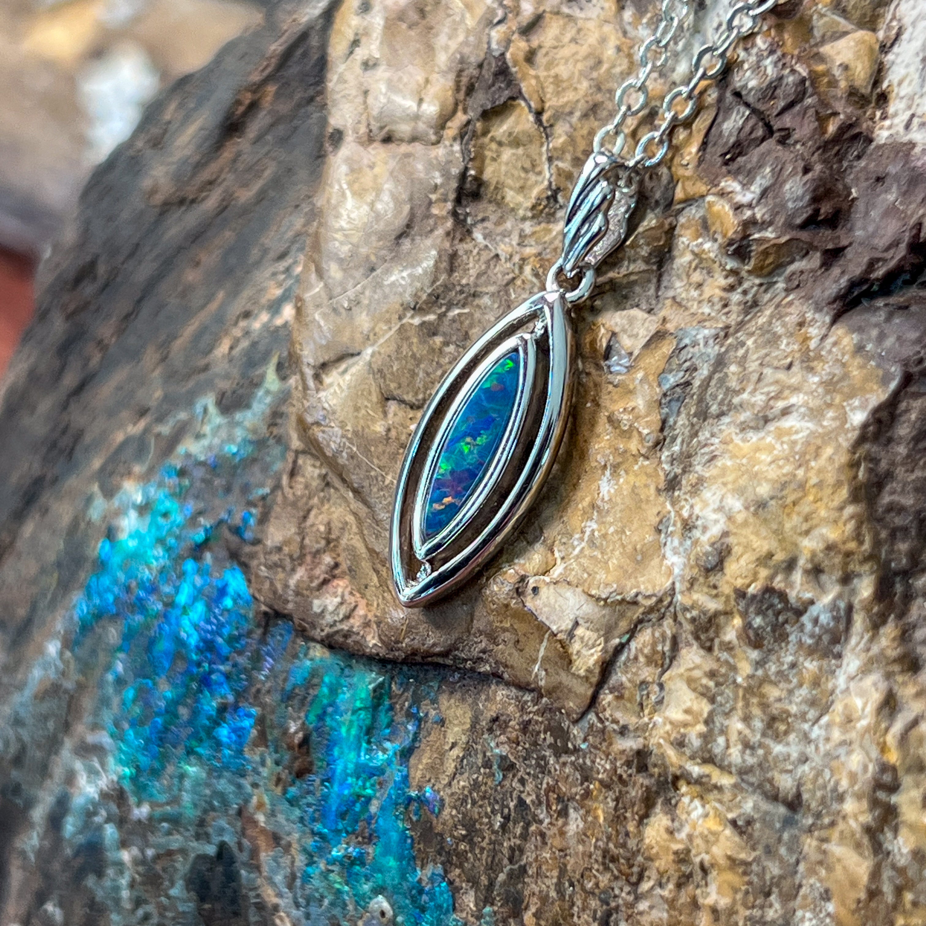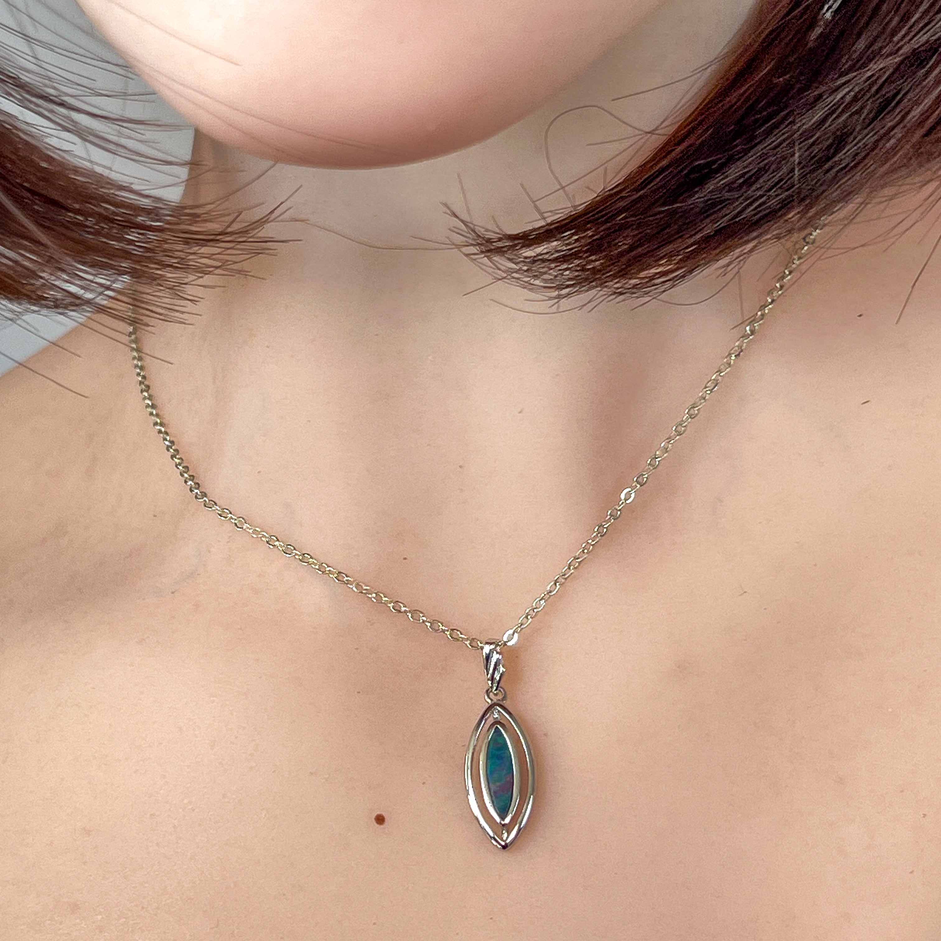 Sterling Silver Marquise shape cut out Opal doublet pendant