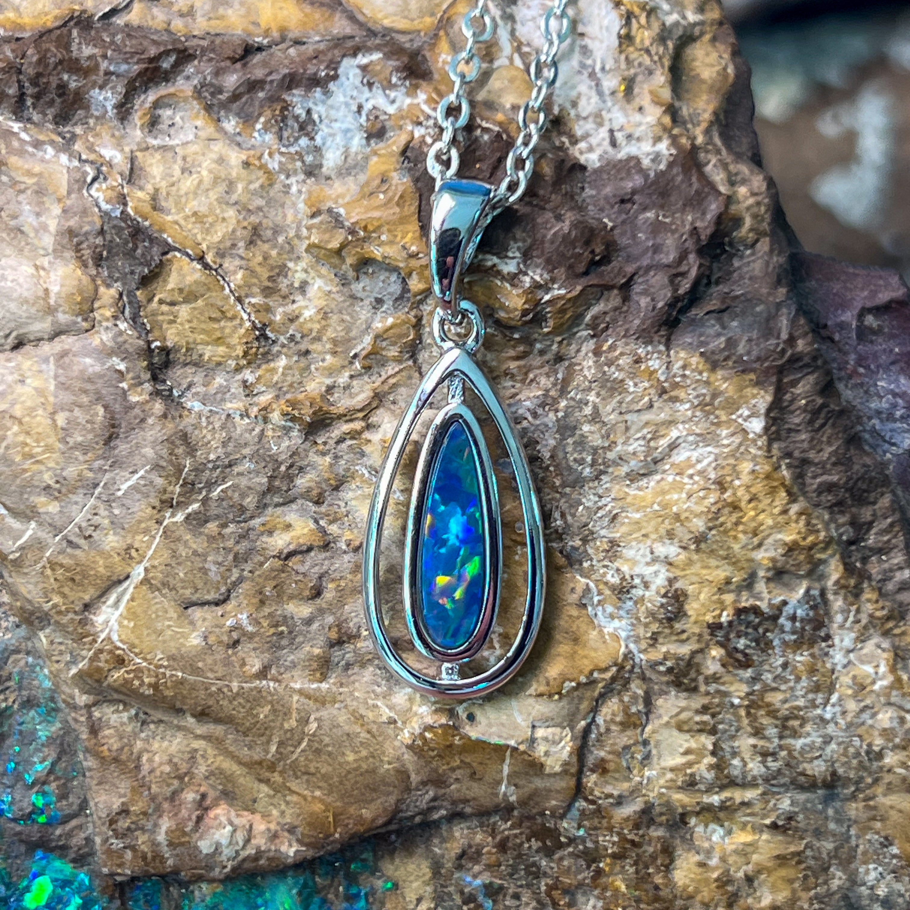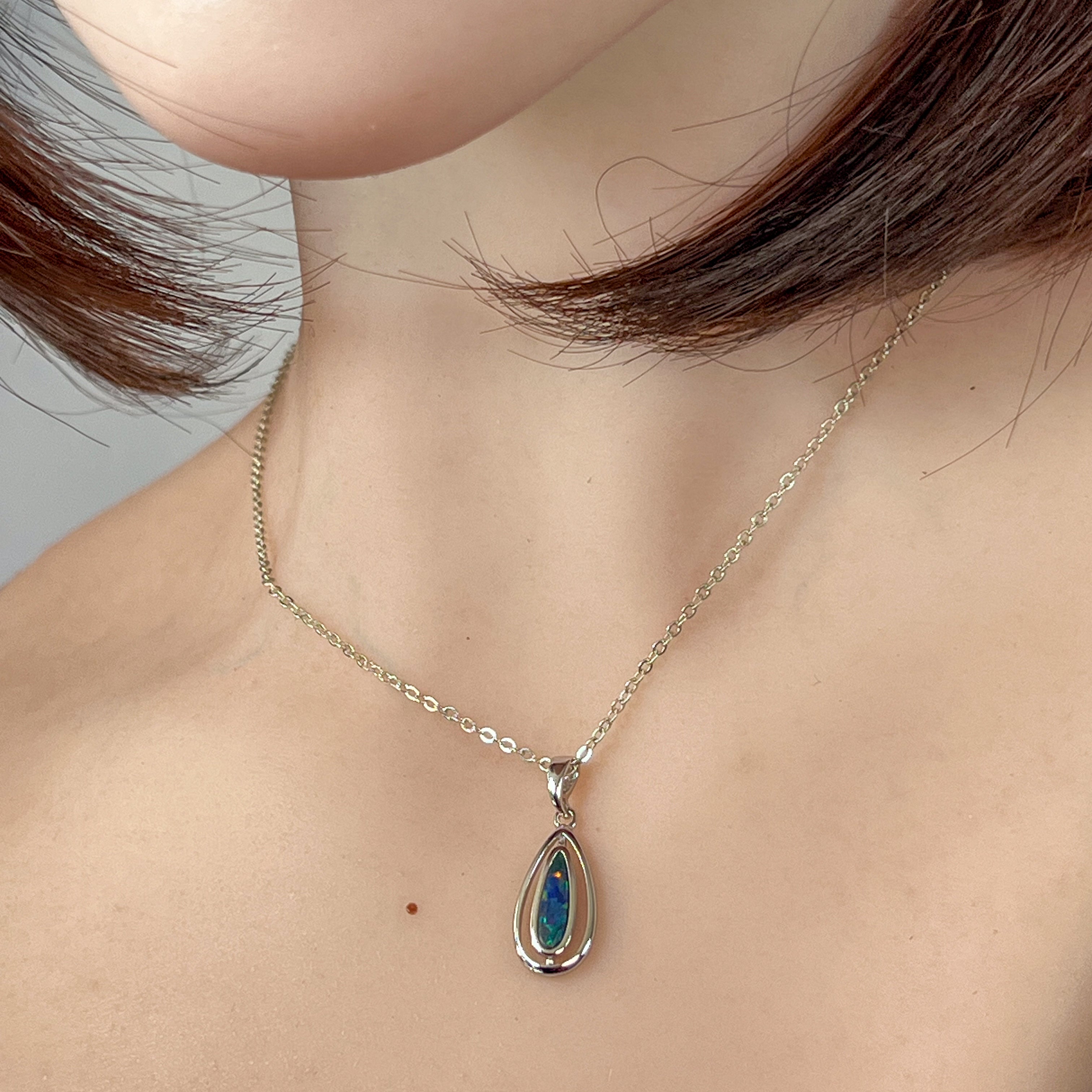 Sterling Silver pear shape drop style cut out Doublet Opal pendant