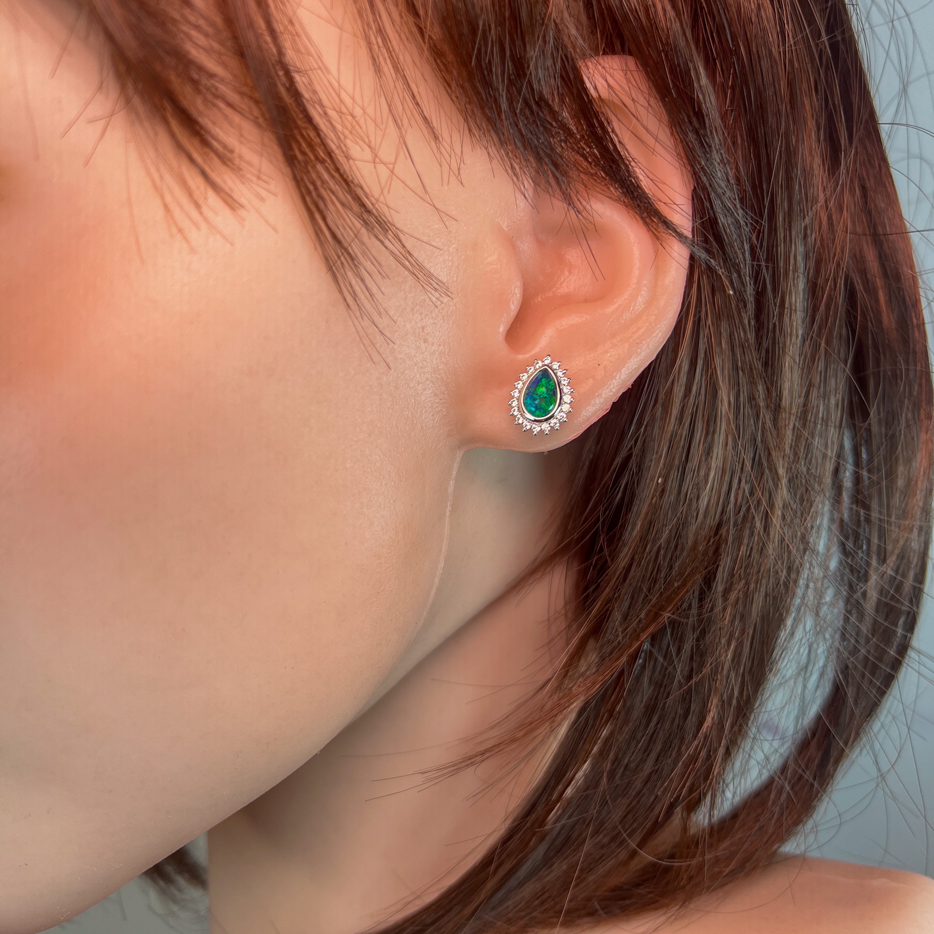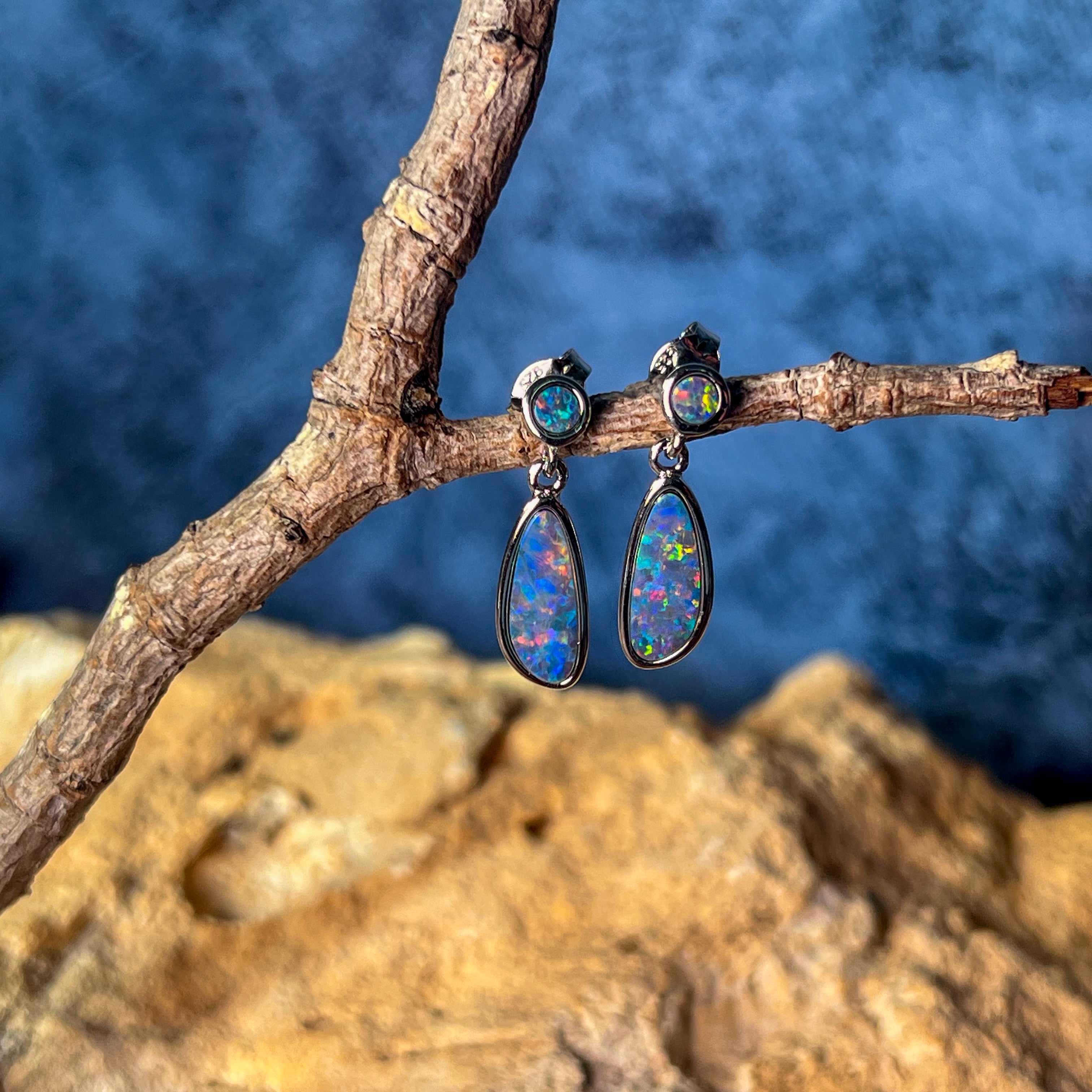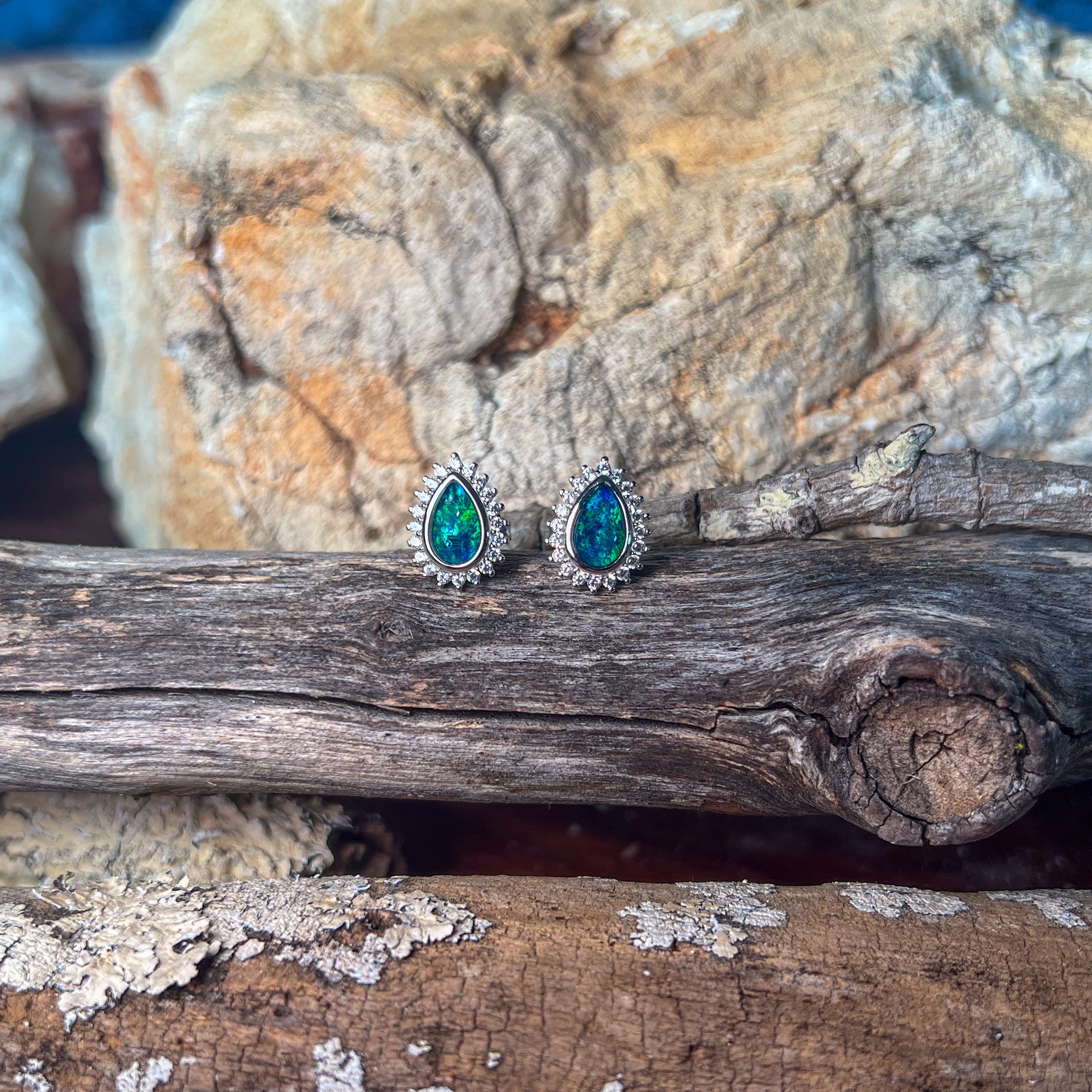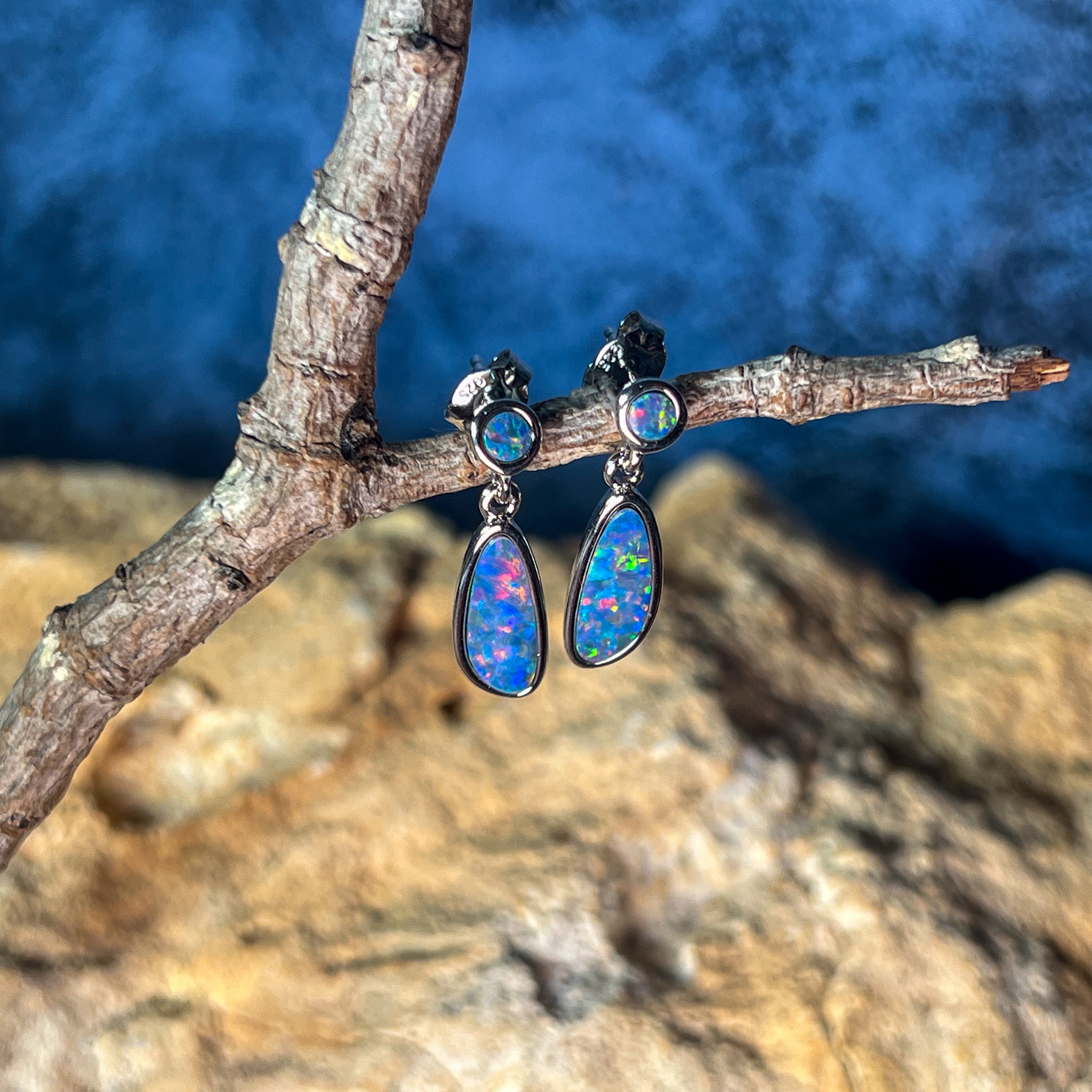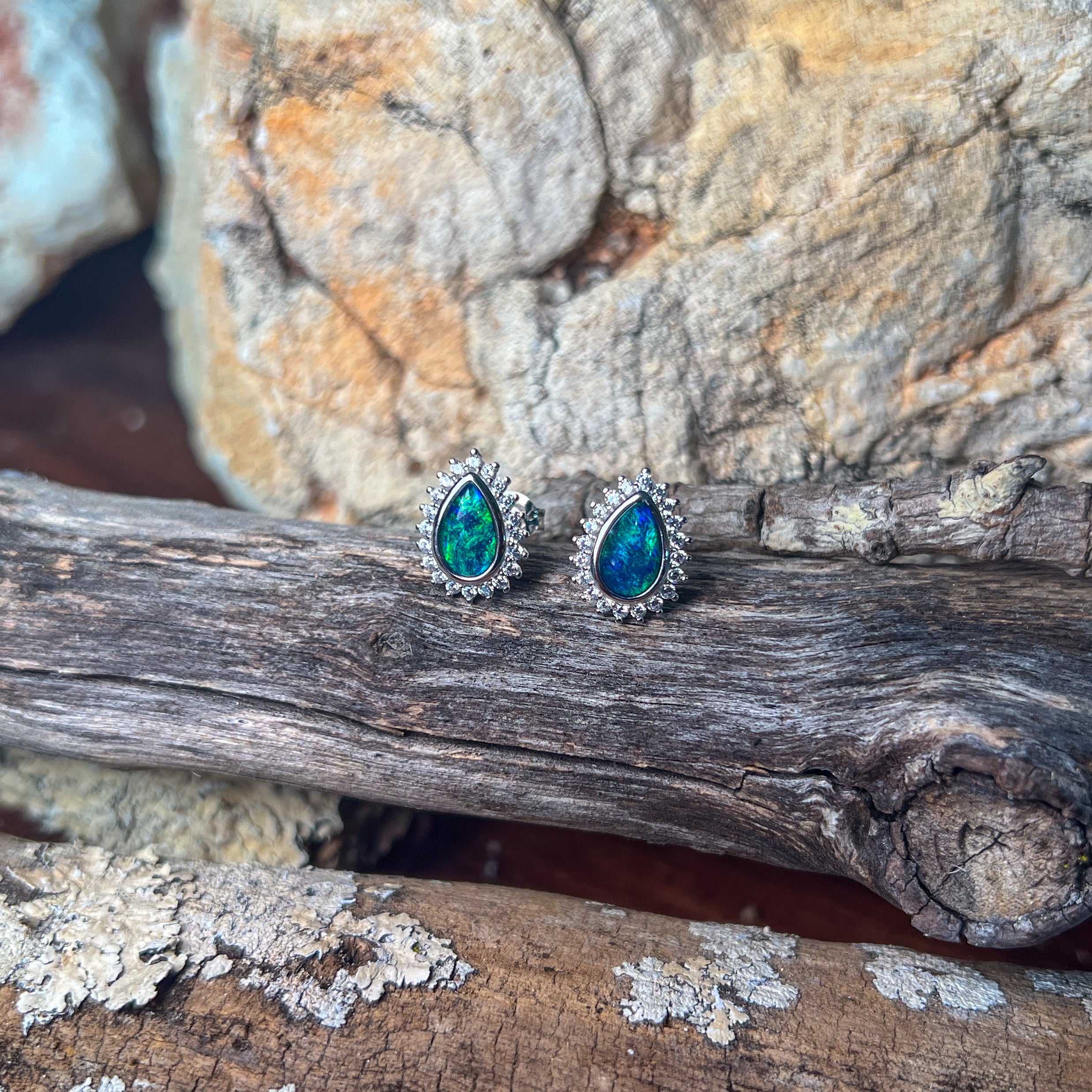 Sterling Silver pearshape Opal triplet 8x5mm cluster stud earrings