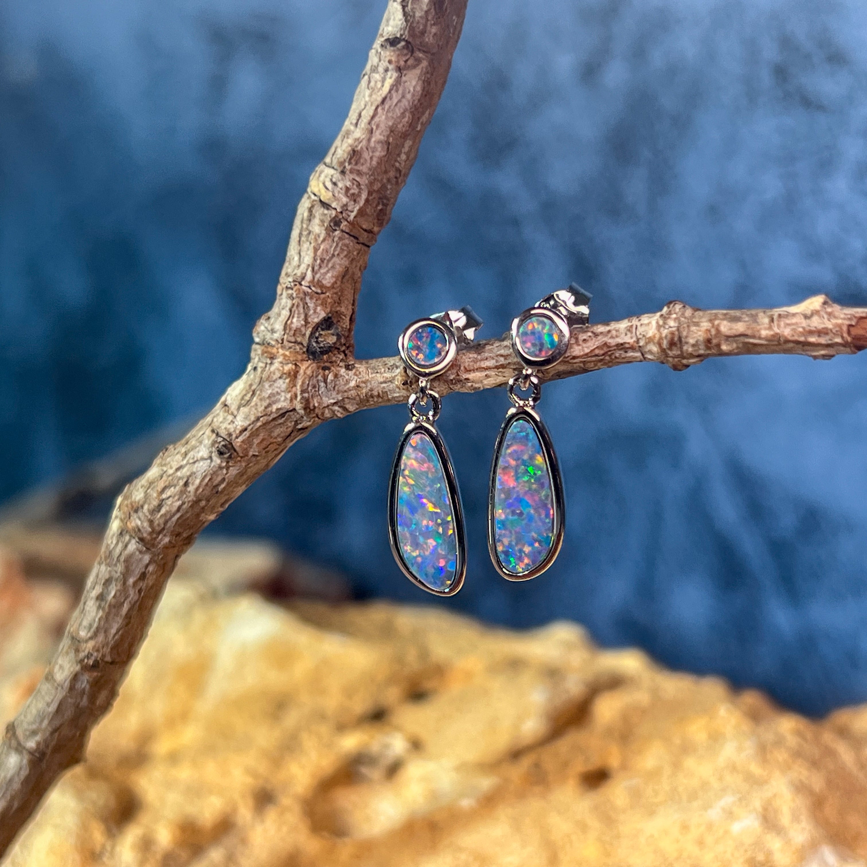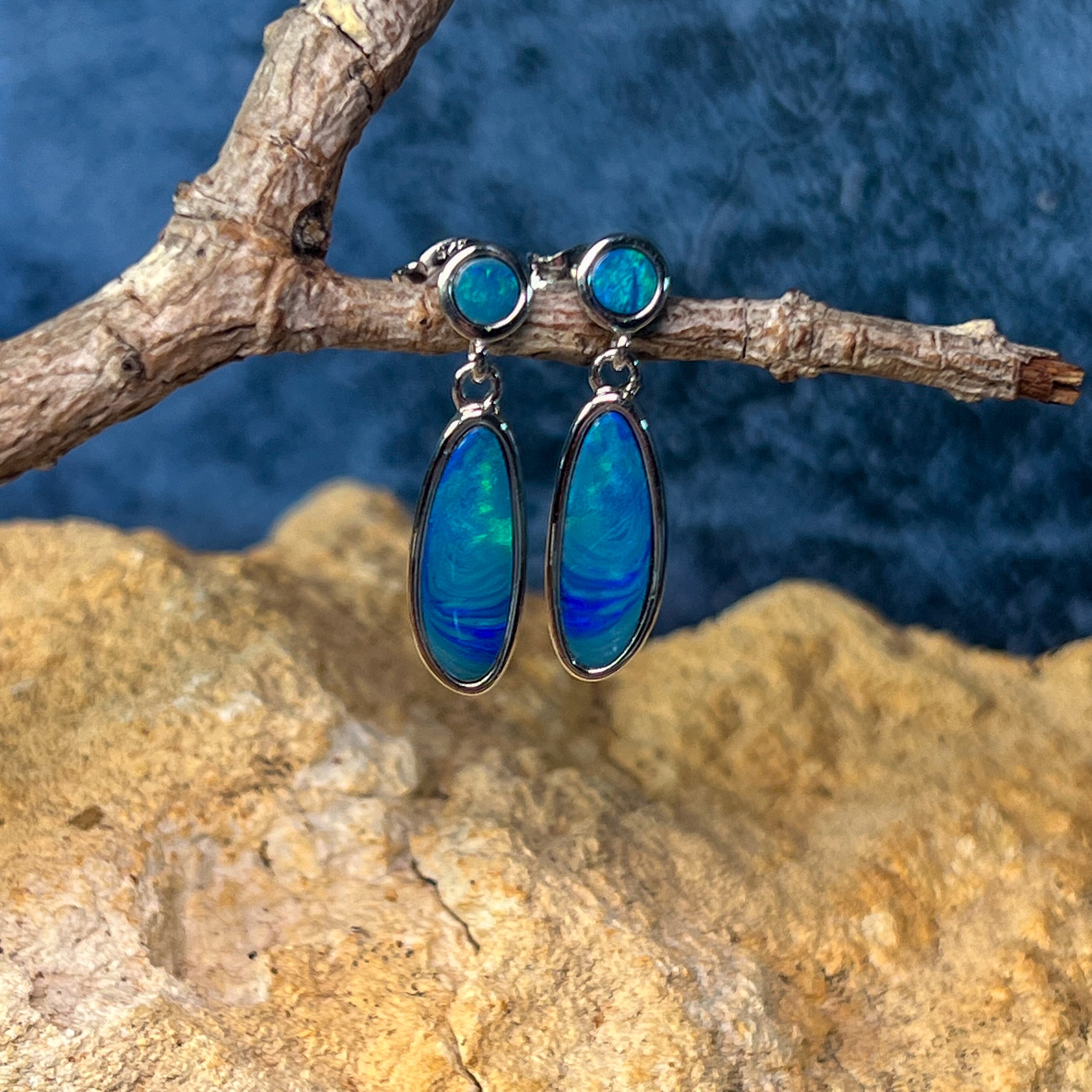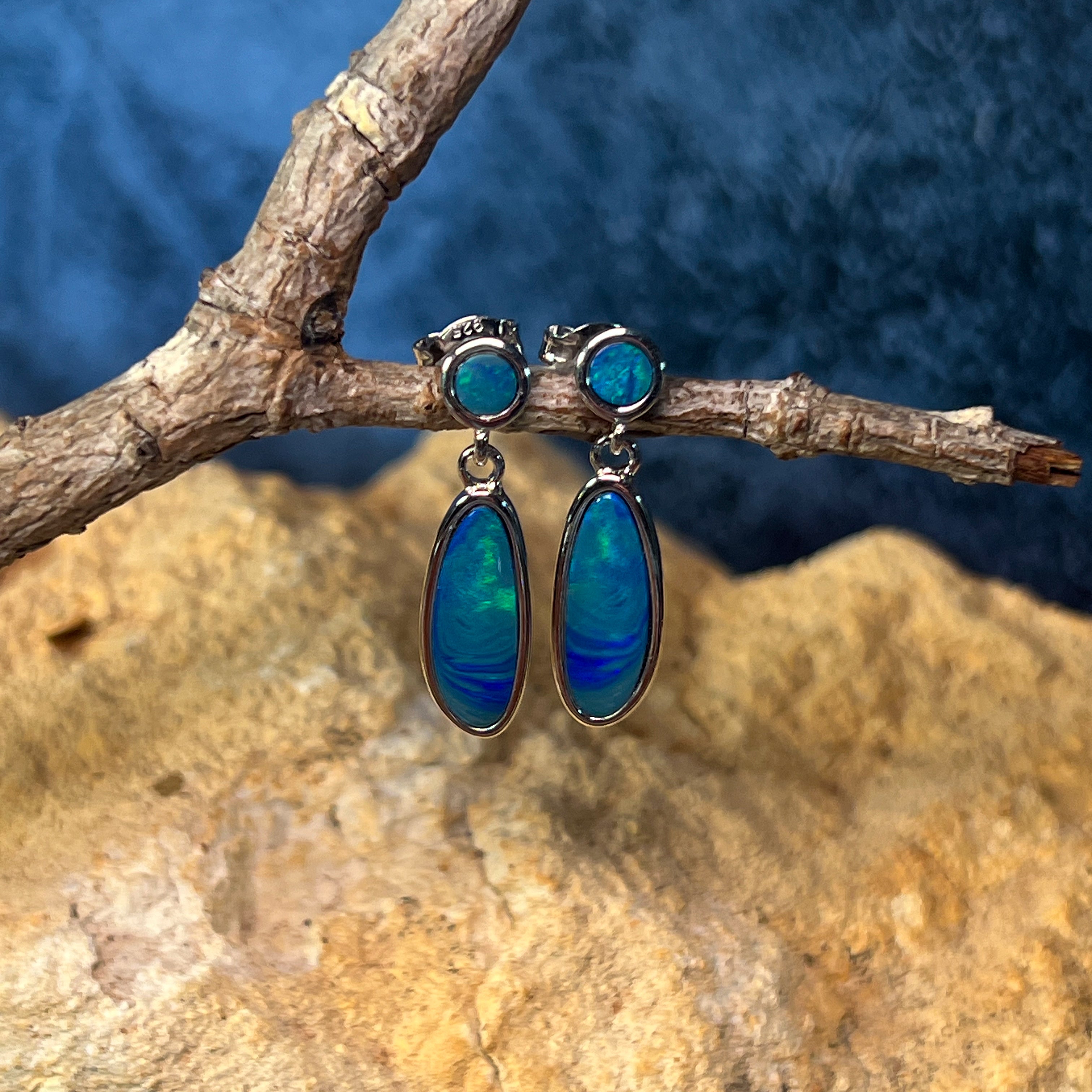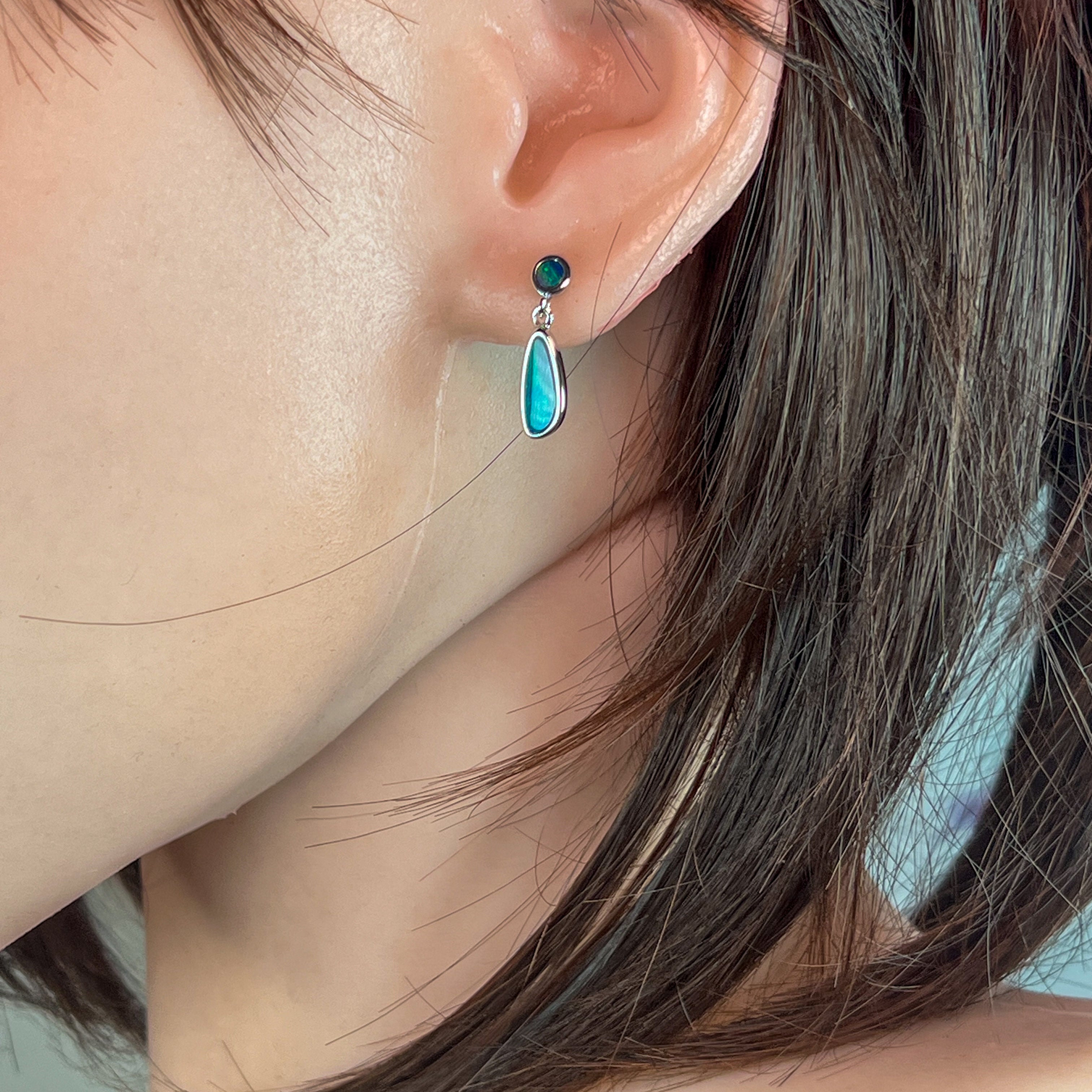 Sterling Silver Opal drop earrings Blue Green satin colours