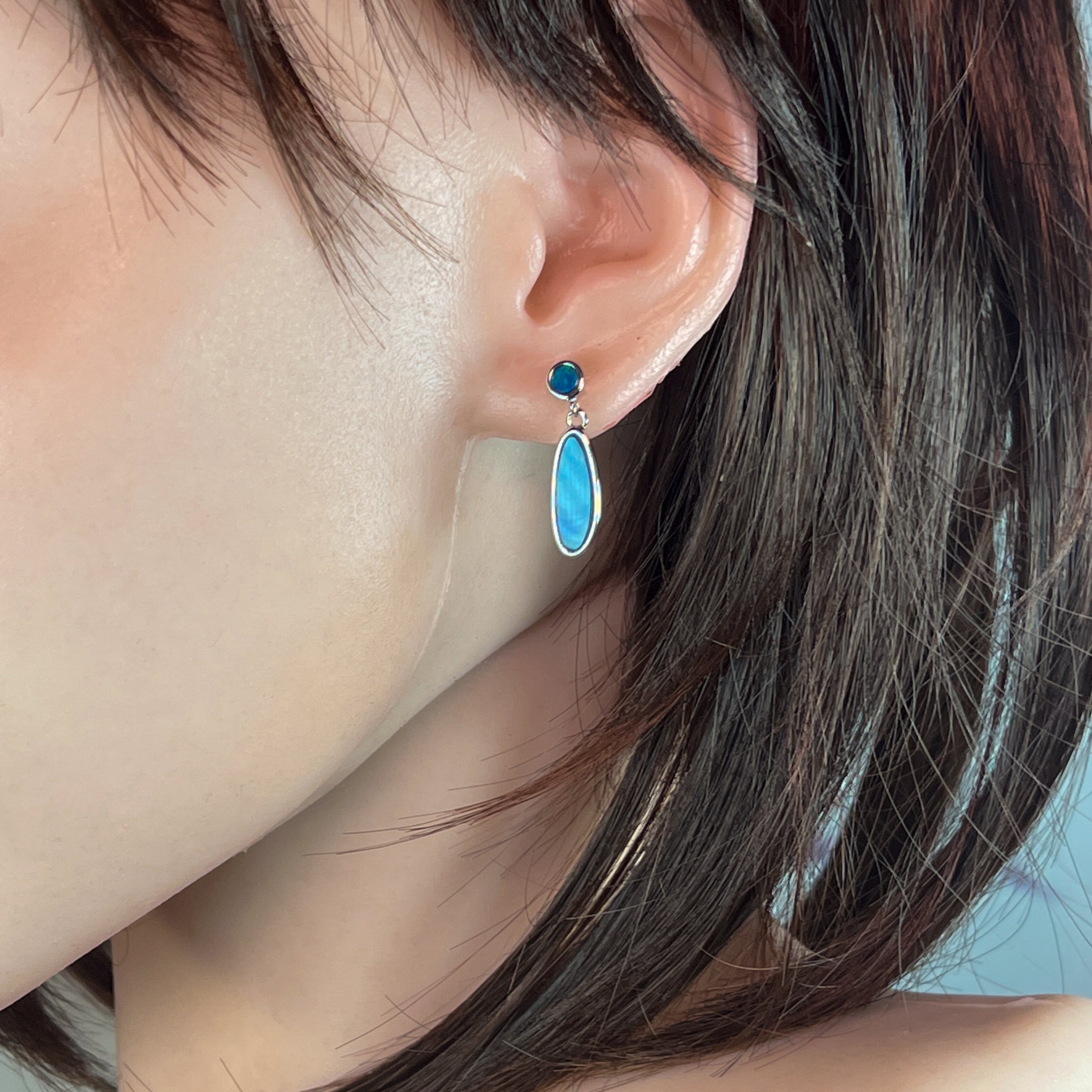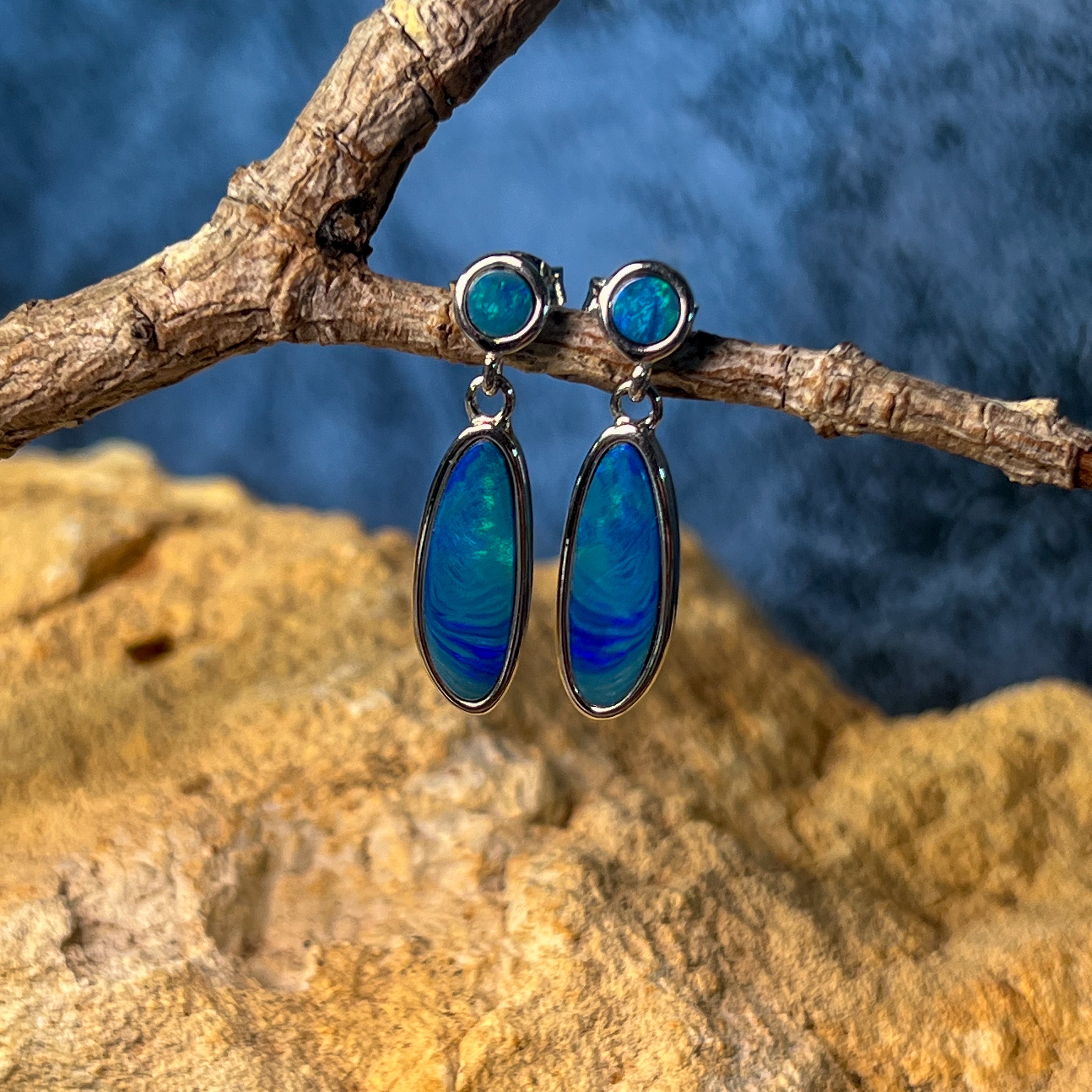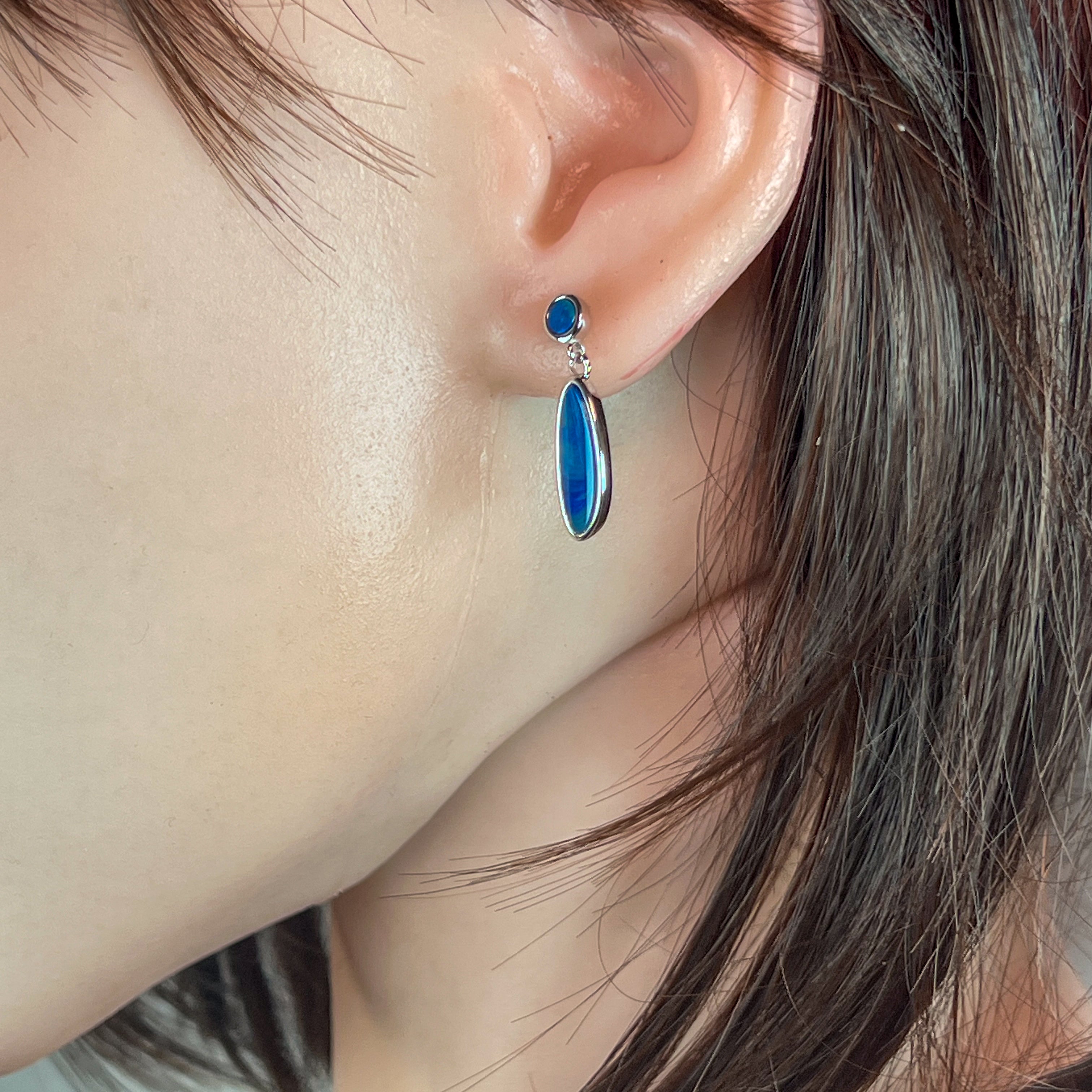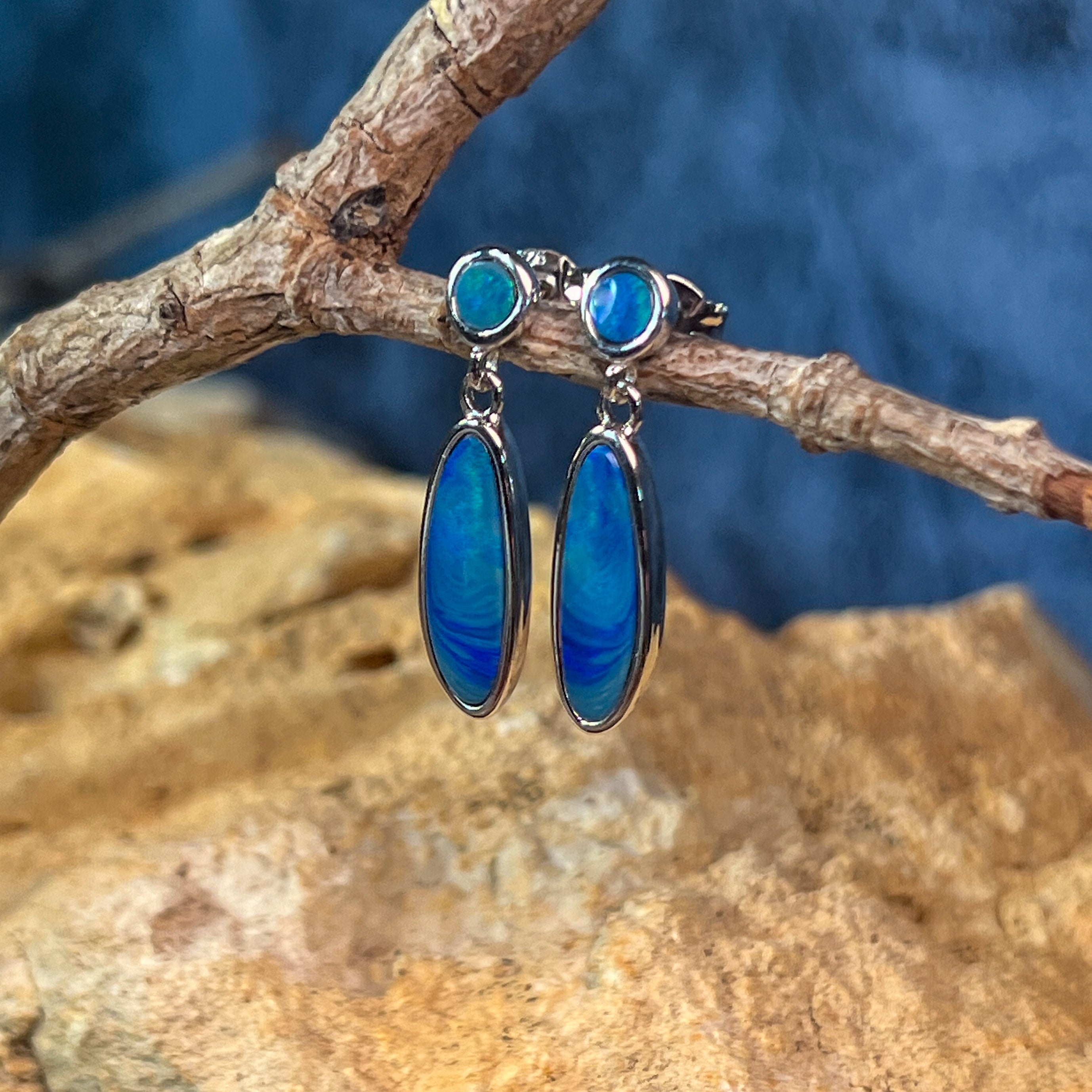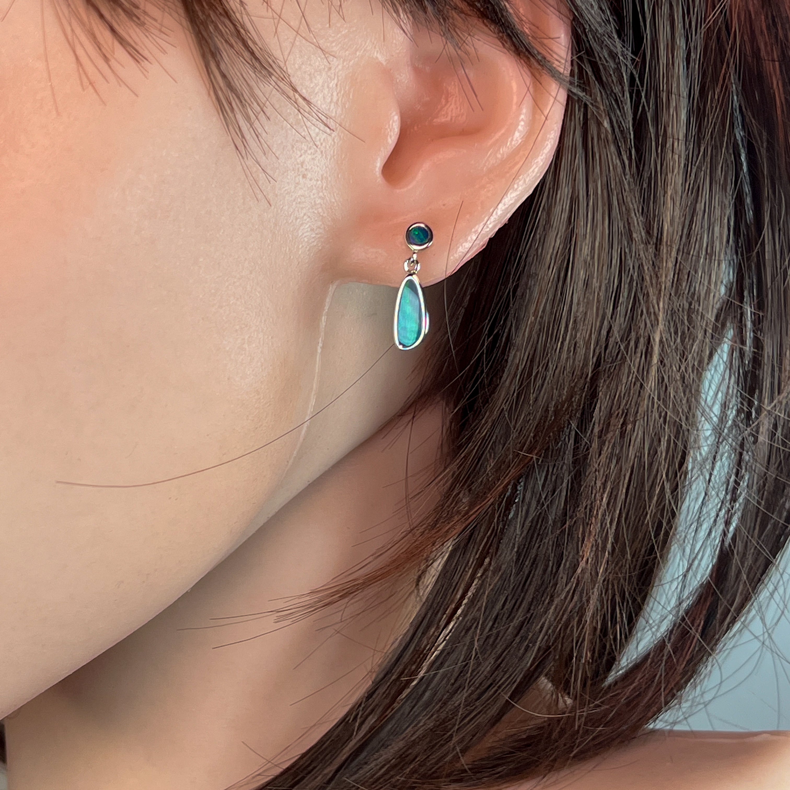 Sterling Silver Opal drop earrings Blue Green satin colours