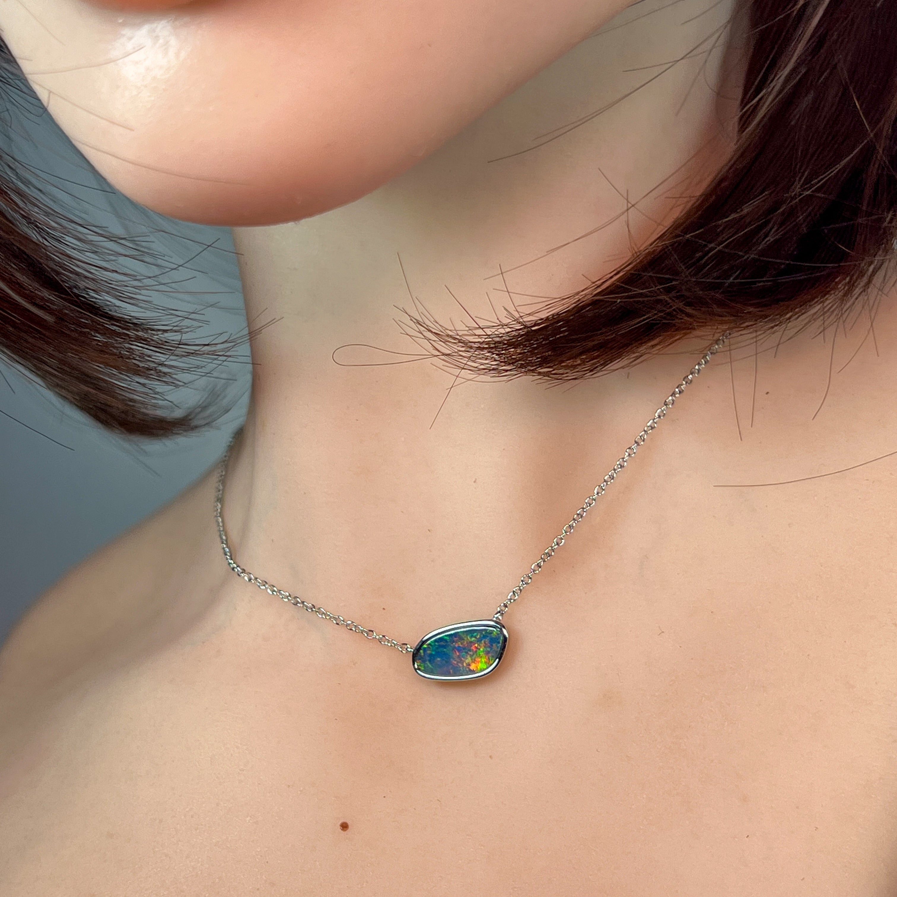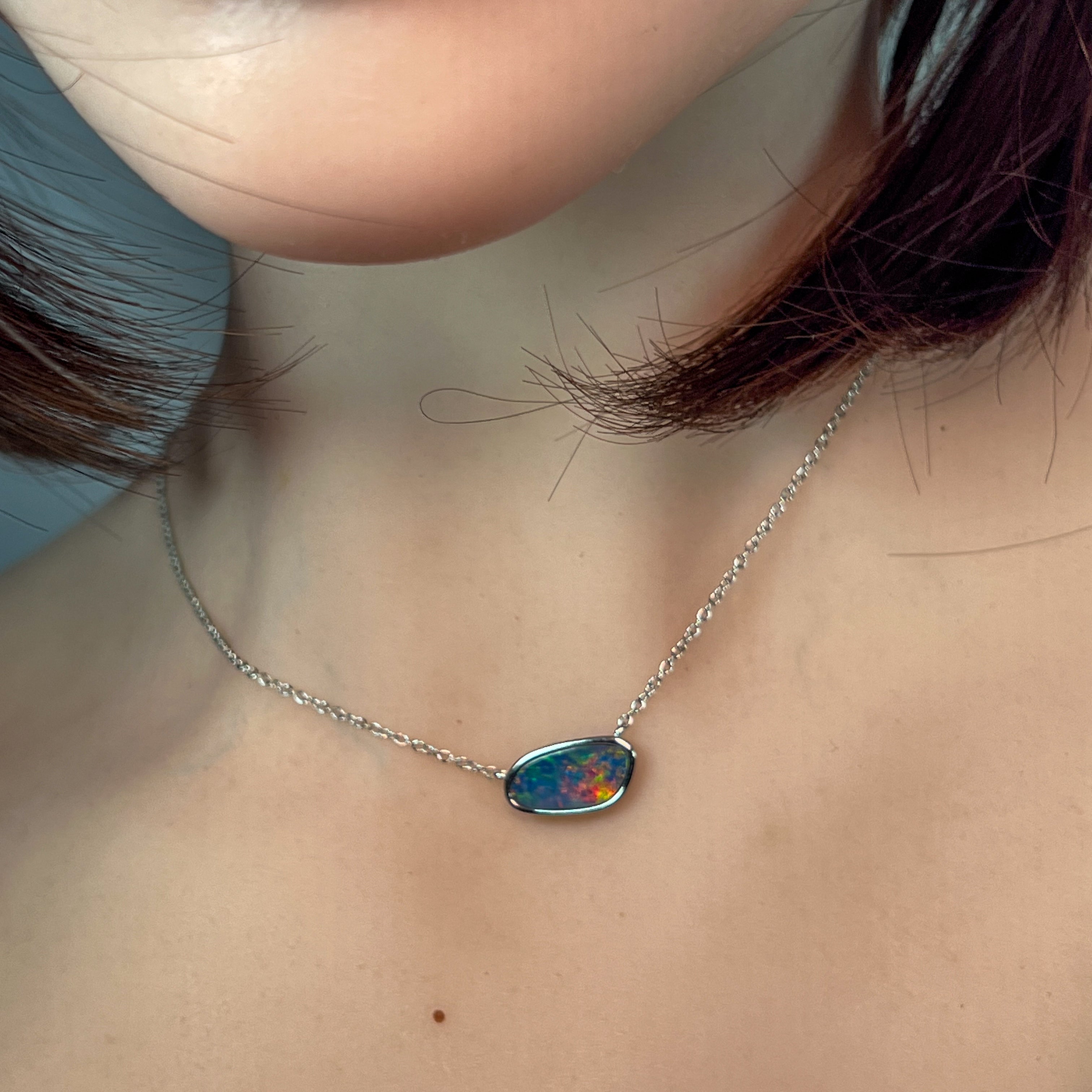 Sterling Silver freeform horizontal set Opal doublet necklace