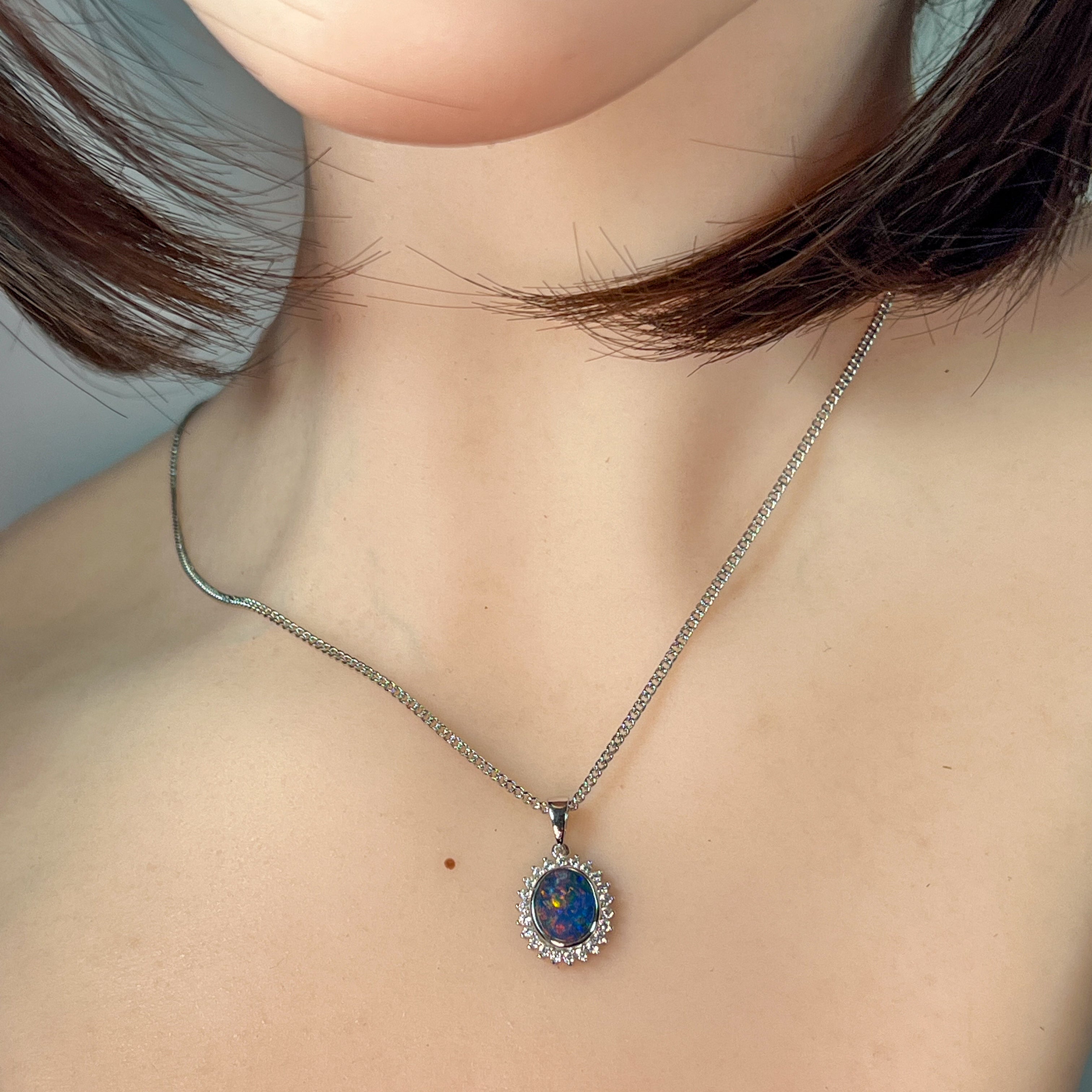 Sterling Silver Opal 8x6mm Opal triplet in bezel set pendant design