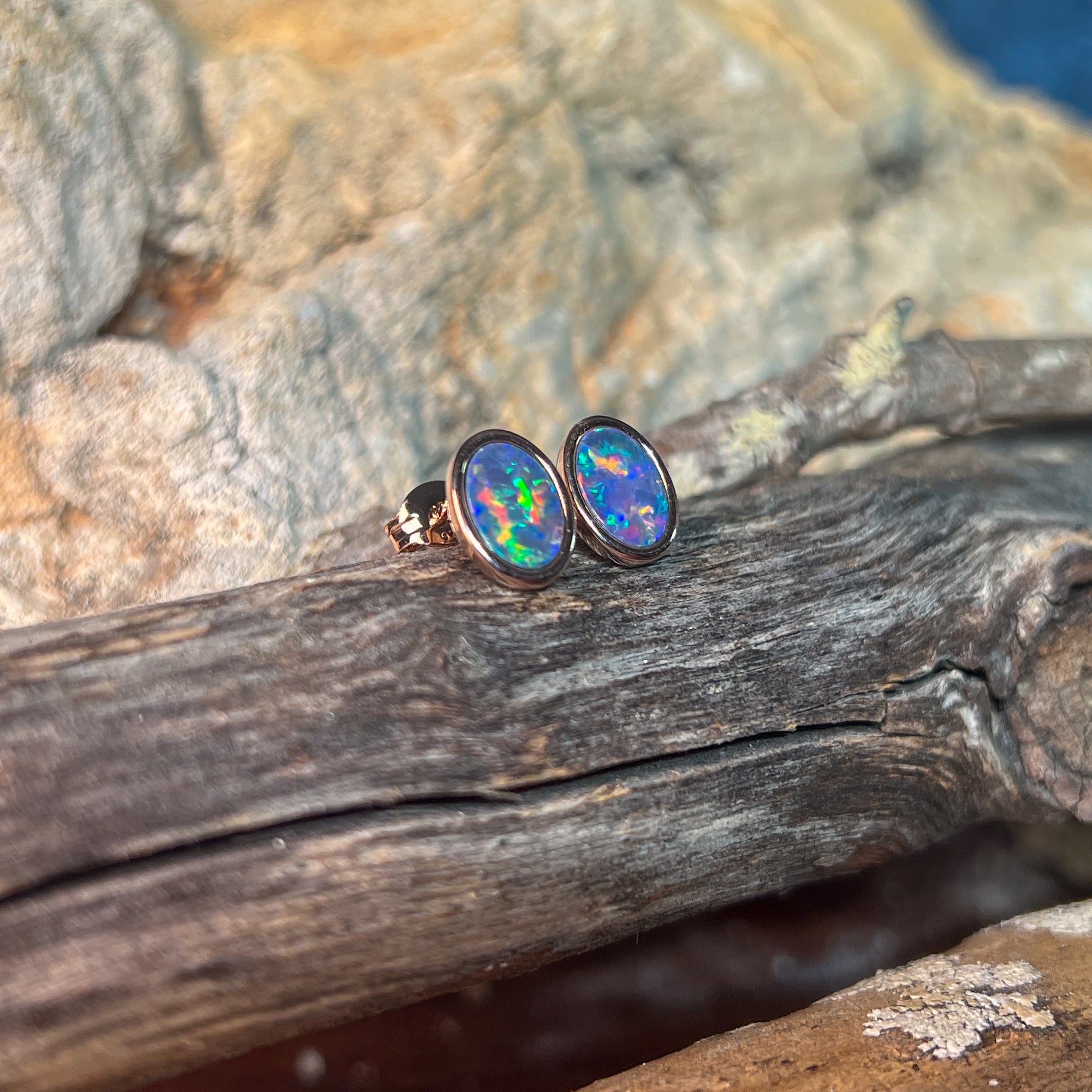 Rose Gold Plate Silver Oval Opal doublet 8x6mm studs