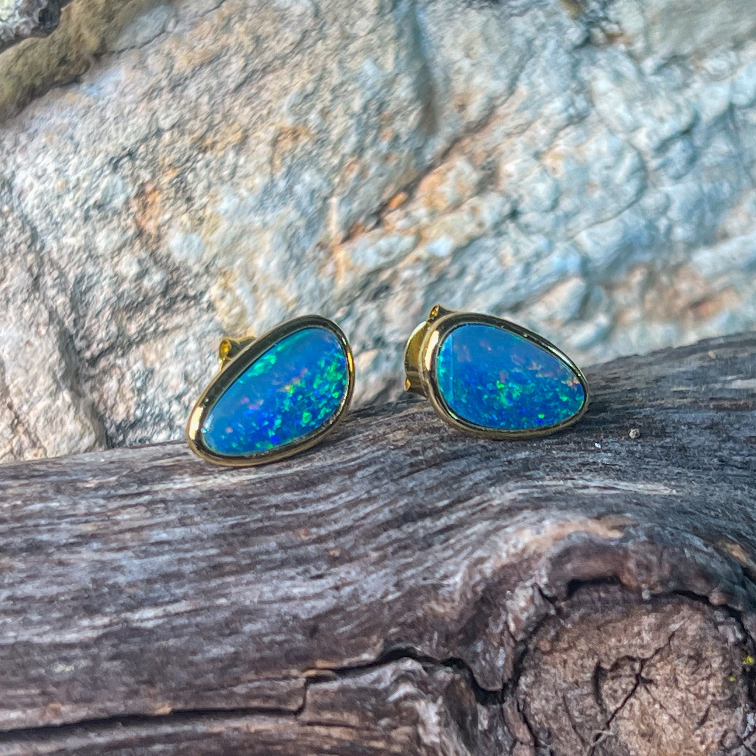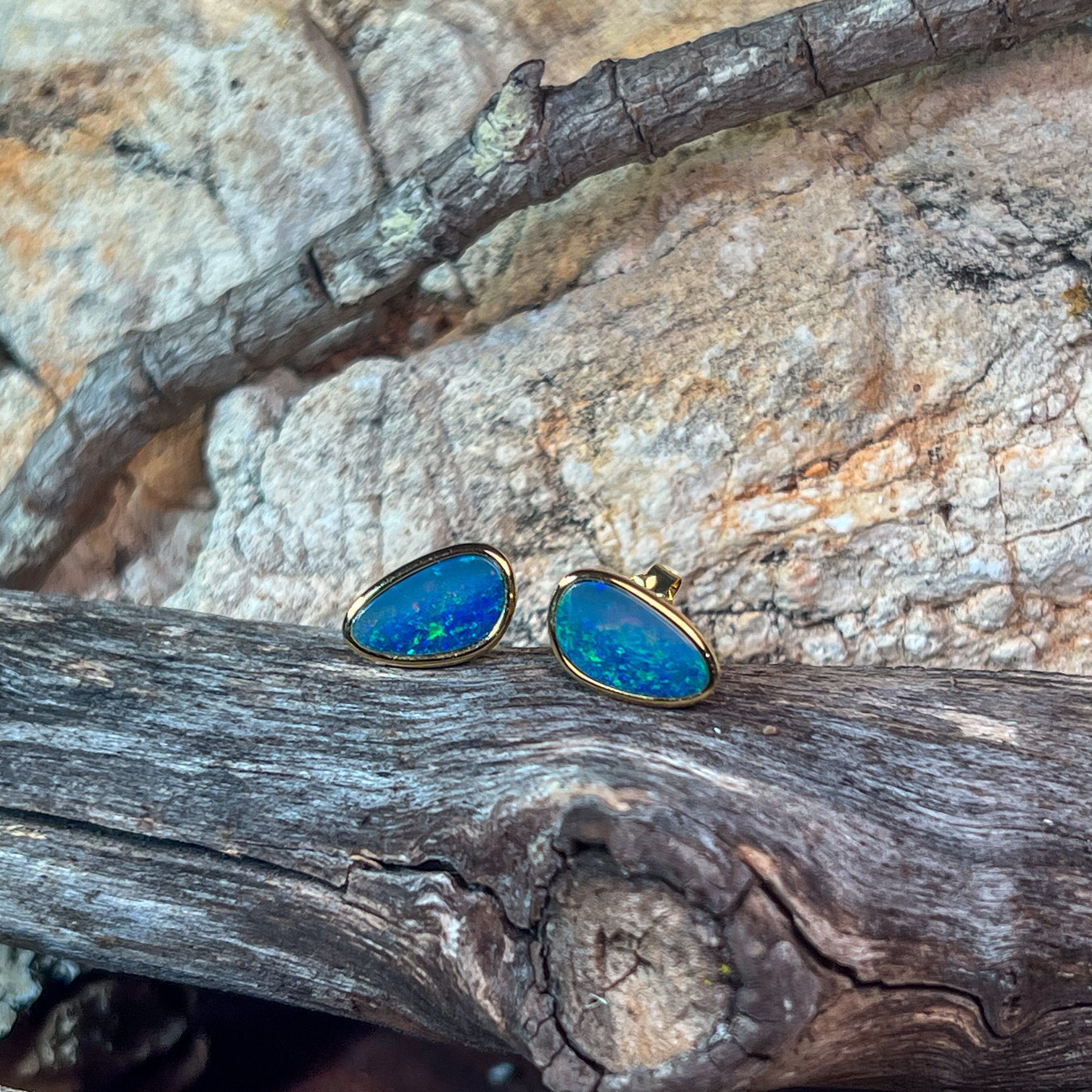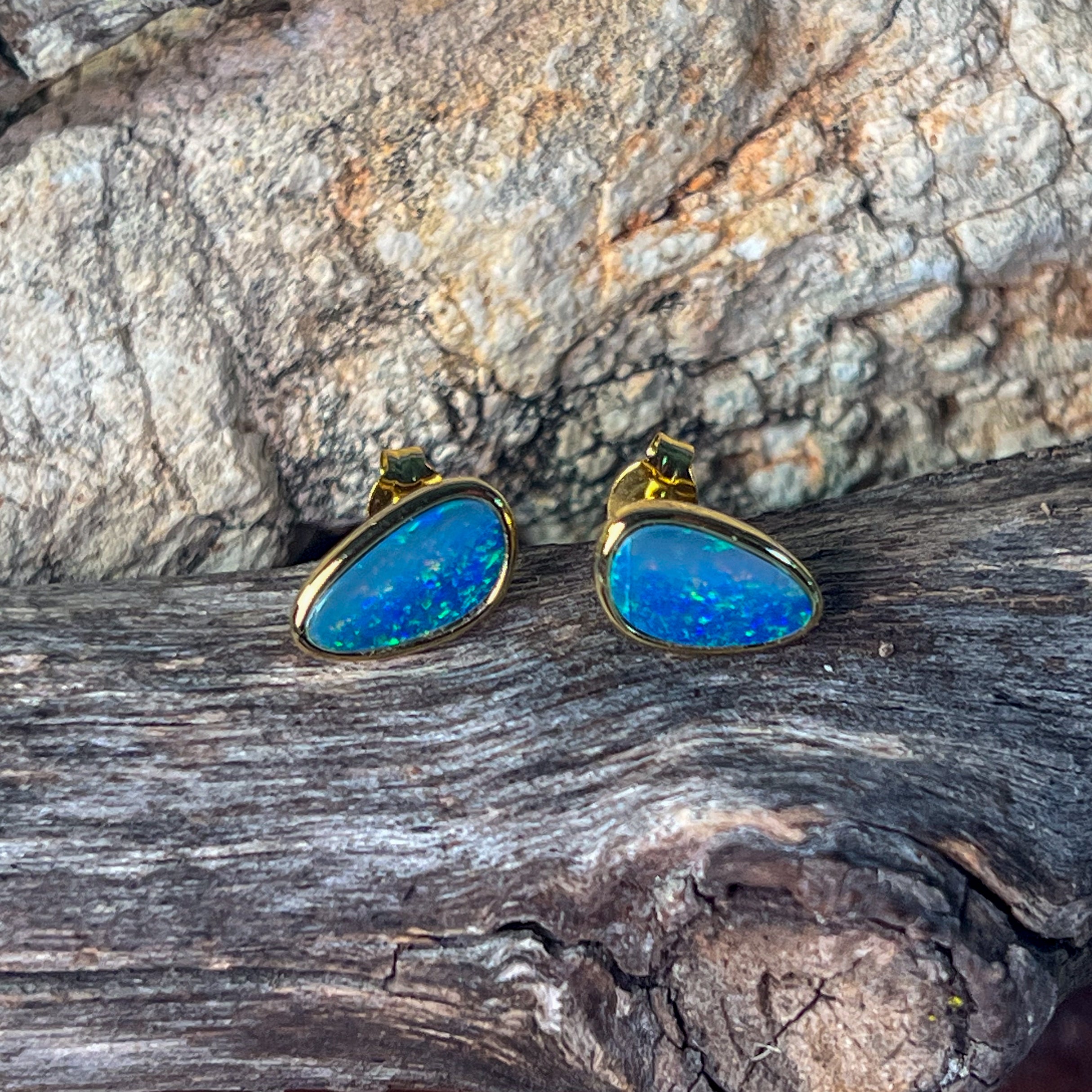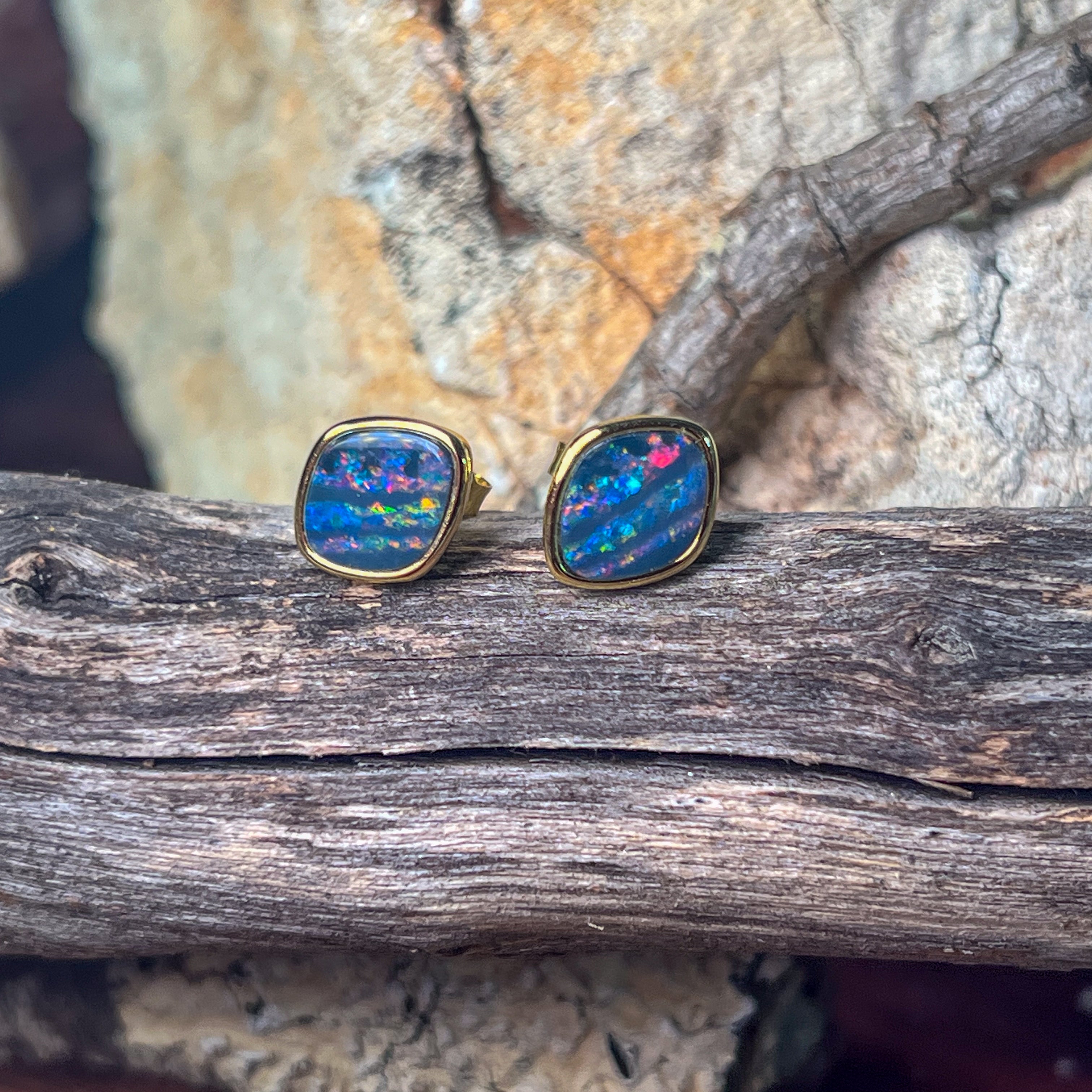 Gold Plated Sterling Silver triangluar freeform Opal doublet studs
