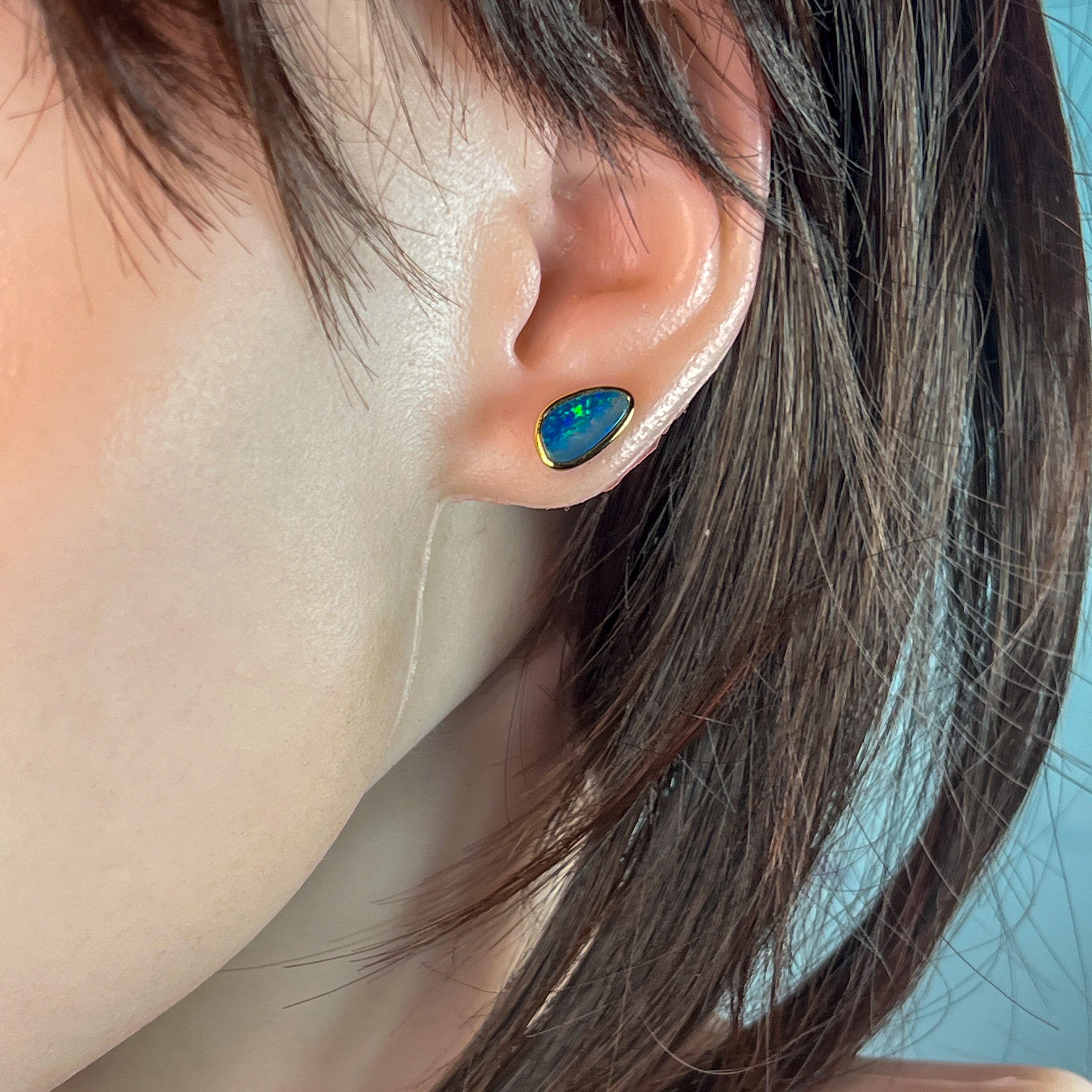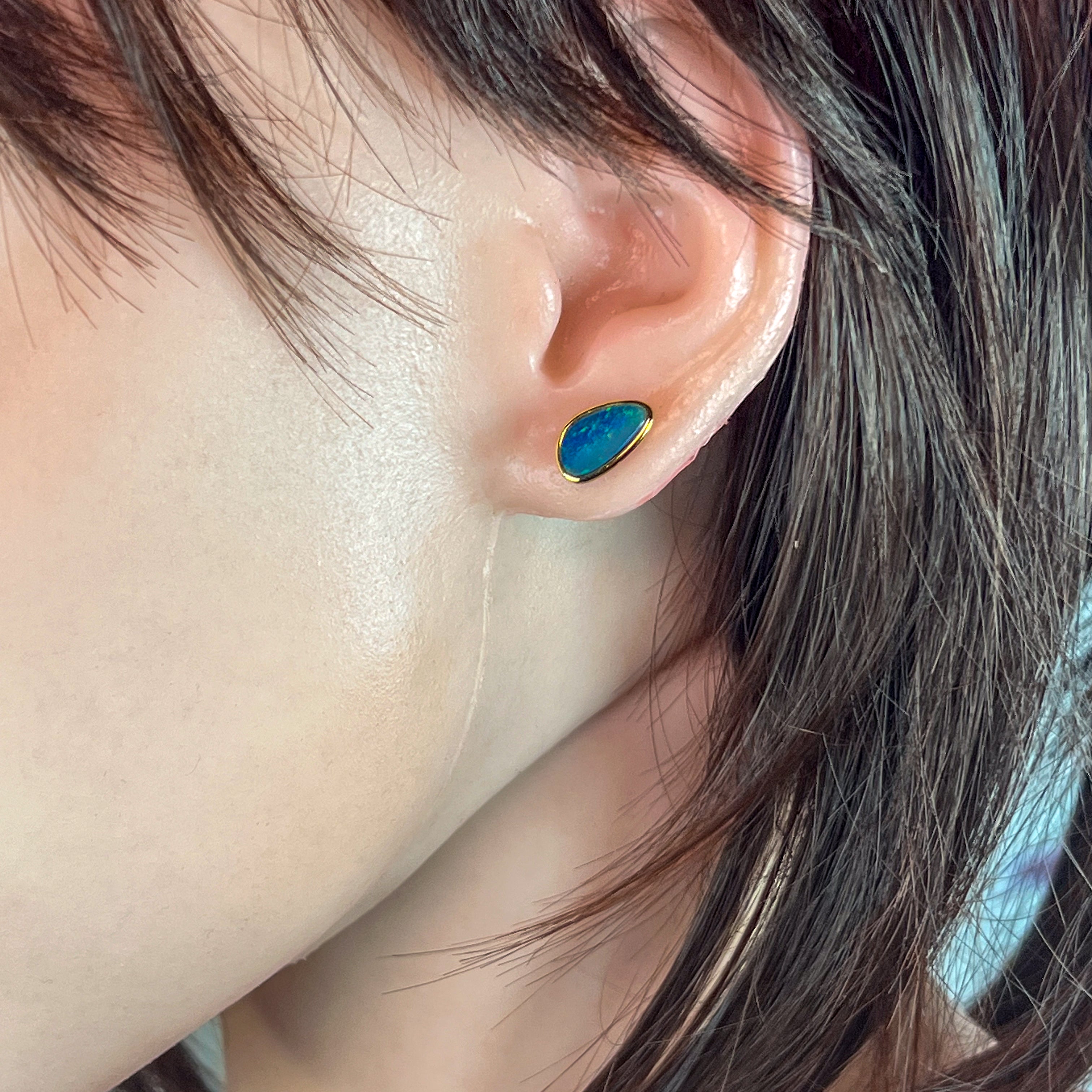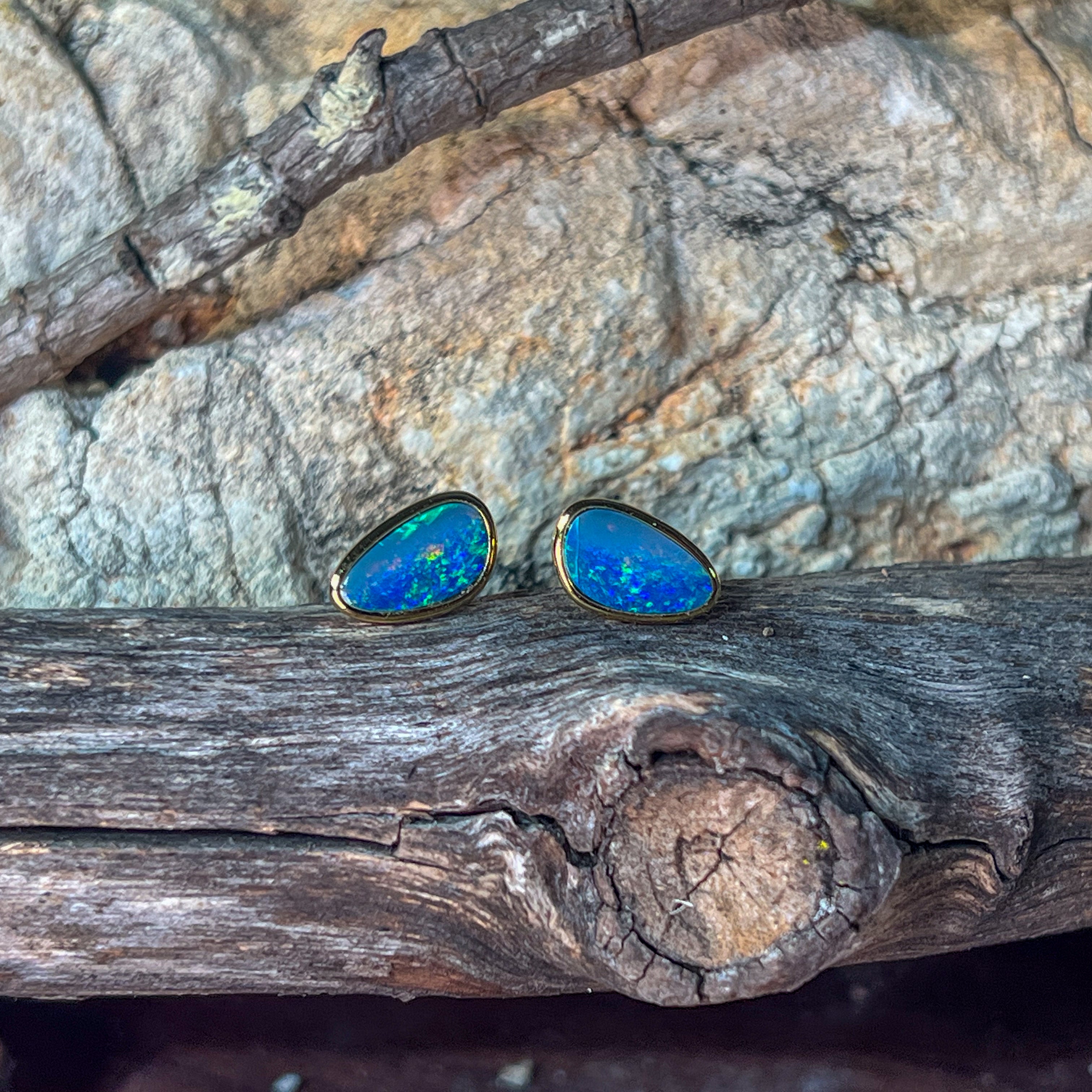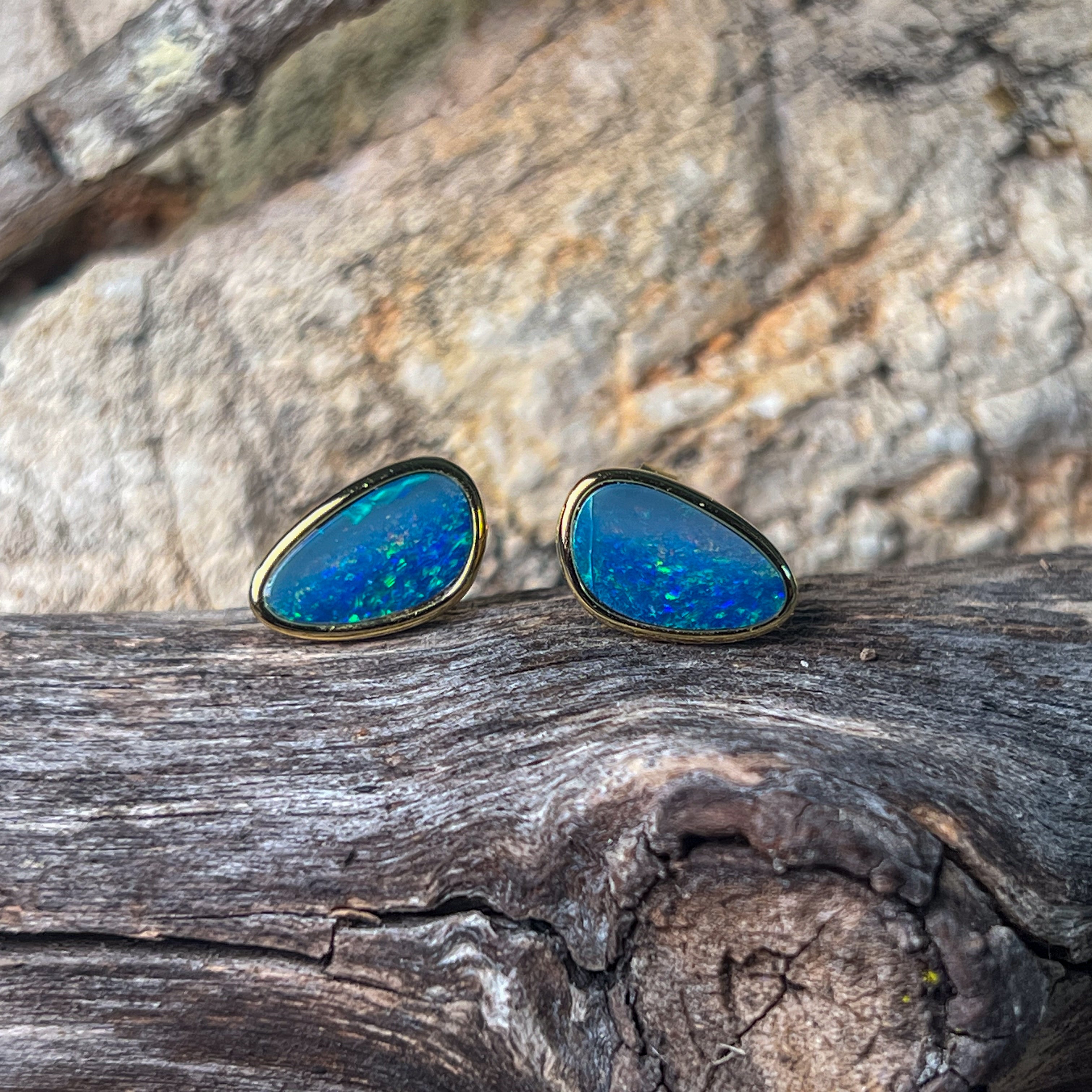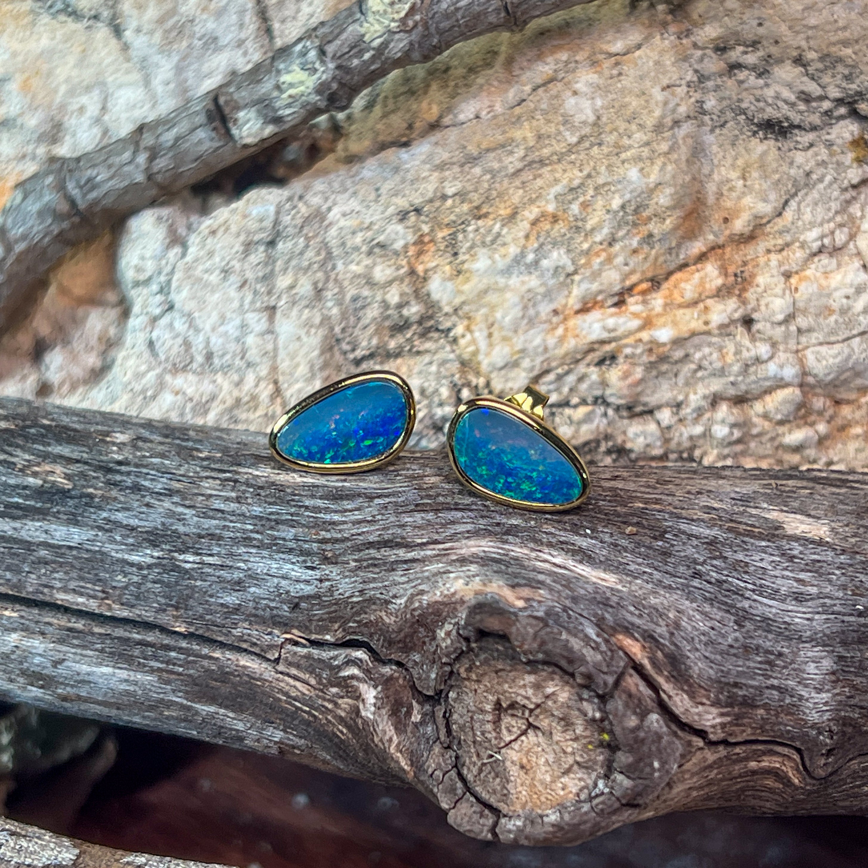 Gold Plated Sterling Silver triangluar freeform Opal doublet studs