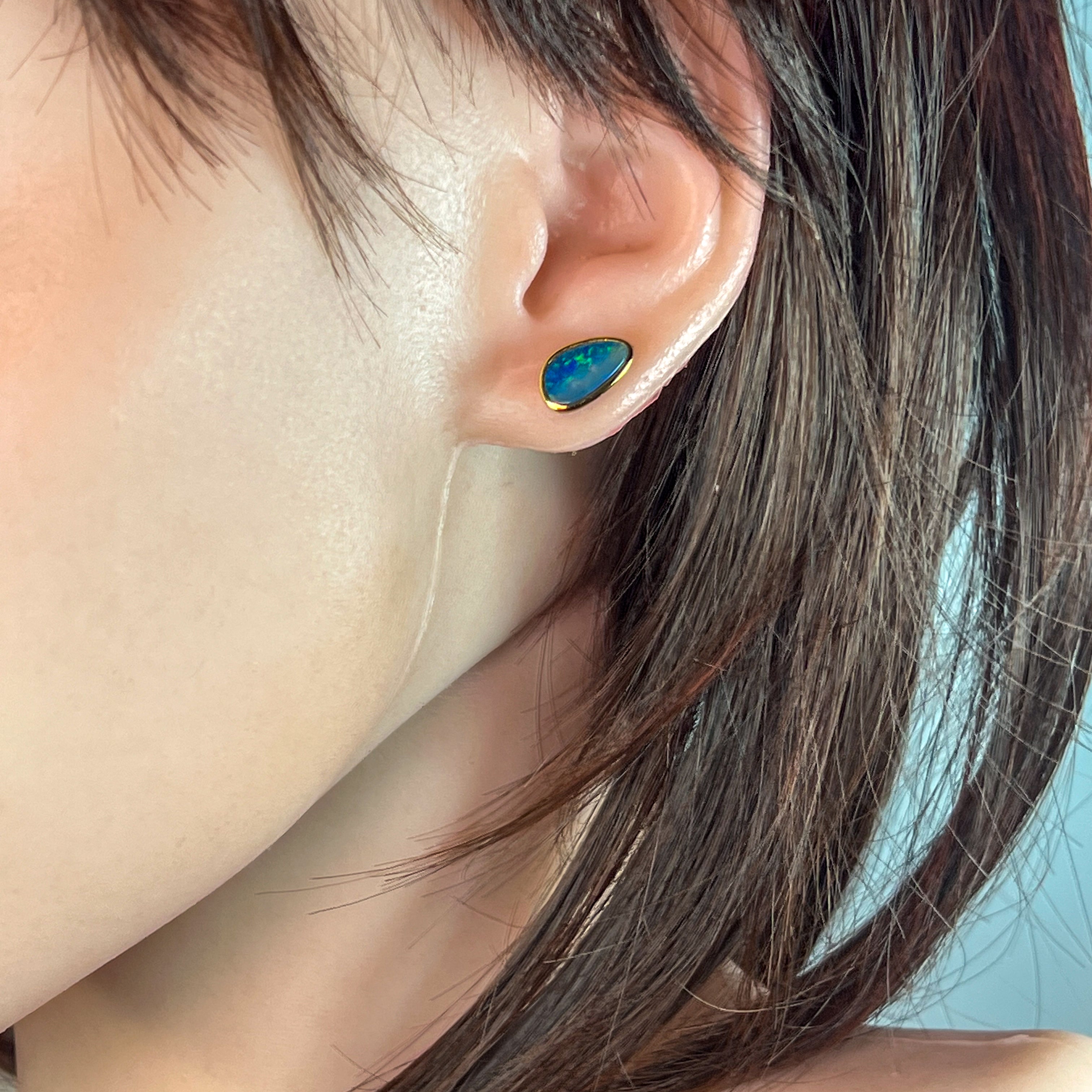 Gold Plated Sterling Silver Opal doublet bezel set stud earrings