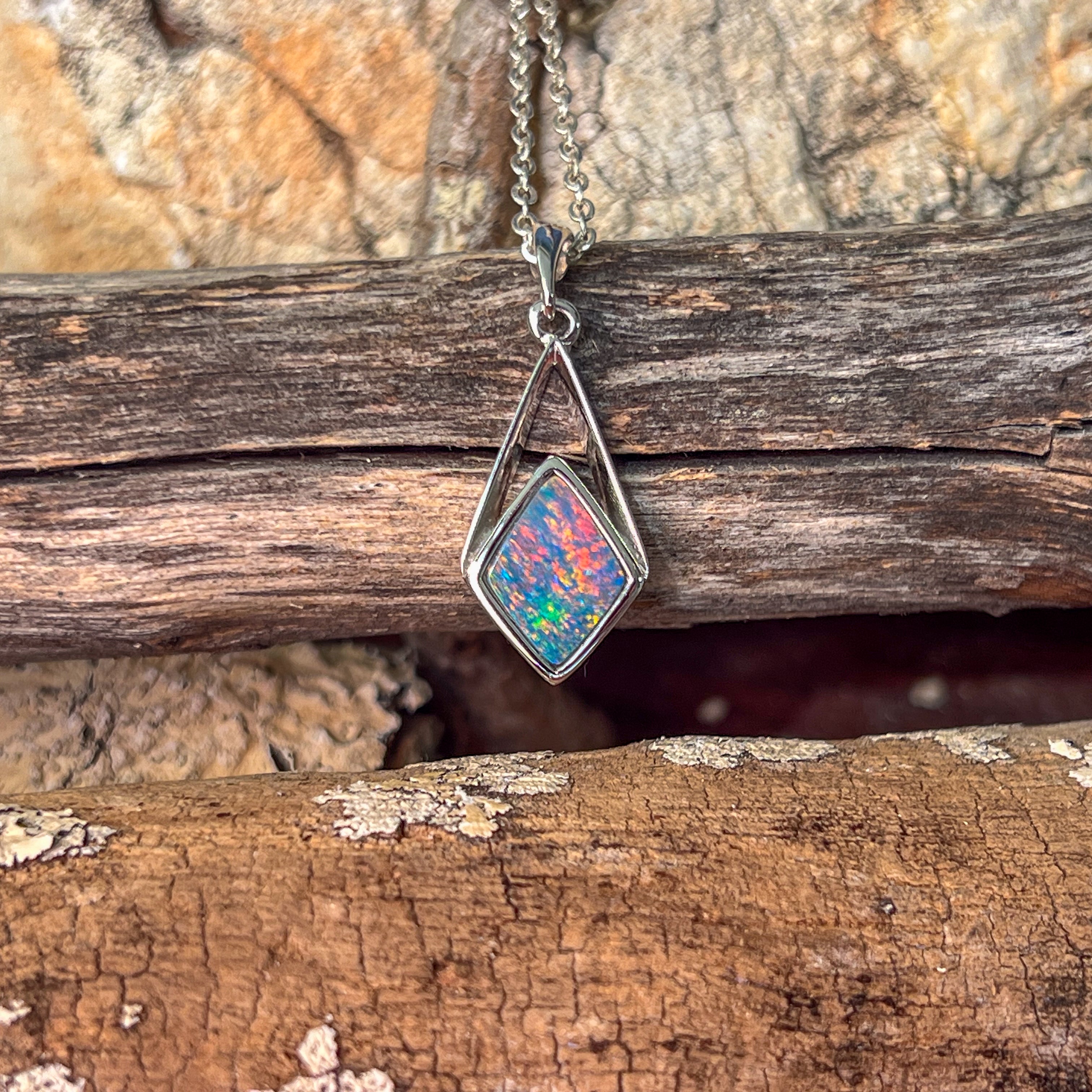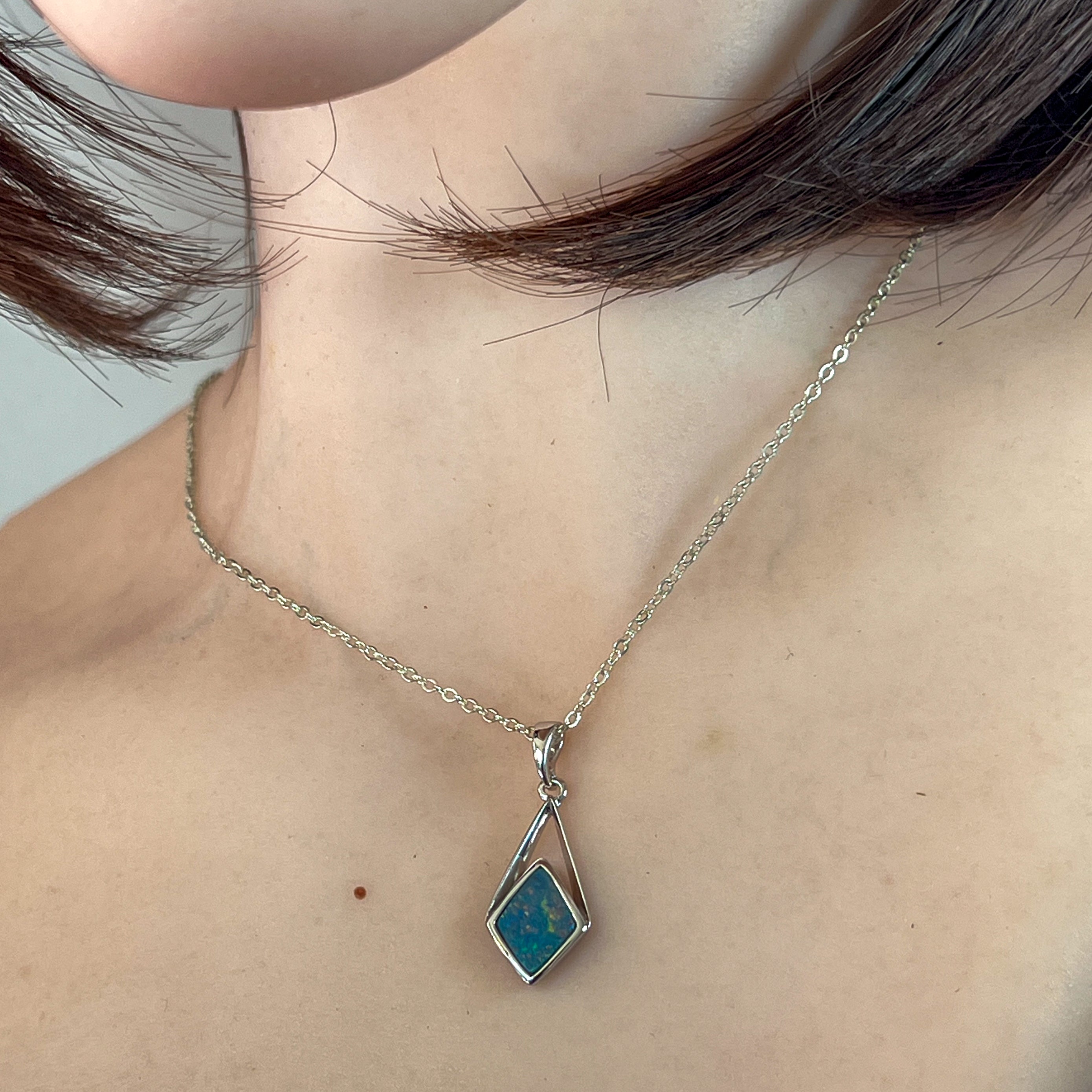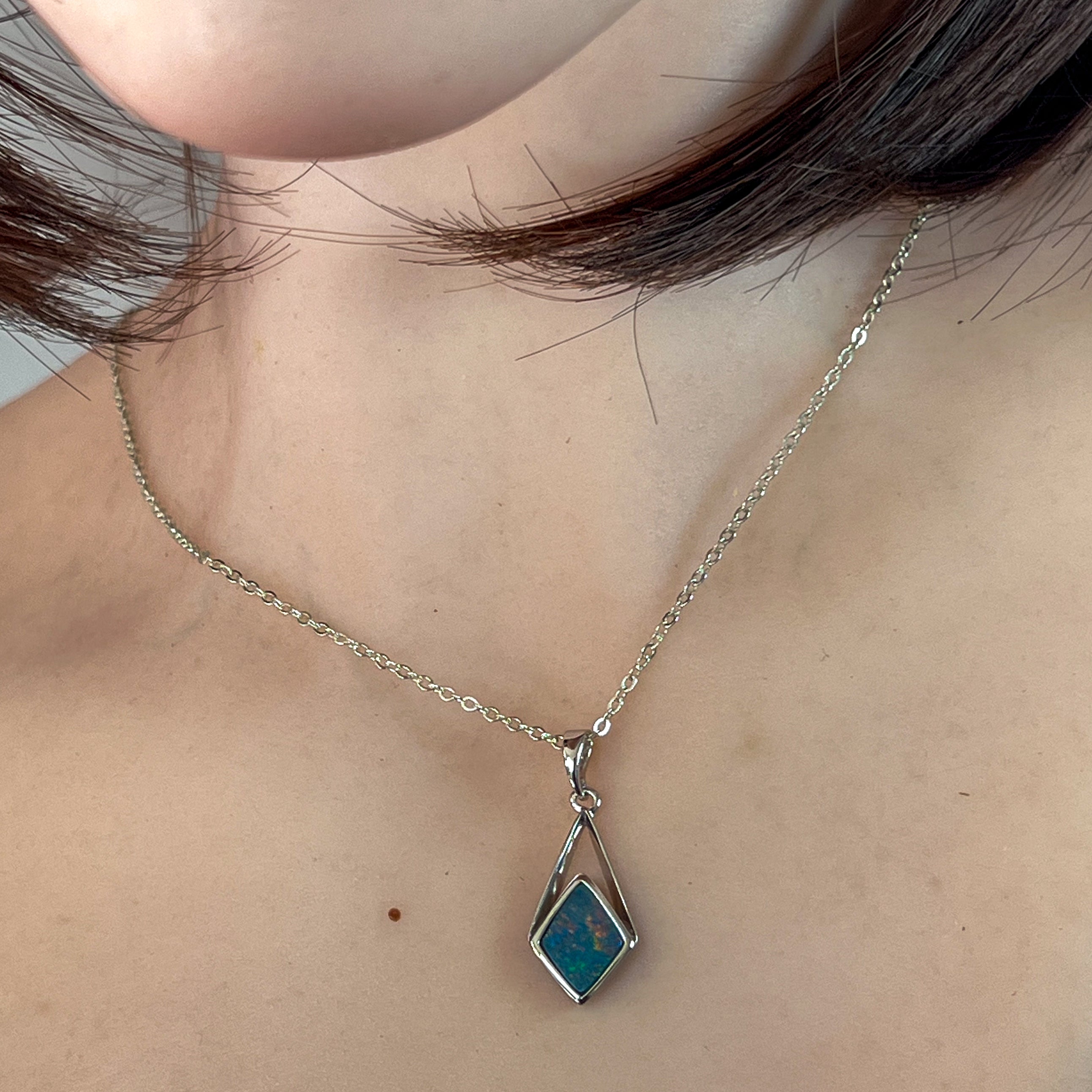Sterling Silver diamond shape Opal doublet pendant