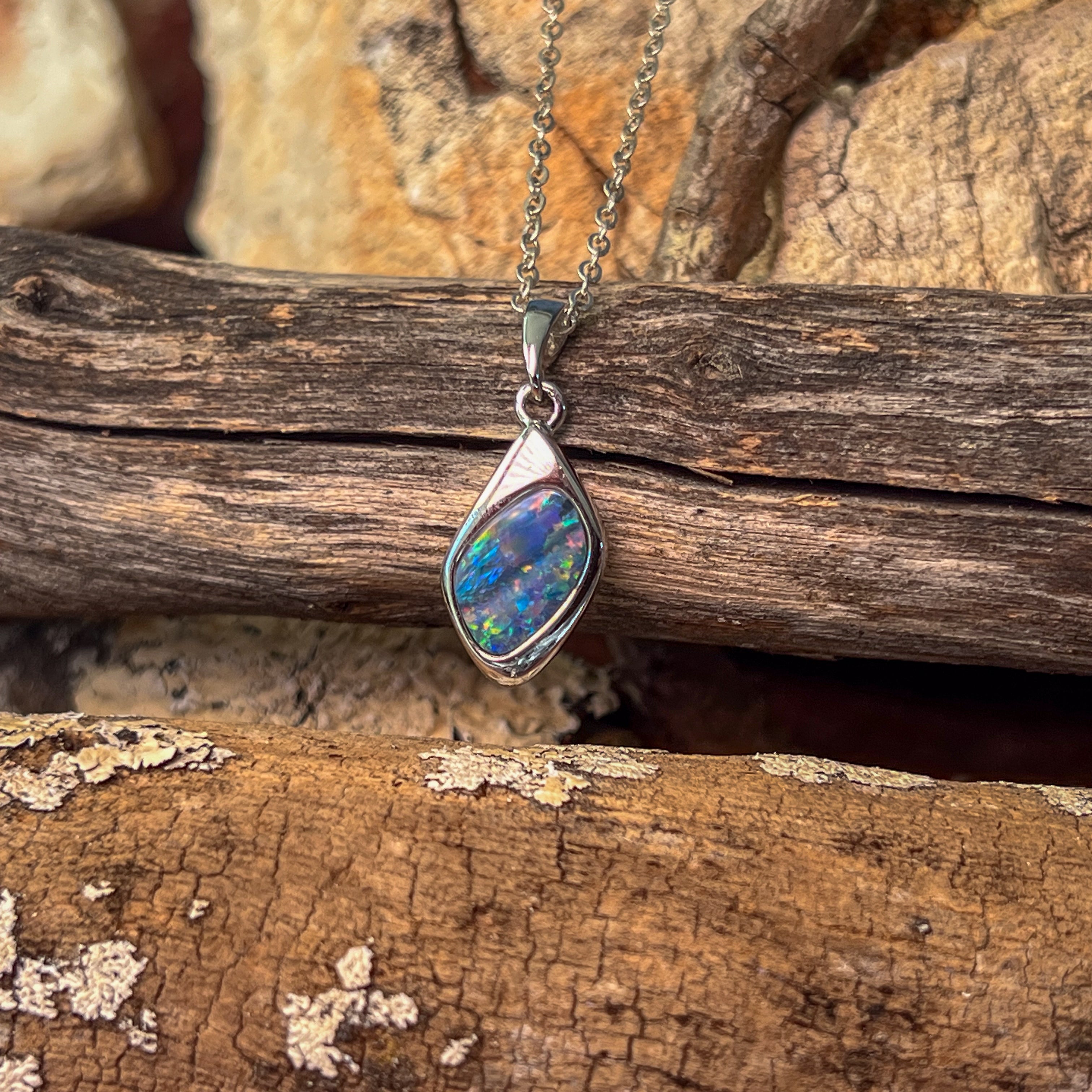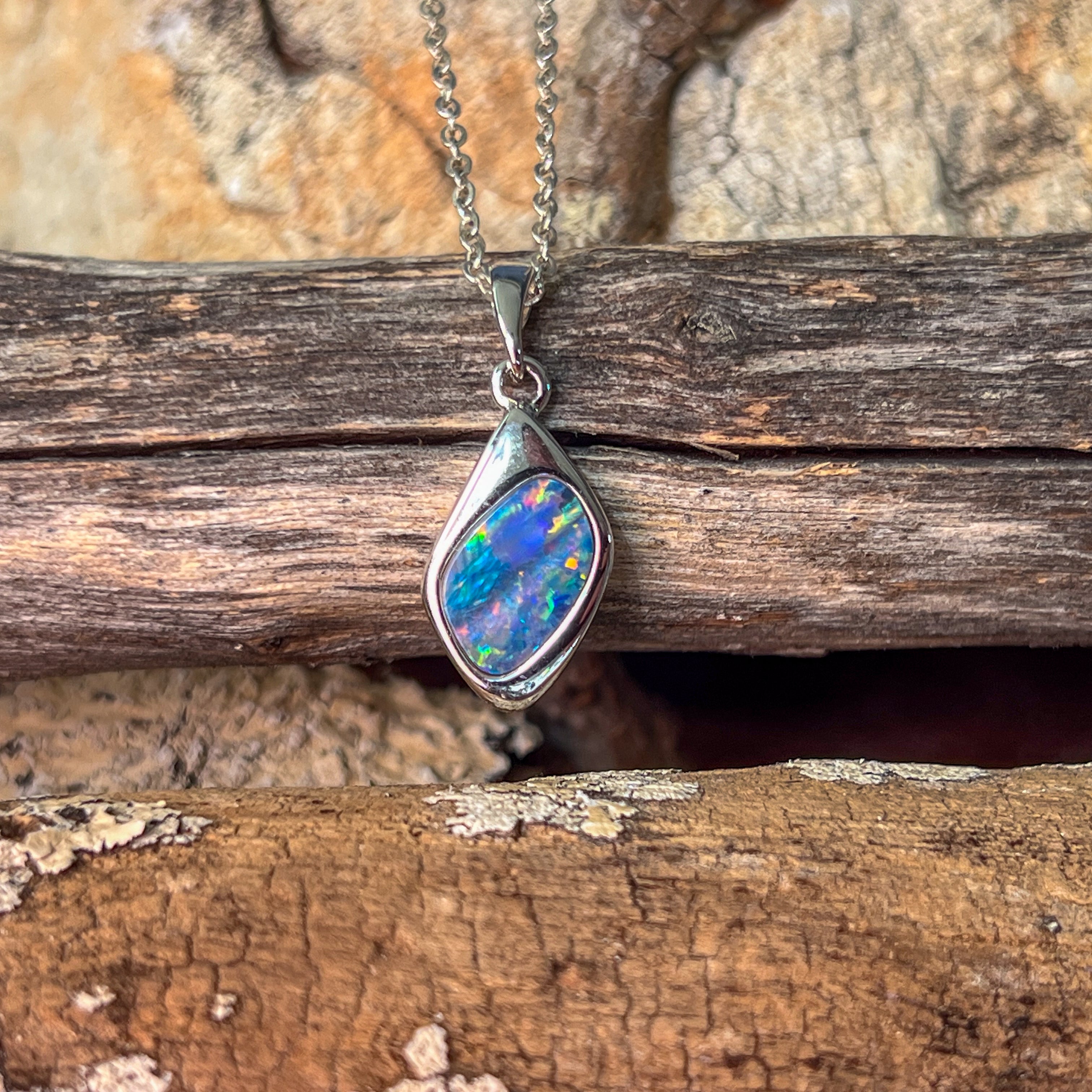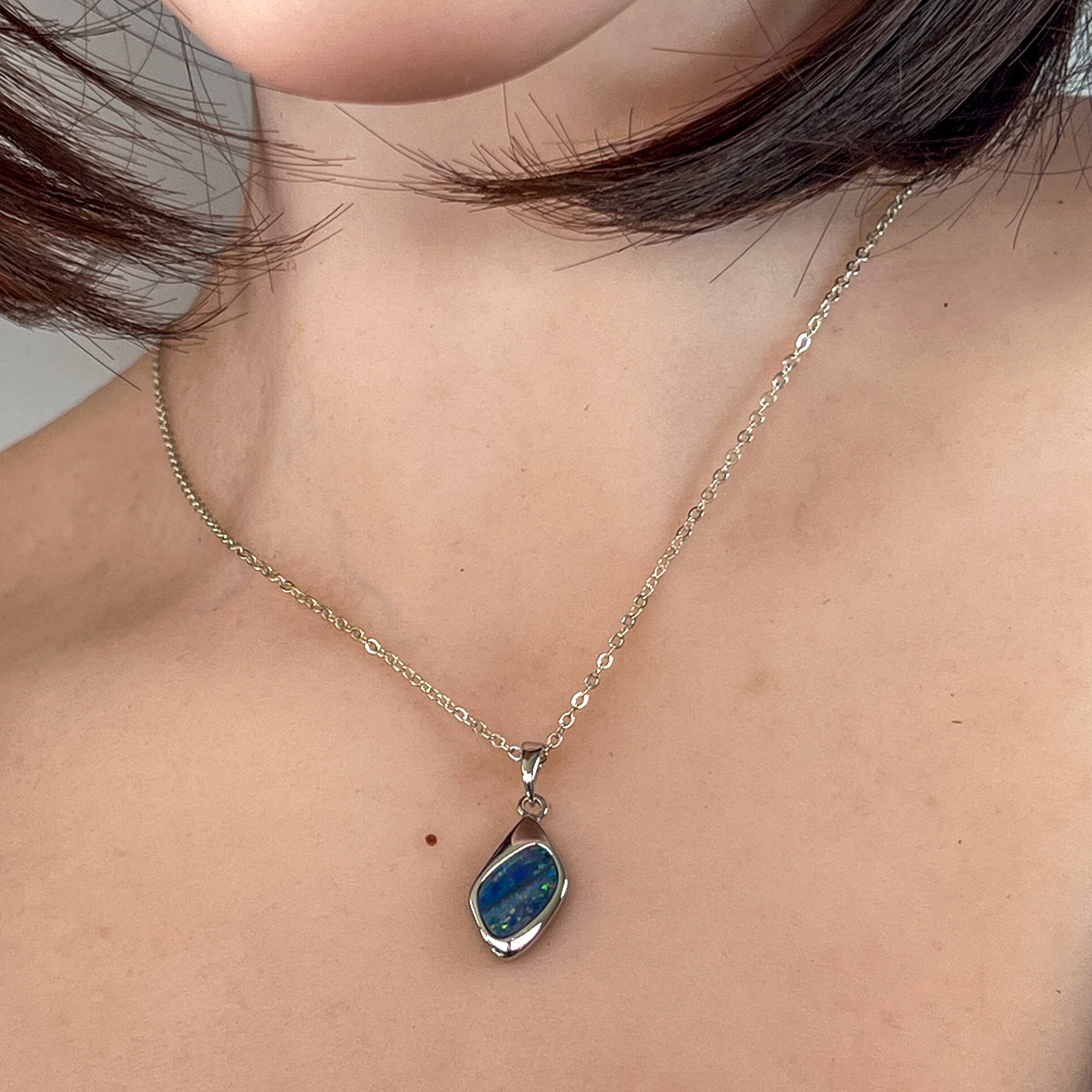Sterling Silver diamond shape Opal doublet pendant