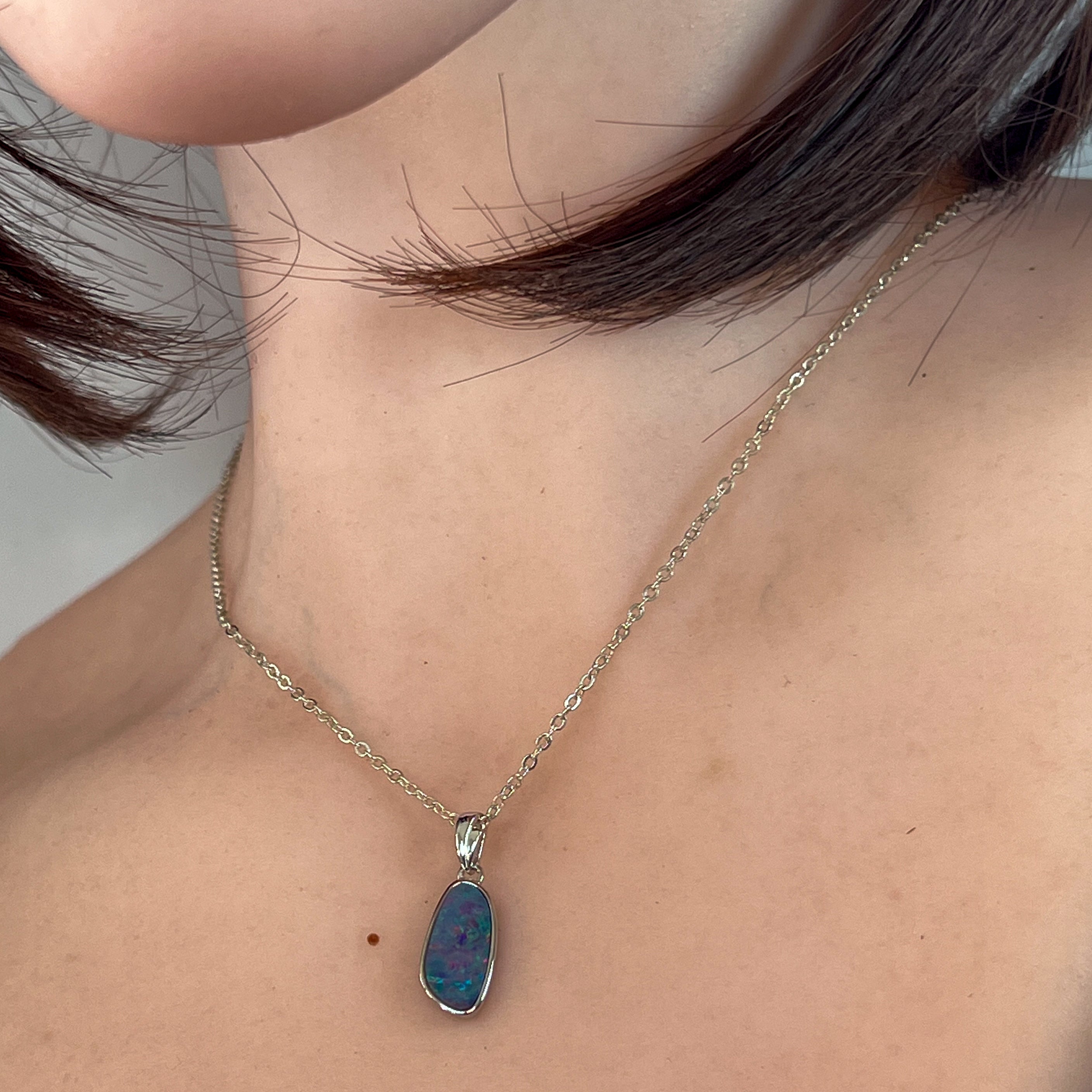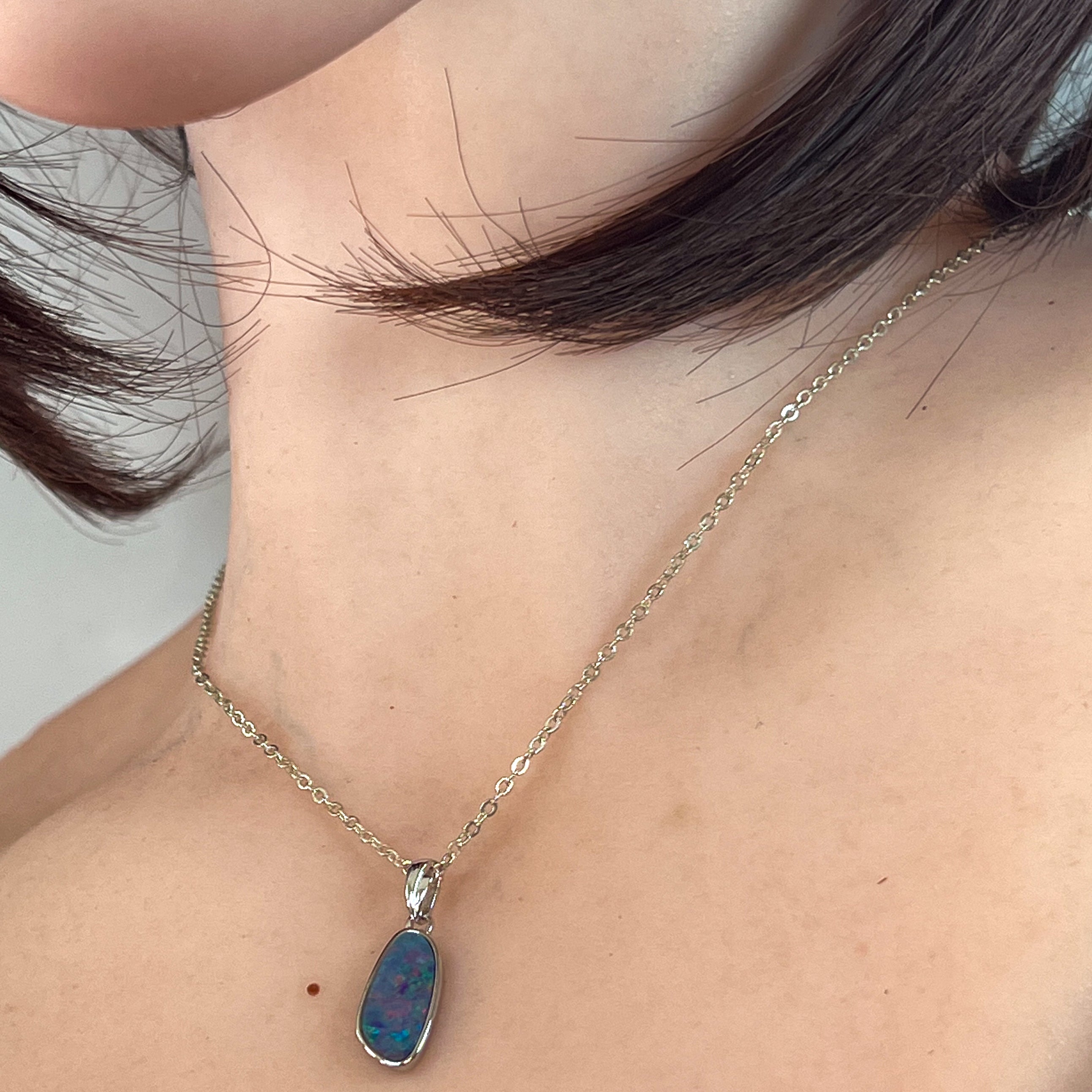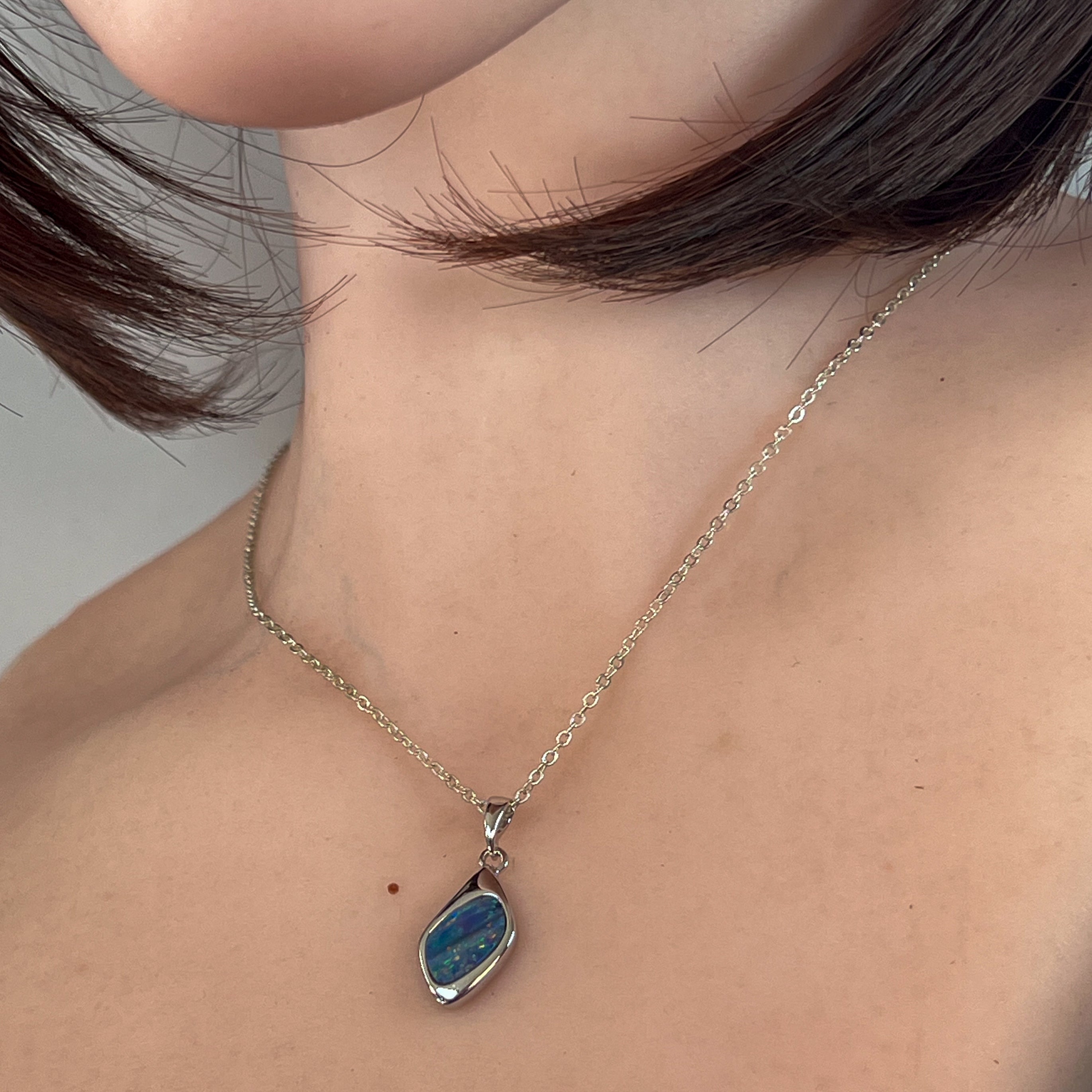 Sterling Silver freeform shap opal doublet 13x7mm pendant