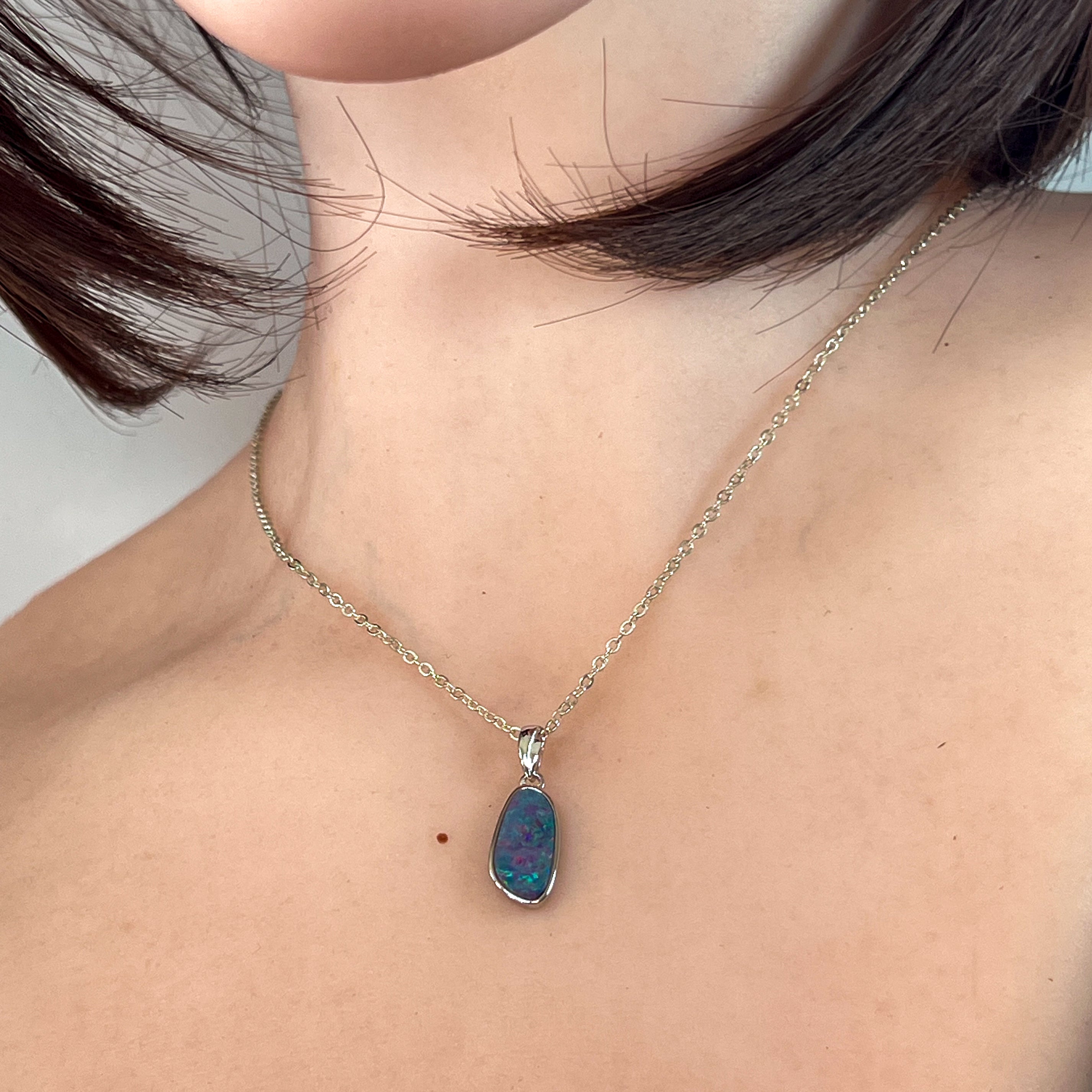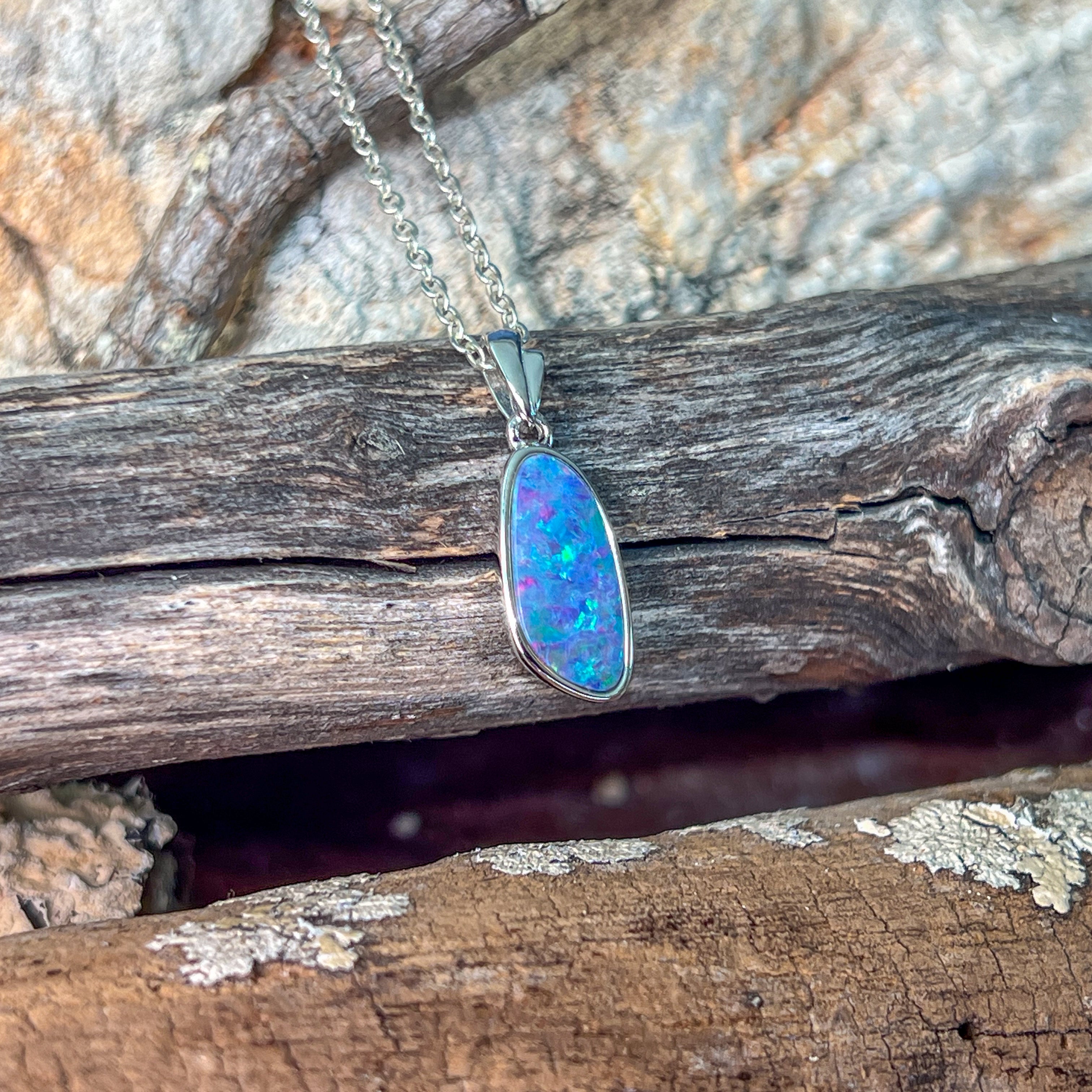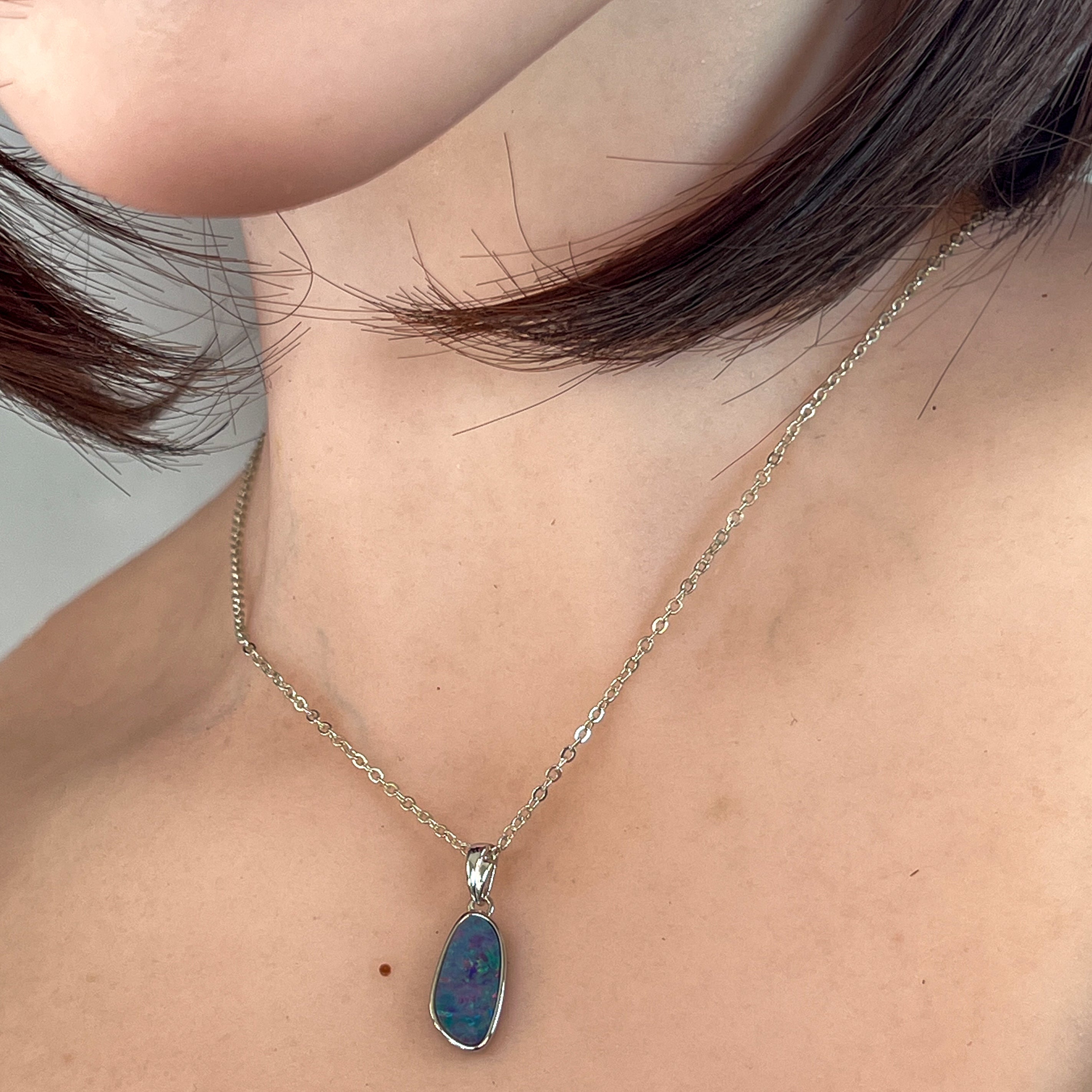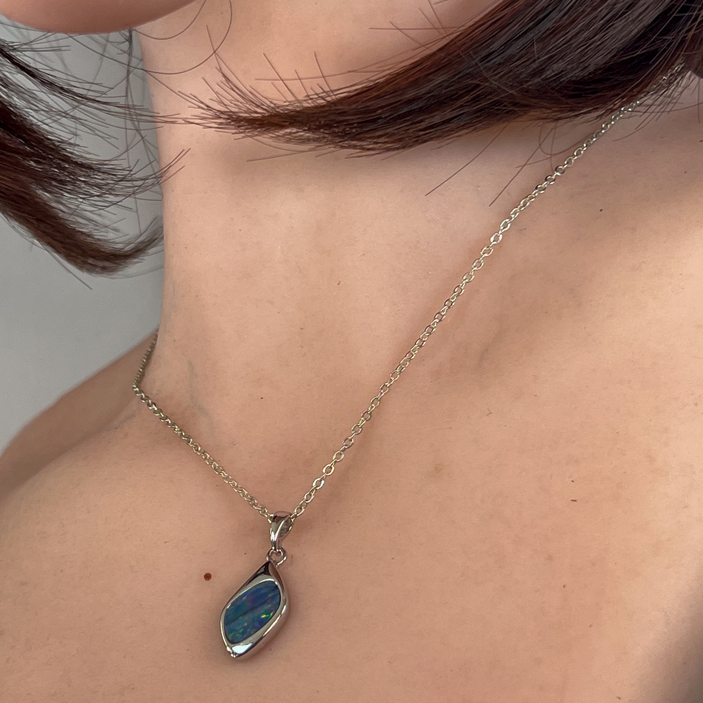 Sterling Silver freeform shap opal doublet 13x7mm pendant