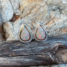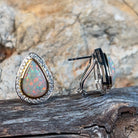 18kt White and yellow Gold statement pearshape Opal 7.67ct halo huggie studs