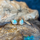 18kt Yellow Gold Crystal Opal 8x6mm and diamond studs