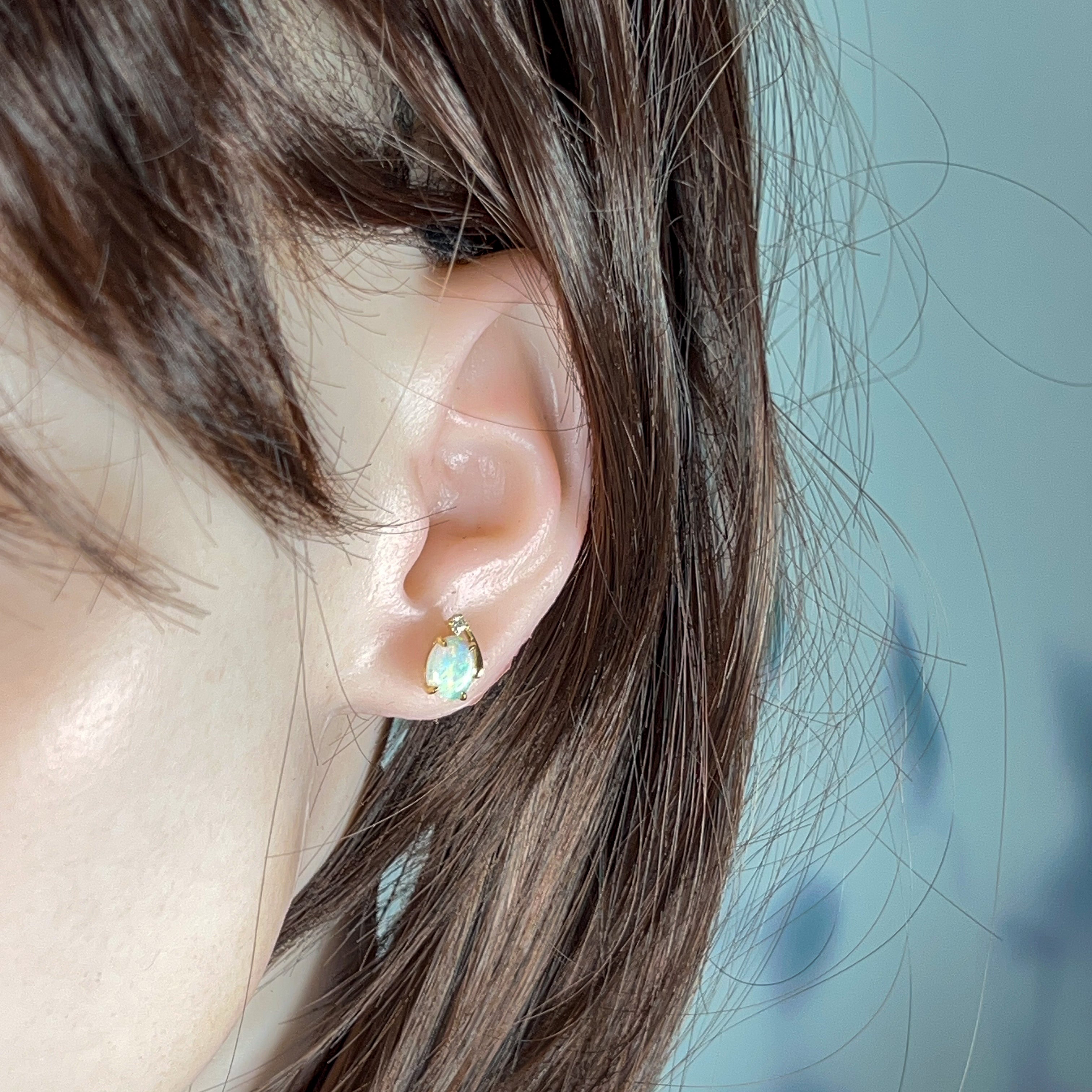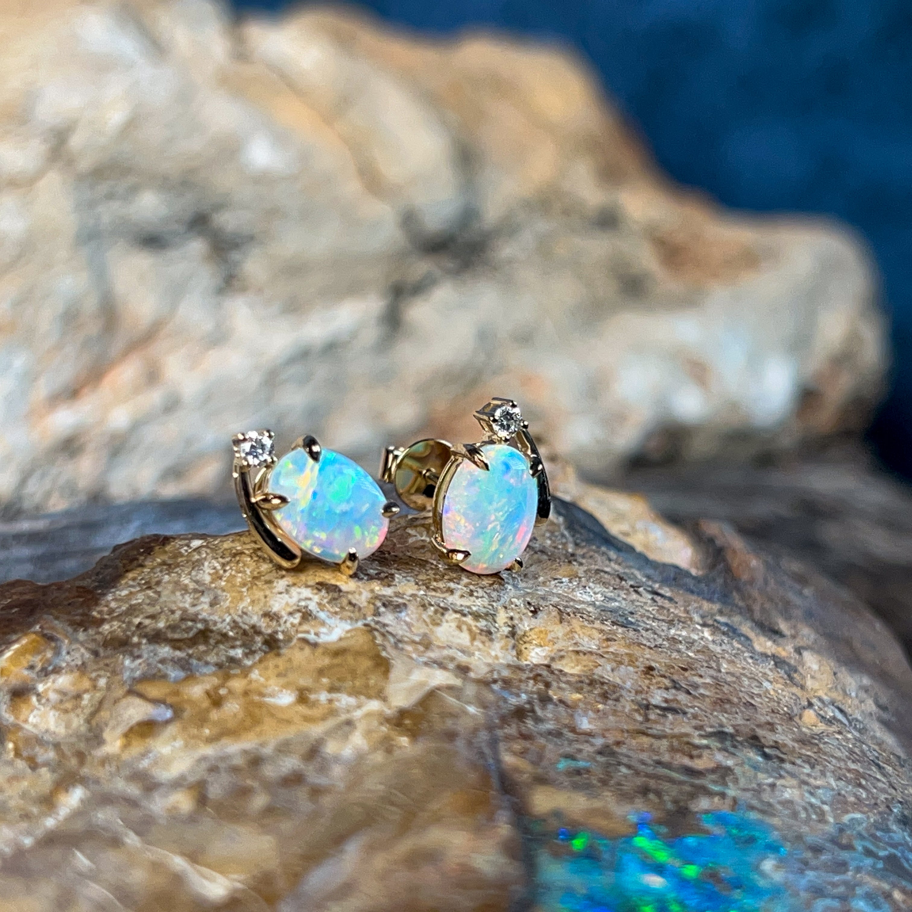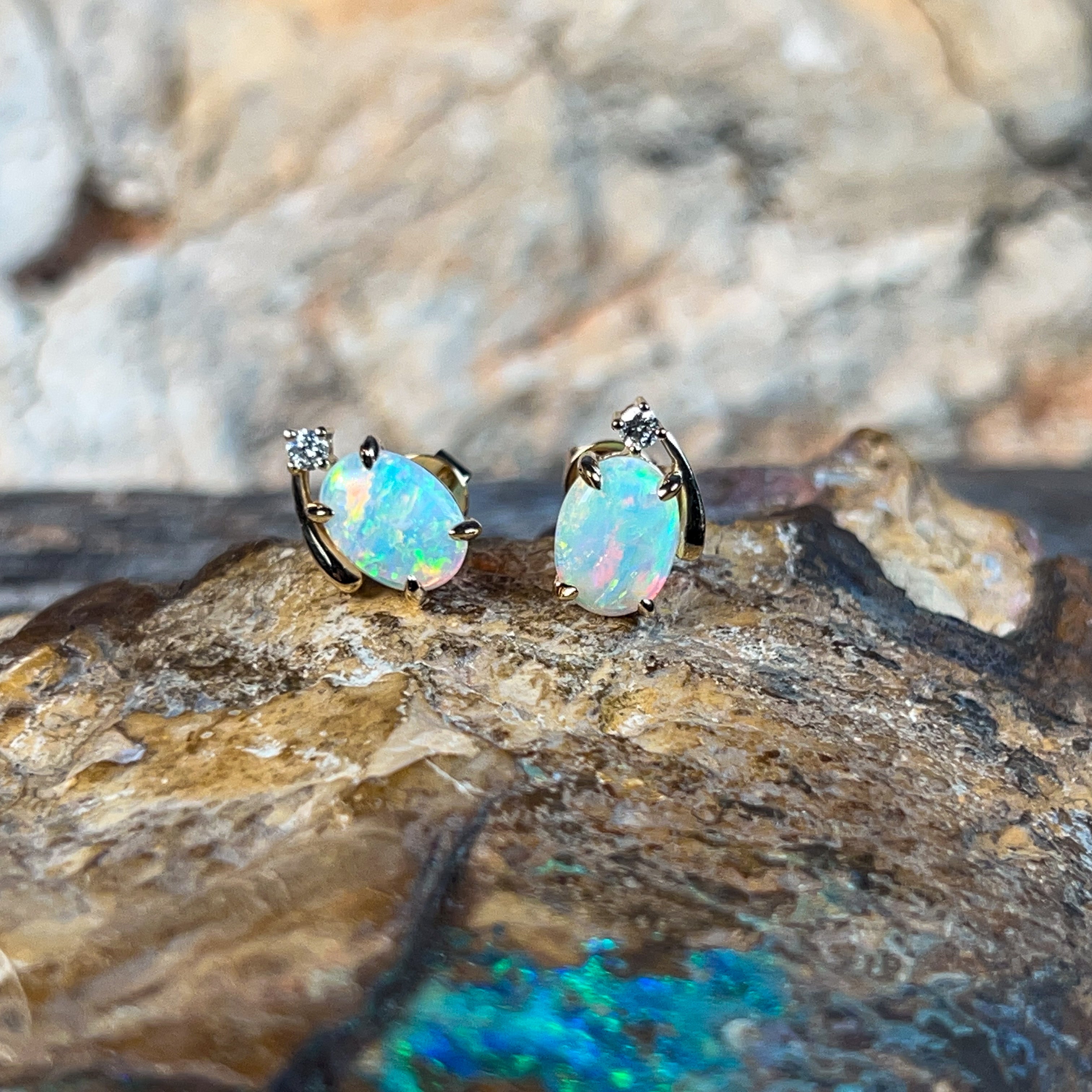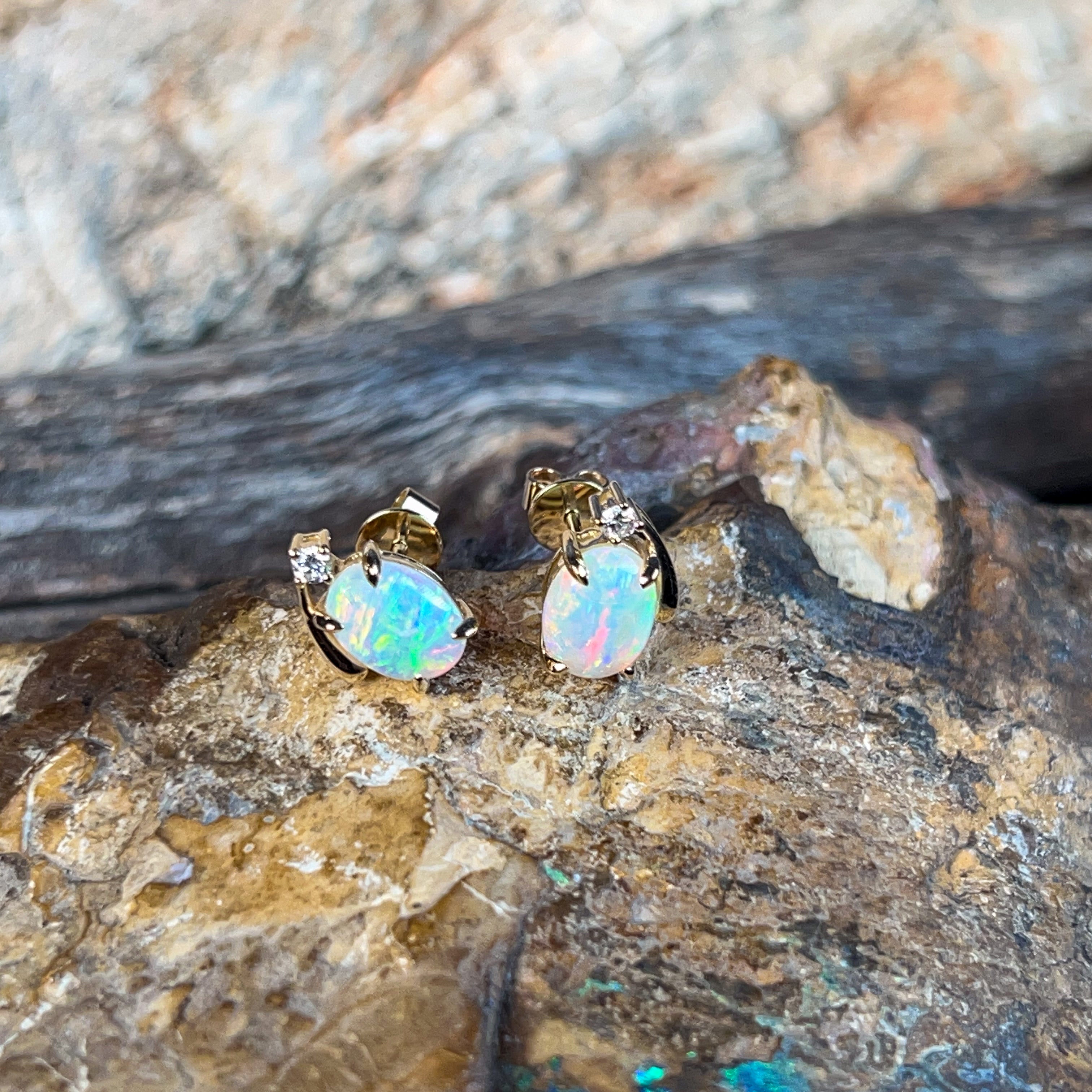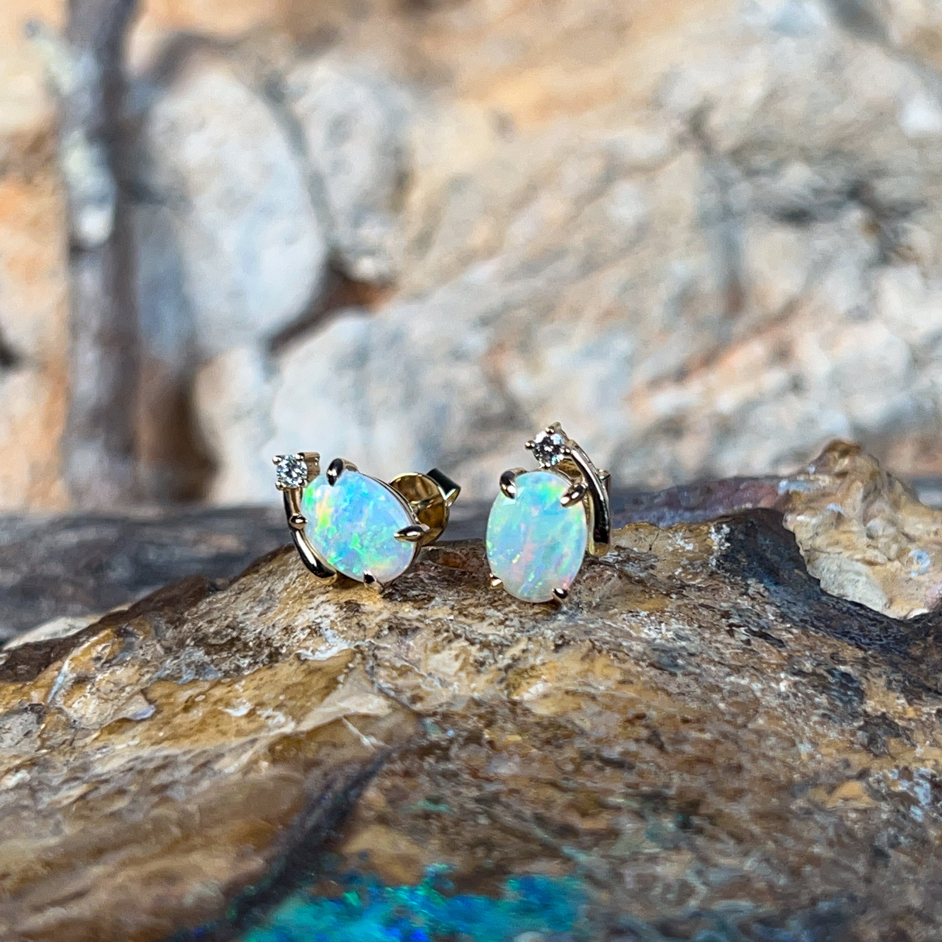 Elevate your everyday sparkle with these chic 18kt yellow gold studs featuring a stunning 8x6mm crystal opal paired with complementary diamonds. The perfect balance of colour and brilliance, these modern studs slip seamlessly from office to evening, catching light with every turn of your head. Timeless elegance meets contemporary style in a design that's anything but ordinary.