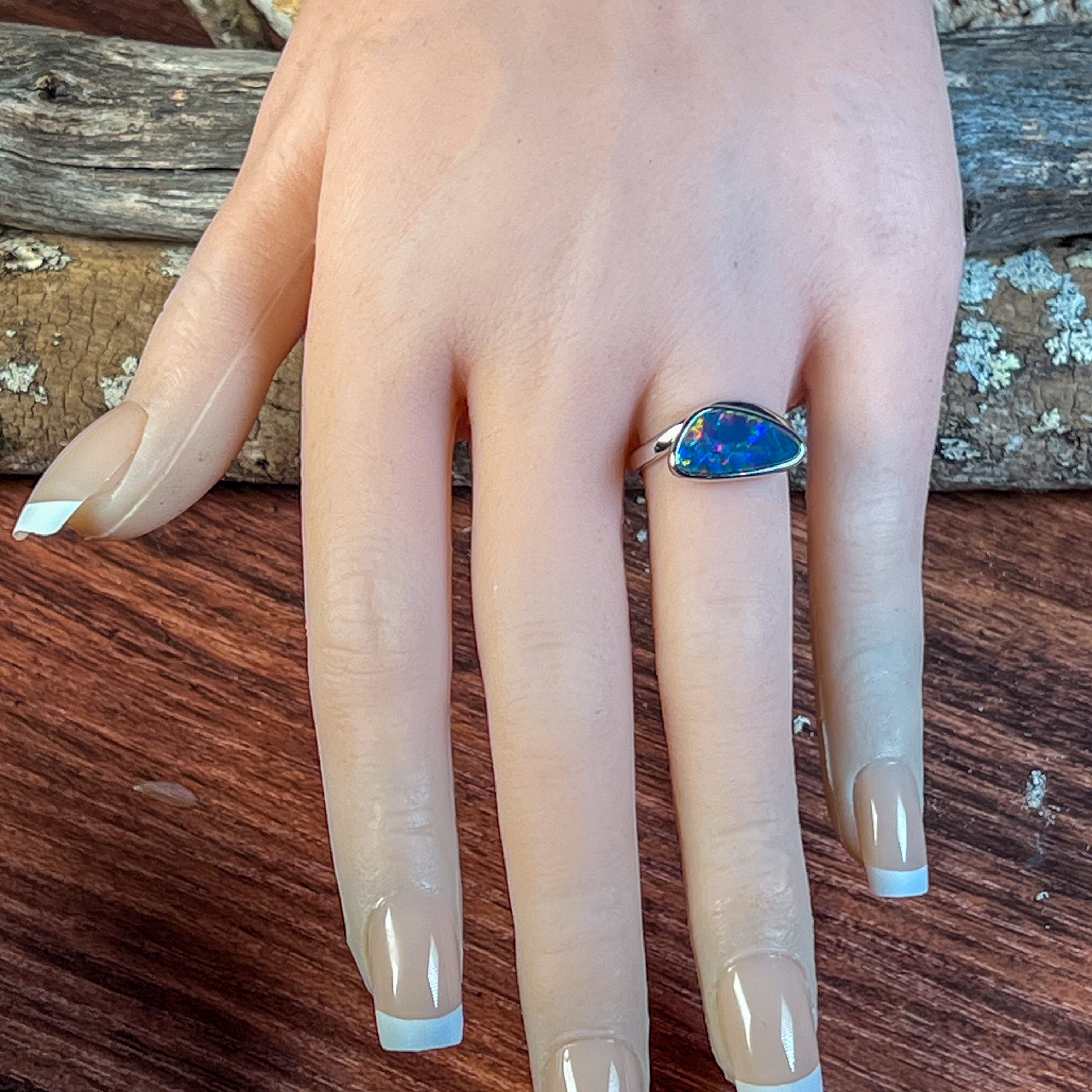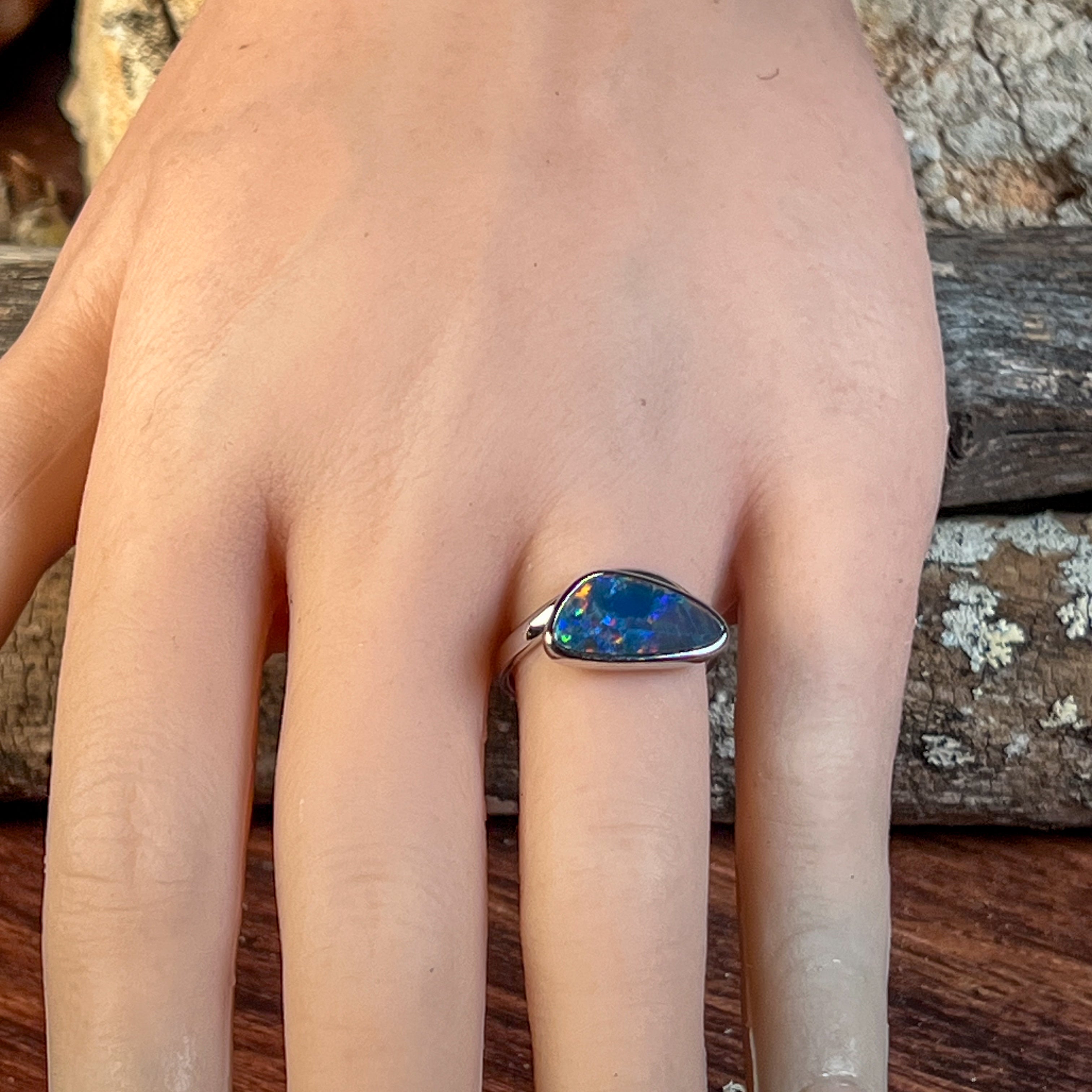 9kt White Gold 2.14ct Opal doublet bezel set ring