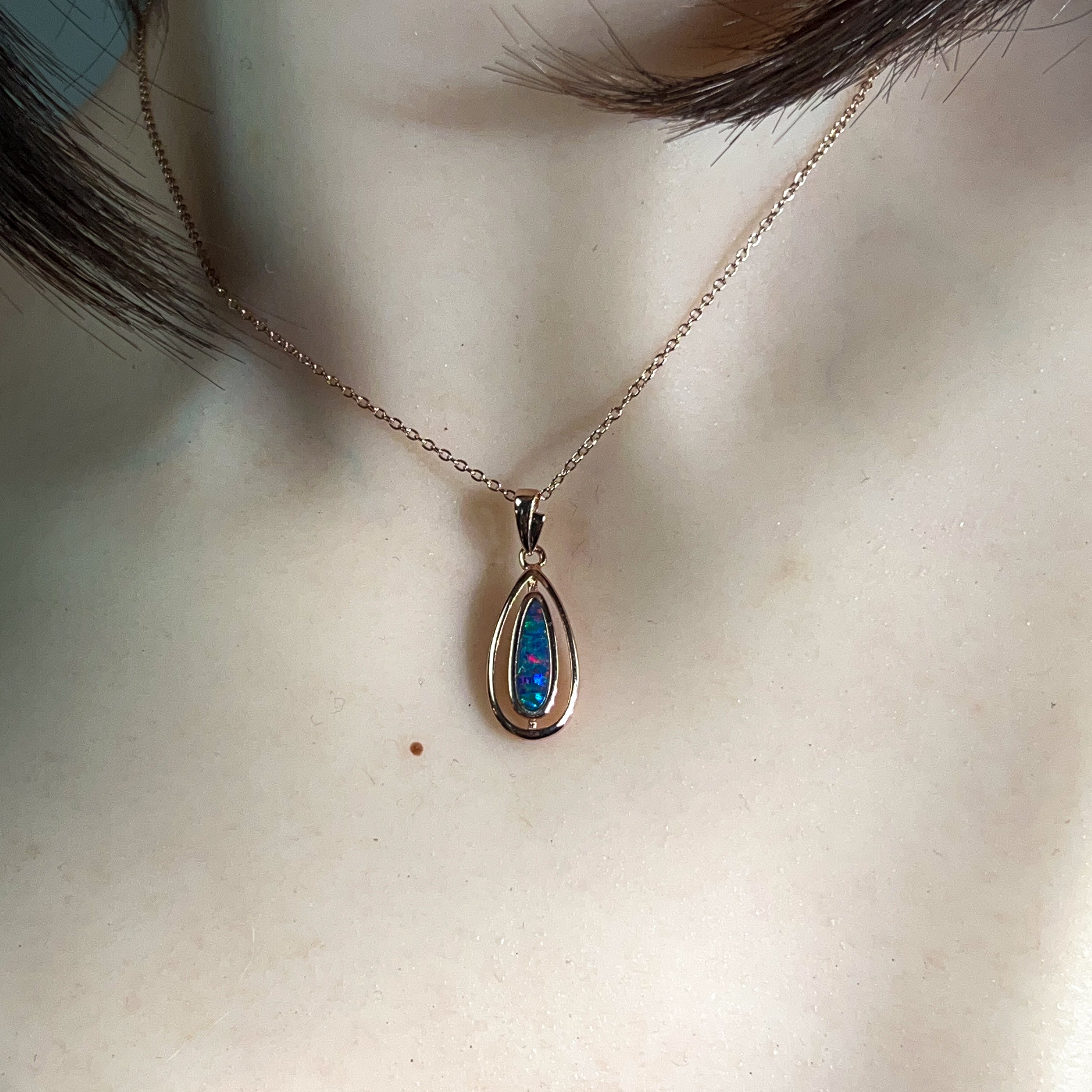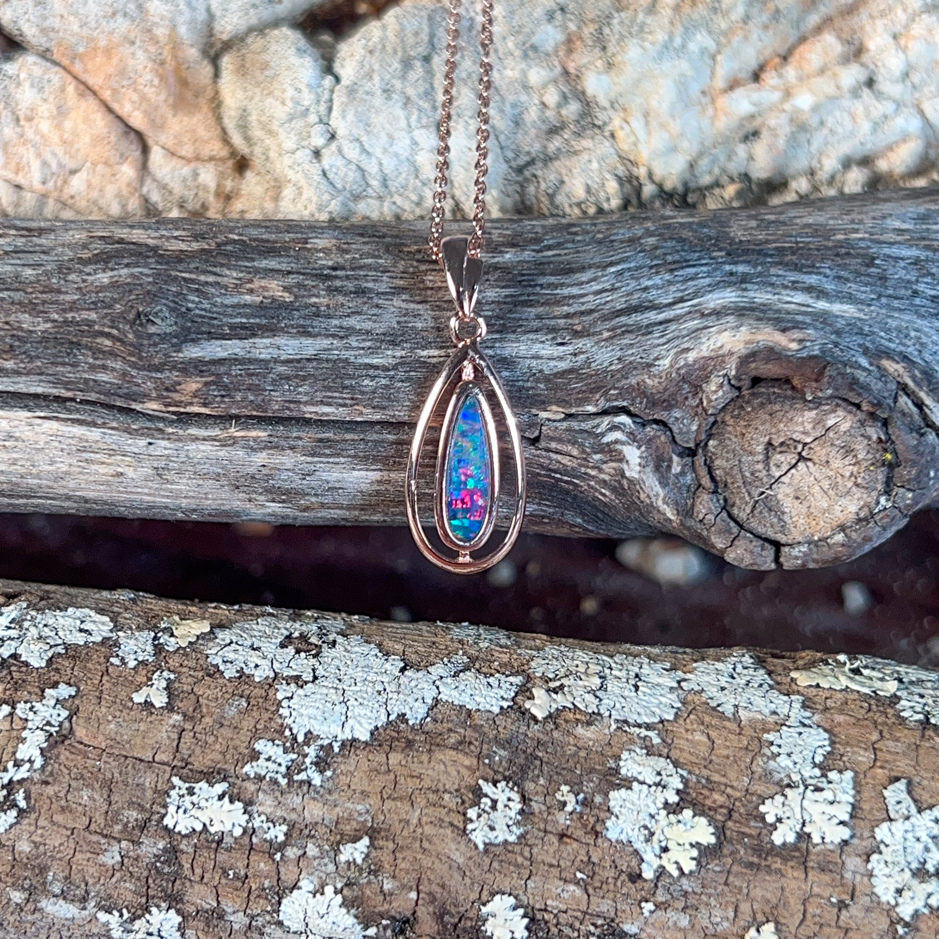 Rose Gold plated silver Opal doublet 13x4mm pendant