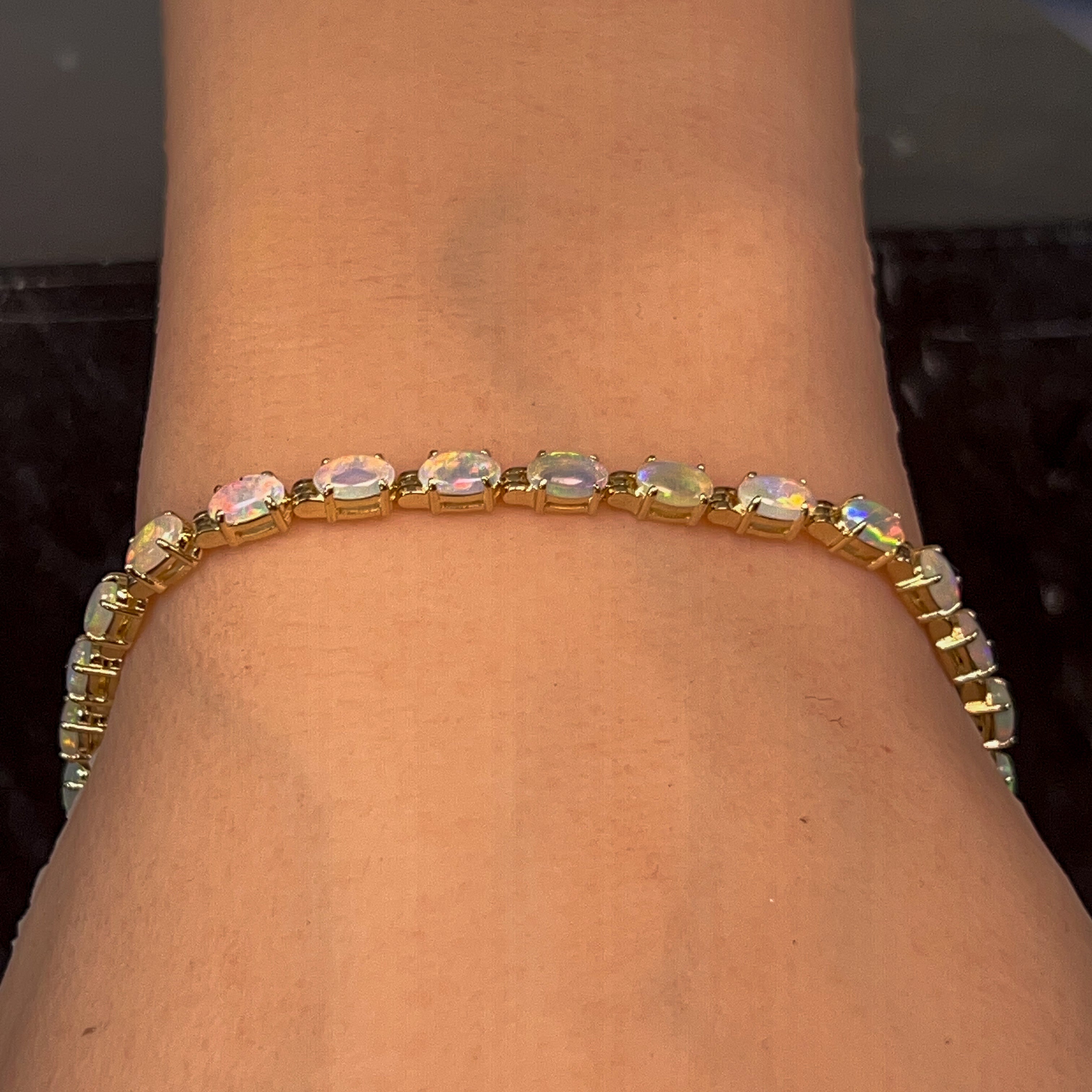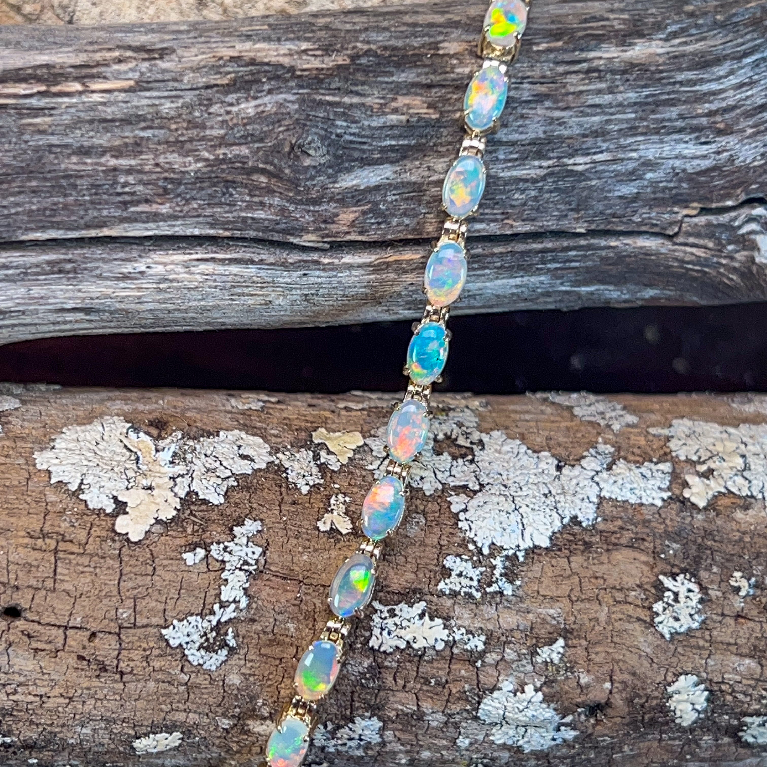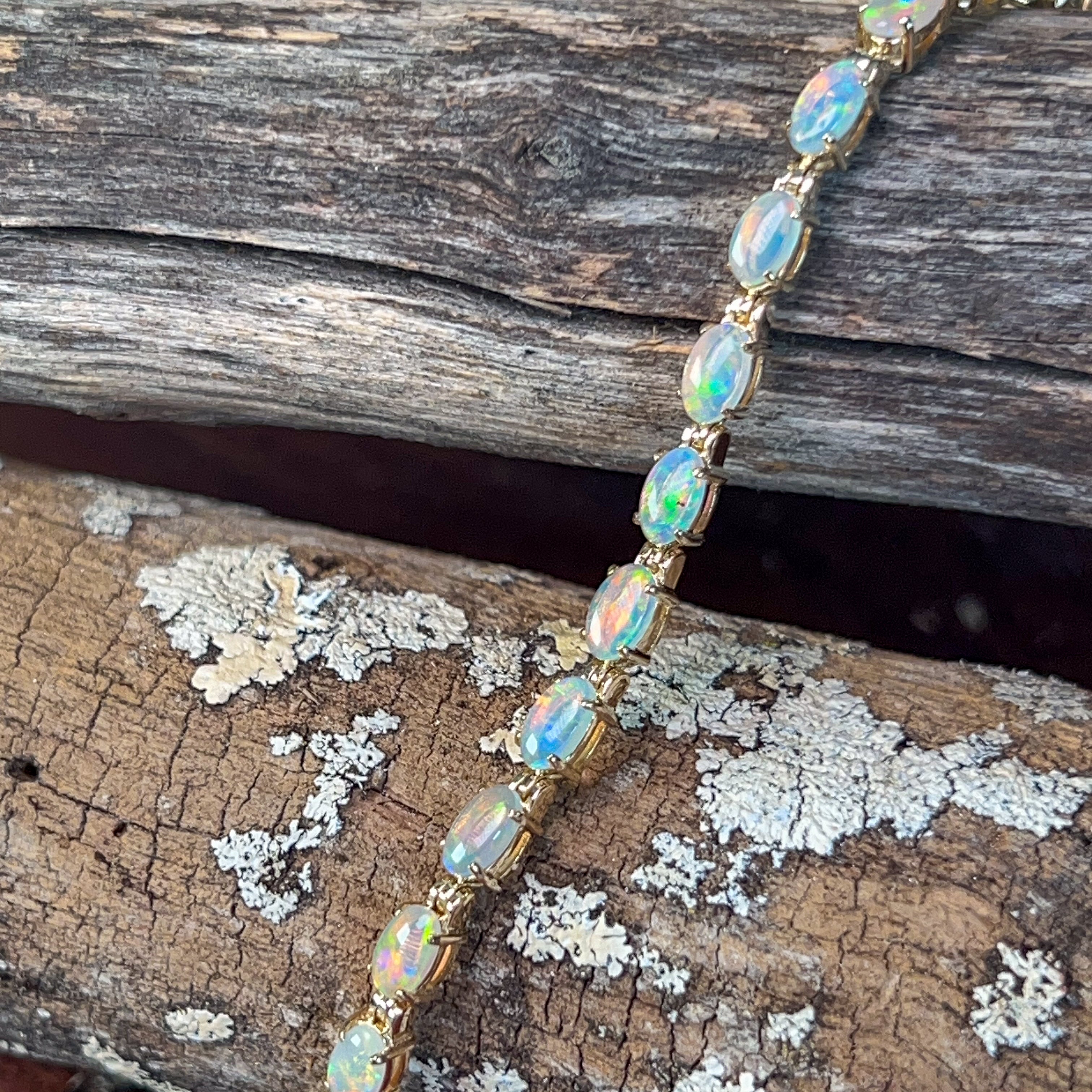 9kt Yellow Gold tennis style Crystal Opal 3.2ct bracelet