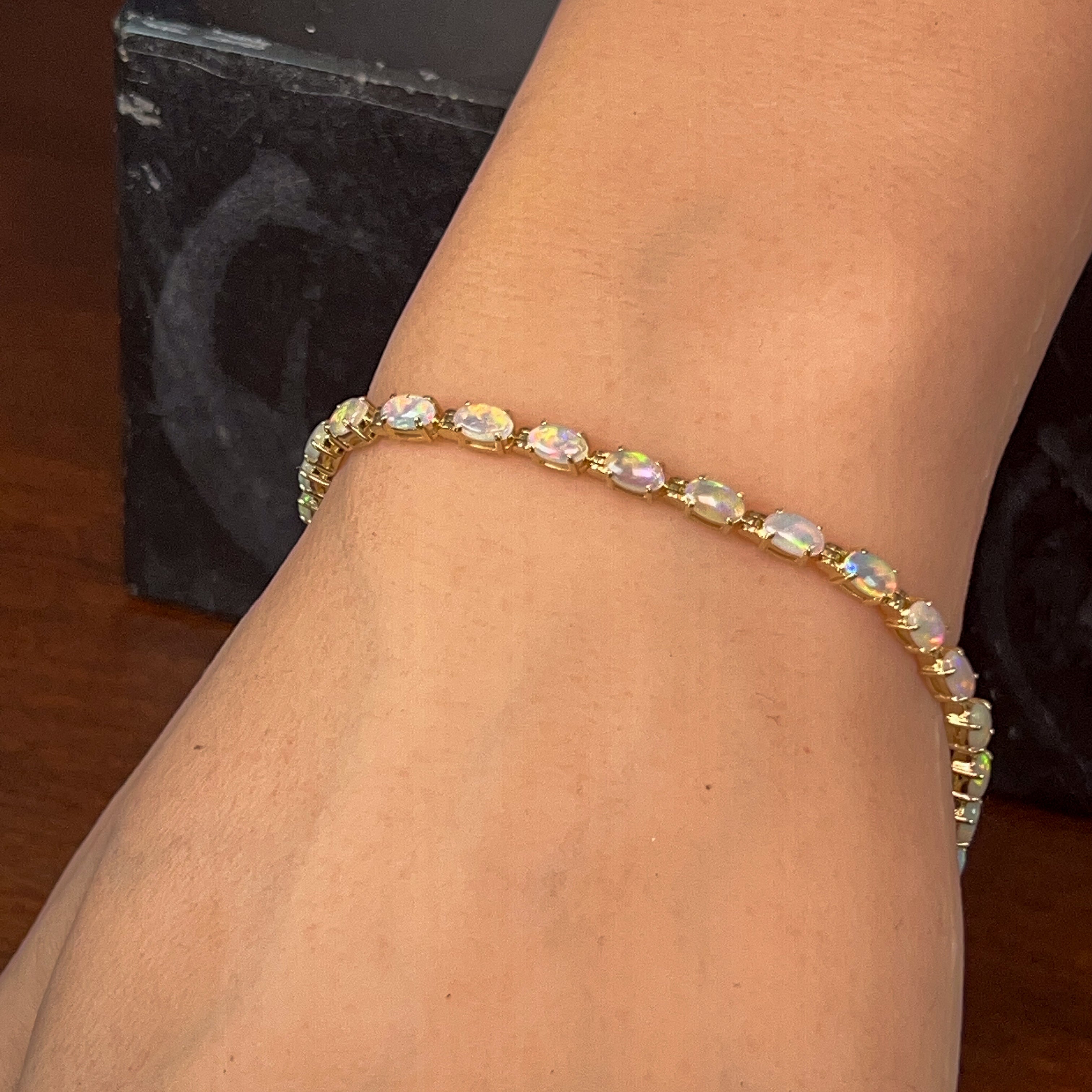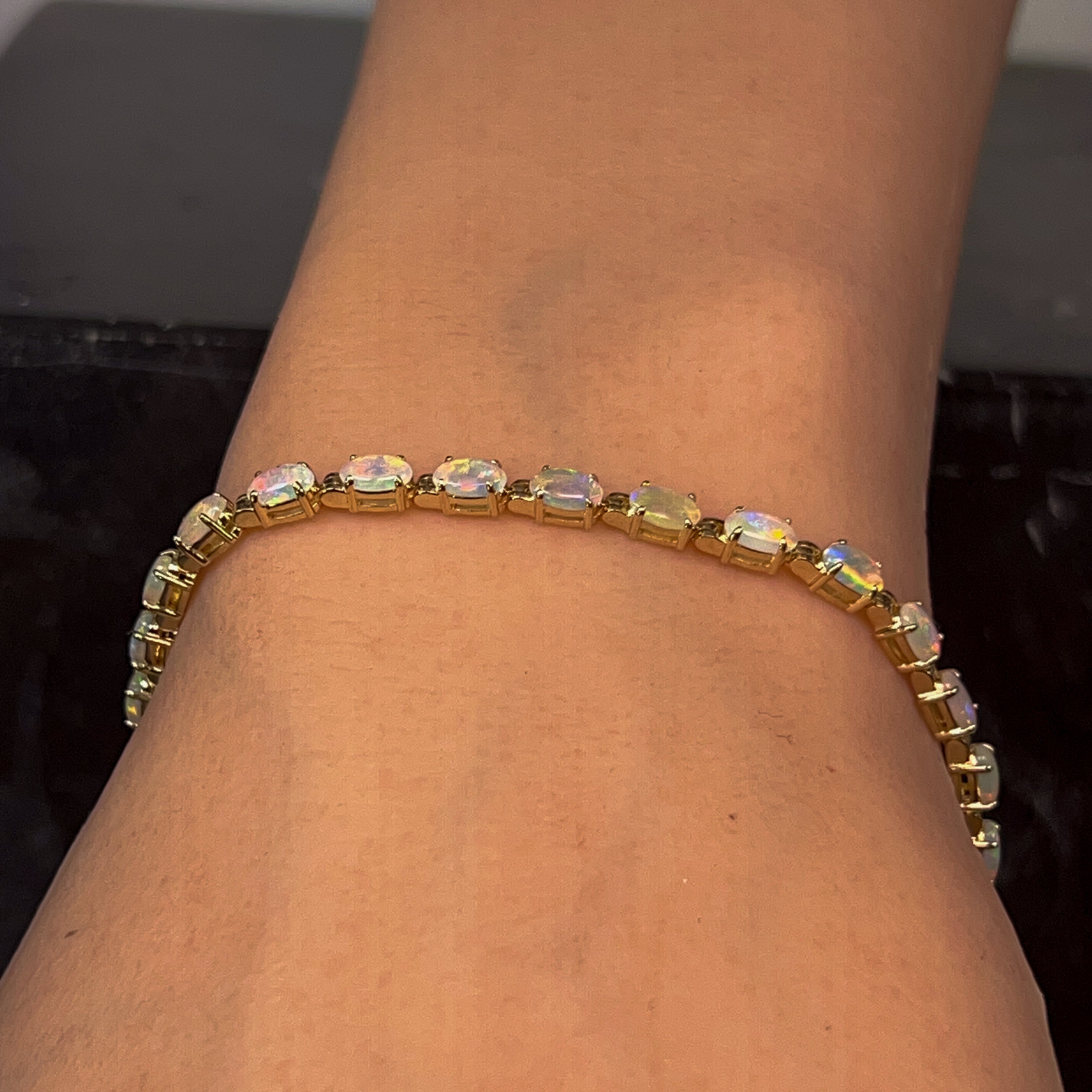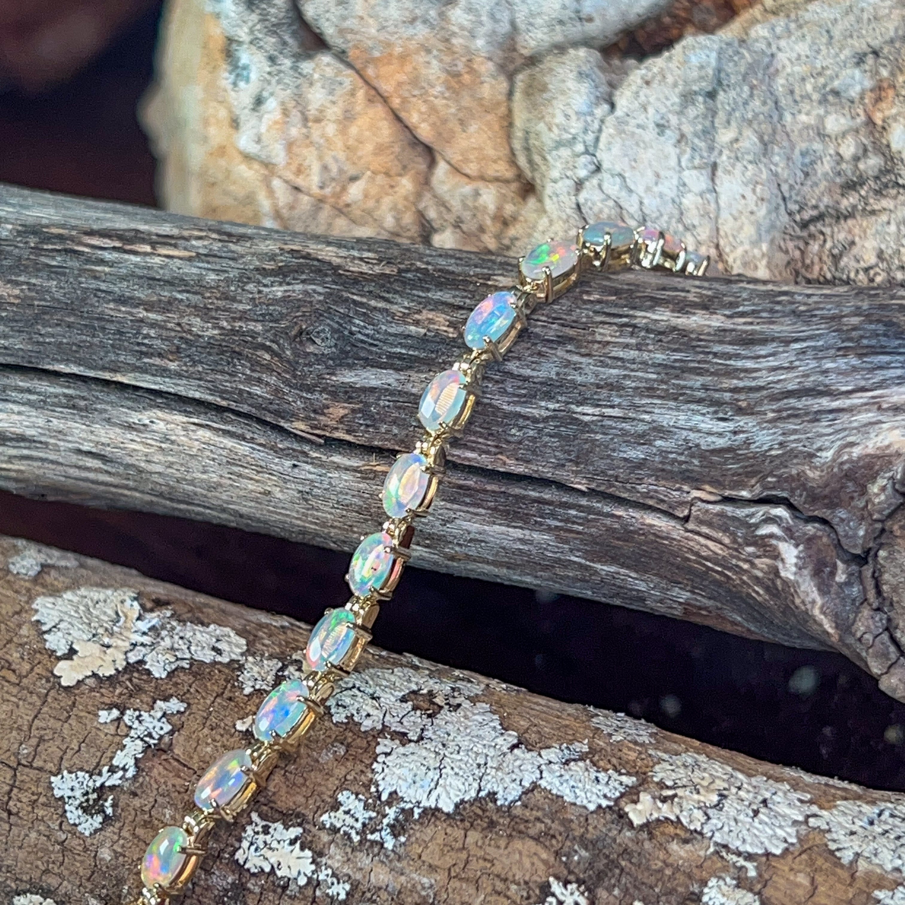 9kt Yellow Gold tennis style Crystal Opal 3.2ct bracelet