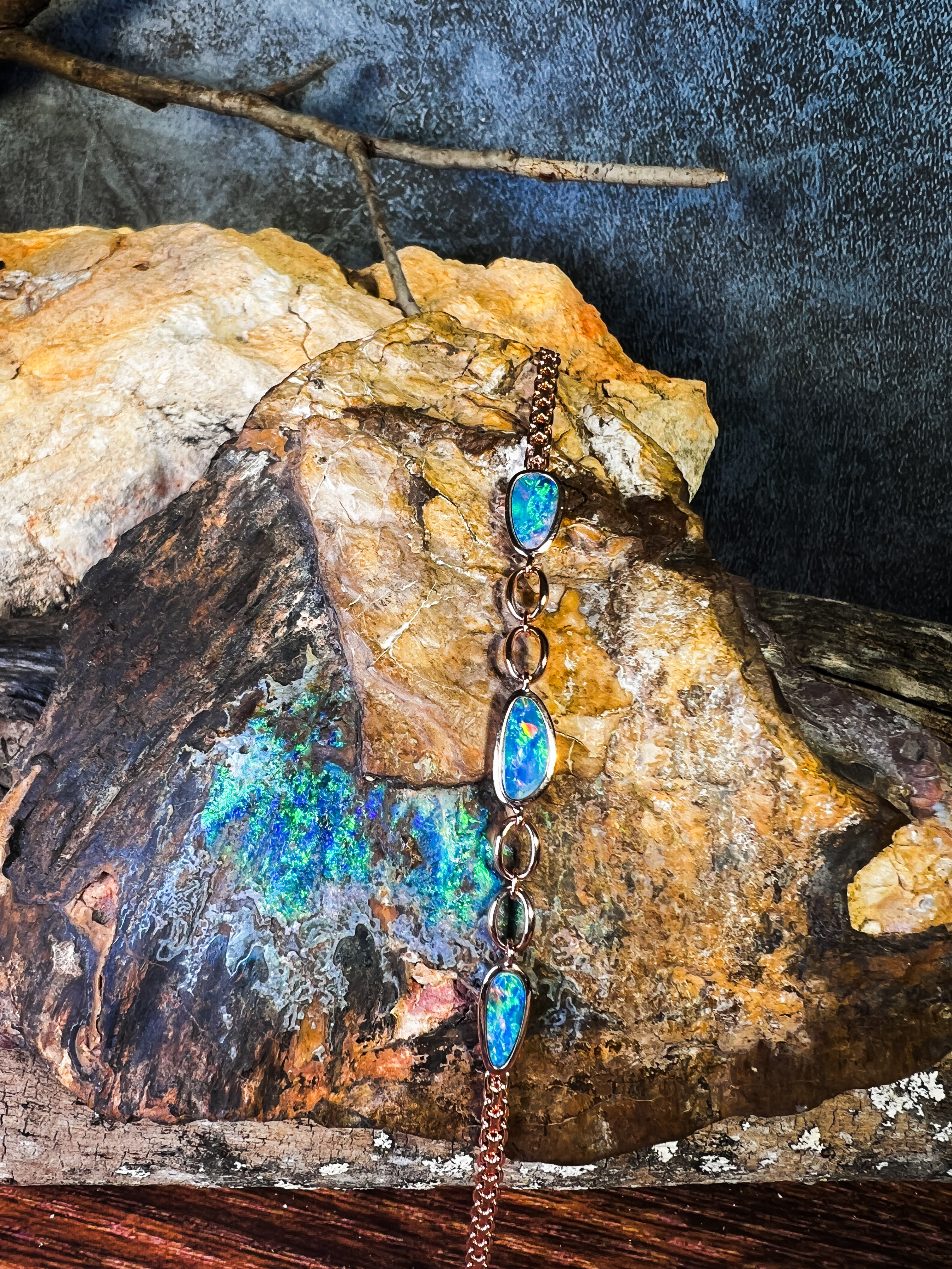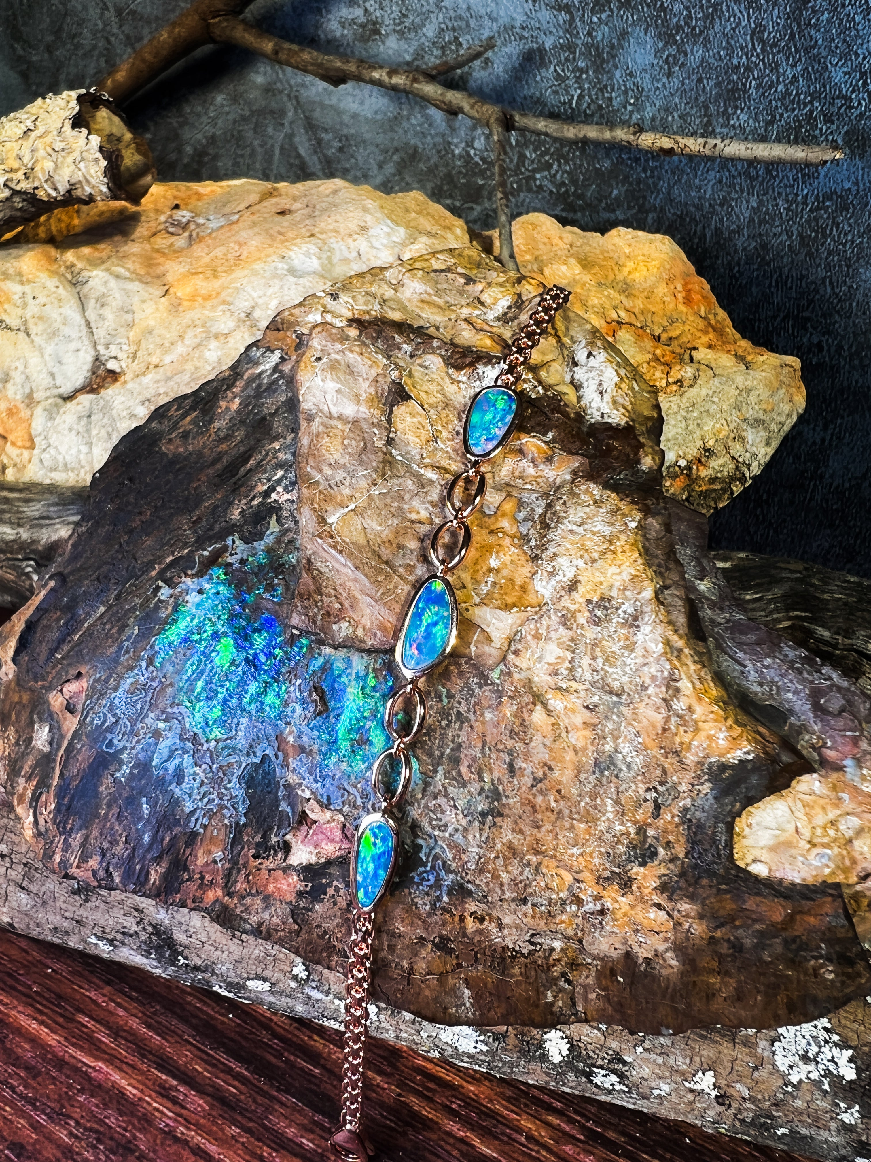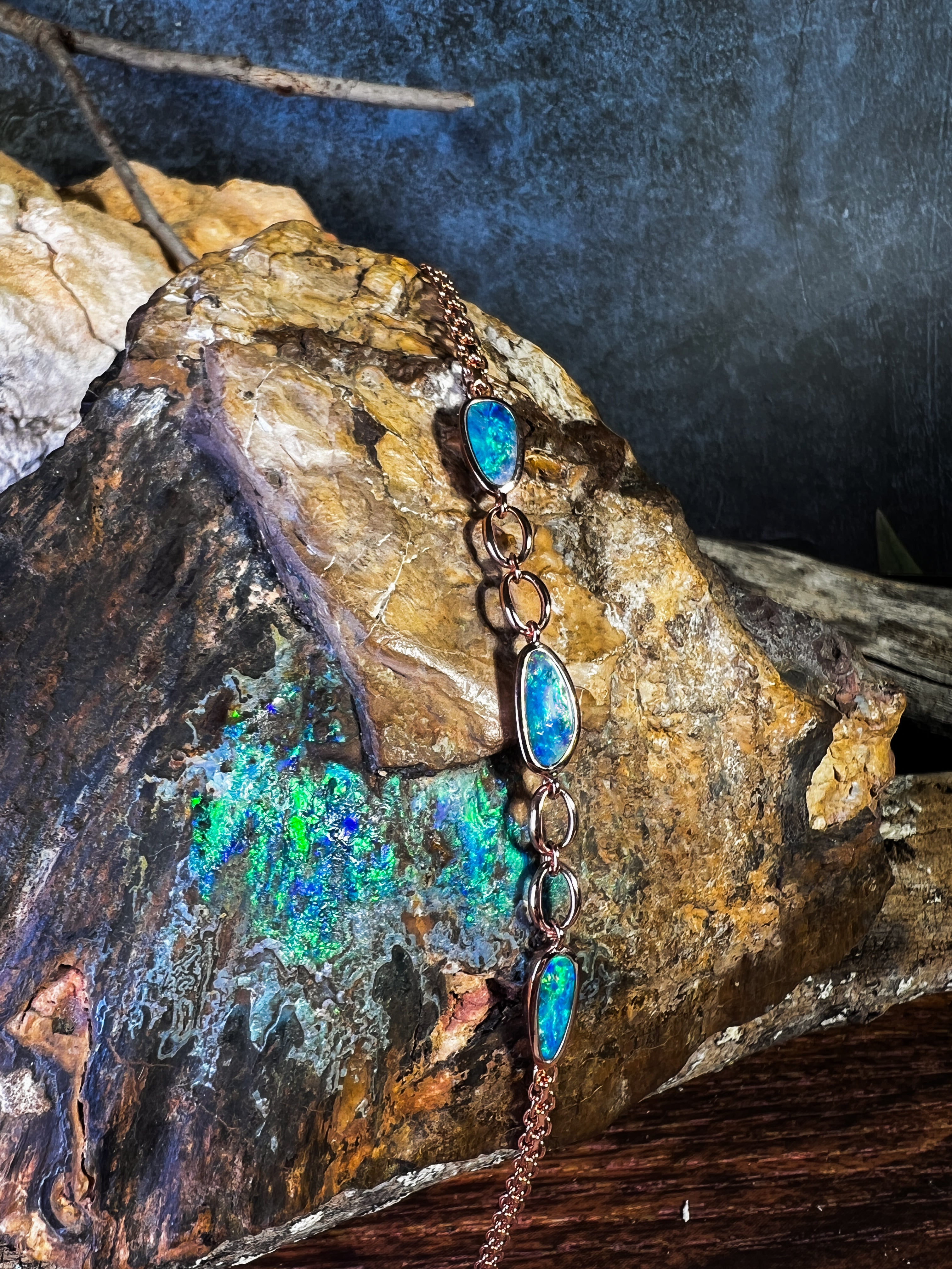 Sterling Silver Rose Gold plated freeform Opal doublet bracelet