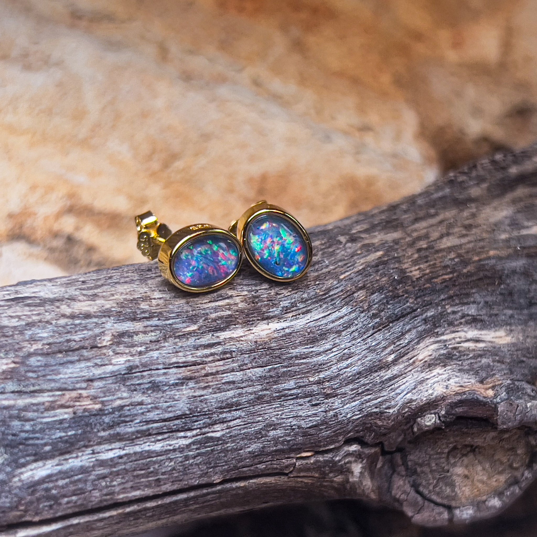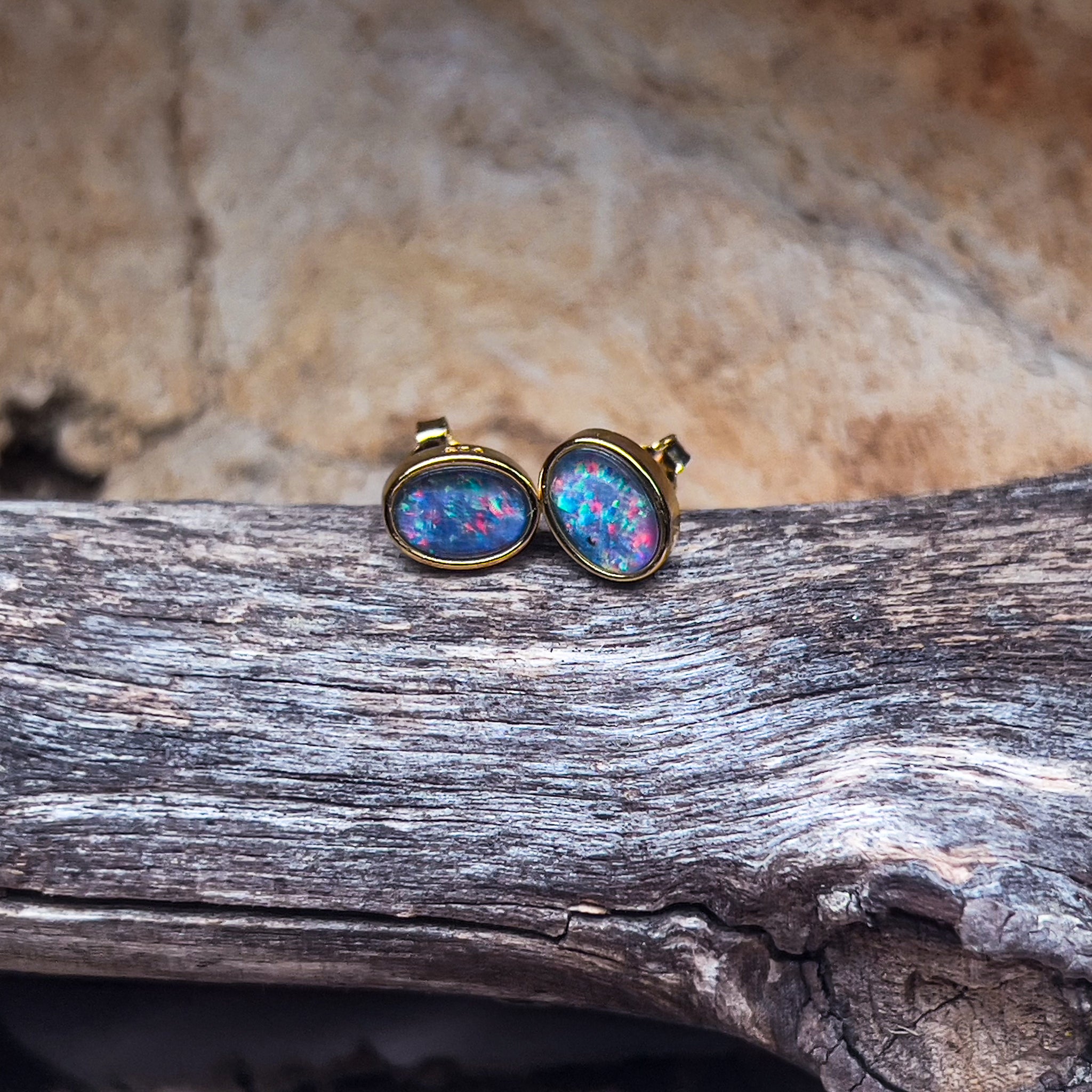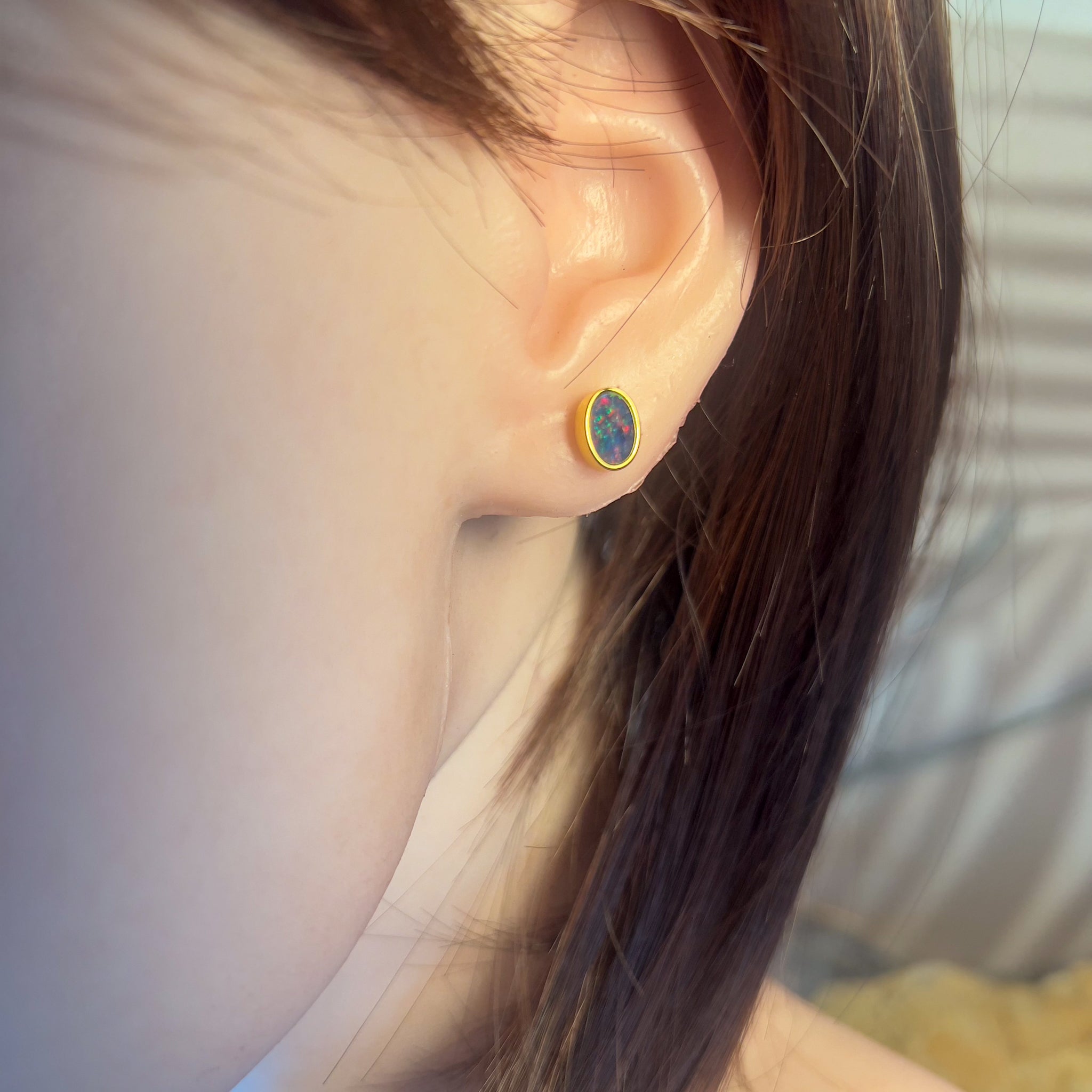 Gold plated Sterling Silver 7x5mm Opal triplets bezel set studs