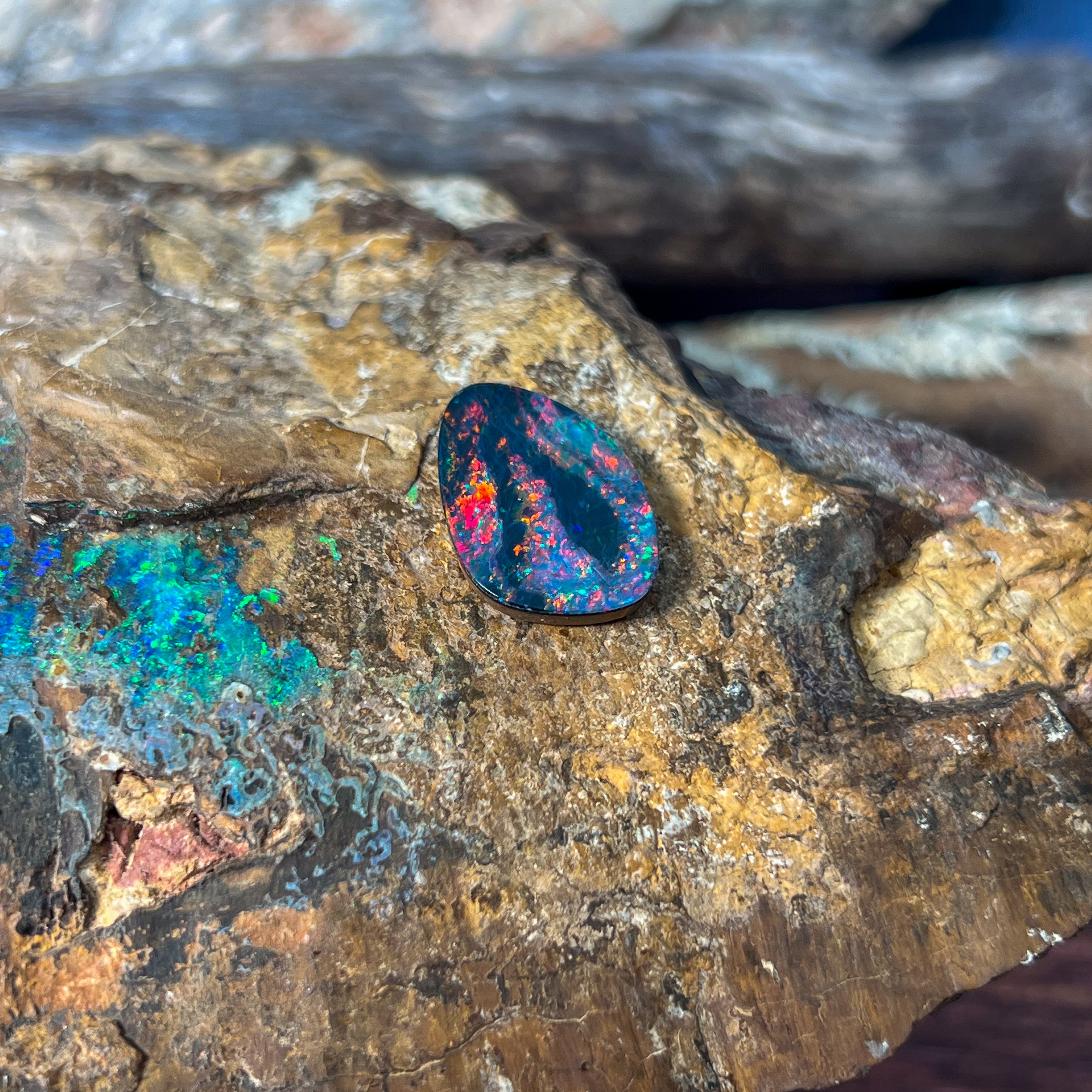 Discover the charm of the Opal Doublet 6.9ct, a dazzling gem that adds a splash of color and personality to any man's style. Perfect for crafting a unique, playful gift, this opal doublet shines with vibrant hues that catch the eye and spark conversation. Whether set in a ring, cufflinks, or a pendant, it’s a standout piece that celebrates individuality and fun. Make your gift as one-of-a-kind as he is with this captivating opal treasure.